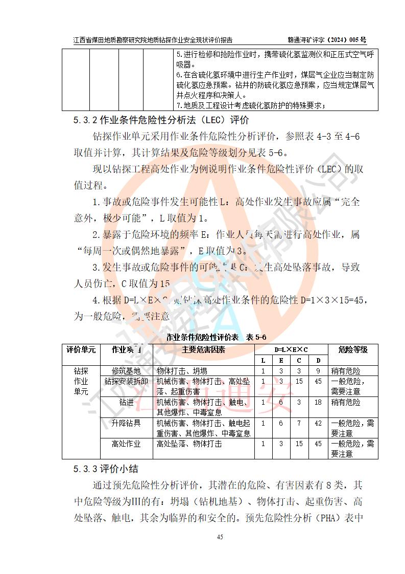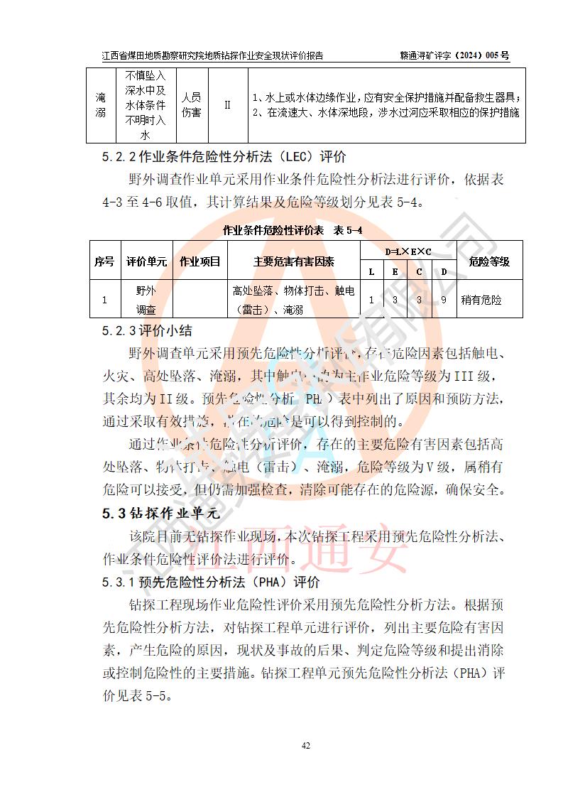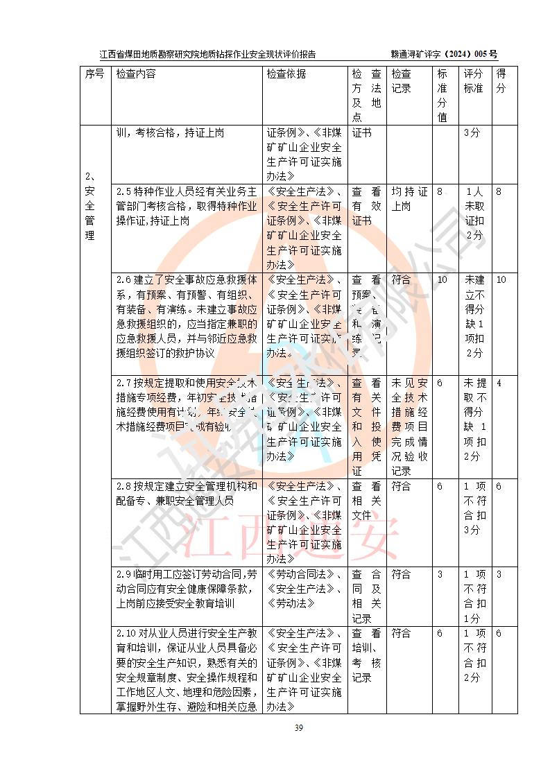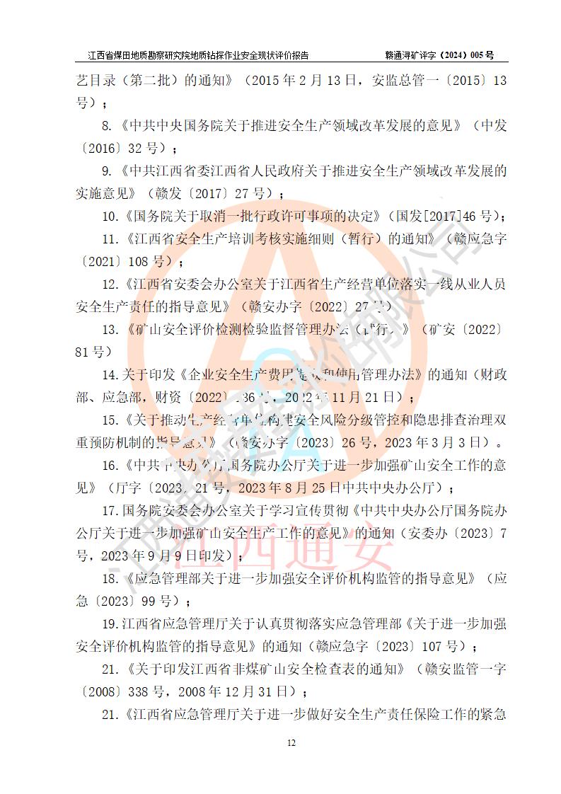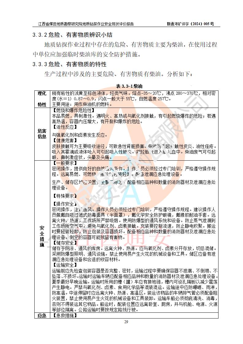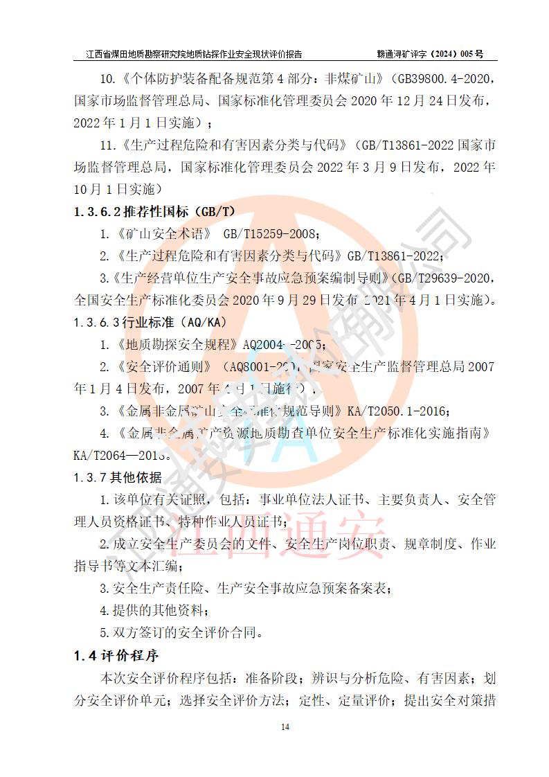 報(bào)告名稱 | 江西省煤田地質(zhì)勘察研究院地質(zhì)鉆探作業(yè)安全現(xiàn)狀評價(jià)報(bào)告 | |||||