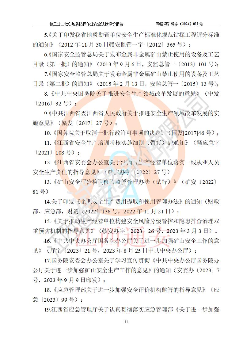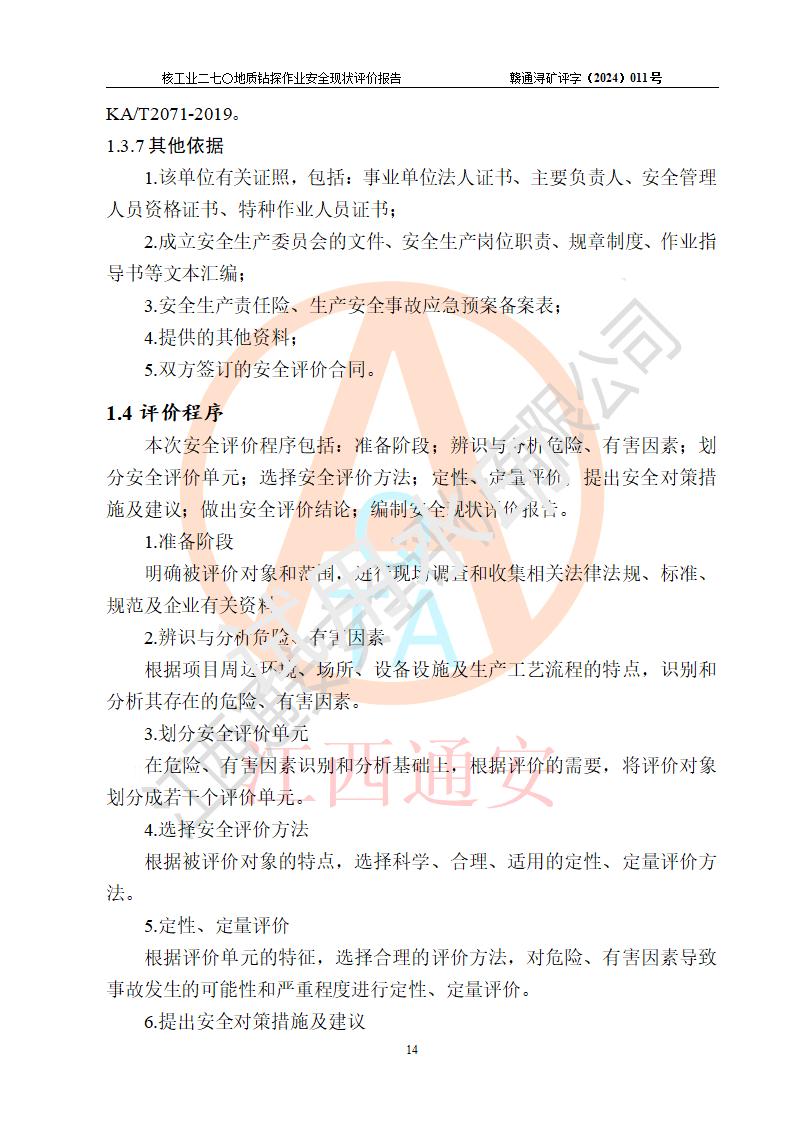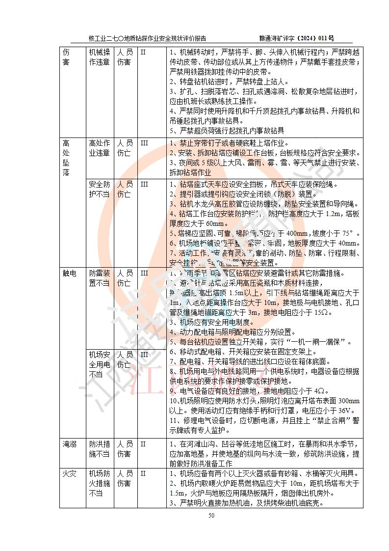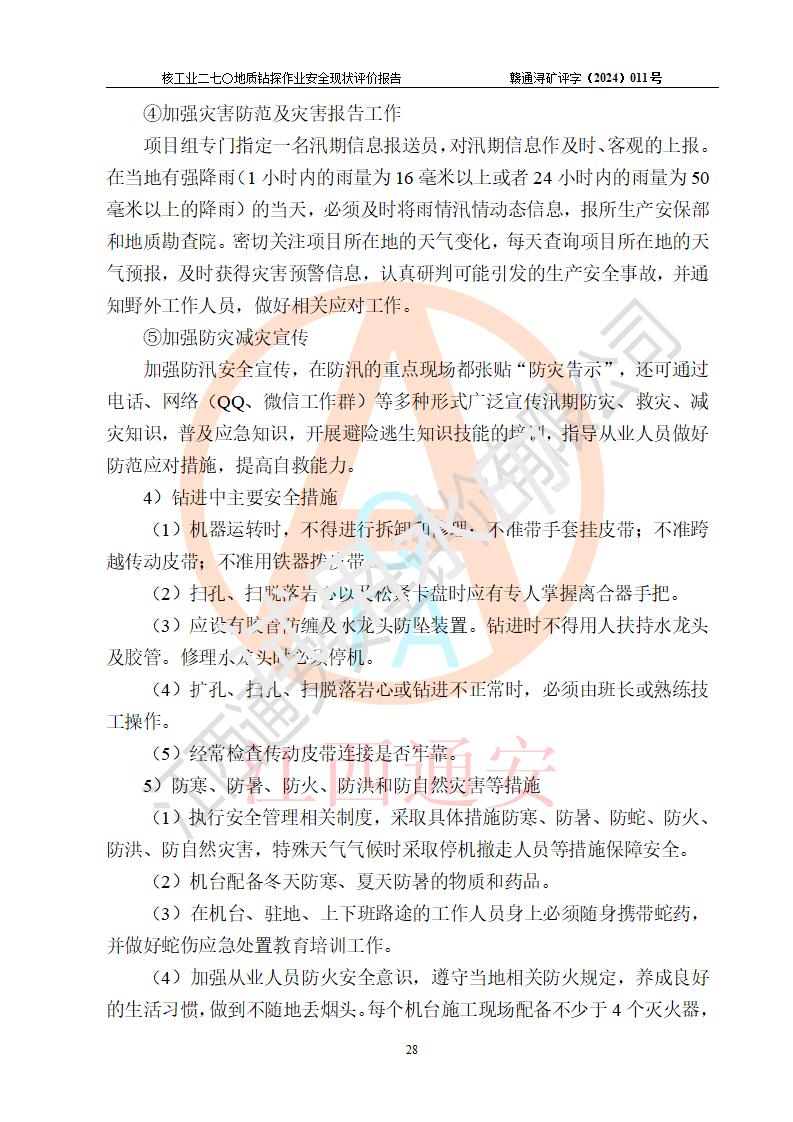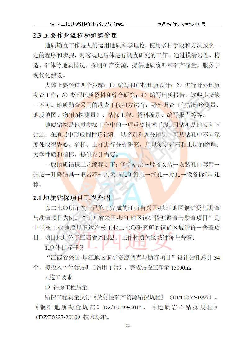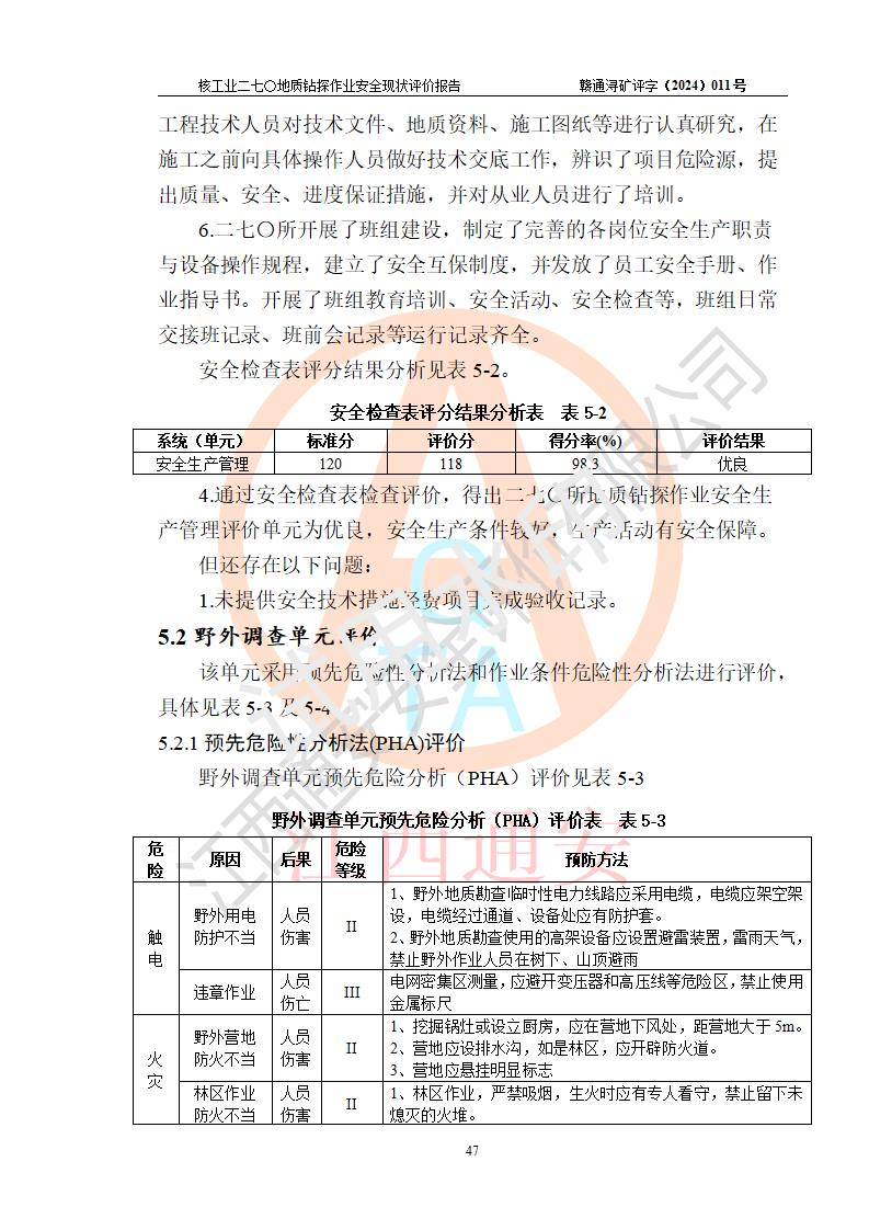 報(bào)告名稱 | 核工業(yè)二七〇研究所地質(zhì)鉆探作業(yè)安全現(xiàn)狀評(píng)價(jià)報(bào)告 | |||||