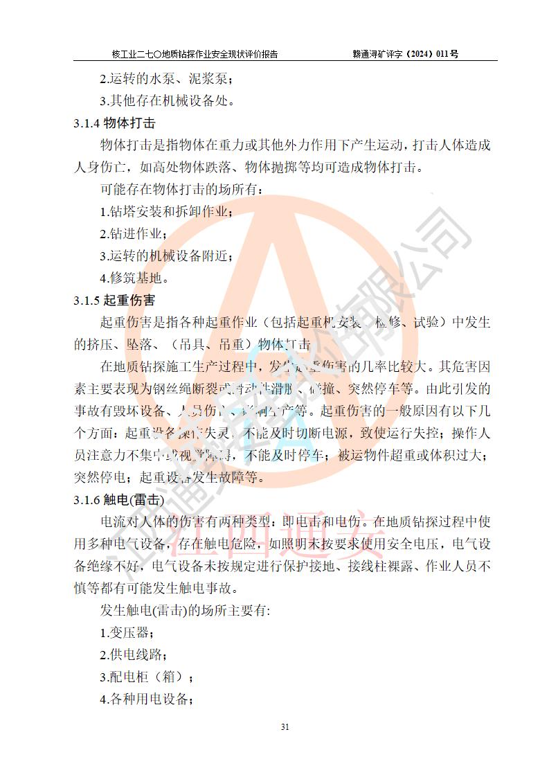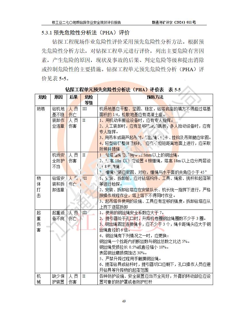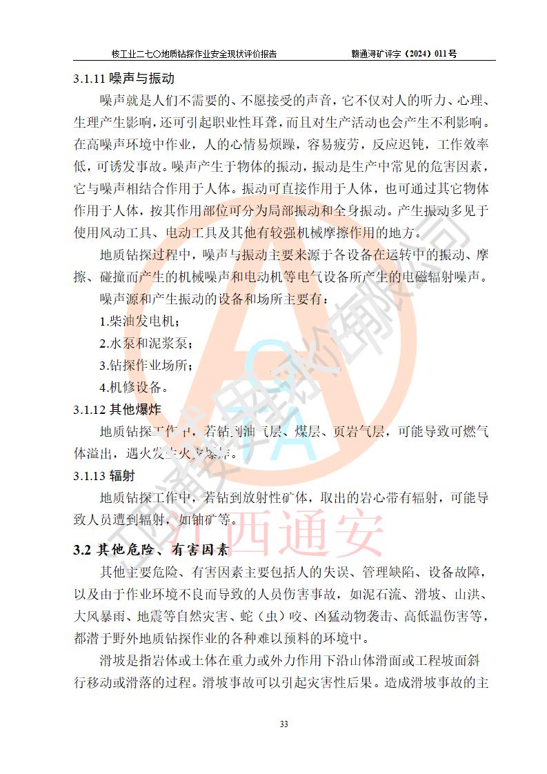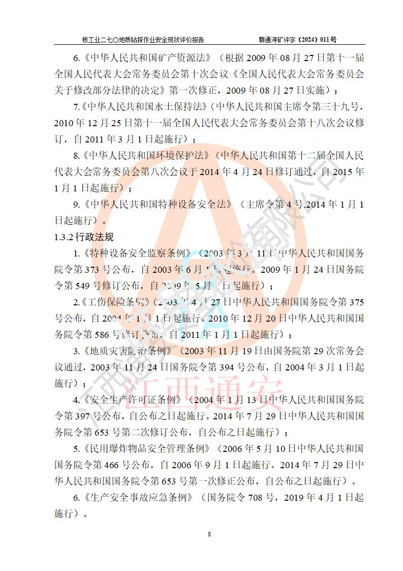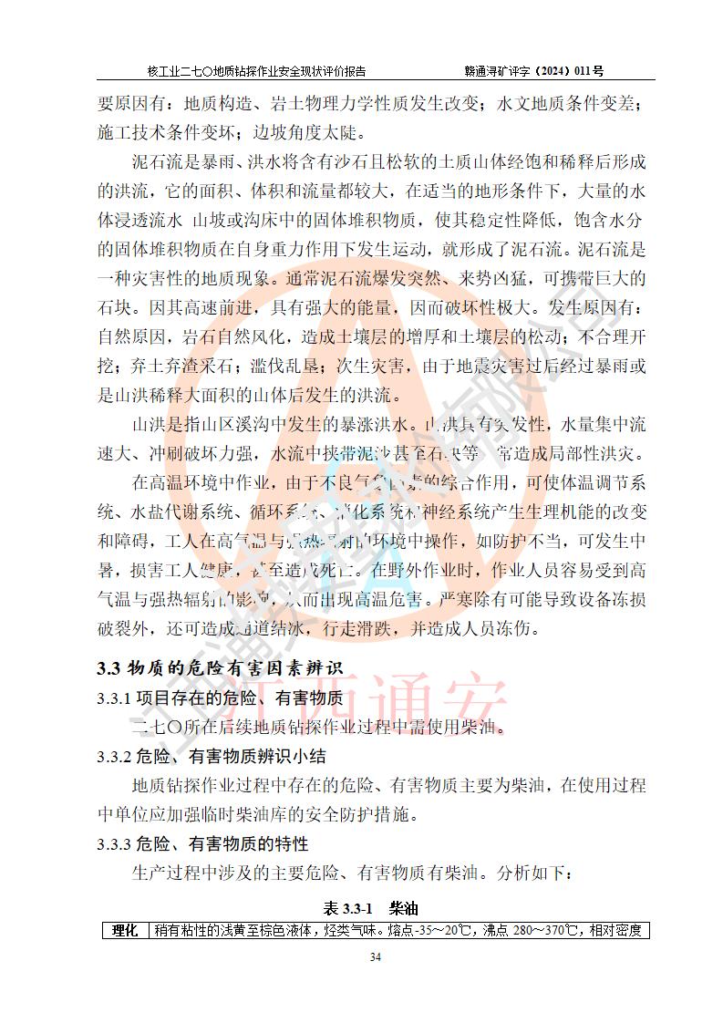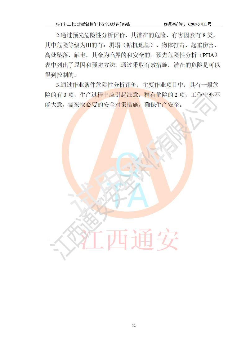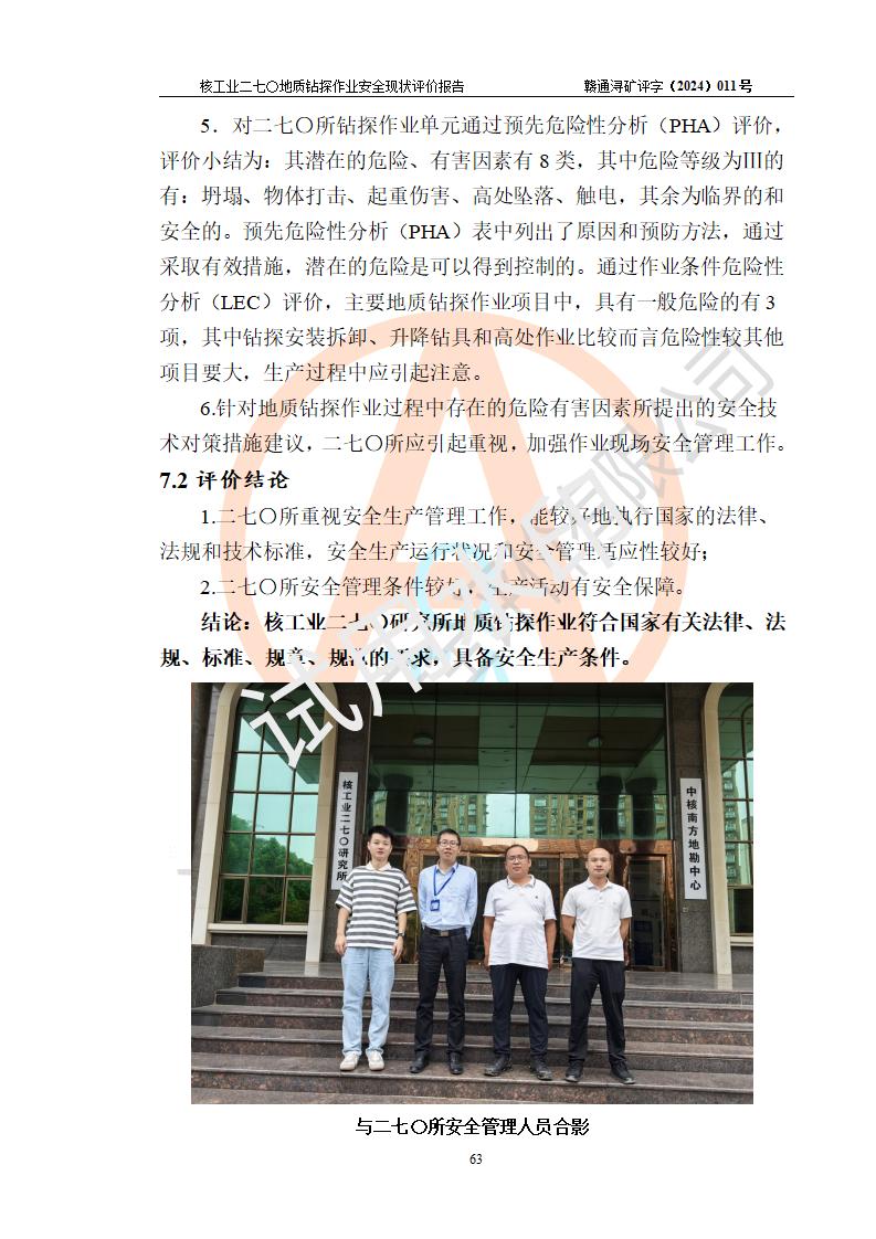 報(bào)告名稱 | 核工業(yè)二七〇研究所地質(zhì)鉆探作業(yè)安全現(xiàn)狀評(píng)價(jià)報(bào)告 | |||||