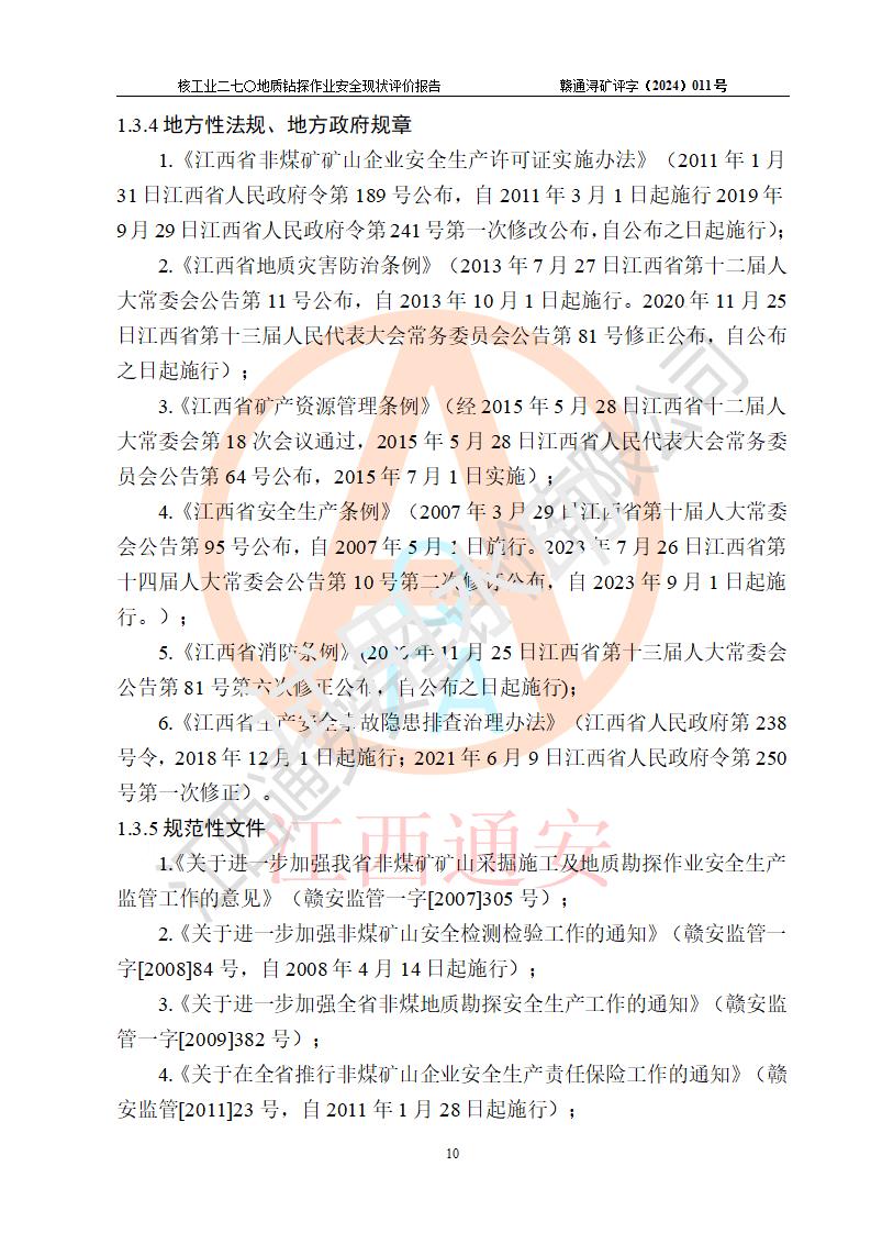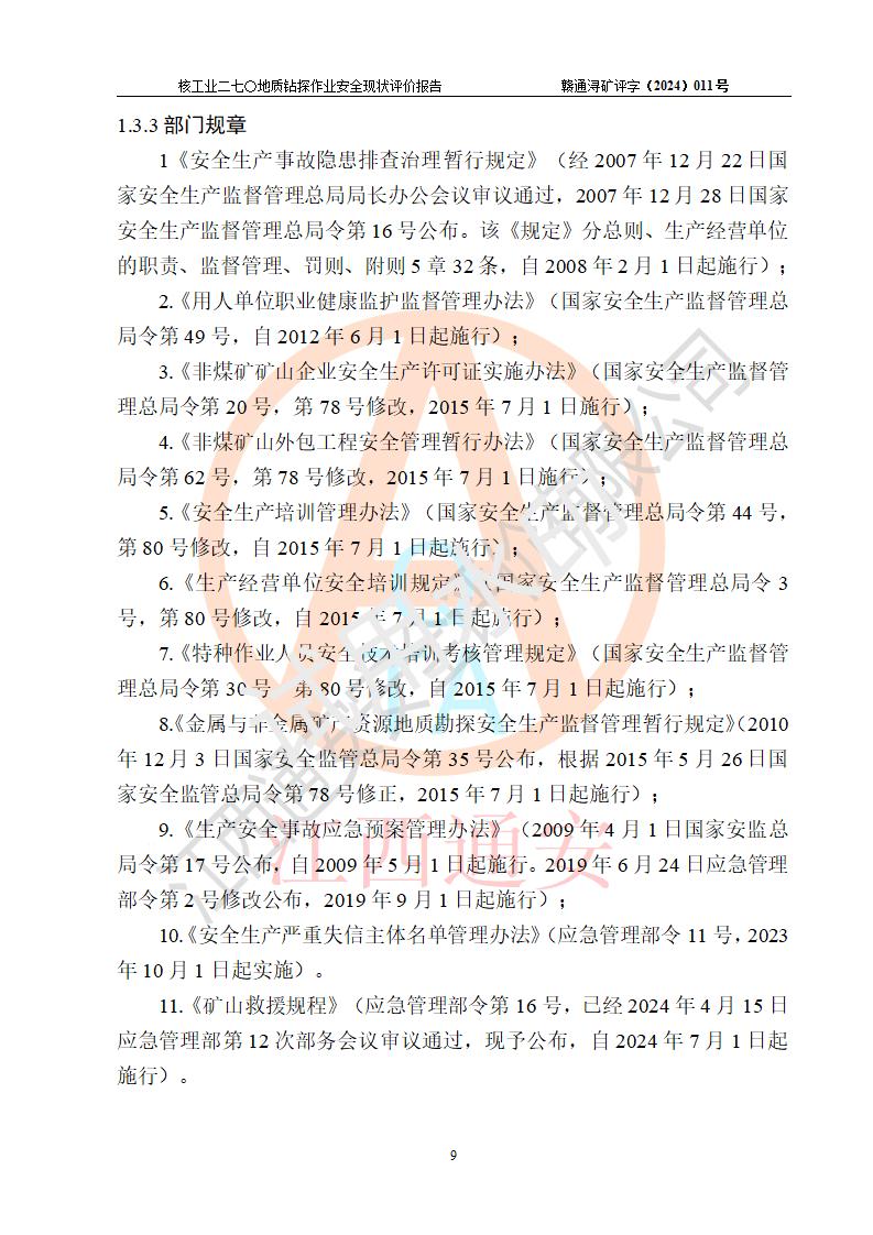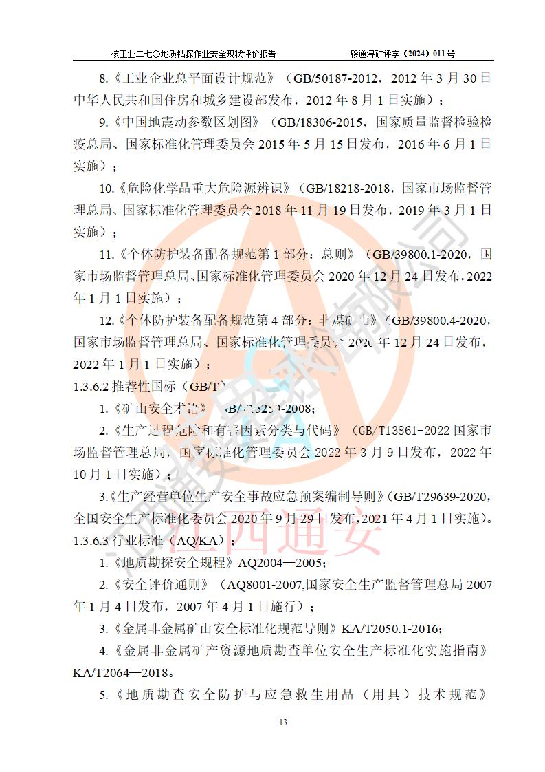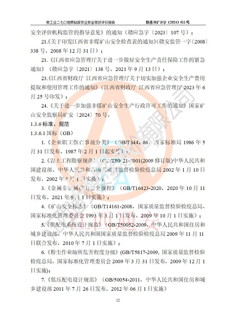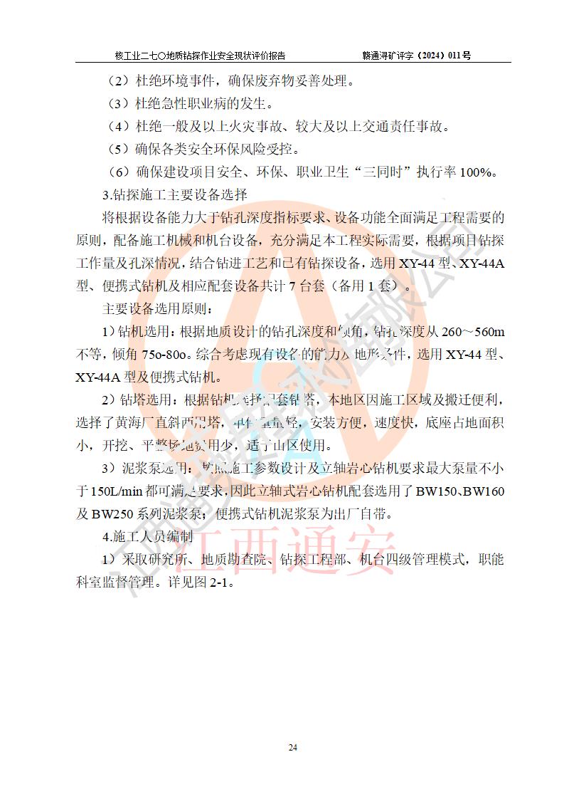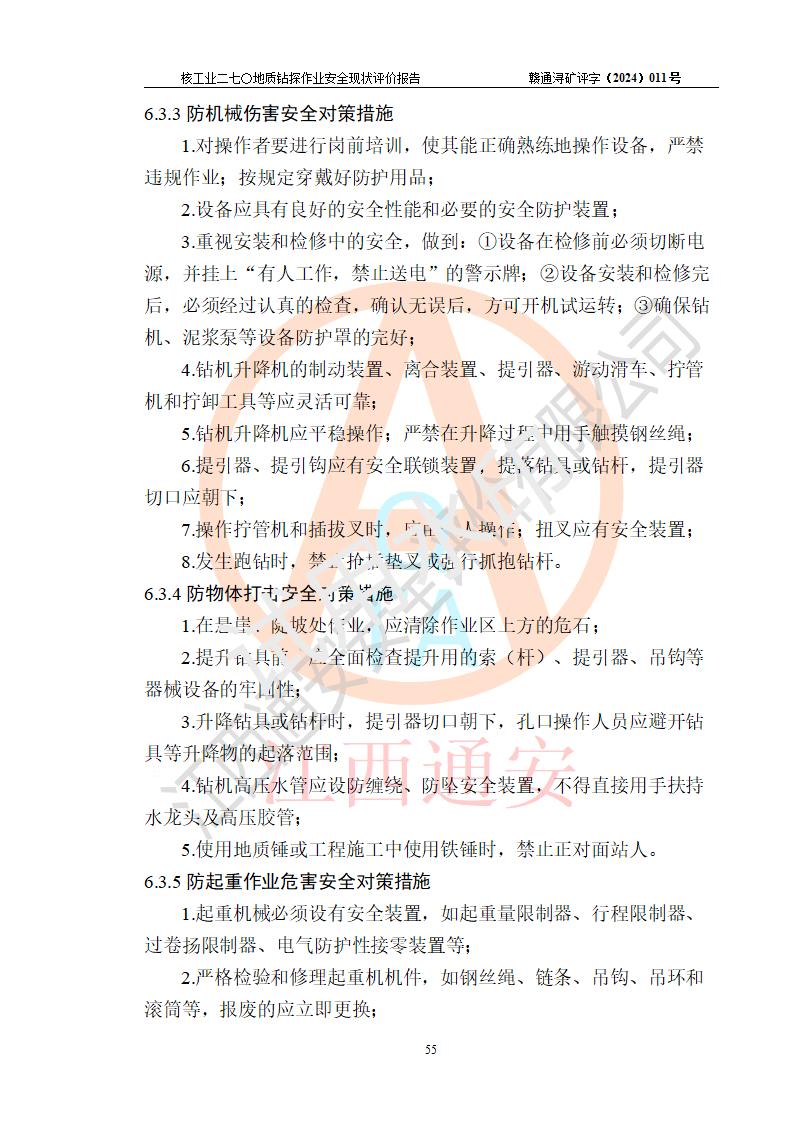 報(bào)告名稱 | 核工業(yè)二七〇研究所地質(zhì)鉆探作業(yè)安全現(xiàn)狀評(píng)價(jià)報(bào)告 | |||||