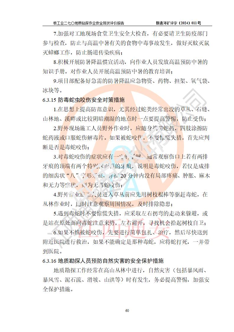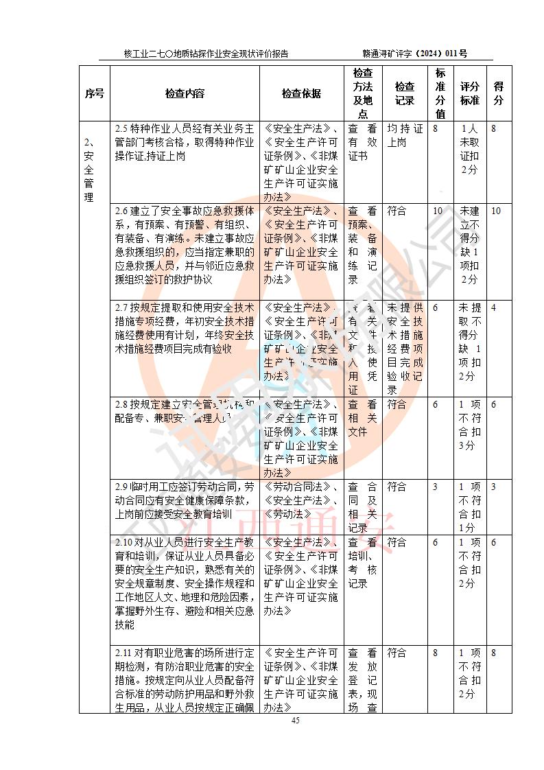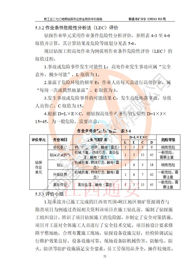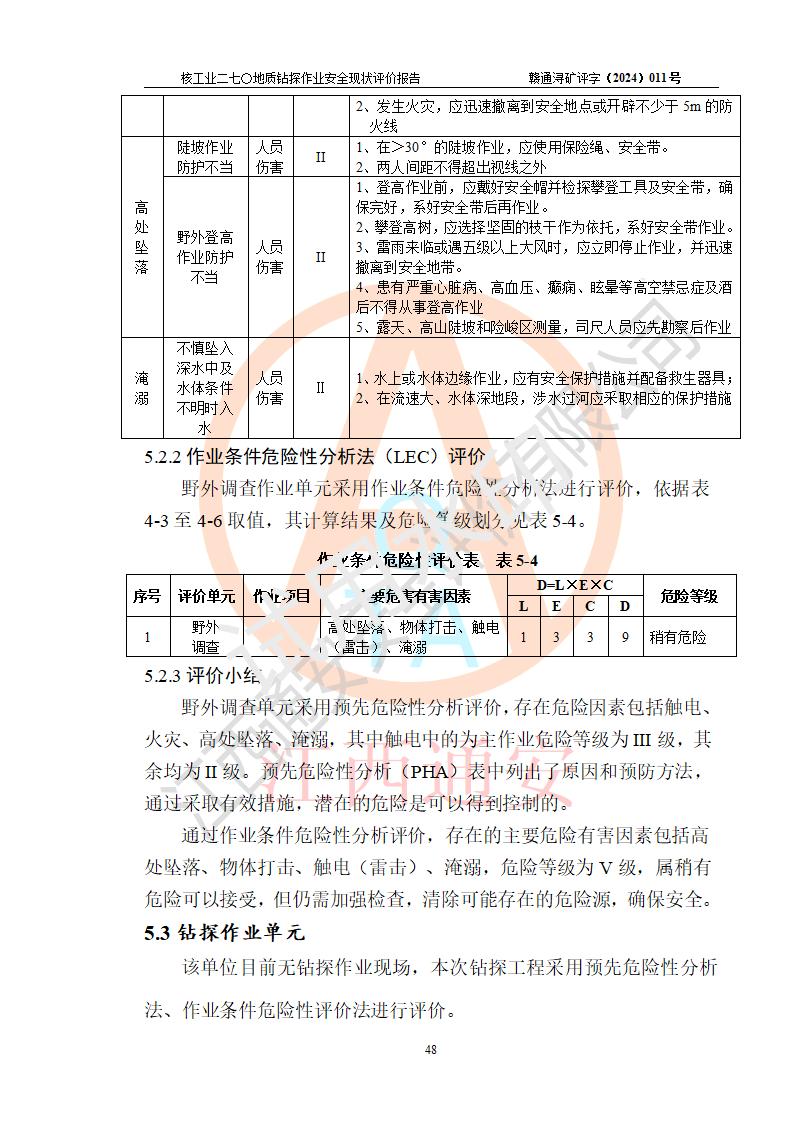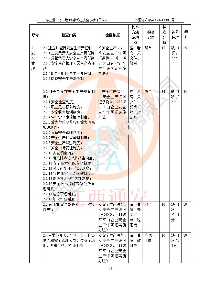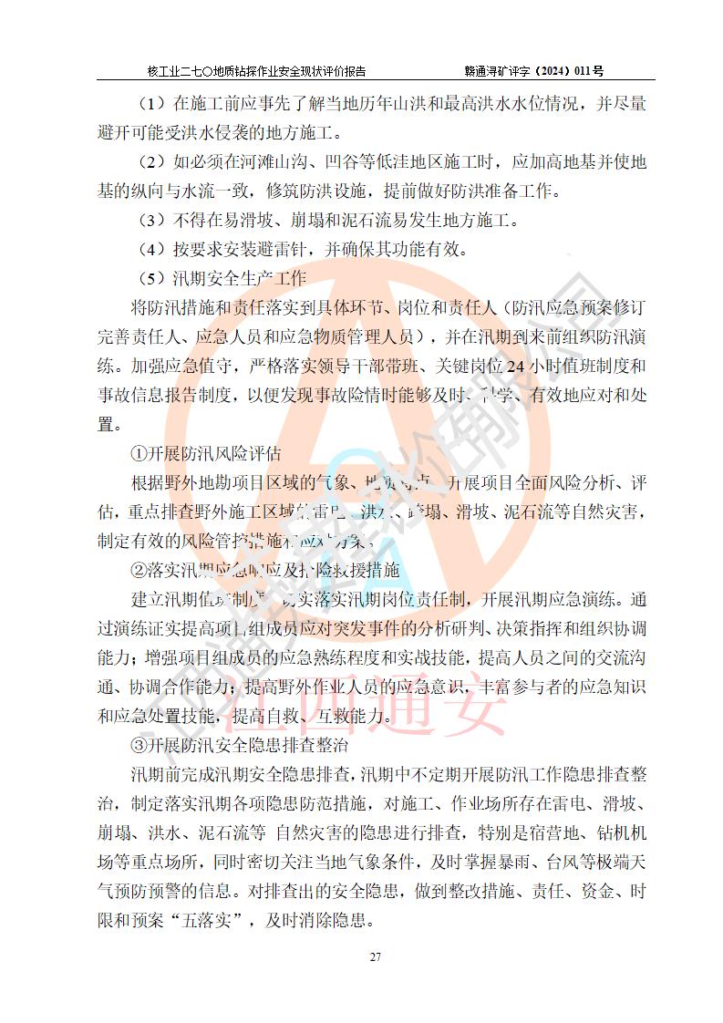 報(bào)告名稱 | 核工業(yè)二七〇研究所地質(zhì)鉆探作業(yè)安全現(xiàn)狀評(píng)價(jià)報(bào)告 | |||||