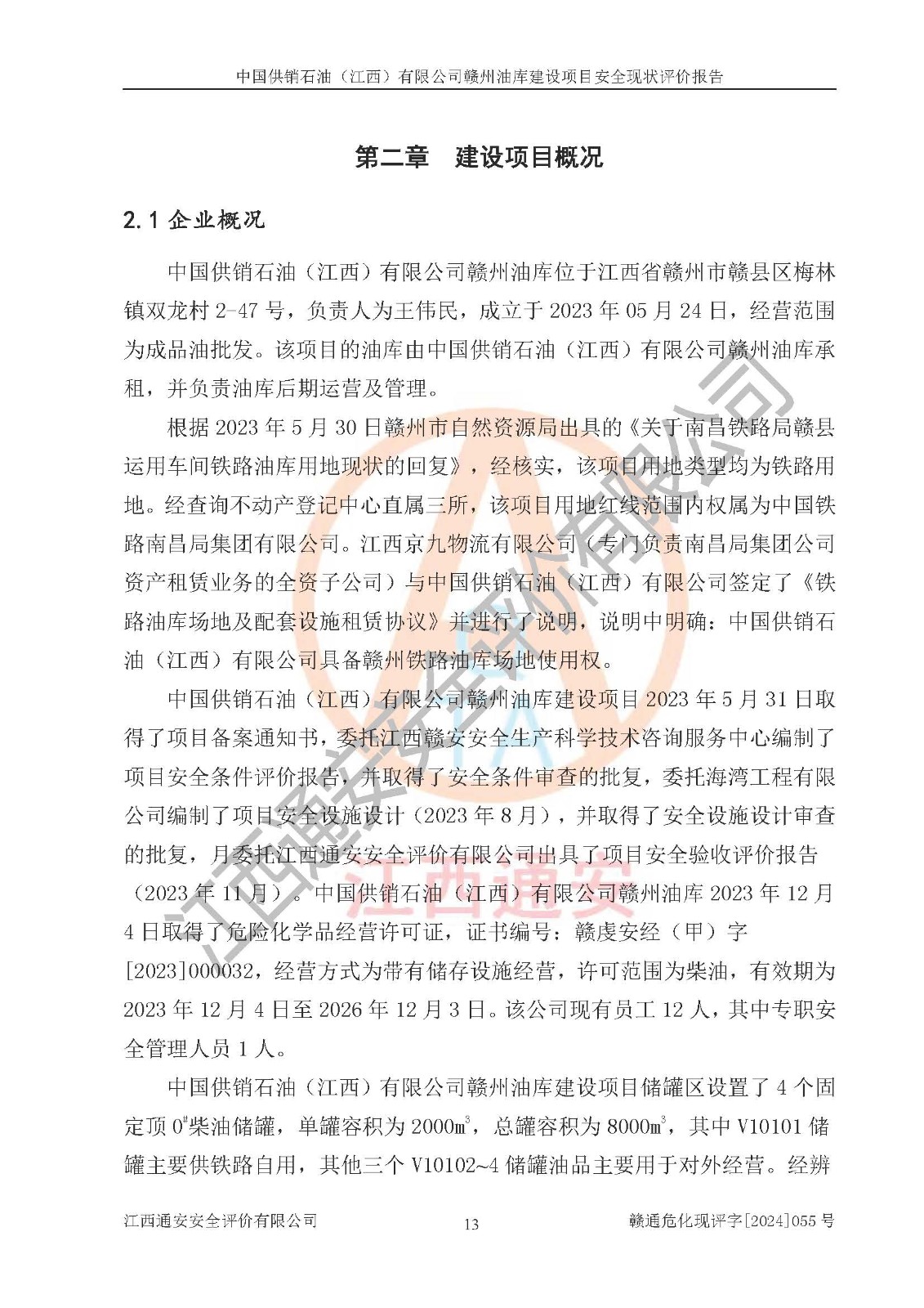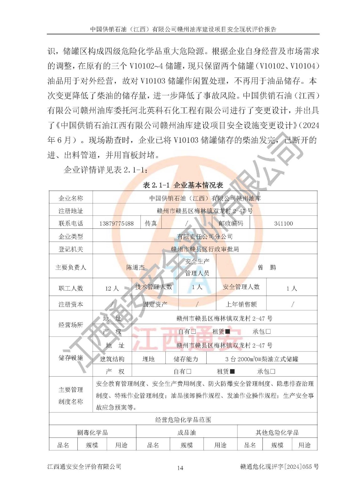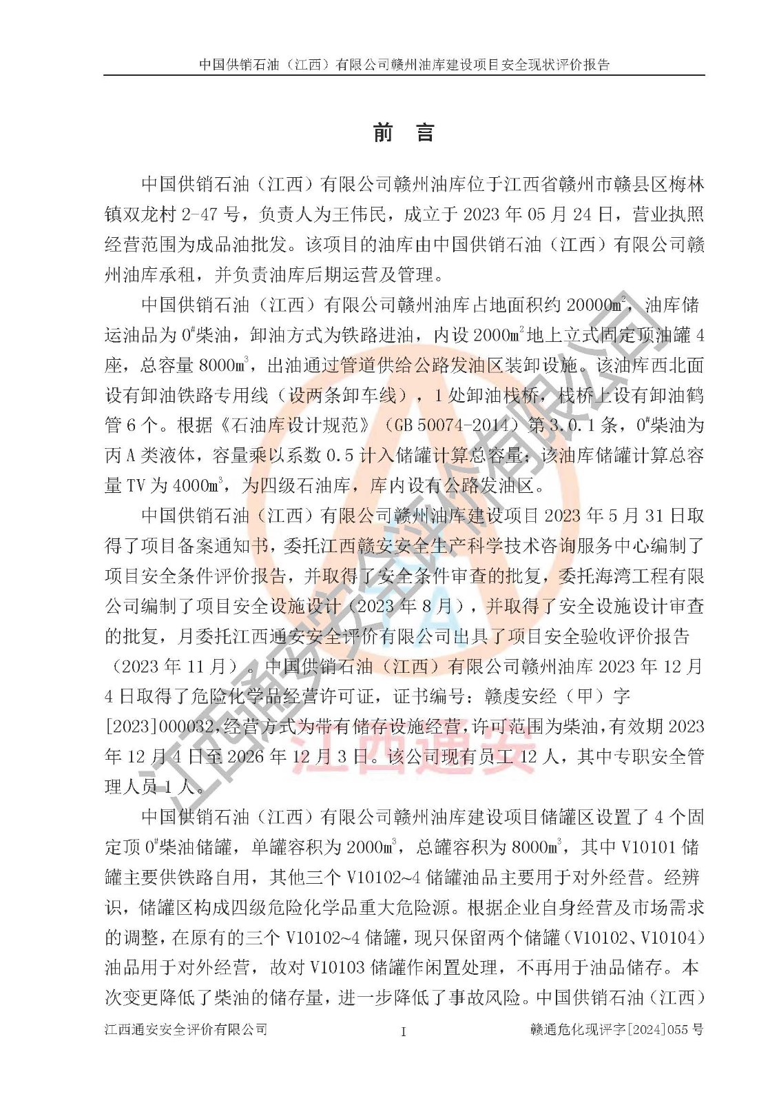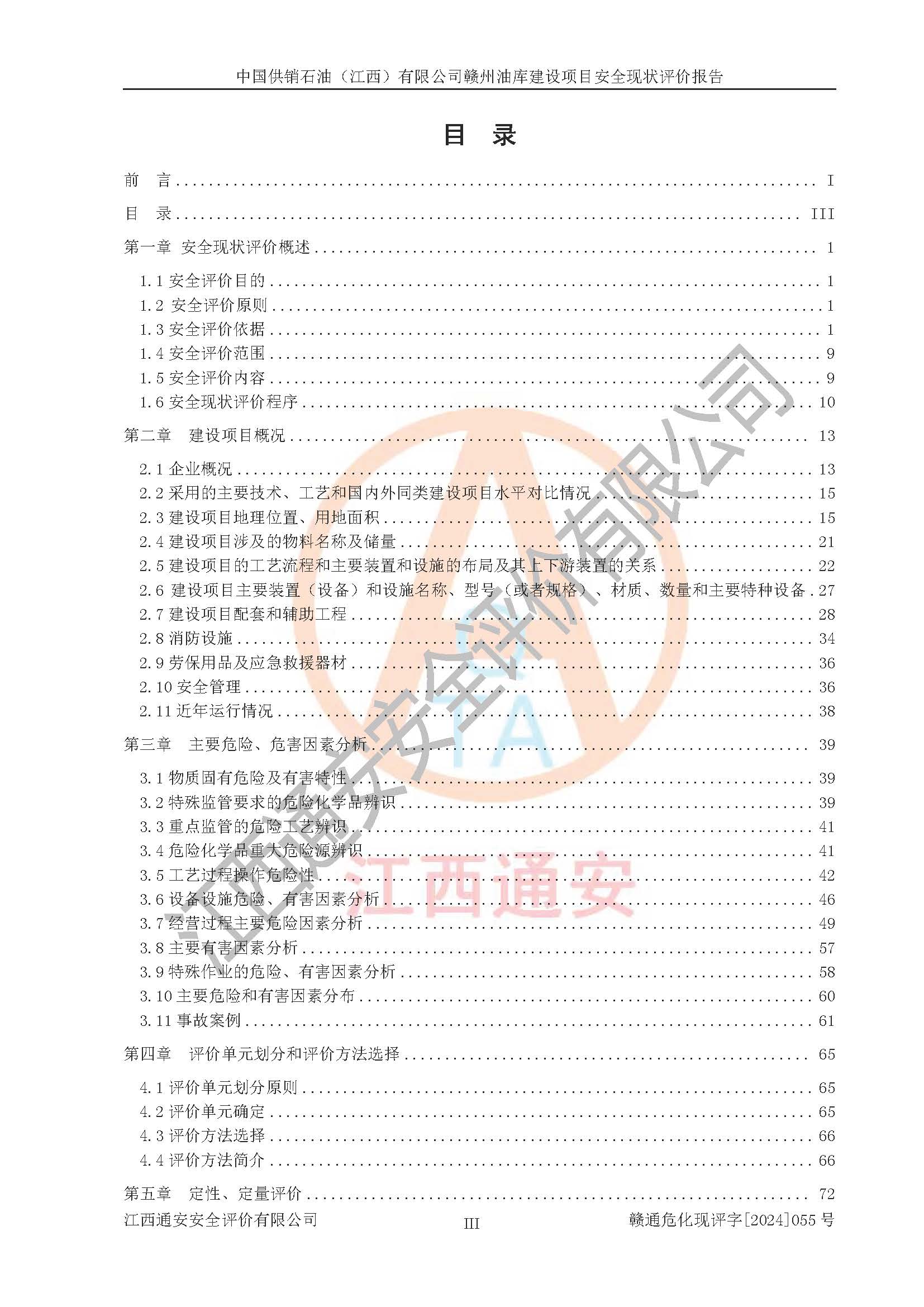 評價報告名稱 | 中國供銷石油(江西)有限公司贛州油庫建設項目安全現(xiàn)狀評價報告 | ||||||