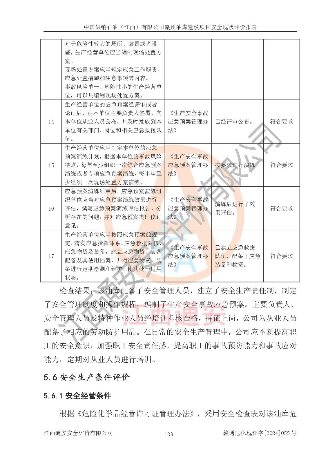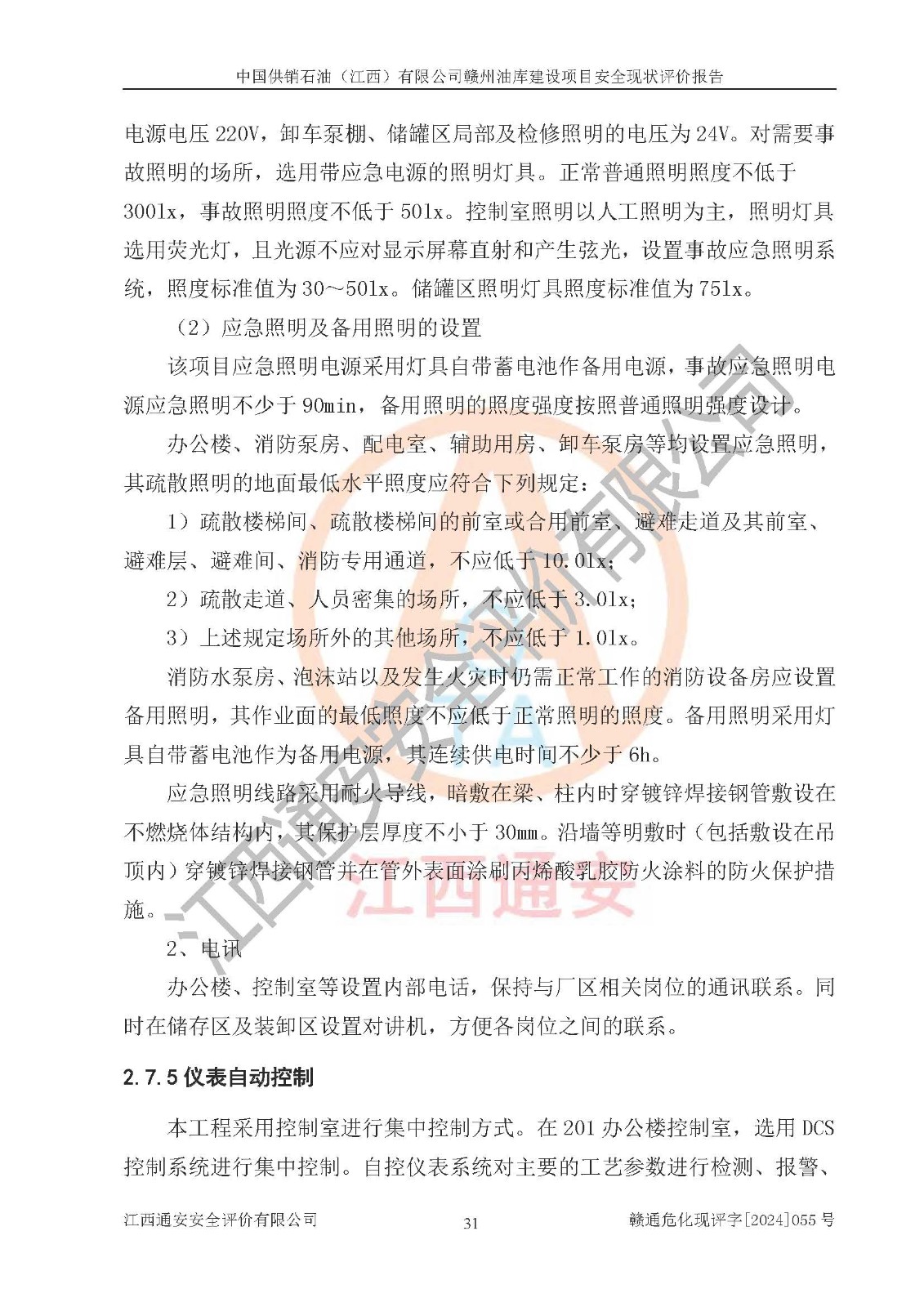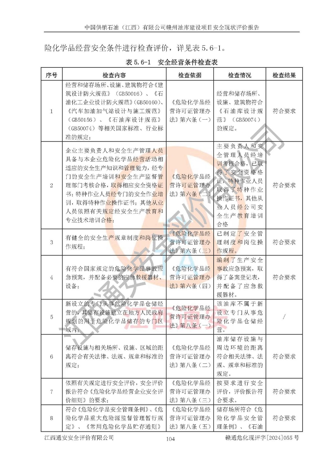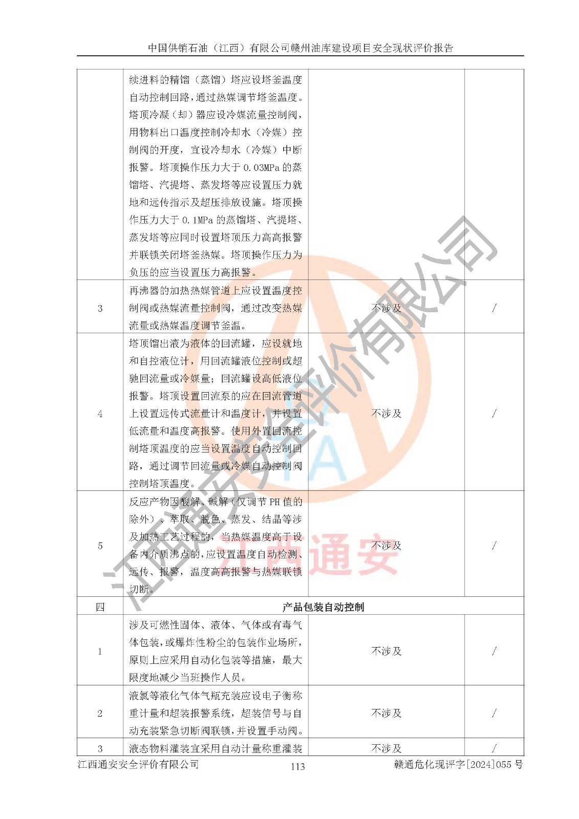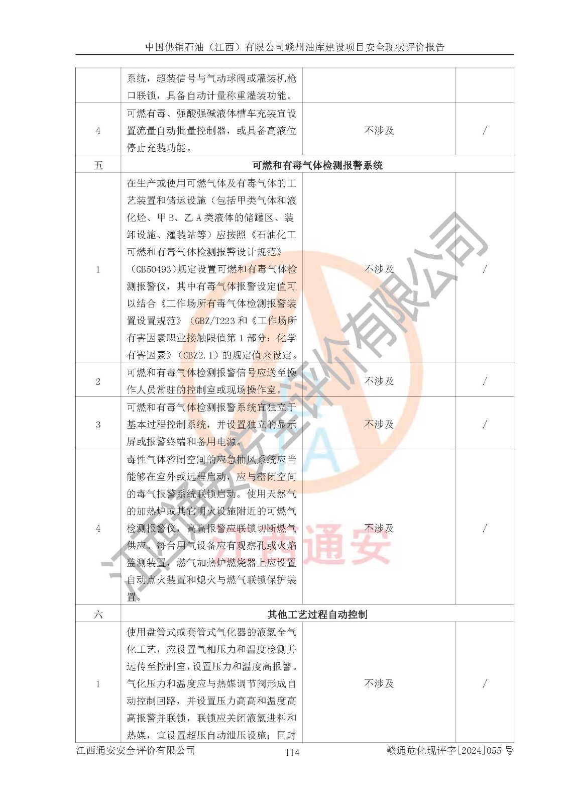 評價結(jié)論 | 中國供銷石油(江西)有限公司贛州油庫建設項目現(xiàn)場情況與變更設計圖紙一致,DCS系統(tǒng)設計符合要求、運行正常,安全設施及安全管理符合法律、法規(guī)、標準的要求,安全風險是受控制的,其風險程度是可以接受的,安全設施符合安全經(jīng)營條件,能夠滿足安全經(jīng)營的要求。 | ||||||