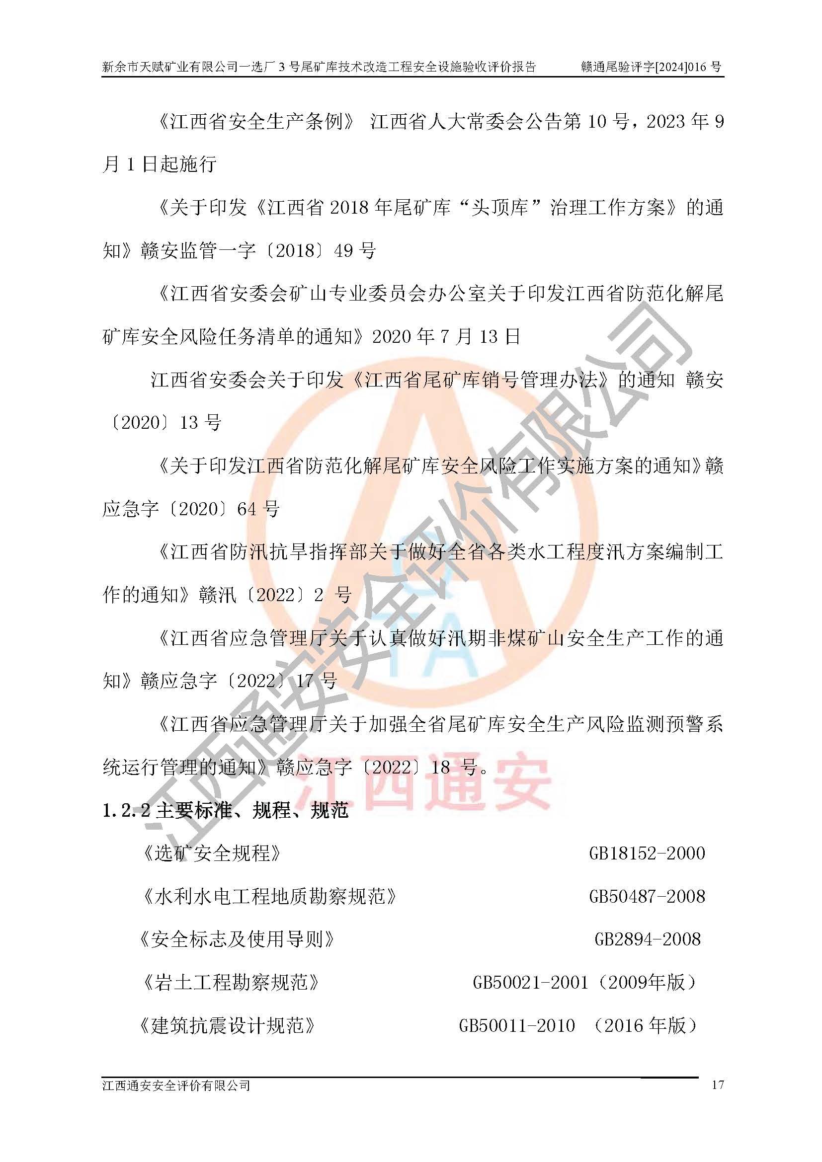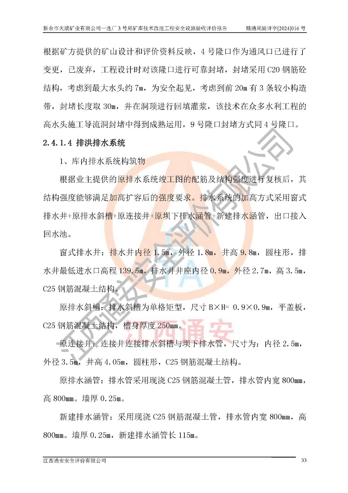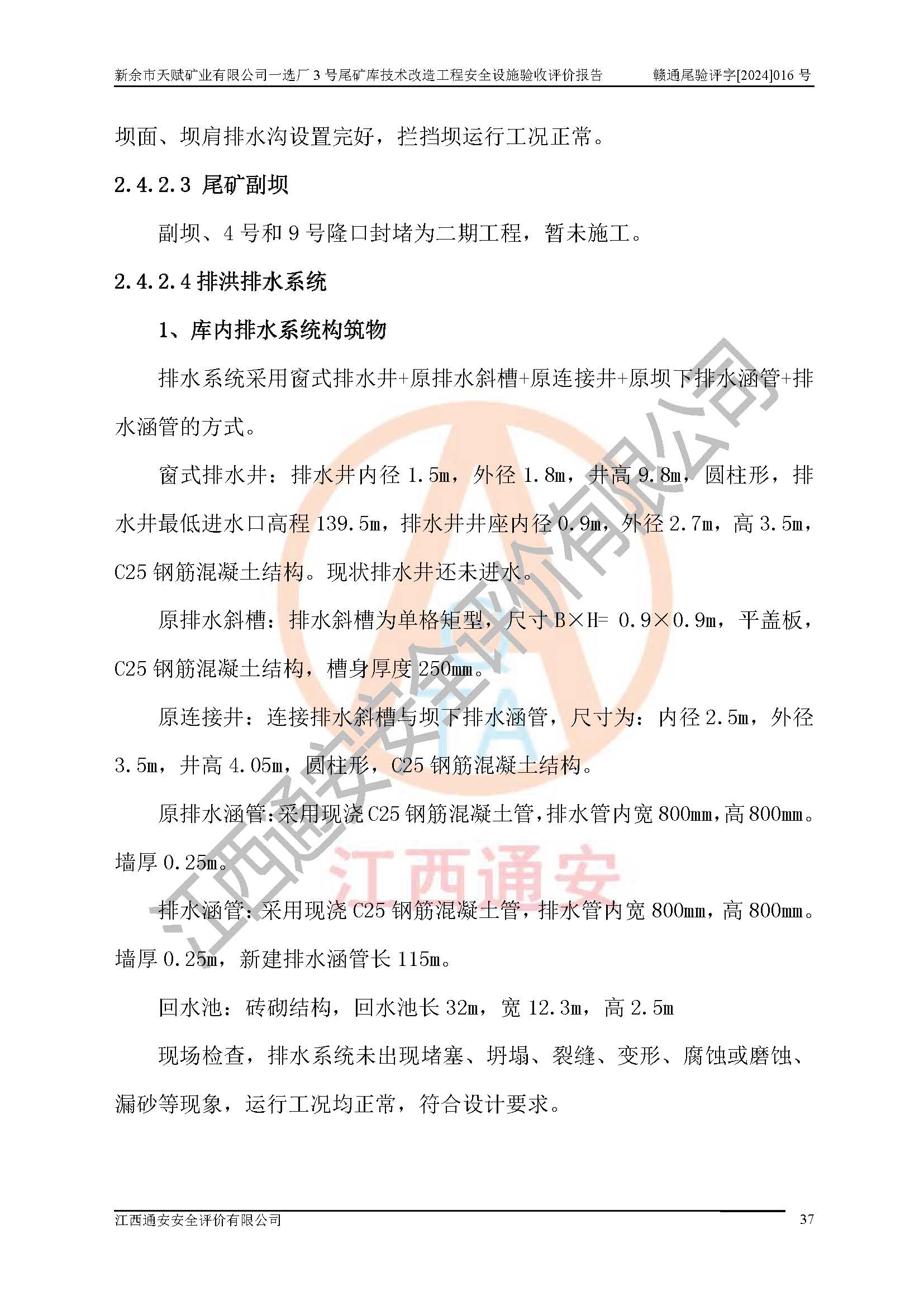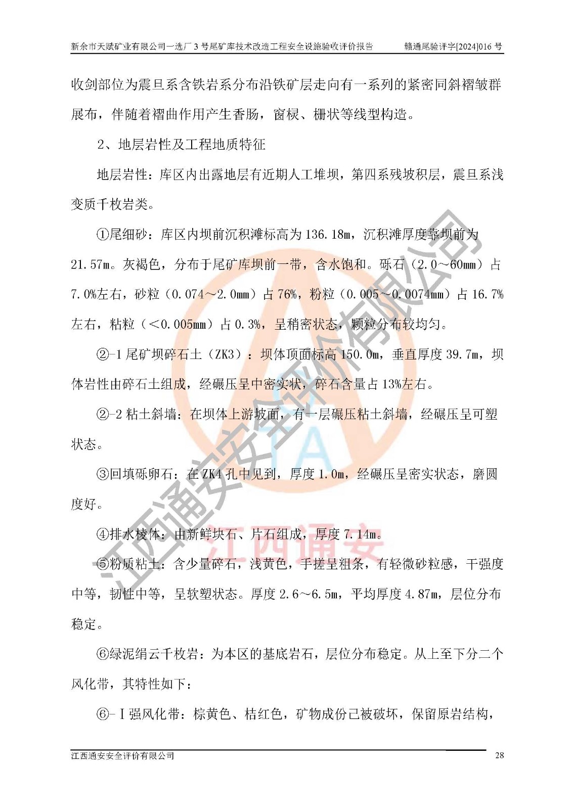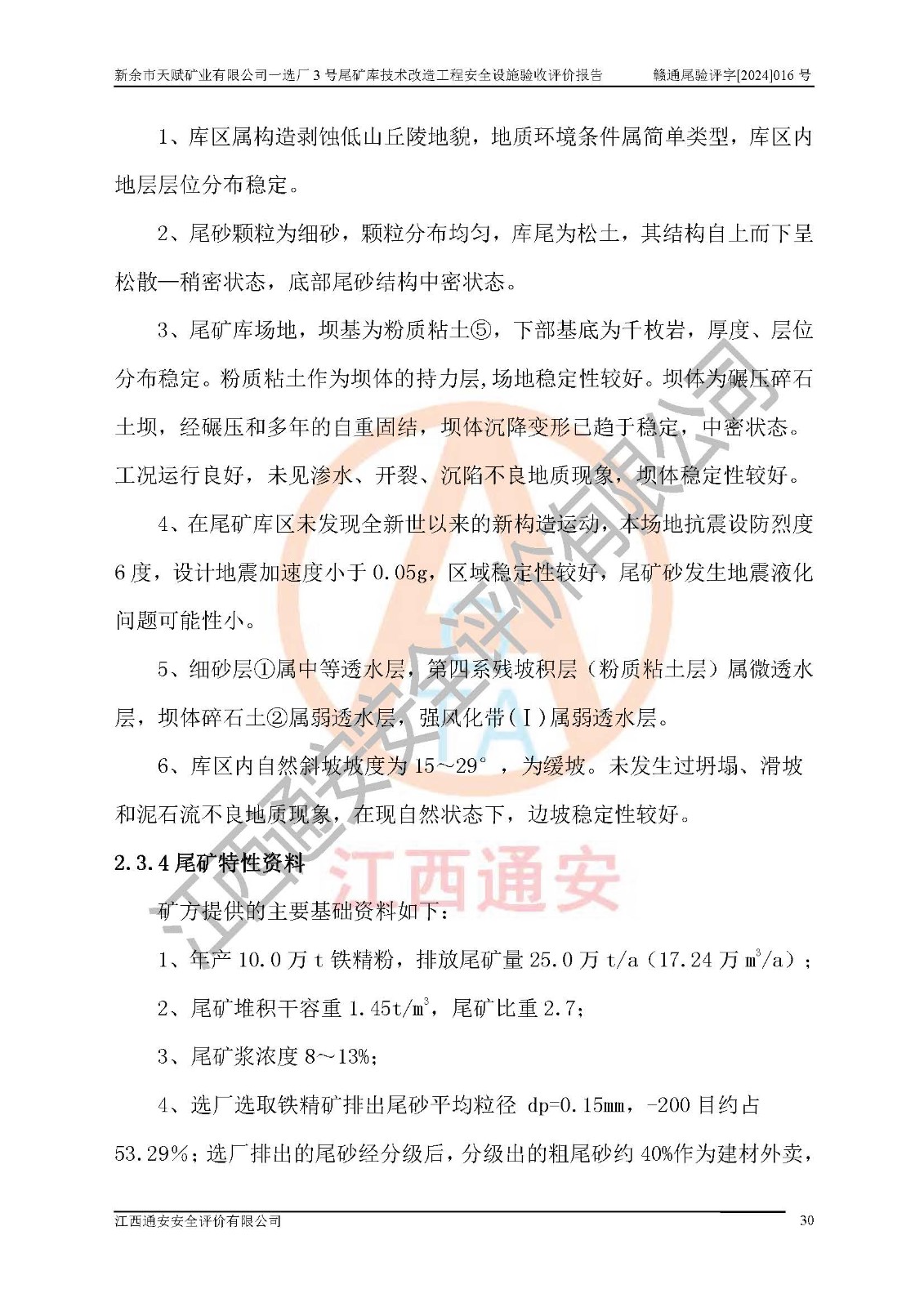 新余市天賦礦業(yè)有限公司一選廠3號尾礦庫位于江西省分宜縣鈐山鎮(zhèn)境內(nèi),屬鈐山鎮(zhèn)管轄,有鄉(xiāng)村公路相通,交通較為方便。3號尾礦庫壩頂中心點地理坐標(biāo)為:X=3058292,Y=38566139。 2008年6月,邯鄲華北冶建工程設(shè)計有限公司完成了3號尾礦庫初步設(shè)計,該尾礦庫為五等庫,尾礦壩壩型為攔擋壩,一次型機(jī)械碾壓土石壩,排洪系統(tǒng)為溢洪道,排水系統(tǒng)為排水斜槽+排水管+消力池。2010年7月原江西省安全生產(chǎn)監(jiān)督管理局組織專家對該尾礦庫進(jìn)行竣工驗收,對驗收過程中發(fā)現(xiàn)的問題,建設(shè)單位積極整改,整改完成后通過了竣工驗收,并取得了安全生產(chǎn)許可證。為了礦山的可持續(xù)性發(fā)展,2012年委托金建工程設(shè)計有限公司對3號尾礦庫進(jìn)行加高擴(kuò)容設(shè)計,2013年2月,金建工程設(shè)計有限公司完成了該尾礦庫加高擴(kuò)容可行性研究報告,2014年2月,原江西省安全生產(chǎn)監(jiān)督管理局組織專家對金建工程設(shè)計有限公司編制的3號尾礦庫加高擴(kuò)容安全專篇進(jìn)行評審,2014年6月原江西省安全生產(chǎn)監(jiān)督管理局以贛安監(jiān)非煤項目設(shè)審〔2014〕30號對3號尾礦庫加高擴(kuò)容安全專篇進(jìn)行批復(fù),3號尾礦庫加高擴(kuò)容工程分二期實施,一期工程由江西南方礦山建設(shè)有限公司進(jìn)行施工,江西省新大地建設(shè)監(jiān)理有限公司進(jìn)行監(jiān)理,該工程(一期工程)已于2018年8月底完工,2021年3月完成一期工程竣工驗收,2021年8月19日取得了江西省應(yīng)急管理廳下發(fā)的尾礦庫安全生產(chǎn)許可證(證號:(贛)FM 安許證字[2021]M1790 號),安全生產(chǎn)許可證**期為2021年8月19日至2024年8月18 日。 由于選廠對尾砂進(jìn)行分級,粗尾砂外賣,細(xì)粒尾砂排入尾礦庫,因入庫尾砂粒度變細(xì),尾砂灘面坡度較緩,造成壩前干灘長度不滿足設(shè)計要求,2022年6月,分宜縣應(yīng)急管理局在對尾礦庫進(jìn)行檢查時,發(fā)現(xiàn)了上述問題(詳見附件安全生產(chǎn)行政執(zhí)法文書),為了解決上述問題,使尾礦庫運行滿足設(shè)計要求,因此需要對3號尾礦庫進(jìn)行技術(shù)改造。 2022年12月金建工程設(shè)計有限公司出具了《新余市天賦礦業(yè)有限公司一選廠3號尾礦庫技術(shù)改造工程安全設(shè)施設(shè)計》,并于2023年1月12日取得《江西省應(yīng)急管理廳關(guān)于新余市天賦礦業(yè)有限公司一選廠3號尾礦庫技術(shù)改造工程安全設(shè)施設(shè)計審查的批復(fù)》(贛應(yīng)急非煤項目設(shè)審[2023]2號)。因新余市天賦礦業(yè)有限公司綠色礦山建設(shè)原因選礦廠一直半停產(chǎn)狀態(tài),導(dǎo)致尾礦庫技術(shù)改造工程未能完成建設(shè)并沒有及時驗收,現(xiàn)已完成了尾礦庫技術(shù)改造工程施工建設(shè)工作,尾礦庫技術(shù)改造工程2024年8月21日已完工,現(xiàn)進(jìn)入驗收程序。 |