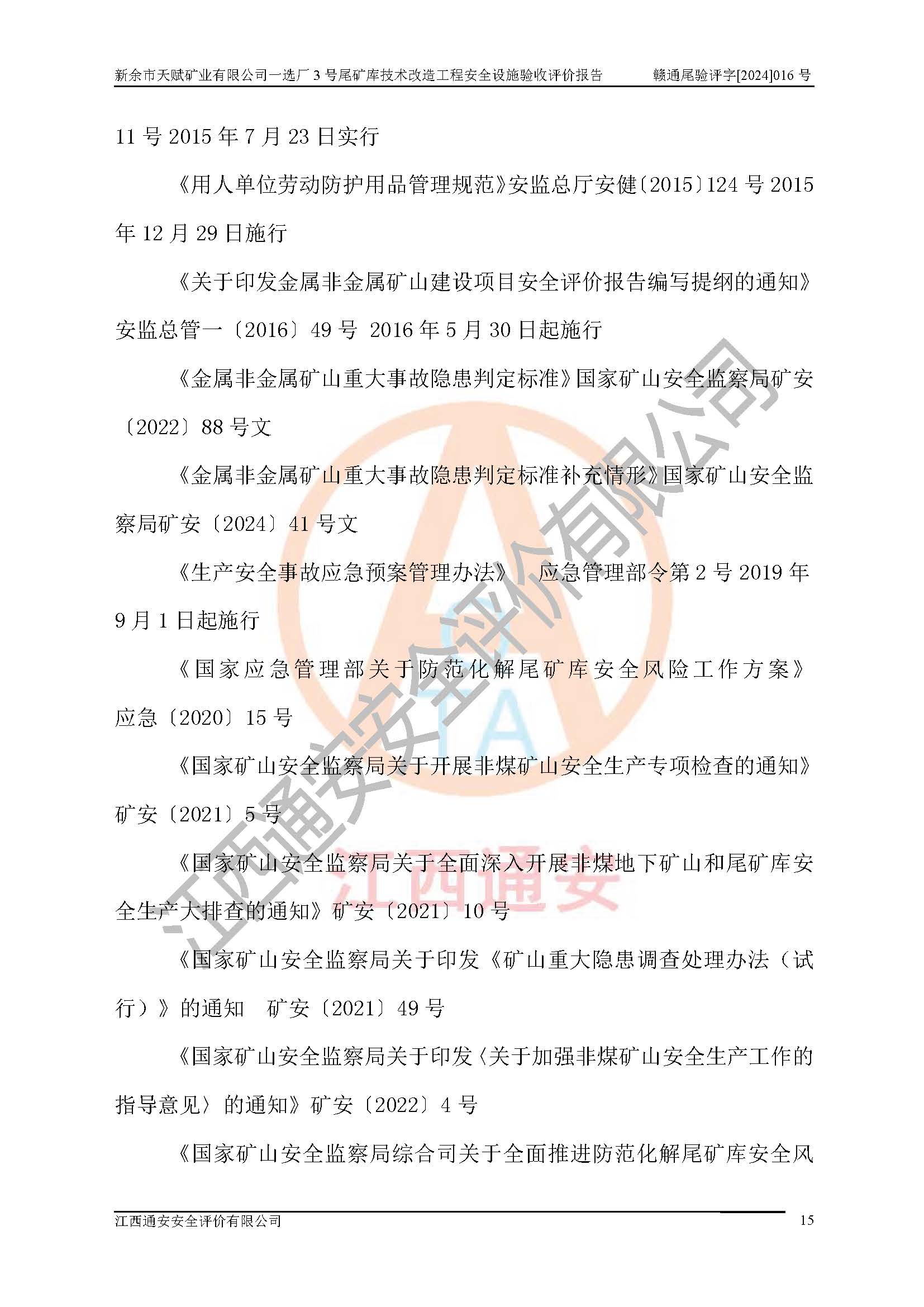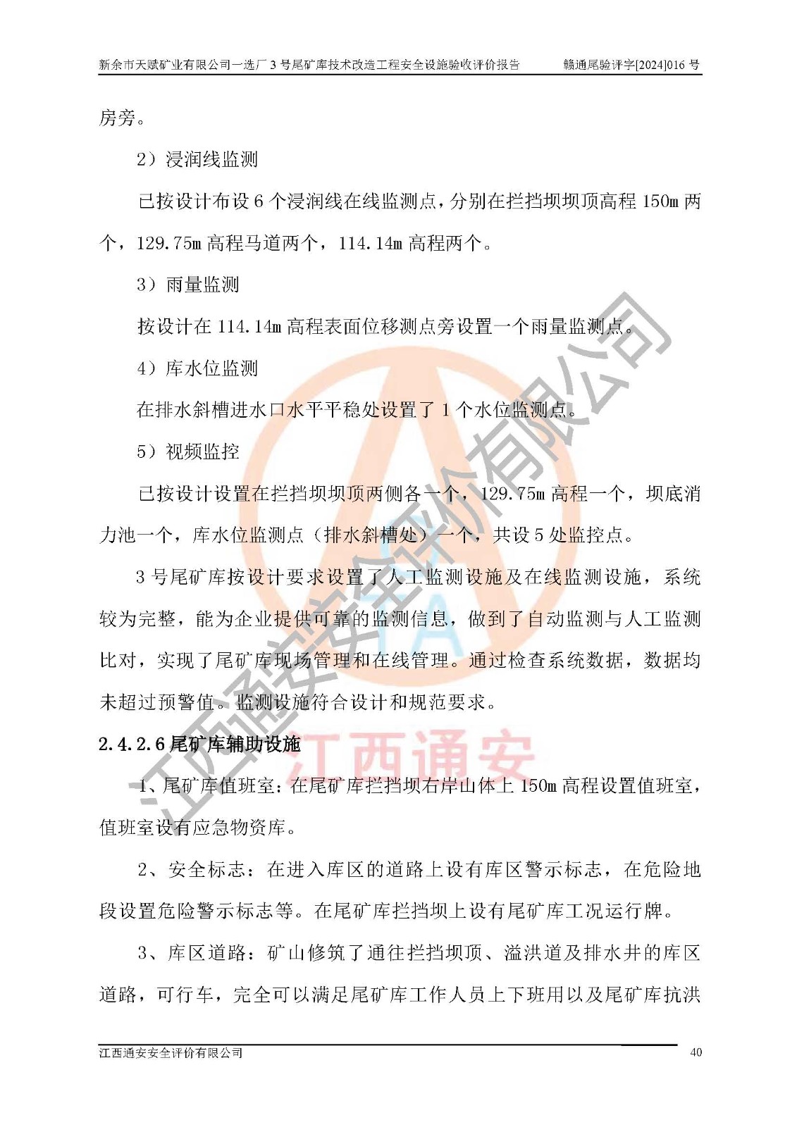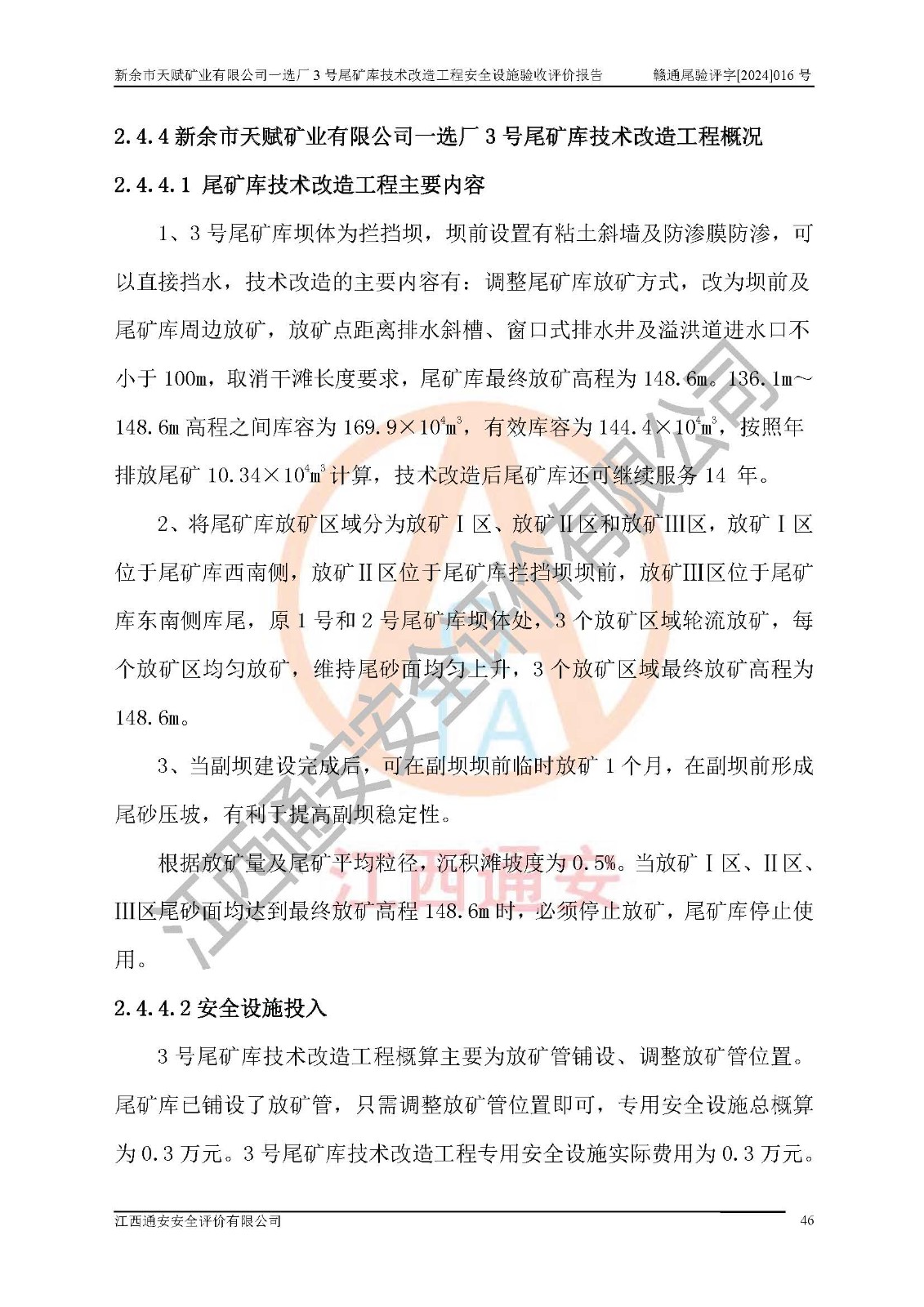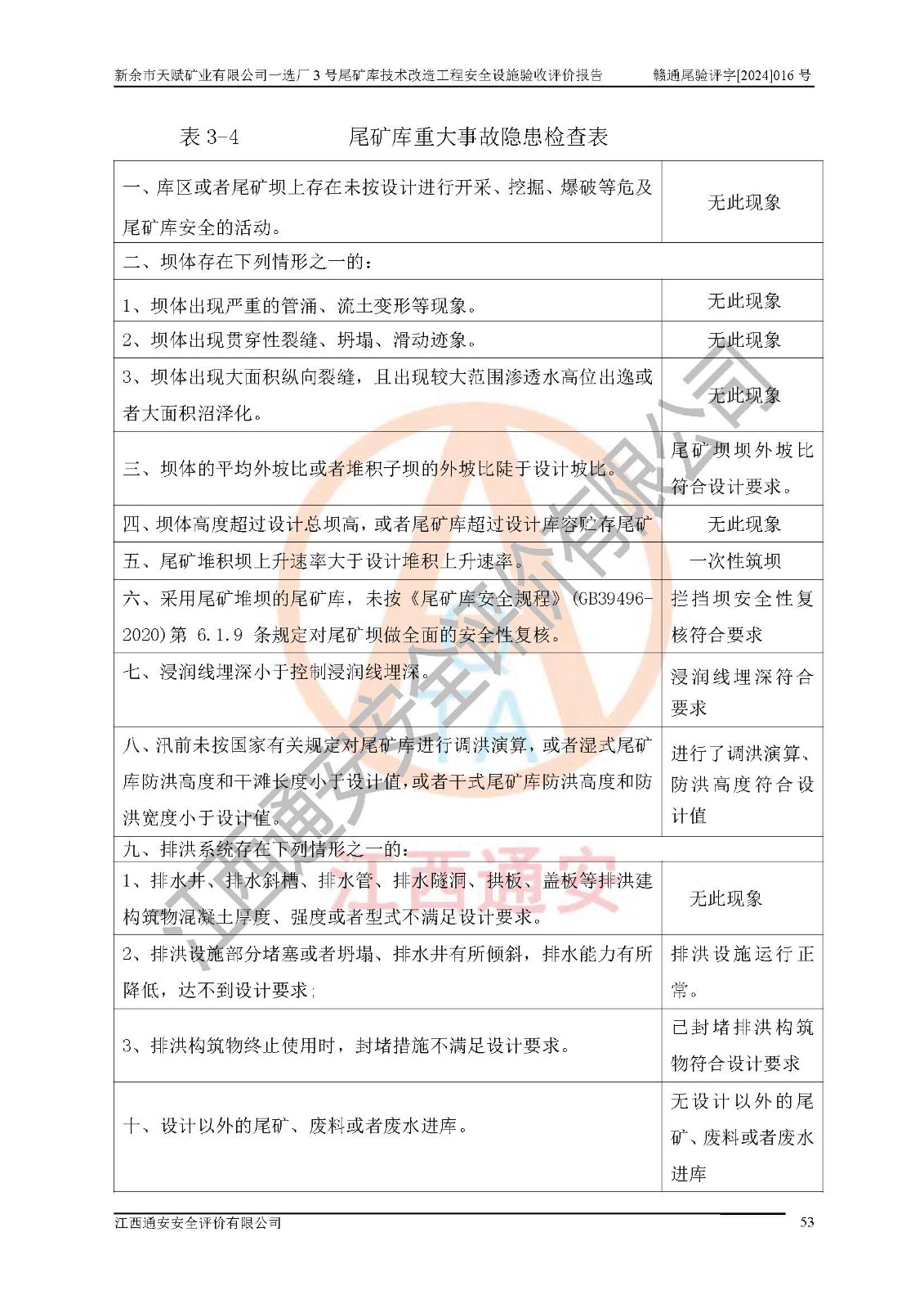 新余市天賦礦業(yè)有限公司一選廠3號尾礦庫位于江西省分宜縣鈐山鎮(zhèn)境內(nèi),屬鈐山鎮(zhèn)管轄,有鄉(xiāng)村公路相通,交通較為方便。3號尾礦庫壩頂中心點地理坐標(biāo)為:X=3058292,Y=38566139。 2008年6月,邯鄲華北冶建工程設(shè)計有限公司完成了3號尾礦庫初步設(shè)計,該尾礦庫為五等庫,尾礦壩壩型為攔擋壩,一次型機(jī)械碾壓土石壩,排洪系統(tǒng)為溢洪道,排水系統(tǒng)為排水斜槽+排水管+消力池。2010年7月原江西省安全生產(chǎn)監(jiān)督管理局組織專家對該尾礦庫進(jìn)行竣工驗收,對驗收過程中發(fā)現(xiàn)的問題,建設(shè)單位積極整改,整改完成后通過了竣工驗收,并取得了安全生產(chǎn)許可證。為了礦山的可持續(xù)性發(fā)展,2012年委托金建工程設(shè)計有限公司對3號尾礦庫進(jìn)行加高擴(kuò)容設(shè)計,2013年2月,金建工程設(shè)計有限公司完成了該尾礦庫加高擴(kuò)容可行性研究報告,2014年2月,原江西省安全生產(chǎn)監(jiān)督管理局組織專家對金建工程設(shè)計有限公司編制的3號尾礦庫加高擴(kuò)容安全專篇進(jìn)行評審,2014年6月原江西省安全生產(chǎn)監(jiān)督管理局以贛安監(jiān)非煤項目設(shè)審〔2014〕30號對3號尾礦庫加高擴(kuò)容安全專篇進(jìn)行批復(fù),3號尾礦庫加高擴(kuò)容工程分二期實施,一期工程由江西南方礦山建設(shè)有限公司進(jìn)行施工,江西省新大地建設(shè)監(jiān)理有限公司進(jìn)行監(jiān)理,該工程(一期工程)已于2018年8月底完工,2021年3月完成一期工程竣工驗收,2021年8月19日取得了江西省應(yīng)急管理廳下發(fā)的尾礦庫安全生產(chǎn)許可證(證號:(贛)FM 安許證字[2021]M1790 號),安全生產(chǎn)許可證**期為2021年8月19日至2024年8月18 日。 由于選廠對尾砂進(jìn)行分級,粗尾砂外賣,細(xì)粒尾砂排入尾礦庫,因入庫尾砂粒度變細(xì),尾砂灘面坡度較緩,造成壩前干灘長度不滿足設(shè)計要求,2022年6月,分宜縣應(yīng)急管理局在對尾礦庫進(jìn)行檢查時,發(fā)現(xiàn)了上述問題(詳見附件安全生產(chǎn)行政執(zhí)法文書),為了解決上述問題,使尾礦庫運行滿足設(shè)計要求,因此需要對3號尾礦庫進(jìn)行技術(shù)改造。 2022年12月金建工程設(shè)計有限公司出具了《新余市天賦礦業(yè)有限公司一選廠3號尾礦庫技術(shù)改造工程安全設(shè)施設(shè)計》,并于2023年1月12日取得《江西省應(yīng)急管理廳關(guān)于新余市天賦礦業(yè)有限公司一選廠3號尾礦庫技術(shù)改造工程安全設(shè)施設(shè)計審查的批復(fù)》(贛應(yīng)急非煤項目設(shè)審[2023]2號)。因新余市天賦礦業(yè)有限公司綠色礦山建設(shè)原因選礦廠一直半停產(chǎn)狀態(tài),導(dǎo)致尾礦庫技術(shù)改造工程未能完成建設(shè)并沒有及時驗收,現(xiàn)已完成了尾礦庫技術(shù)改造工程施工建設(shè)工作,尾礦庫技術(shù)改造工程2024年8月21日已完工,現(xiàn)進(jìn)入驗收程序。 |