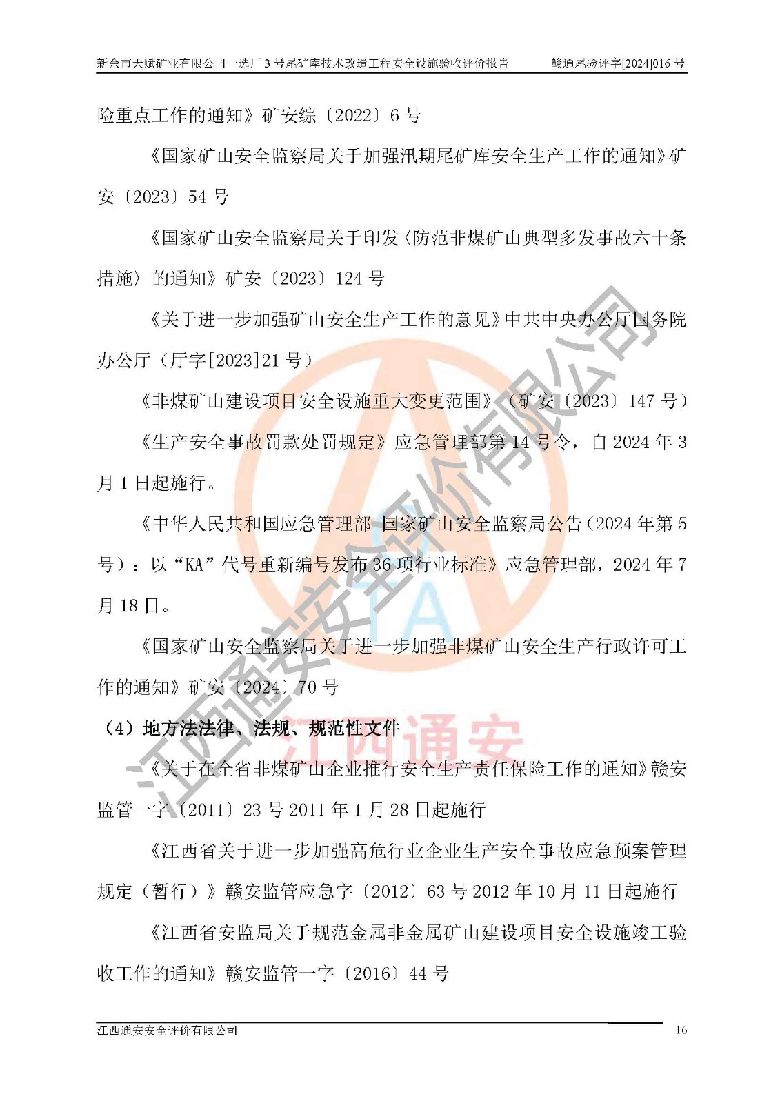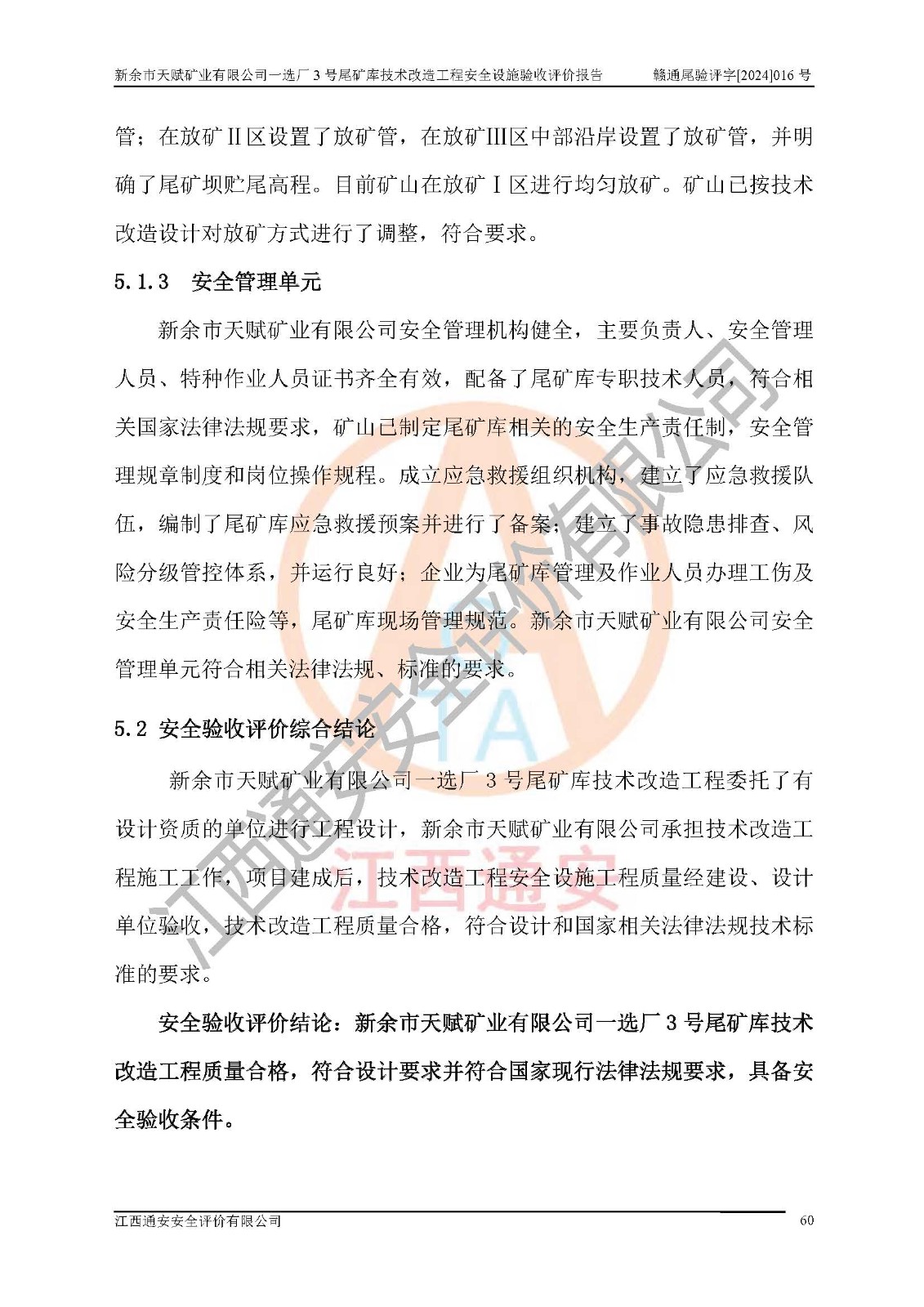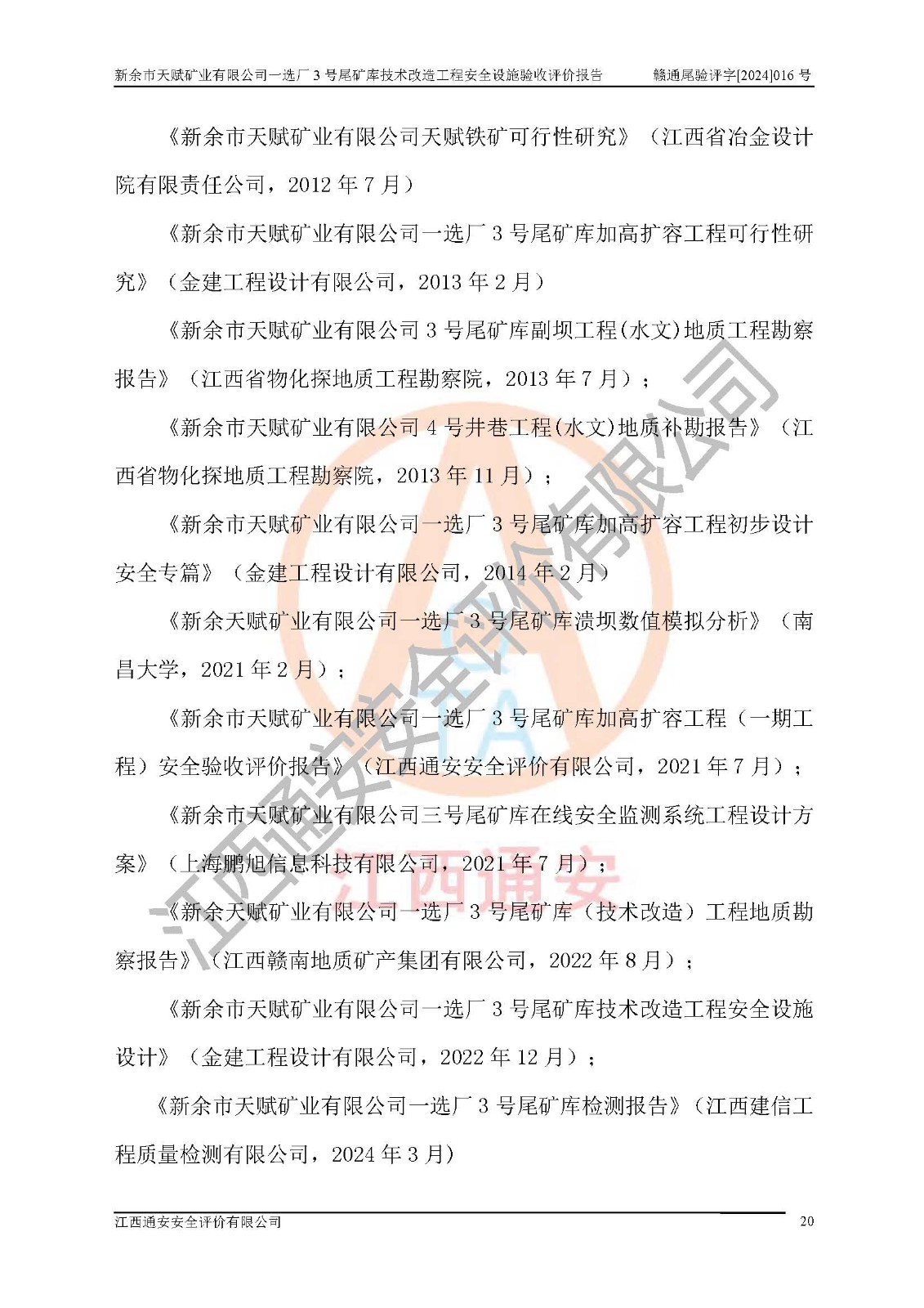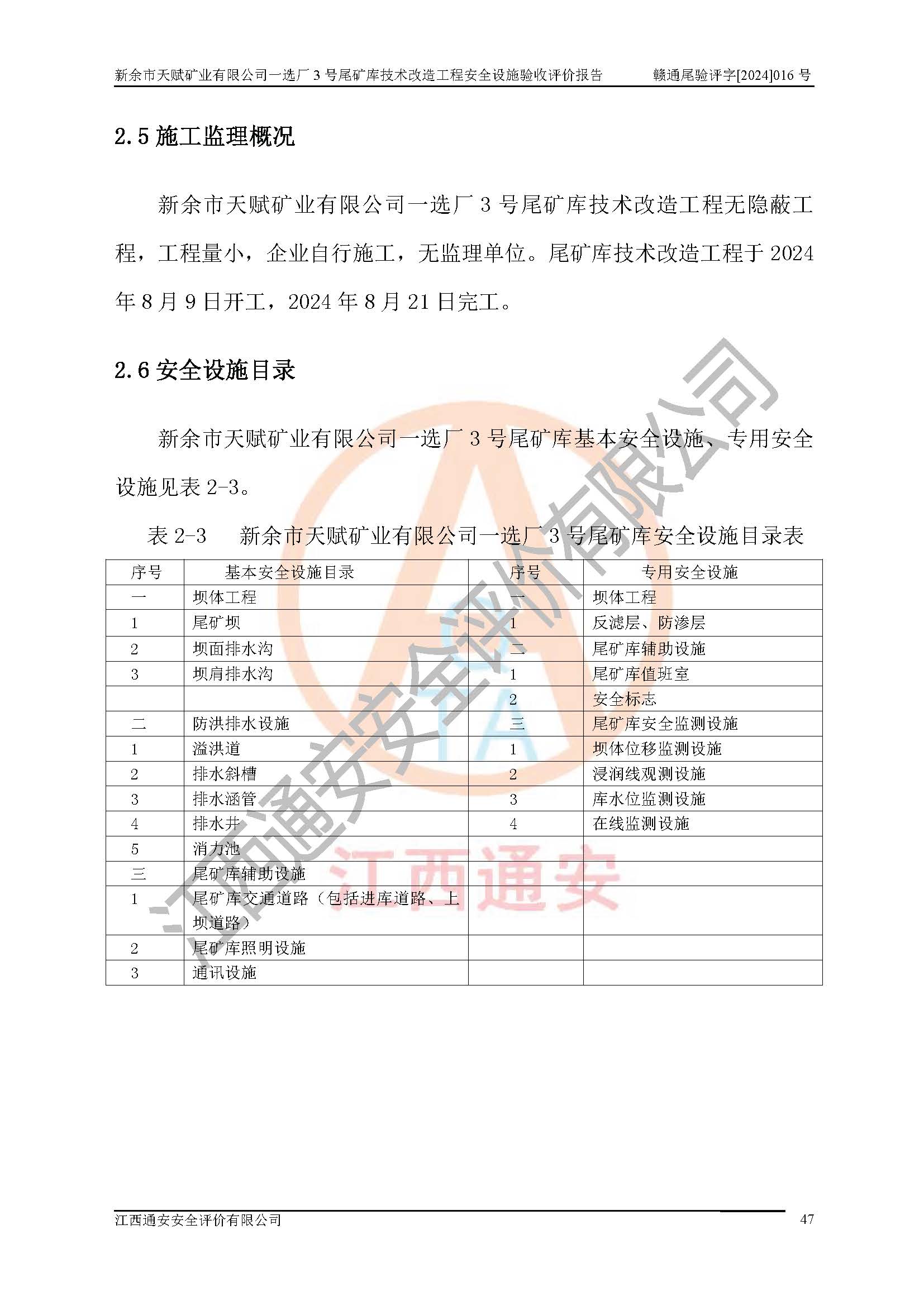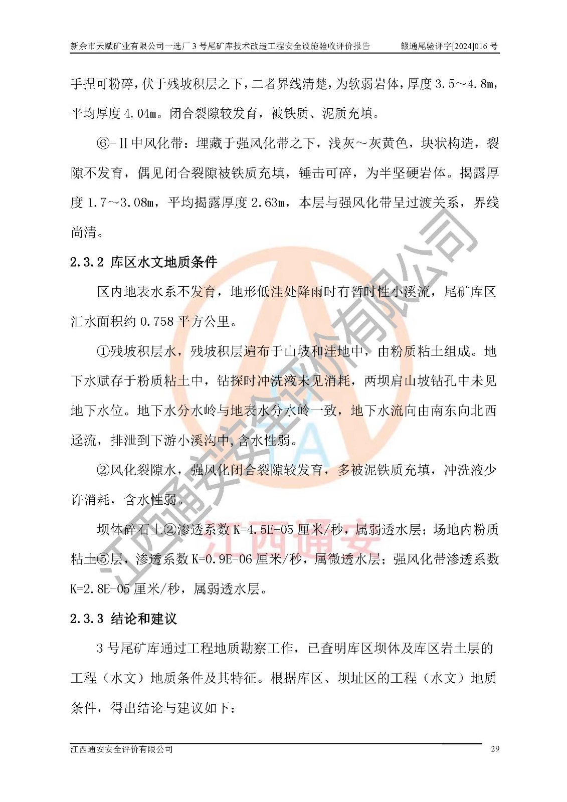 新余市天賦礦業(yè)有限公司一選廠3號尾礦庫位于江西省分宜縣鈐山鎮(zhèn)境內(nèi),屬鈐山鎮(zhèn)管轄,有鄉(xiāng)村公路相通,交通較為方便。3號尾礦庫壩頂中心點地理坐標(biāo)為:X=3058292,Y=38566139。 2008年6月,邯鄲華北冶建工程設(shè)計有限公司完成了3號尾礦庫初步設(shè)計,該尾礦庫為五等庫,尾礦壩壩型為攔擋壩,一次型機(jī)械碾壓土石壩,排洪系統(tǒng)為溢洪道,排水系統(tǒng)為排水斜槽+排水管+消力池。2010年7月原江西省安全生產(chǎn)監(jiān)督管理局組織專家對該尾礦庫進(jìn)行竣工驗收,對驗收過程中發(fā)現(xiàn)的問題,建設(shè)單位積極整改,整改完成后通過了竣工驗收,并取得了安全生產(chǎn)許可證。為了礦山的可持續(xù)性發(fā)展,2012年委托金建工程設(shè)計有限公司對3號尾礦庫進(jìn)行加高擴(kuò)容設(shè)計,2013年2月,金建工程設(shè)計有限公司完成了該尾礦庫加高擴(kuò)容可行性研究報告,2014年2月,原江西省安全生產(chǎn)監(jiān)督管理局組織專家對金建工程設(shè)計有限公司編制的3號尾礦庫加高擴(kuò)容安全專篇進(jìn)行評審,2014年6月原江西省安全生產(chǎn)監(jiān)督管理局以贛安監(jiān)非煤項目設(shè)審〔2014〕30號對3號尾礦庫加高擴(kuò)容安全專篇進(jìn)行批復(fù),3號尾礦庫加高擴(kuò)容工程分二期實施,一期工程由江西南方礦山建設(shè)有限公司進(jìn)行施工,江西省新大地建設(shè)監(jiān)理有限公司進(jìn)行監(jiān)理,該工程(一期工程)已于2018年8月底完工,2021年3月完成一期工程竣工驗收,2021年8月19日取得了江西省應(yīng)急管理廳下發(fā)的尾礦庫安全生產(chǎn)許可證(證號:(贛)FM 安許證字[2021]M1790 號),安全生產(chǎn)許可證**期為2021年8月19日至2024年8月18 日。 由于選廠對尾砂進(jìn)行分級,粗尾砂外賣,細(xì)粒尾砂排入尾礦庫,因入庫尾砂粒度變細(xì),尾砂灘面坡度較緩,造成壩前干灘長度不滿足設(shè)計要求,2022年6月,分宜縣應(yīng)急管理局在對尾礦庫進(jìn)行檢查時,發(fā)現(xiàn)了上述問題(詳見附件安全生產(chǎn)行政執(zhí)法文書),為了解決上述問題,使尾礦庫運行滿足設(shè)計要求,因此需要對3號尾礦庫進(jìn)行技術(shù)改造。 2022年12月金建工程設(shè)計有限公司出具了《新余市天賦礦業(yè)有限公司一選廠3號尾礦庫技術(shù)改造工程安全設(shè)施設(shè)計》,并于2023年1月12日取得《江西省應(yīng)急管理廳關(guān)于新余市天賦礦業(yè)有限公司一選廠3號尾礦庫技術(shù)改造工程安全設(shè)施設(shè)計審查的批復(fù)》(贛應(yīng)急非煤項目設(shè)審[2023]2號)。因新余市天賦礦業(yè)有限公司綠色礦山建設(shè)原因選礦廠一直半停產(chǎn)狀態(tài),導(dǎo)致尾礦庫技術(shù)改造工程未能完成建設(shè)并沒有及時驗收,現(xiàn)已完成了尾礦庫技術(shù)改造工程施工建設(shè)工作,尾礦庫技術(shù)改造工程2024年8月21日已完工,現(xiàn)進(jìn)入驗收程序。 |