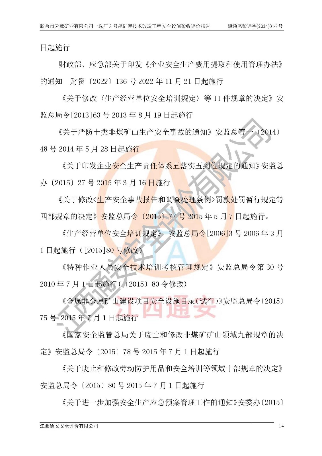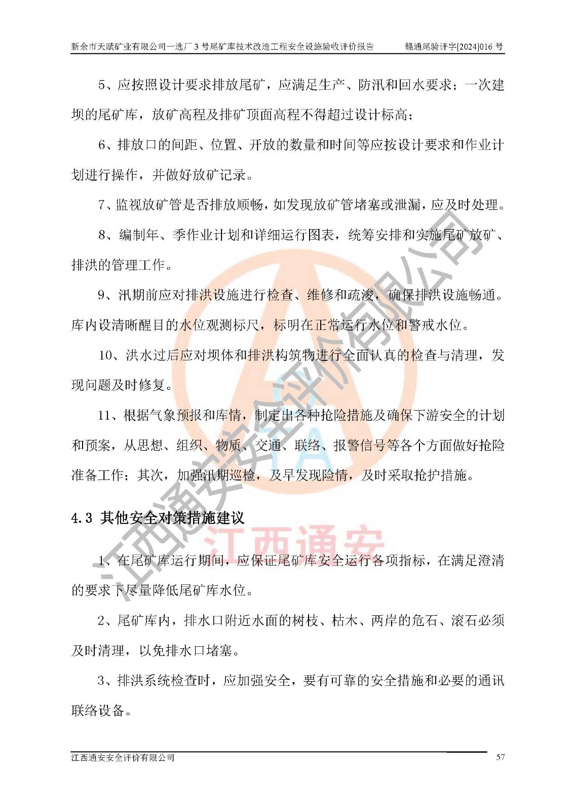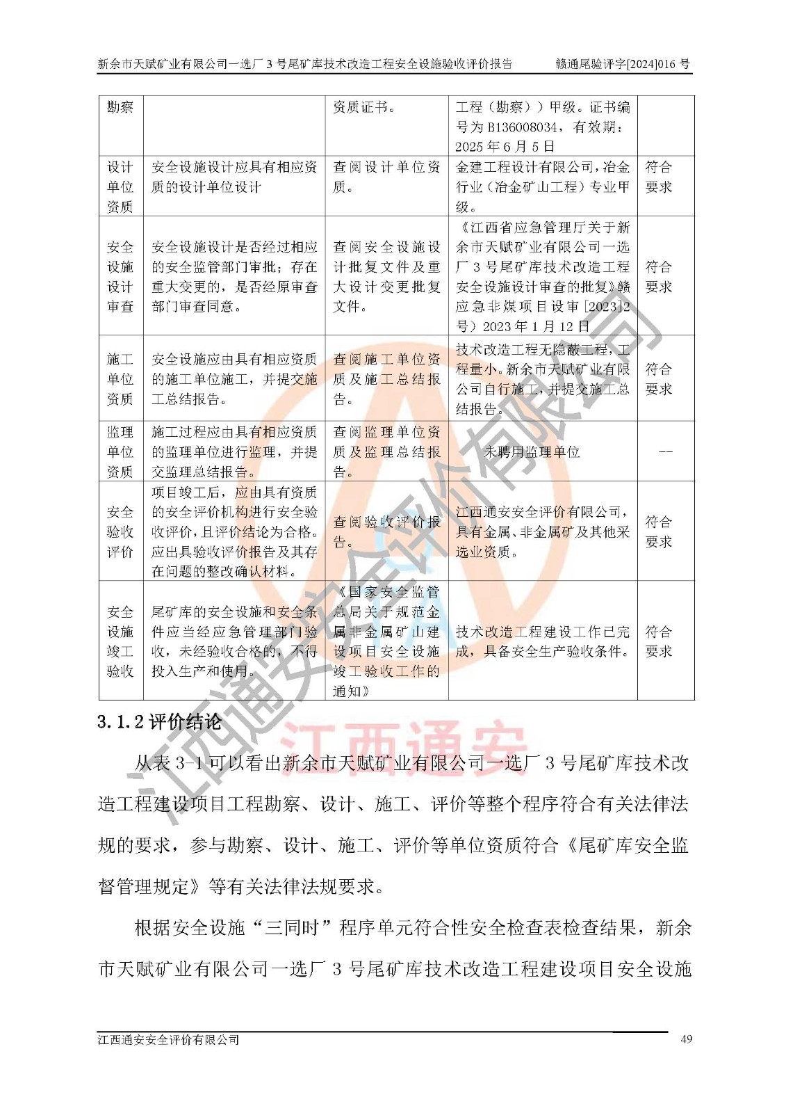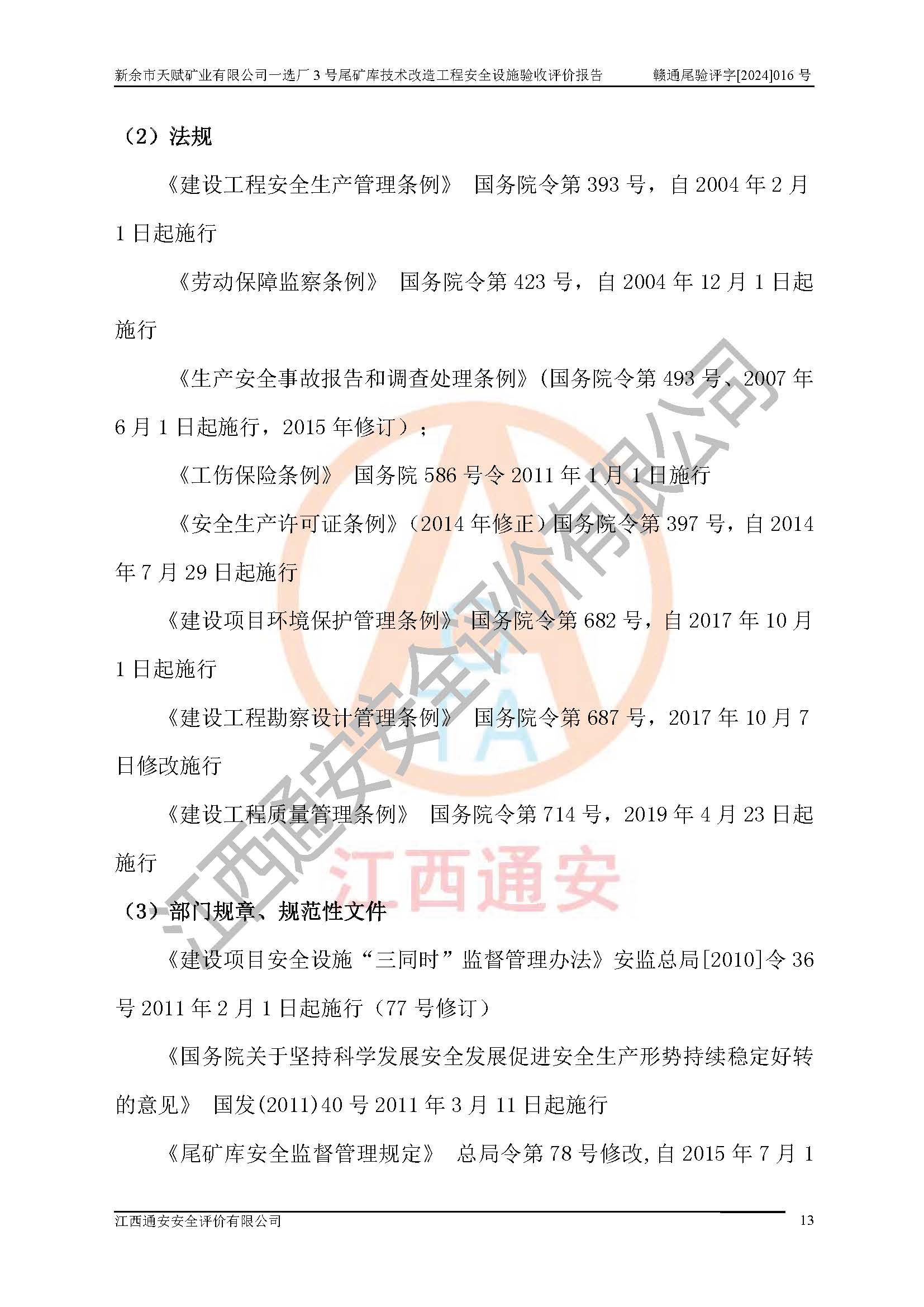 新余市天賦礦業(yè)有限公司一選廠3號尾礦庫位于江西省分宜縣鈐山鎮(zhèn)境內(nèi),屬鈐山鎮(zhèn)管轄,有鄉(xiāng)村公路相通,交通較為方便。3號尾礦庫壩頂中心點地理坐標(biāo)為:X=3058292,Y=38566139。 2008年6月,邯鄲華北冶建工程設(shè)計有限公司完成了3號尾礦庫初步設(shè)計,該尾礦庫為五等庫,尾礦壩壩型為攔擋壩,一次型機(jī)械碾壓土石壩,排洪系統(tǒng)為溢洪道,排水系統(tǒng)為排水斜槽+排水管+消力池。2010年7月原江西省安全生產(chǎn)監(jiān)督管理局組織專家對該尾礦庫進(jìn)行竣工驗收,對驗收過程中發(fā)現(xiàn)的問題,建設(shè)單位積極整改,整改完成后通過了竣工驗收,并取得了安全生產(chǎn)許可證。為了礦山的可持續(xù)性發(fā)展,2012年委托金建工程設(shè)計有限公司對3號尾礦庫進(jìn)行加高擴(kuò)容設(shè)計,2013年2月,金建工程設(shè)計有限公司完成了該尾礦庫加高擴(kuò)容可行性研究報告,2014年2月,原江西省安全生產(chǎn)監(jiān)督管理局組織專家對金建工程設(shè)計有限公司編制的3號尾礦庫加高擴(kuò)容安全專篇進(jìn)行評審,2014年6月原江西省安全生產(chǎn)監(jiān)督管理局以贛安監(jiān)非煤項目設(shè)審〔2014〕30號對3號尾礦庫加高擴(kuò)容安全專篇進(jìn)行批復(fù),3號尾礦庫加高擴(kuò)容工程分二期實施,一期工程由江西南方礦山建設(shè)有限公司進(jìn)行施工,江西省新大地建設(shè)監(jiān)理有限公司進(jìn)行監(jiān)理,該工程(一期工程)已于2018年8月底完工,2021年3月完成一期工程竣工驗收,2021年8月19日取得了江西省應(yīng)急管理廳下發(fā)的尾礦庫安全生產(chǎn)許可證(證號:(贛)FM 安許證字[2021]M1790 號),安全生產(chǎn)許可證**期為2021年8月19日至2024年8月18 日。 由于選廠對尾砂進(jìn)行分級,粗尾砂外賣,細(xì)粒尾砂排入尾礦庫,因入庫尾砂粒度變細(xì),尾砂灘面坡度較緩,造成壩前干灘長度不滿足設(shè)計要求,2022年6月,分宜縣應(yīng)急管理局在對尾礦庫進(jìn)行檢查時,發(fā)現(xiàn)了上述問題(詳見附件安全生產(chǎn)行政執(zhí)法文書),為了解決上述問題,使尾礦庫運行滿足設(shè)計要求,因此需要對3號尾礦庫進(jìn)行技術(shù)改造。 2022年12月金建工程設(shè)計有限公司出具了《新余市天賦礦業(yè)有限公司一選廠3號尾礦庫技術(shù)改造工程安全設(shè)施設(shè)計》,并于2023年1月12日取得《江西省應(yīng)急管理廳關(guān)于新余市天賦礦業(yè)有限公司一選廠3號尾礦庫技術(shù)改造工程安全設(shè)施設(shè)計審查的批復(fù)》(贛應(yīng)急非煤項目設(shè)審[2023]2號)。因新余市天賦礦業(yè)有限公司綠色礦山建設(shè)原因選礦廠一直半停產(chǎn)狀態(tài),導(dǎo)致尾礦庫技術(shù)改造工程未能完成建設(shè)并沒有及時驗收,現(xiàn)已完成了尾礦庫技術(shù)改造工程施工建設(shè)工作,尾礦庫技術(shù)改造工程2024年8月21日已完工,現(xiàn)進(jìn)入驗收程序。 |
