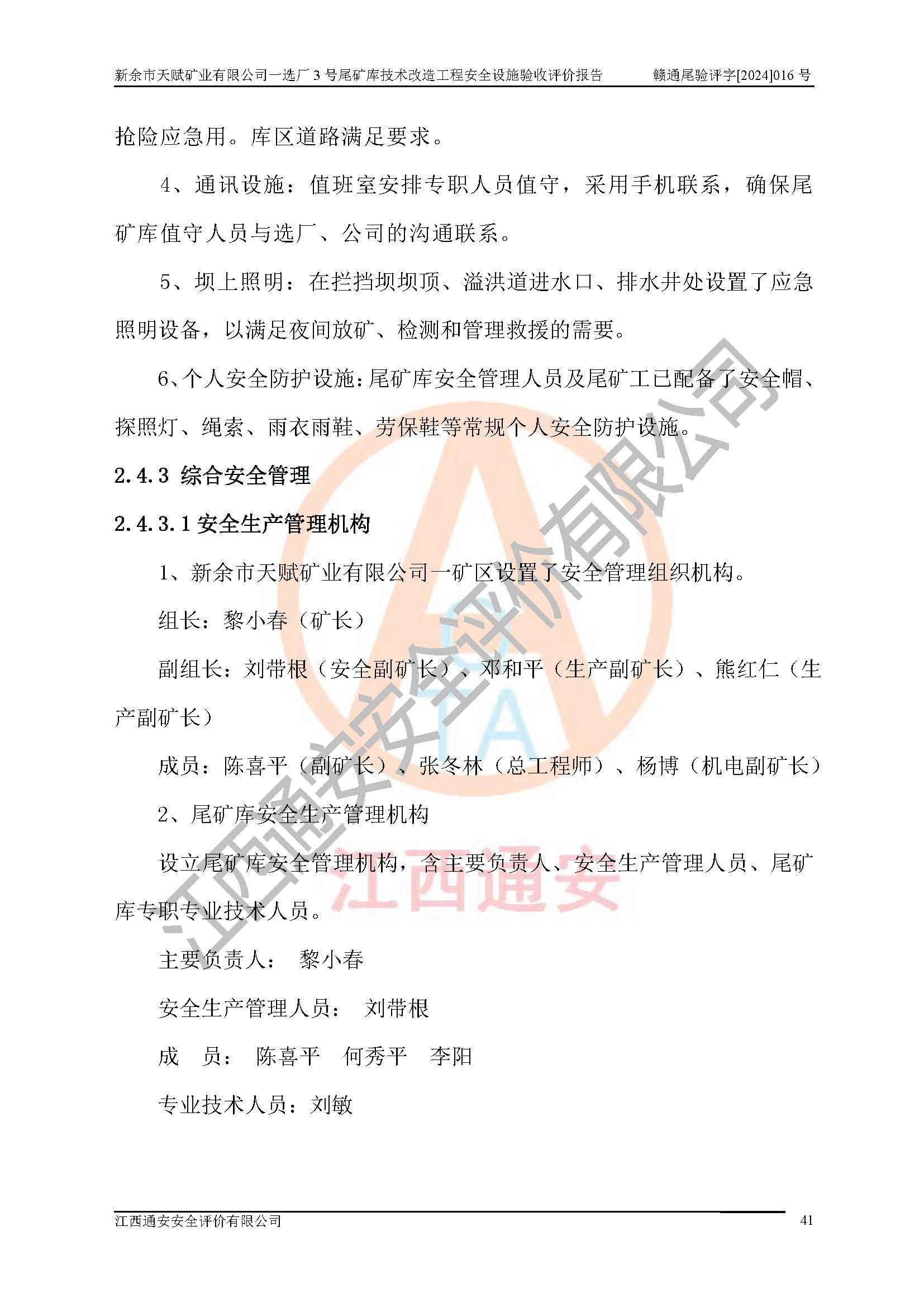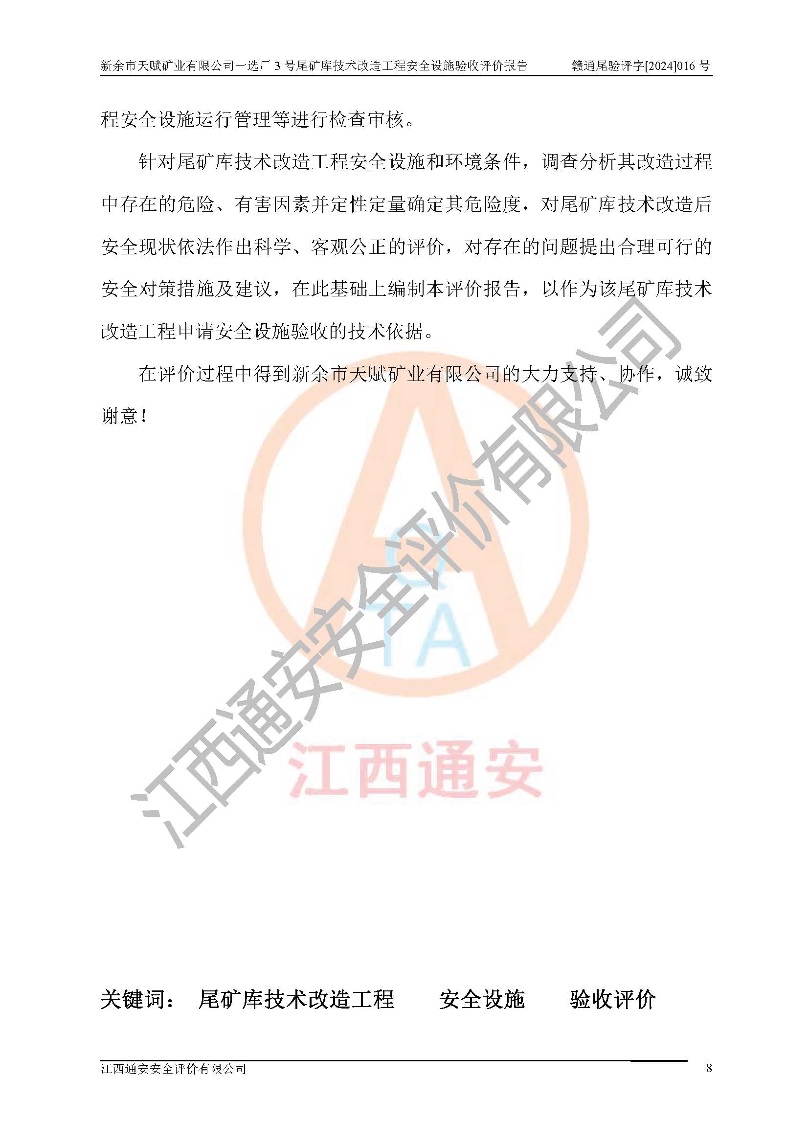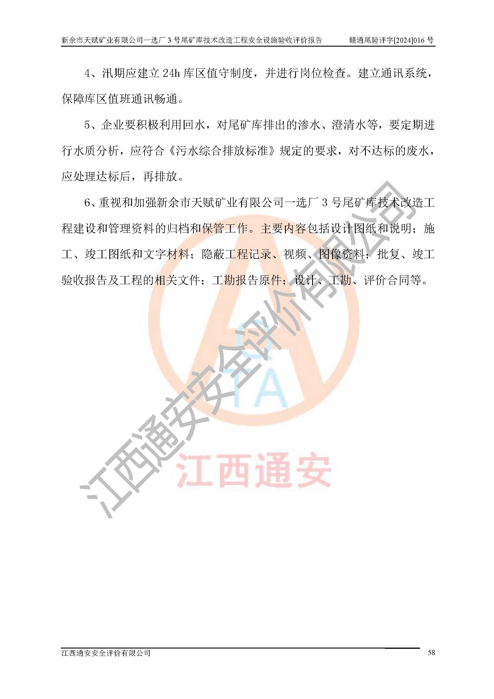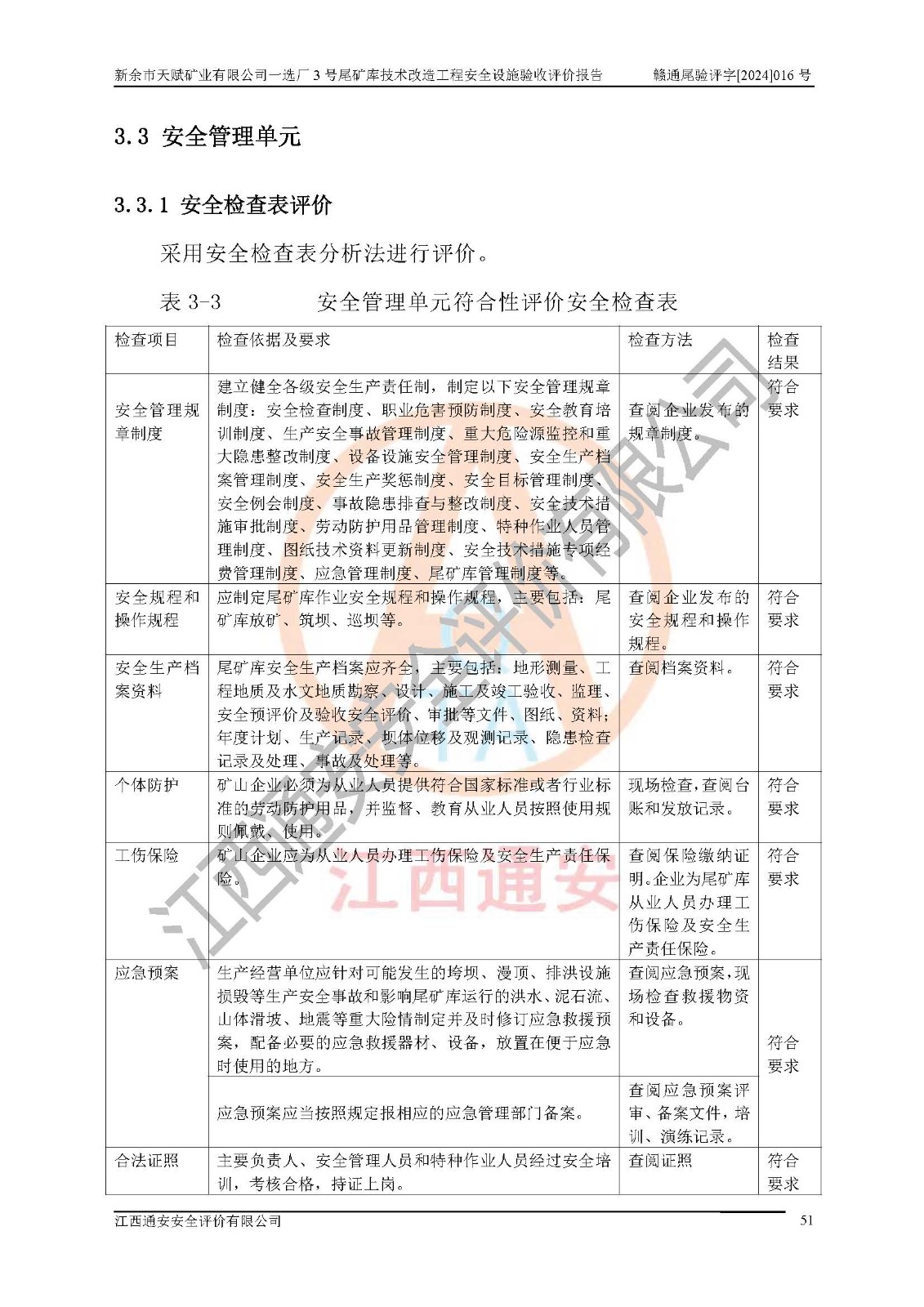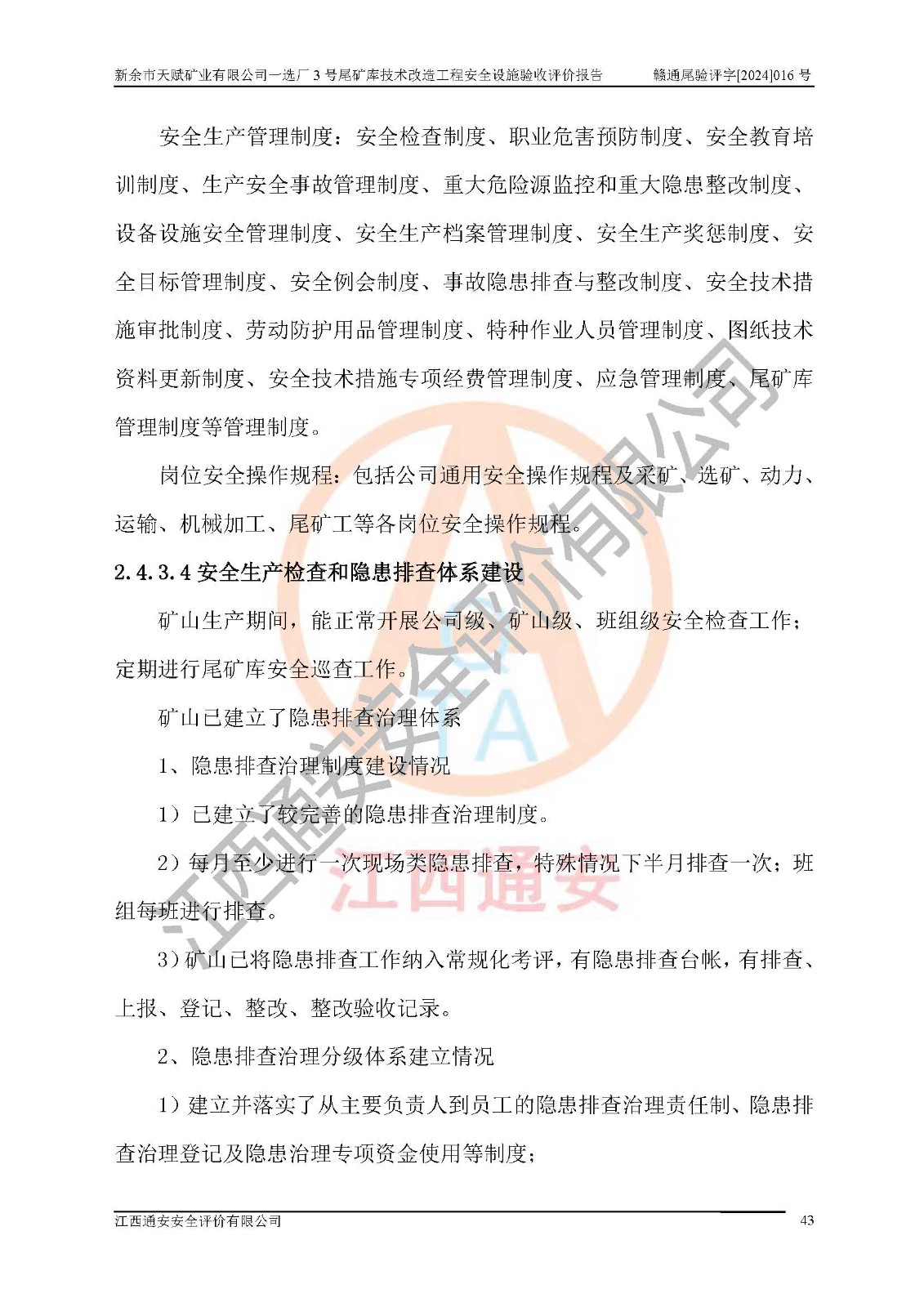 新余市天賦礦業(yè)有限公司一選廠3號尾礦庫位于江西省分宜縣鈐山鎮(zhèn)境內(nèi),屬鈐山鎮(zhèn)管轄,有鄉(xiāng)村公路相通,交通較為方便。3號尾礦庫壩頂中心點地理坐標(biāo)為:X=3058292,Y=38566139。 2008年6月,邯鄲華北冶建工程設(shè)計有限公司完成了3號尾礦庫初步設(shè)計,該尾礦庫為五等庫,尾礦壩壩型為攔擋壩,一次型機(jī)械碾壓土石壩,排洪系統(tǒng)為溢洪道,排水系統(tǒng)為排水斜槽+排水管+消力池。2010年7月原江西省安全生產(chǎn)監(jiān)督管理局組織專家對該尾礦庫進(jìn)行竣工驗收,對驗收過程中發(fā)現(xiàn)的問題,建設(shè)單位積極整改,整改完成后通過了竣工驗收,并取得了安全生產(chǎn)許可證。為了礦山的可持續(xù)性發(fā)展,2012年委托金建工程設(shè)計有限公司對3號尾礦庫進(jìn)行加高擴(kuò)容設(shè)計,2013年2月,金建工程設(shè)計有限公司完成了該尾礦庫加高擴(kuò)容可行性研究報告,2014年2月,原江西省安全生產(chǎn)監(jiān)督管理局組織專家對金建工程設(shè)計有限公司編制的3號尾礦庫加高擴(kuò)容安全專篇進(jìn)行評審,2014年6月原江西省安全生產(chǎn)監(jiān)督管理局以贛安監(jiān)非煤項目設(shè)審〔2014〕30號對3號尾礦庫加高擴(kuò)容安全專篇進(jìn)行批復(fù),3號尾礦庫加高擴(kuò)容工程分二期實施,一期工程由江西南方礦山建設(shè)有限公司進(jìn)行施工,江西省新大地建設(shè)監(jiān)理有限公司進(jìn)行監(jiān)理,該工程(一期工程)已于2018年8月底完工,2021年3月完成一期工程竣工驗收,2021年8月19日取得了江西省應(yīng)急管理廳下發(fā)的尾礦庫安全生產(chǎn)許可證(證號:(贛)FM 安許證字[2021]M1790 號),安全生產(chǎn)許可證**期為2021年8月19日至2024年8月18 日。 由于選廠對尾砂進(jìn)行分級,粗尾砂外賣,細(xì)粒尾砂排入尾礦庫,因入庫尾砂粒度變細(xì),尾砂灘面坡度較緩,造成壩前干灘長度不滿足設(shè)計要求,2022年6月,分宜縣應(yīng)急管理局在對尾礦庫進(jìn)行檢查時,發(fā)現(xiàn)了上述問題(詳見附件安全生產(chǎn)行政執(zhí)法文書),為了解決上述問題,使尾礦庫運行滿足設(shè)計要求,因此需要對3號尾礦庫進(jìn)行技術(shù)改造。 2022年12月金建工程設(shè)計有限公司出具了《新余市天賦礦業(yè)有限公司一選廠3號尾礦庫技術(shù)改造工程安全設(shè)施設(shè)計》,并于2023年1月12日取得《江西省應(yīng)急管理廳關(guān)于新余市天賦礦業(yè)有限公司一選廠3號尾礦庫技術(shù)改造工程安全設(shè)施設(shè)計審查的批復(fù)》(贛應(yīng)急非煤項目設(shè)審[2023]2號)。因新余市天賦礦業(yè)有限公司綠色礦山建設(shè)原因選礦廠一直半停產(chǎn)狀態(tài),導(dǎo)致尾礦庫技術(shù)改造工程未能完成建設(shè)并沒有及時驗收,現(xiàn)已完成了尾礦庫技術(shù)改造工程施工建設(shè)工作,尾礦庫技術(shù)改造工程2024年8月21日已完工,現(xiàn)進(jìn)入驗收程序。 |