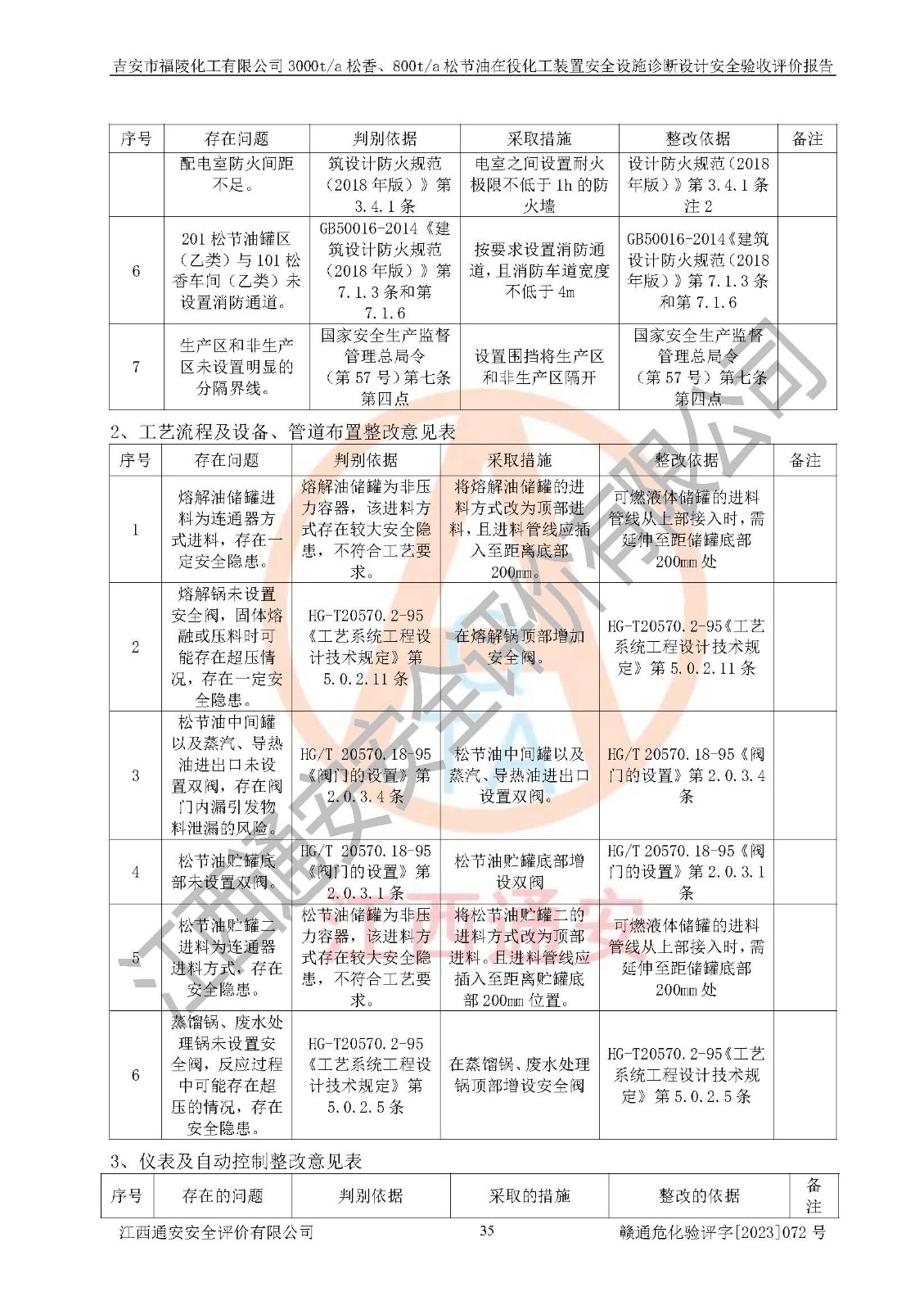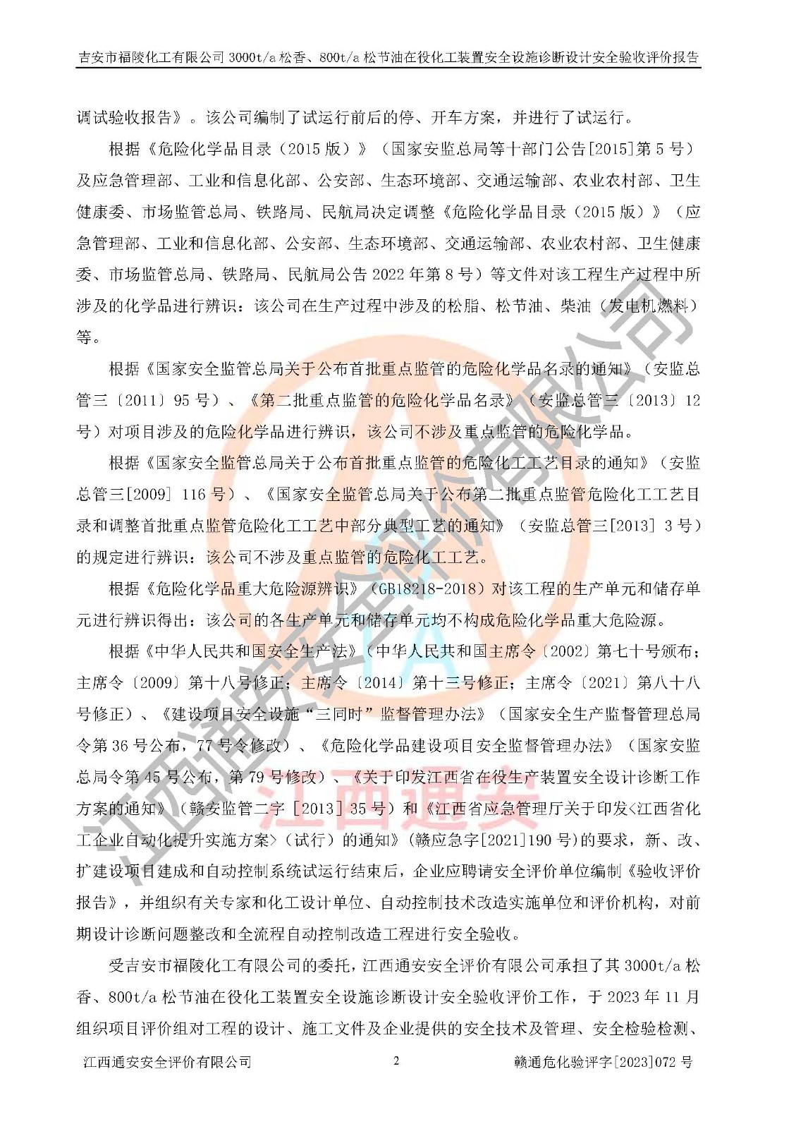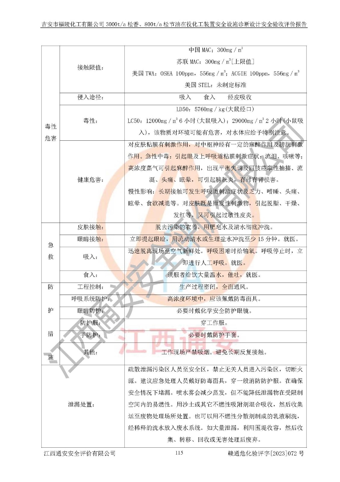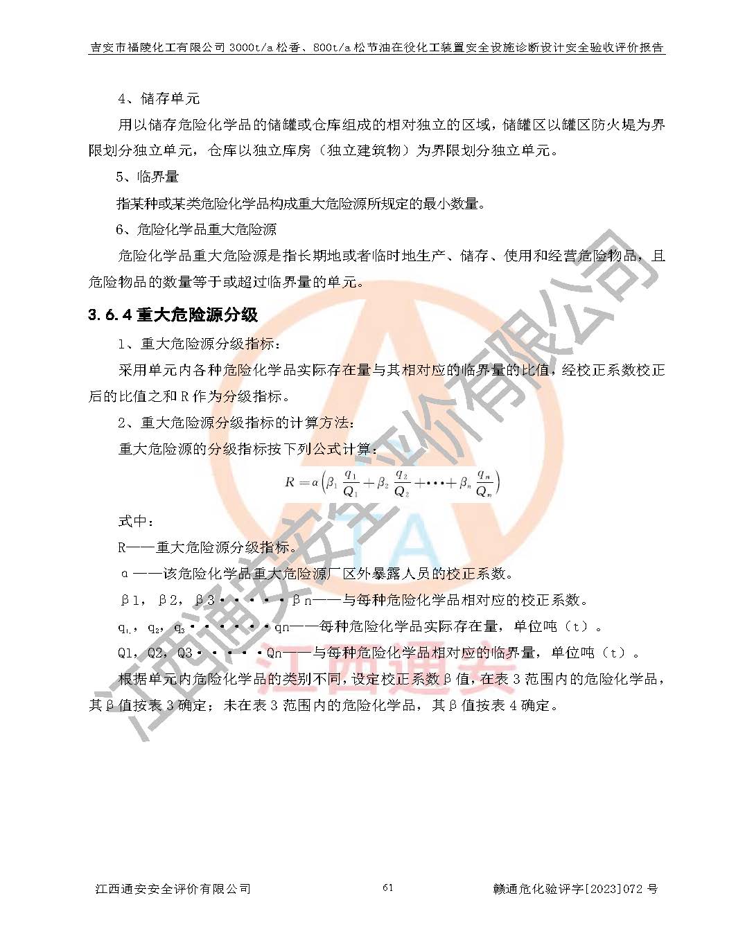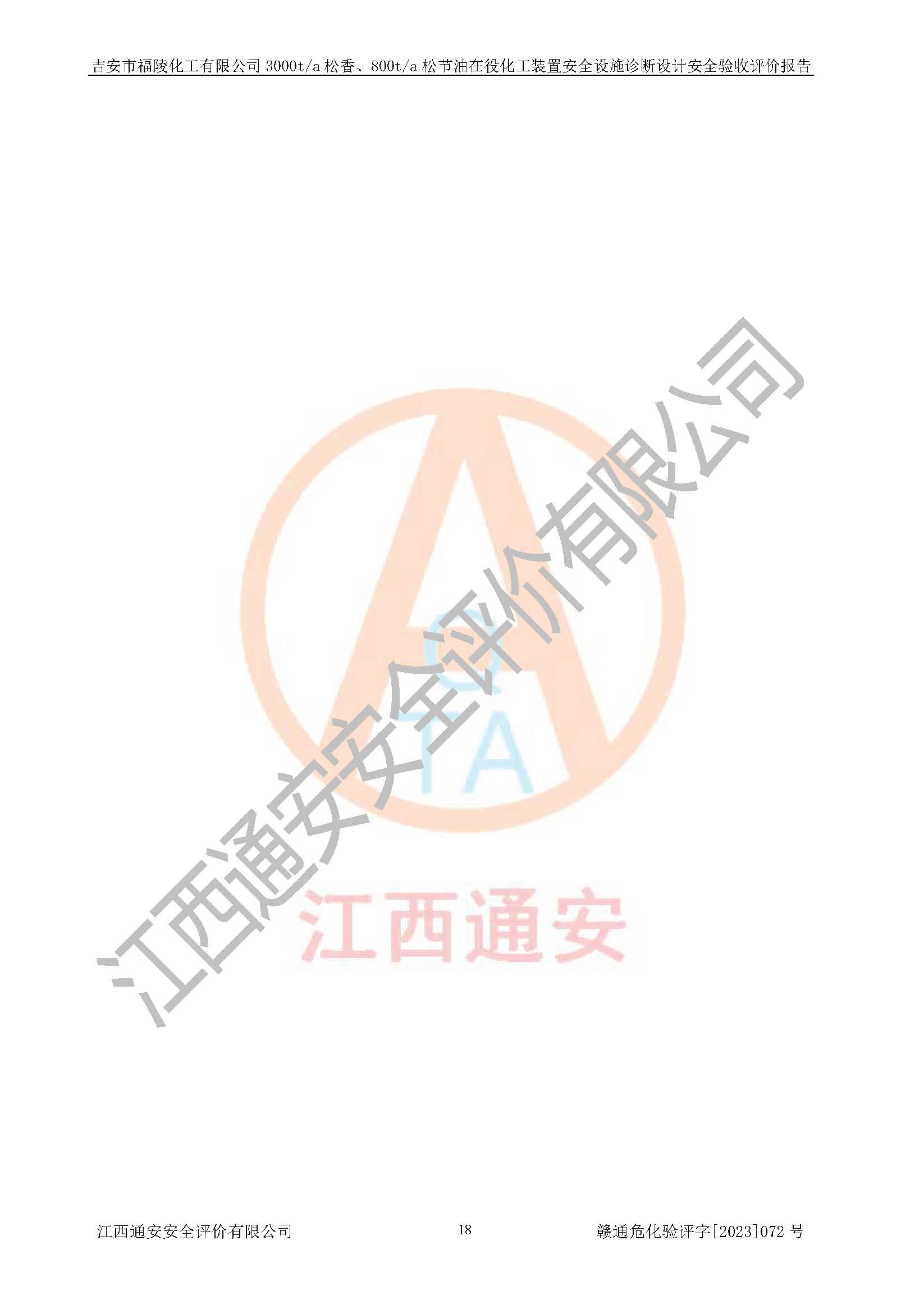 評價報告名稱 | 吉安市福陵化工有限公司3000ta松香、800ta松節(jié)油在役化工裝置安全設施診斷設計安全驗收評價報告 | |||
