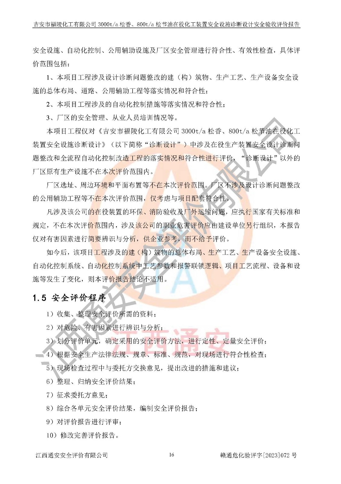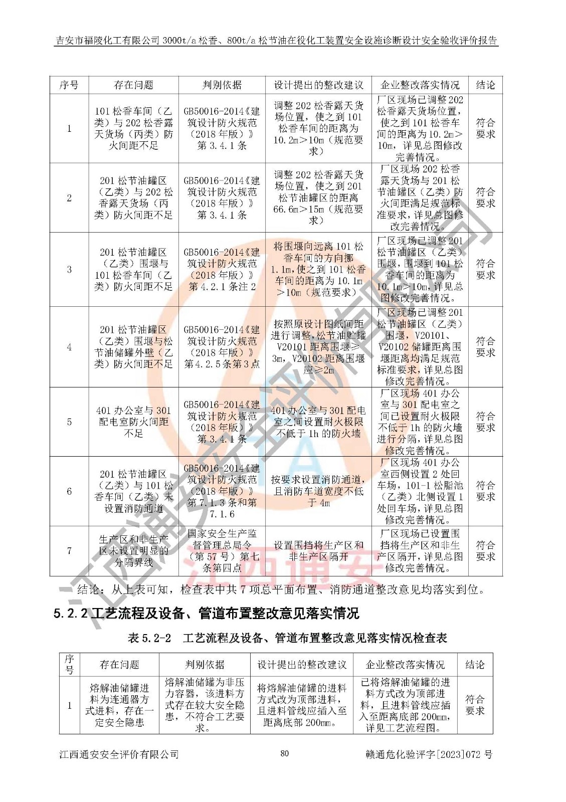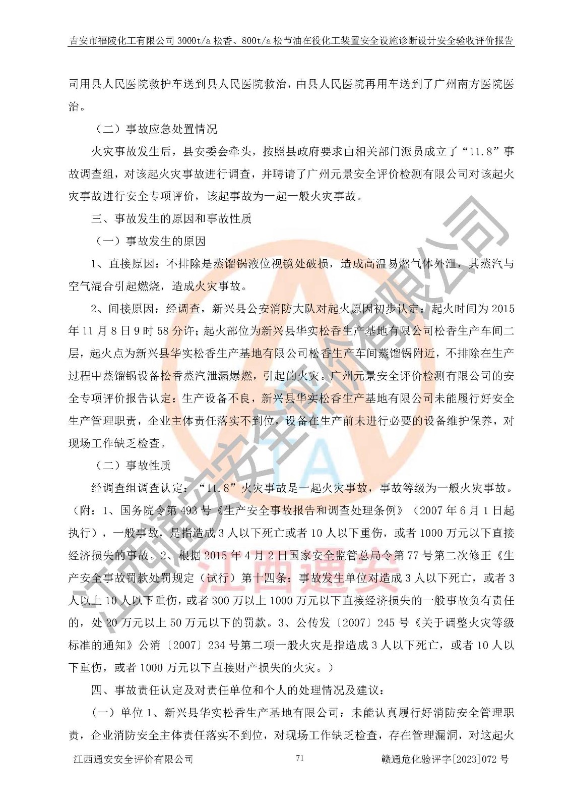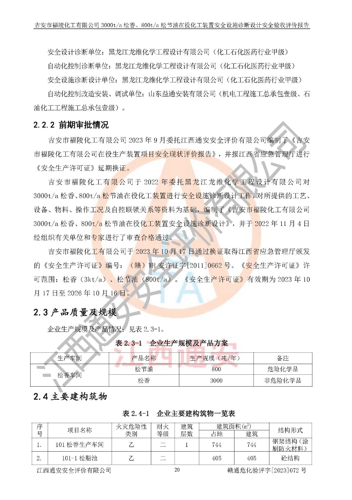 評價報告名稱 | 吉安市福陵化工有限公司3000ta松香、800ta松節(jié)油在役化工裝置安全設施診斷設計安全驗收評價報告 | |||