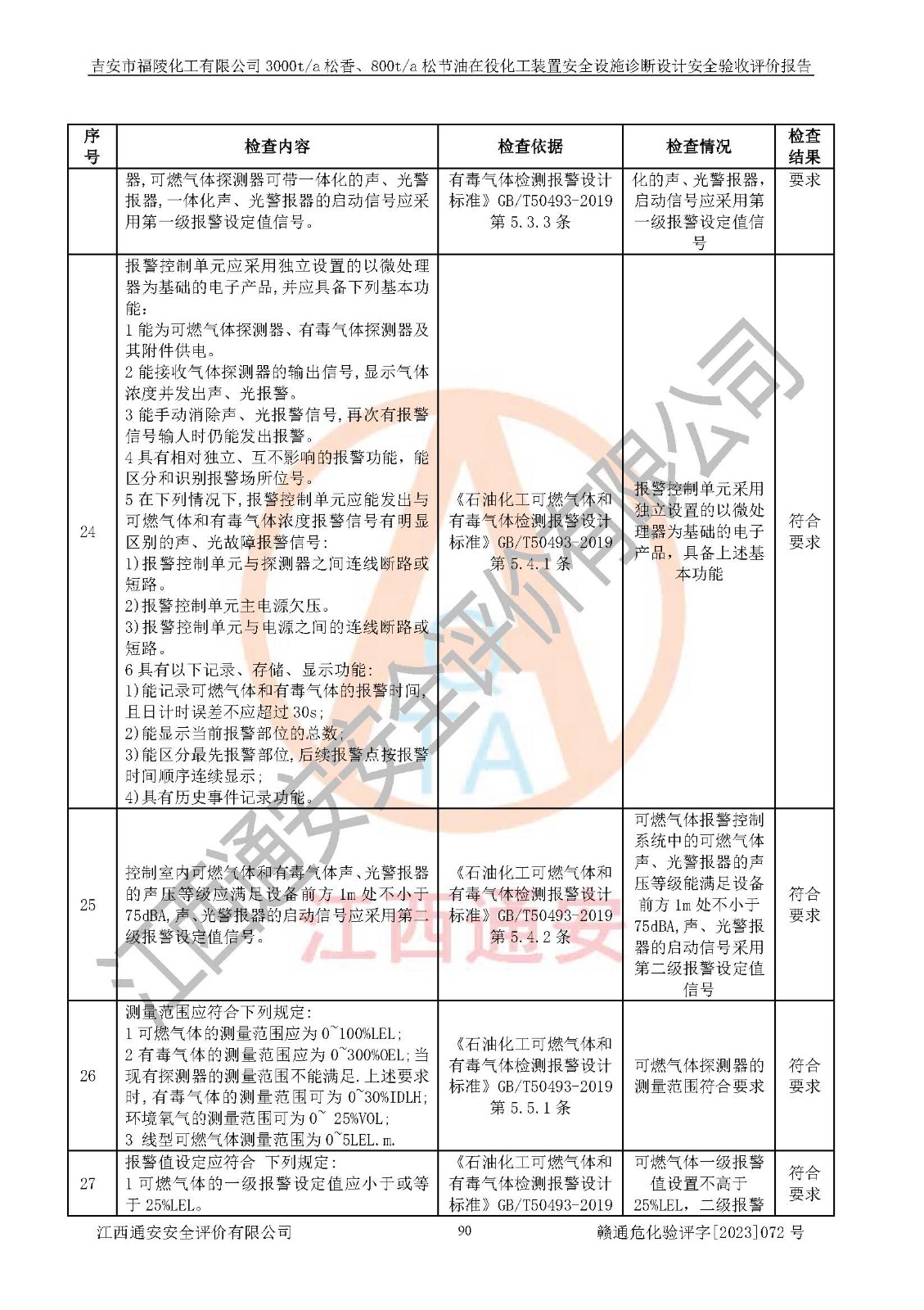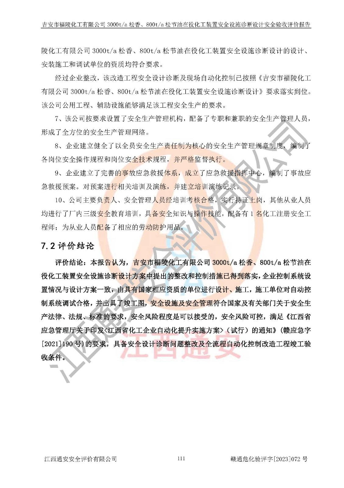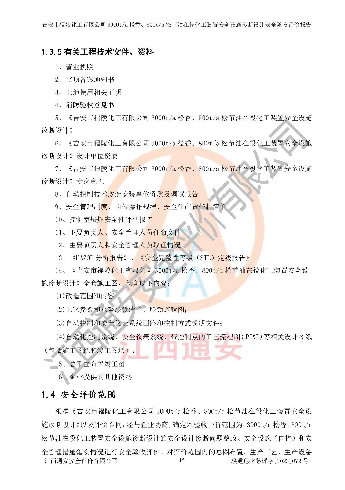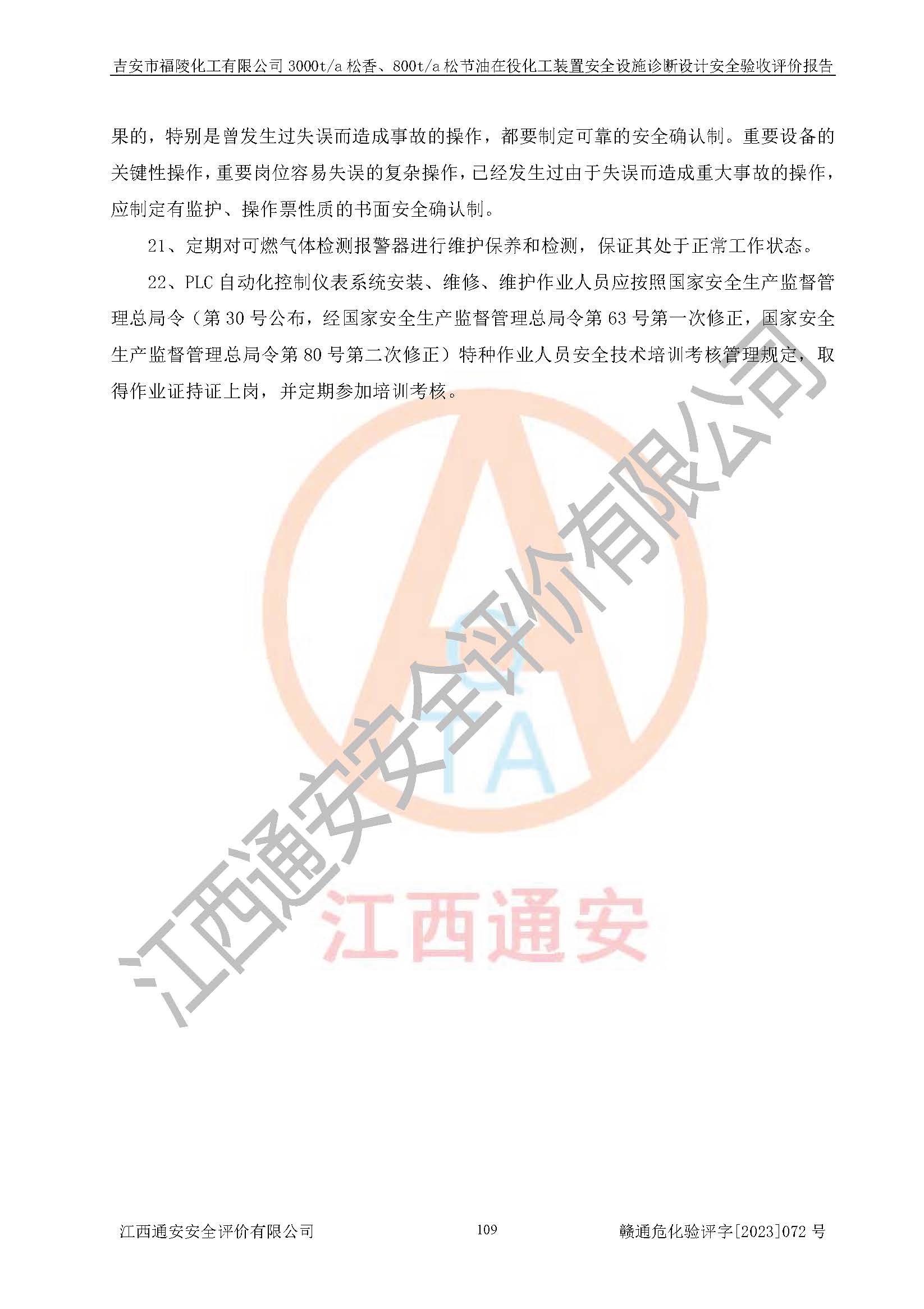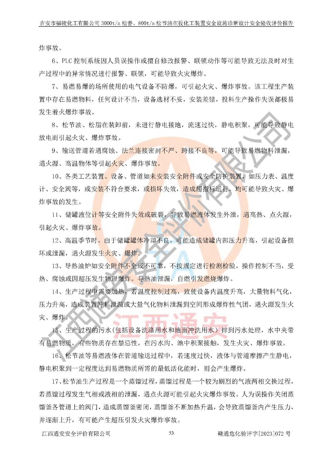 評價報告名稱 | 吉安市福陵化工有限公司3000ta松香、800ta松節(jié)油在役化工裝置安全設施診斷設計安全驗收評價報告 | |||