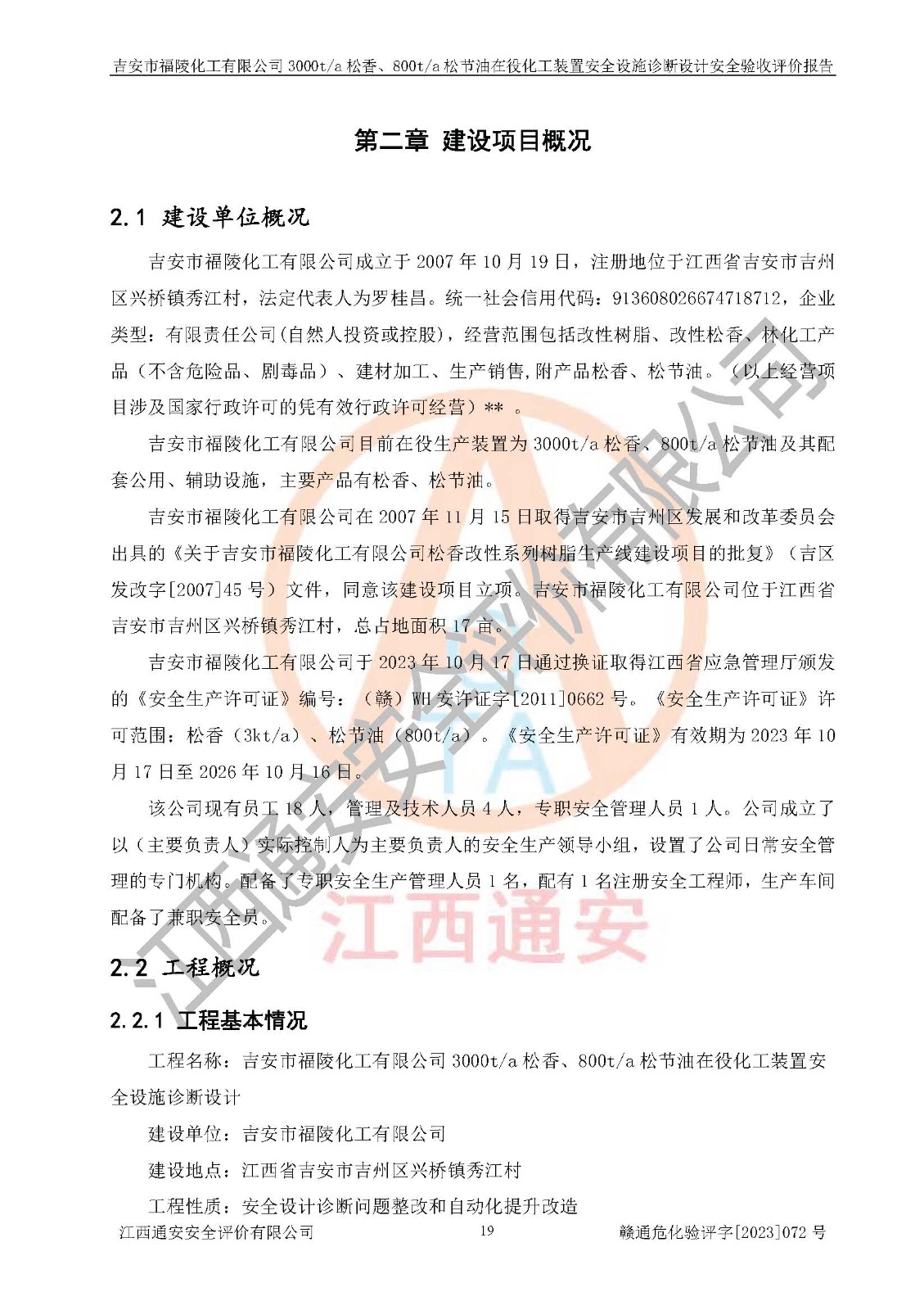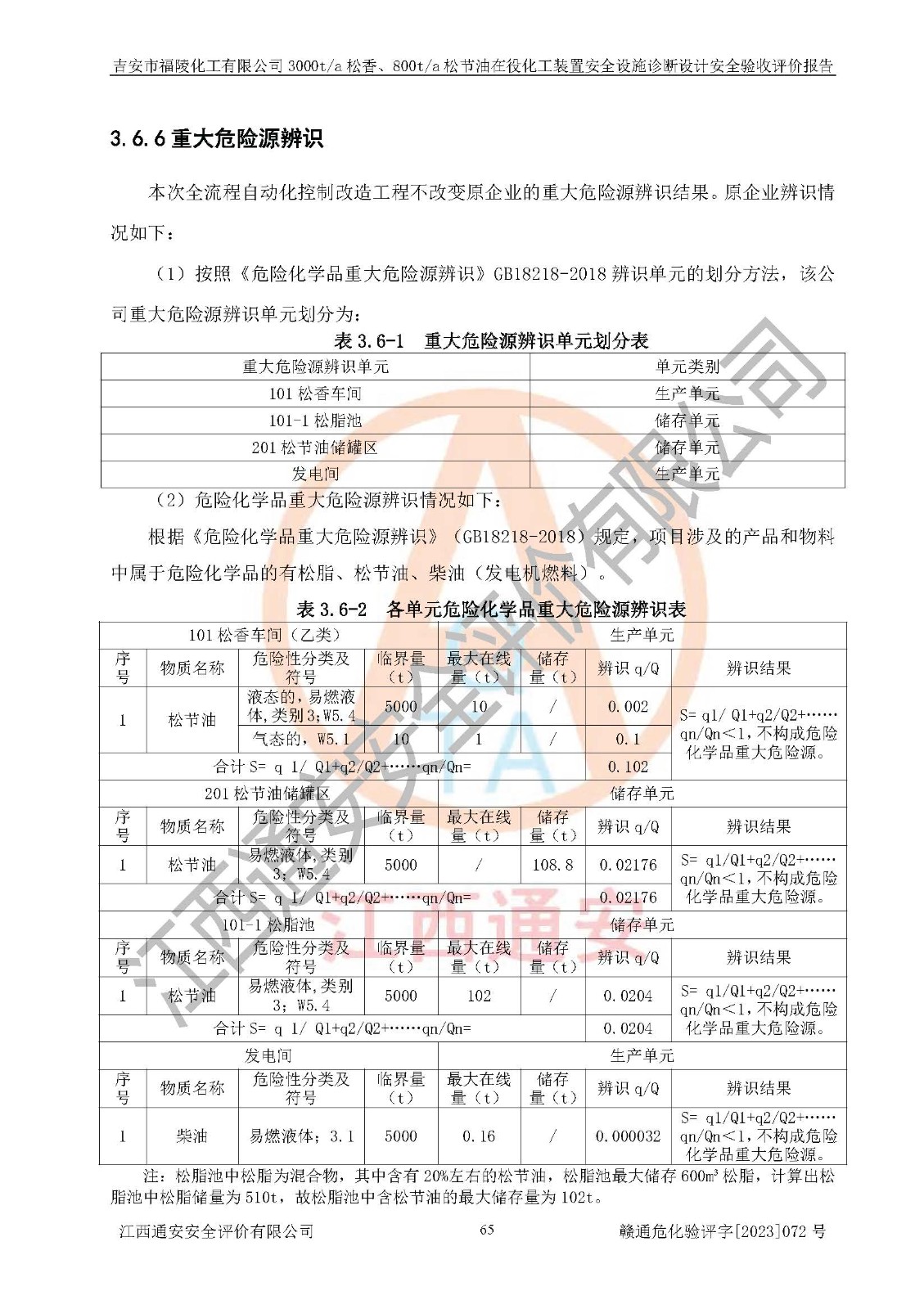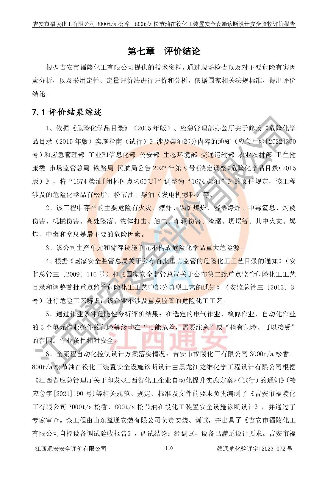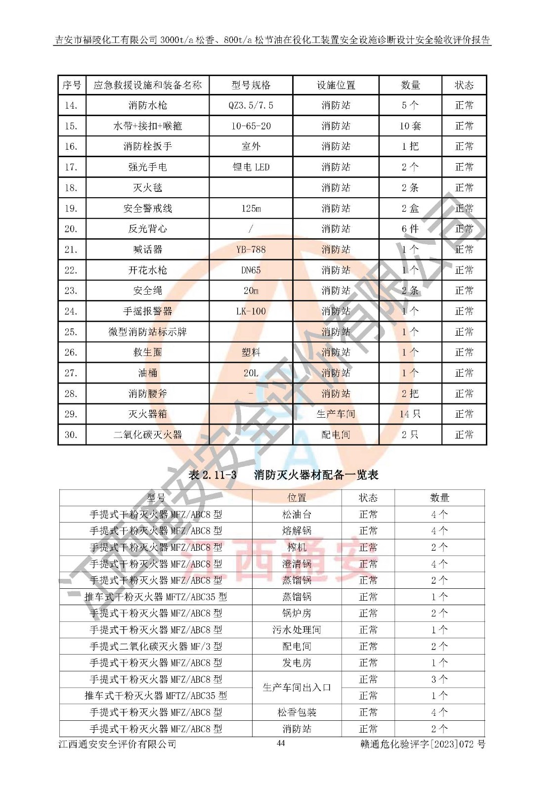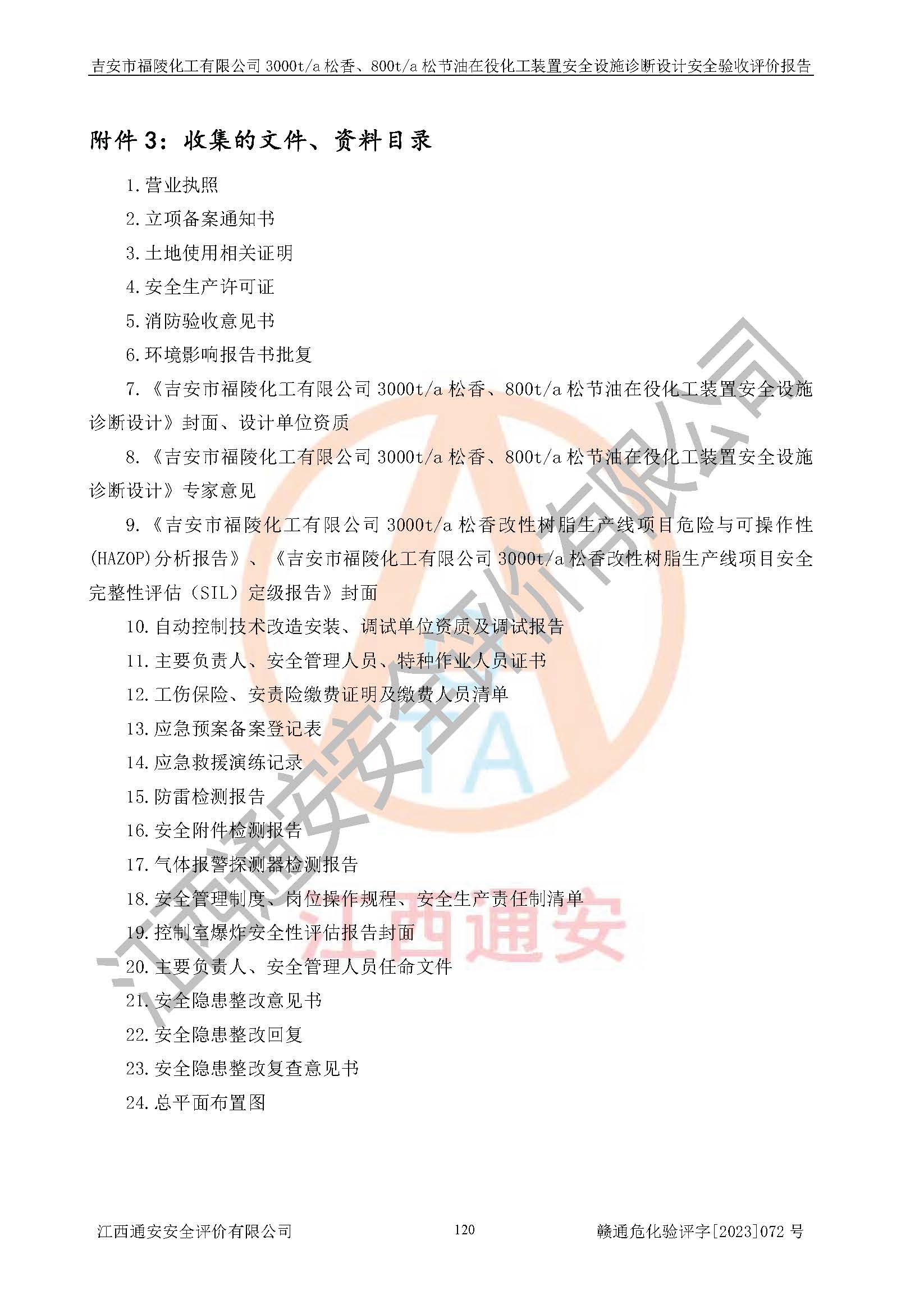 評價報告名稱 | 吉安市福陵化工有限公司3000ta松香、800ta松節(jié)油在役化工裝置安全設施診斷設計安全驗收評價報告 | |||