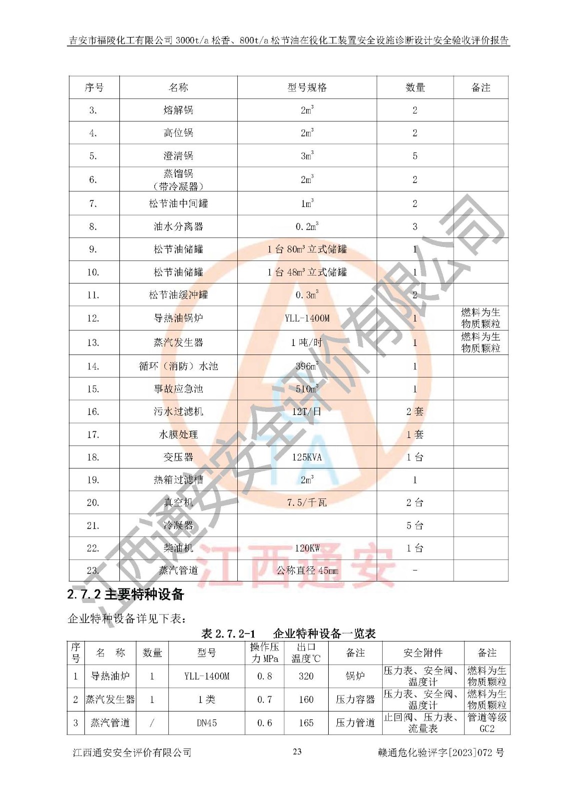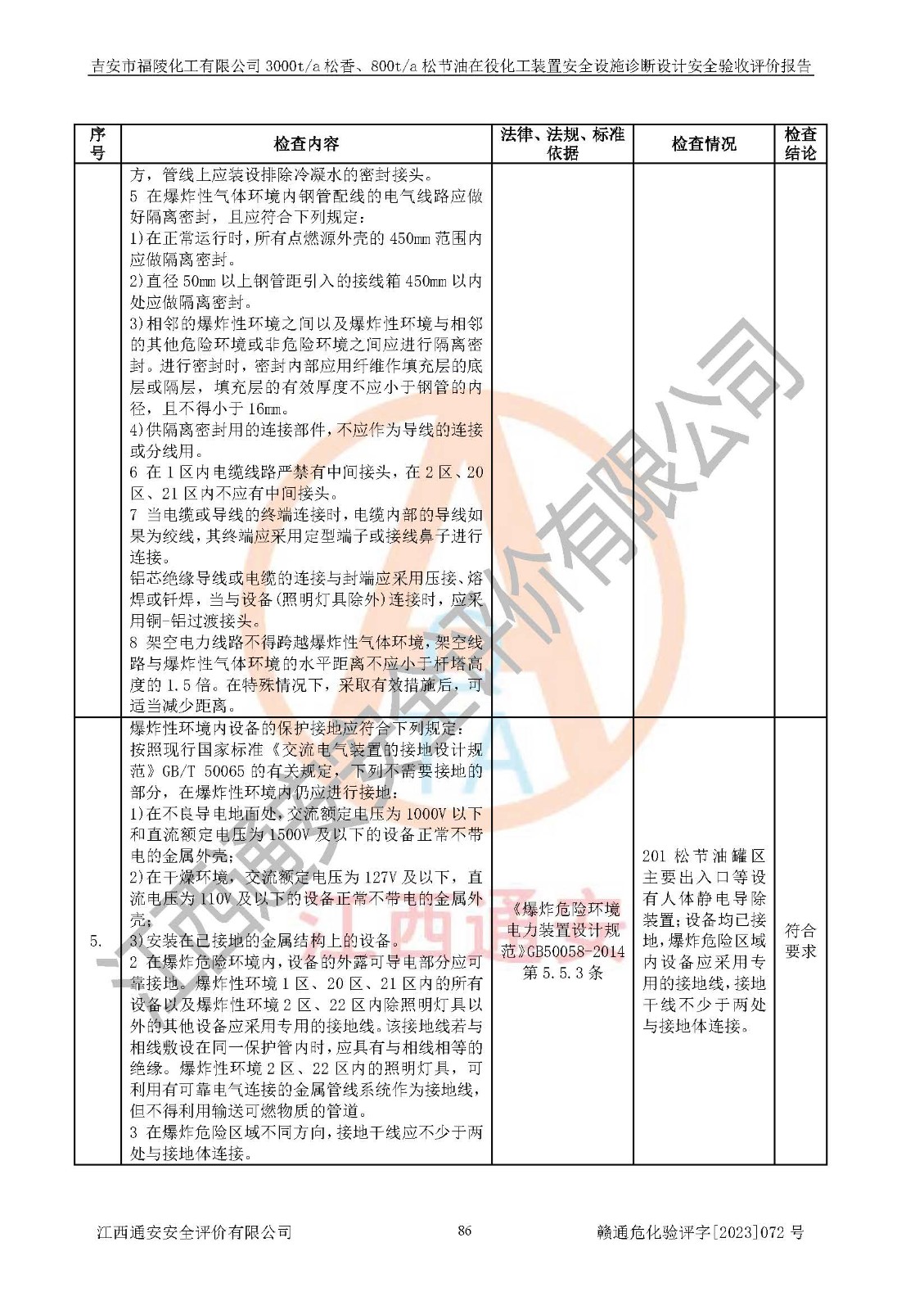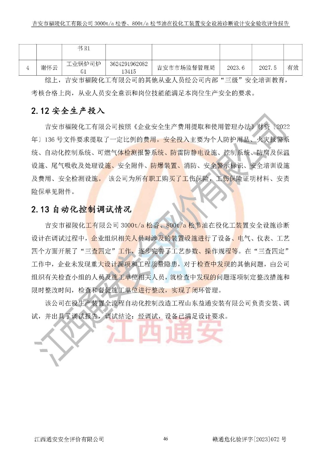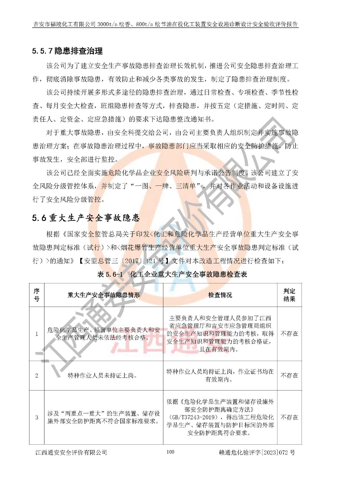 評價報告名稱 | 吉安市福陵化工有限公司3000ta松香、800ta松節(jié)油在役化工裝置安全設施診斷設計安全驗收評價報告 | |||