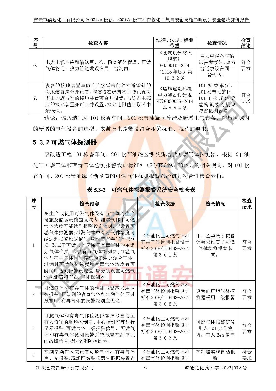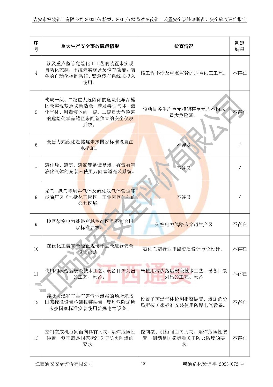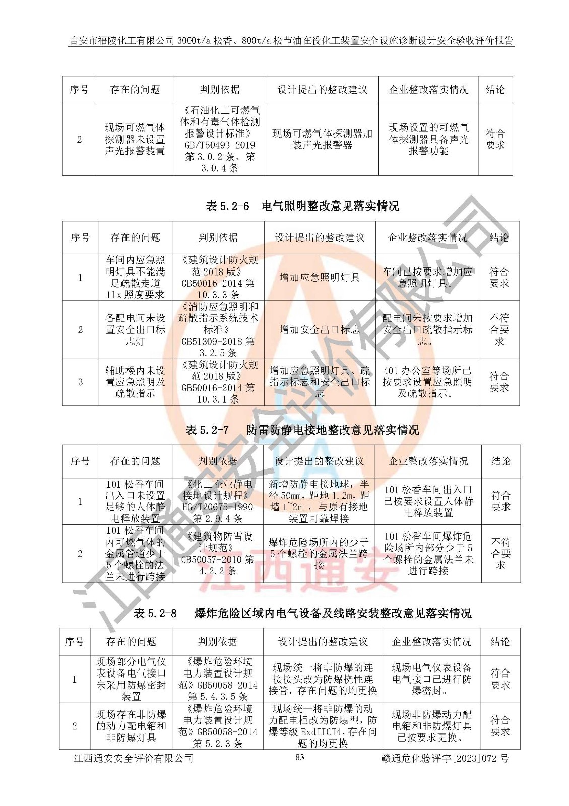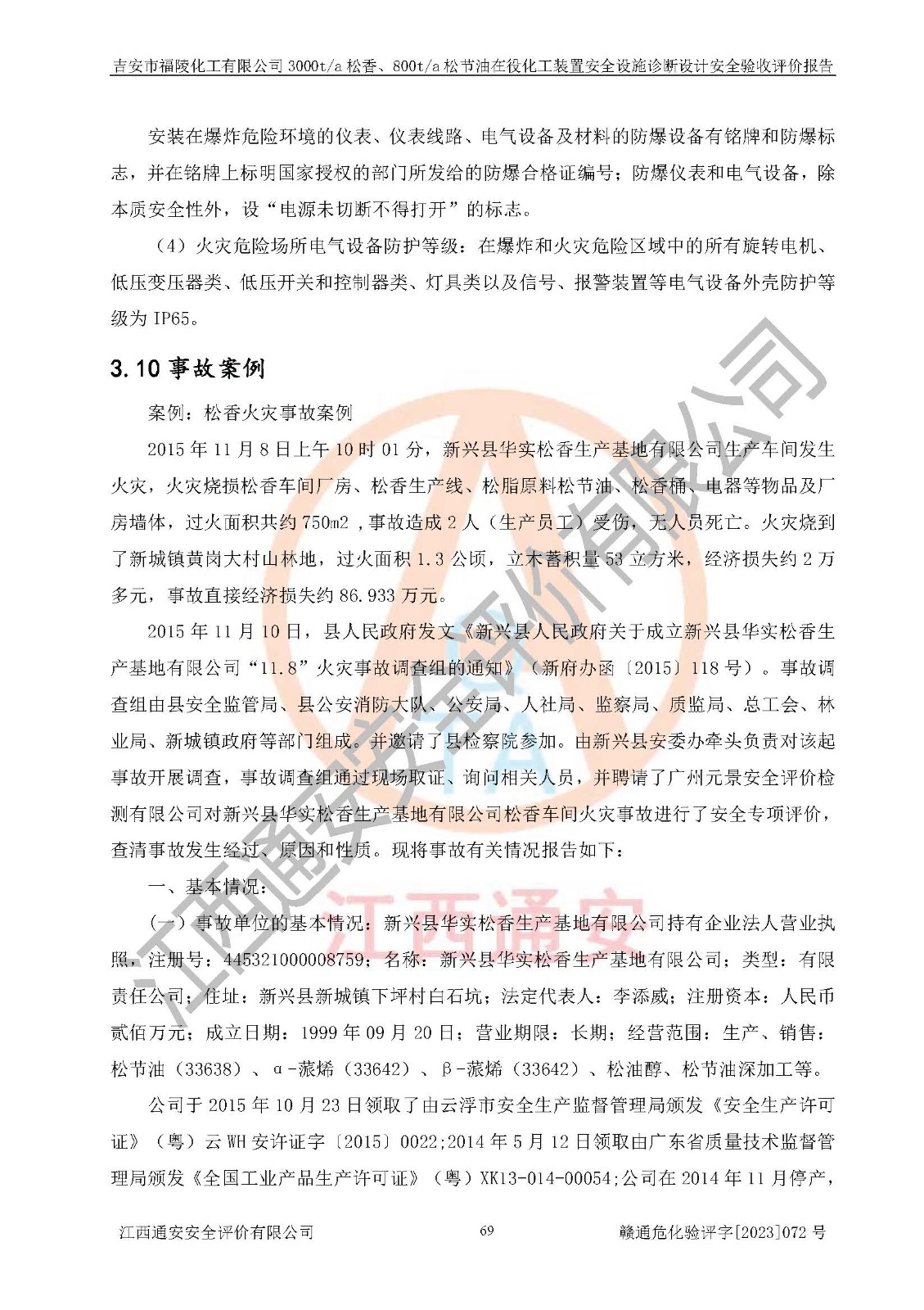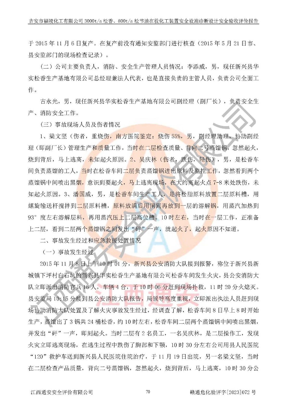 評價報告名稱 | 吉安市福陵化工有限公司3000ta松香、800ta松節(jié)油在役化工裝置安全設施診斷設計安全驗收評價報告 | |||