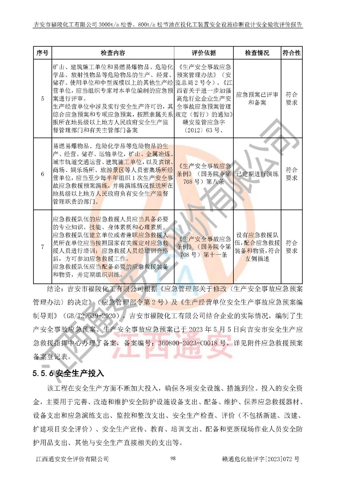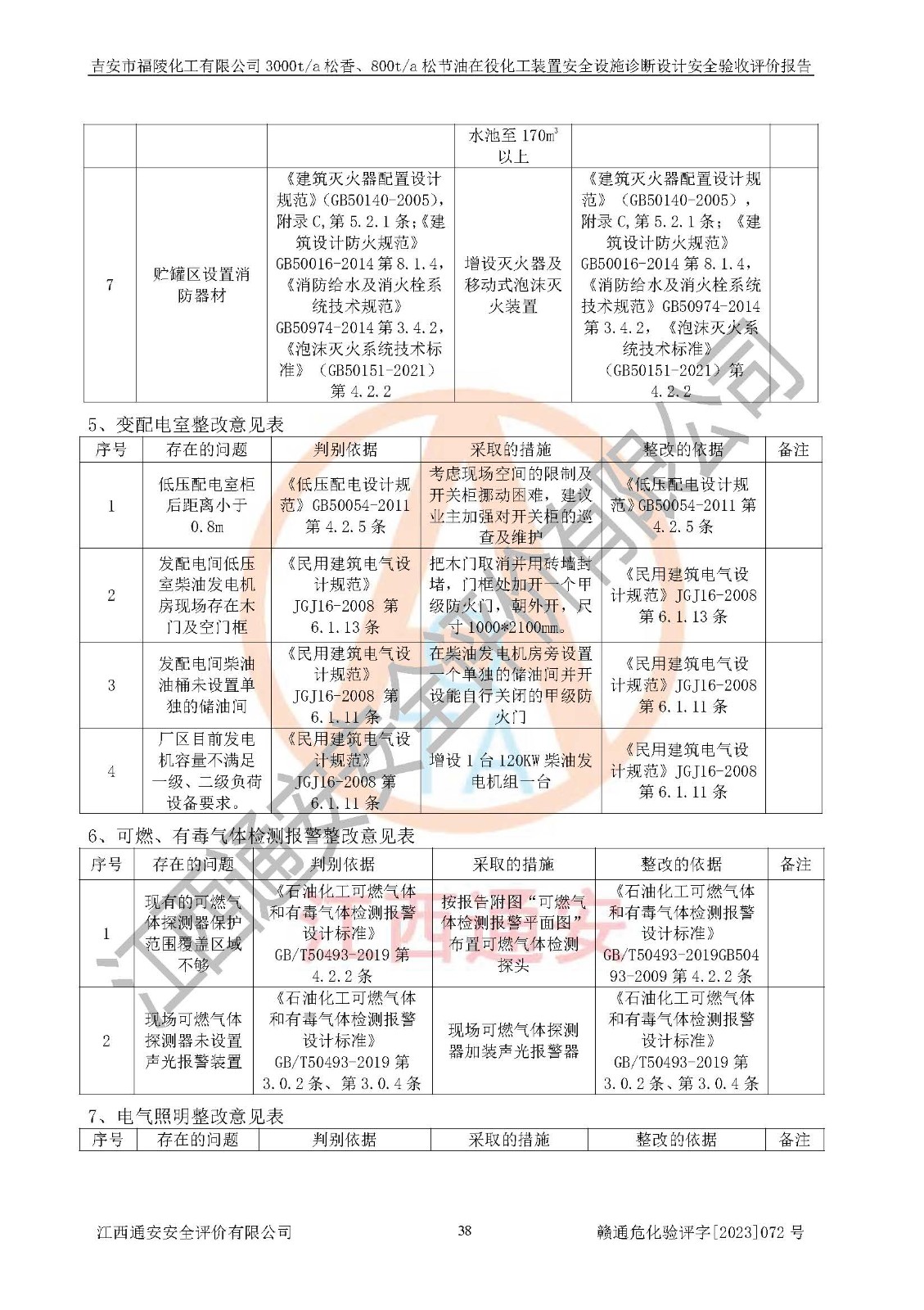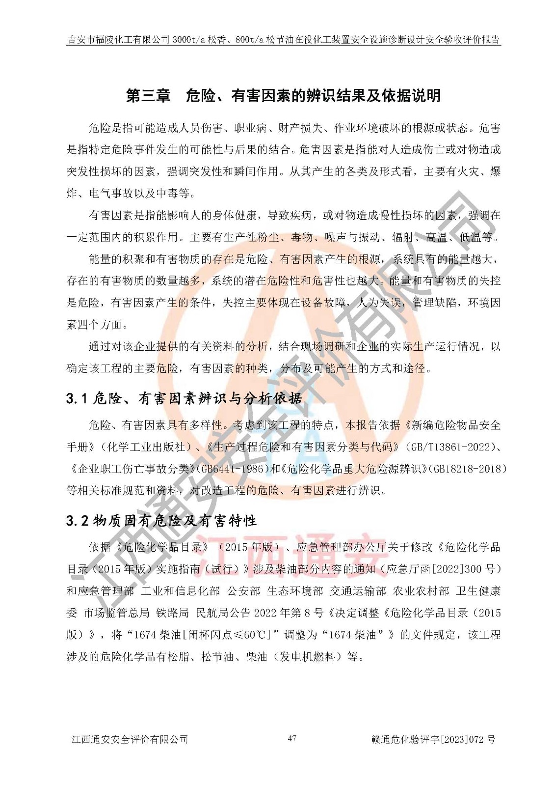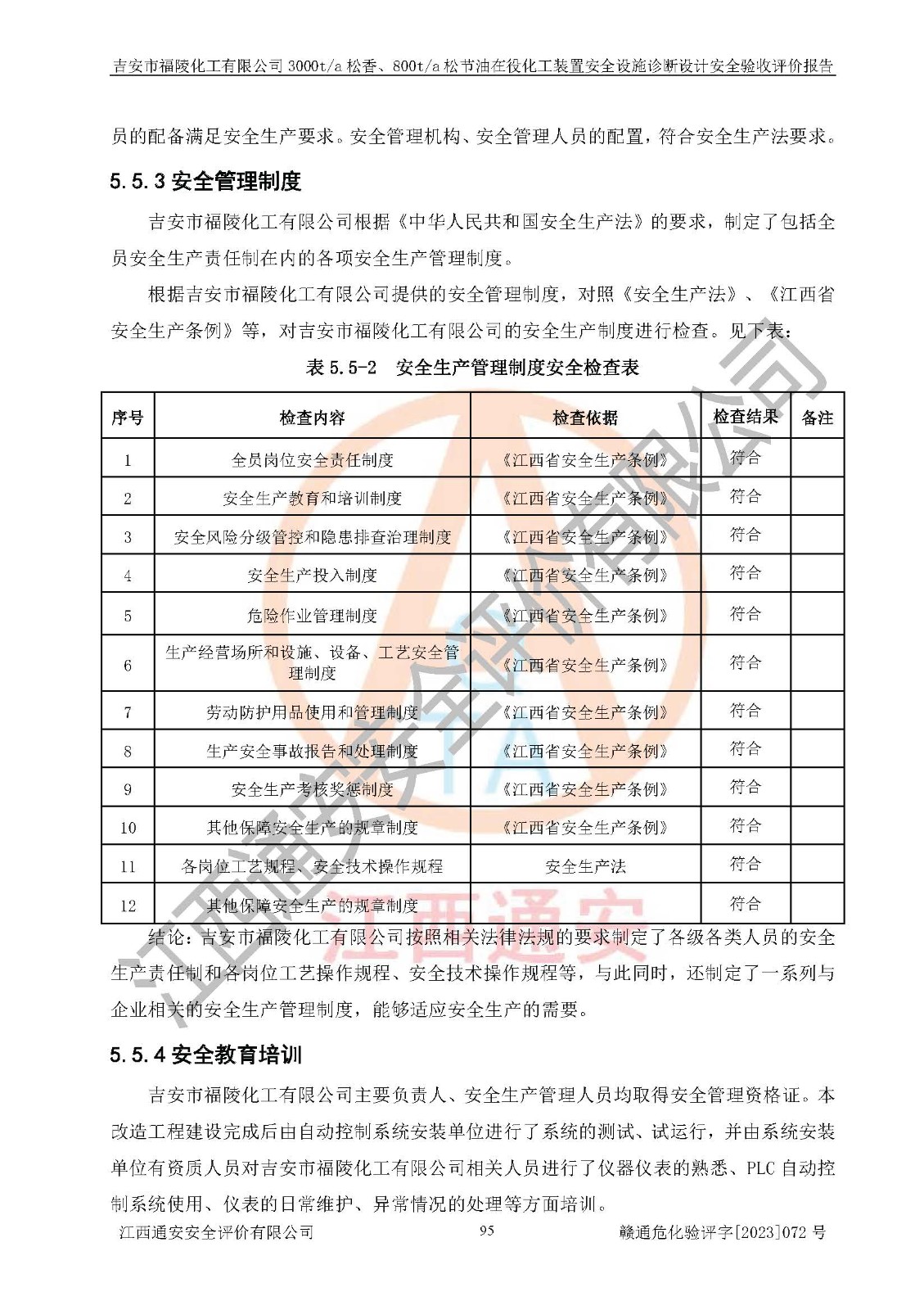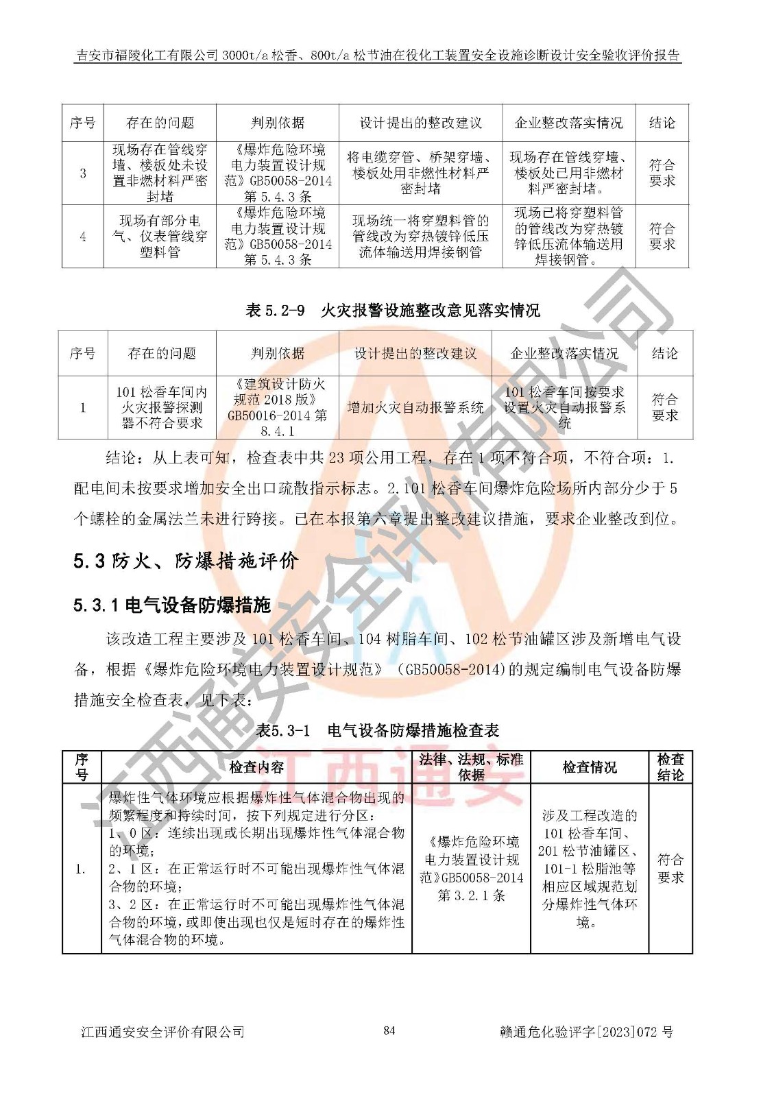 評價報告名稱 | 吉安市福陵化工有限公司3000ta松香、800ta松節(jié)油在役化工裝置安全設施診斷設計安全驗收評價報告 | |||