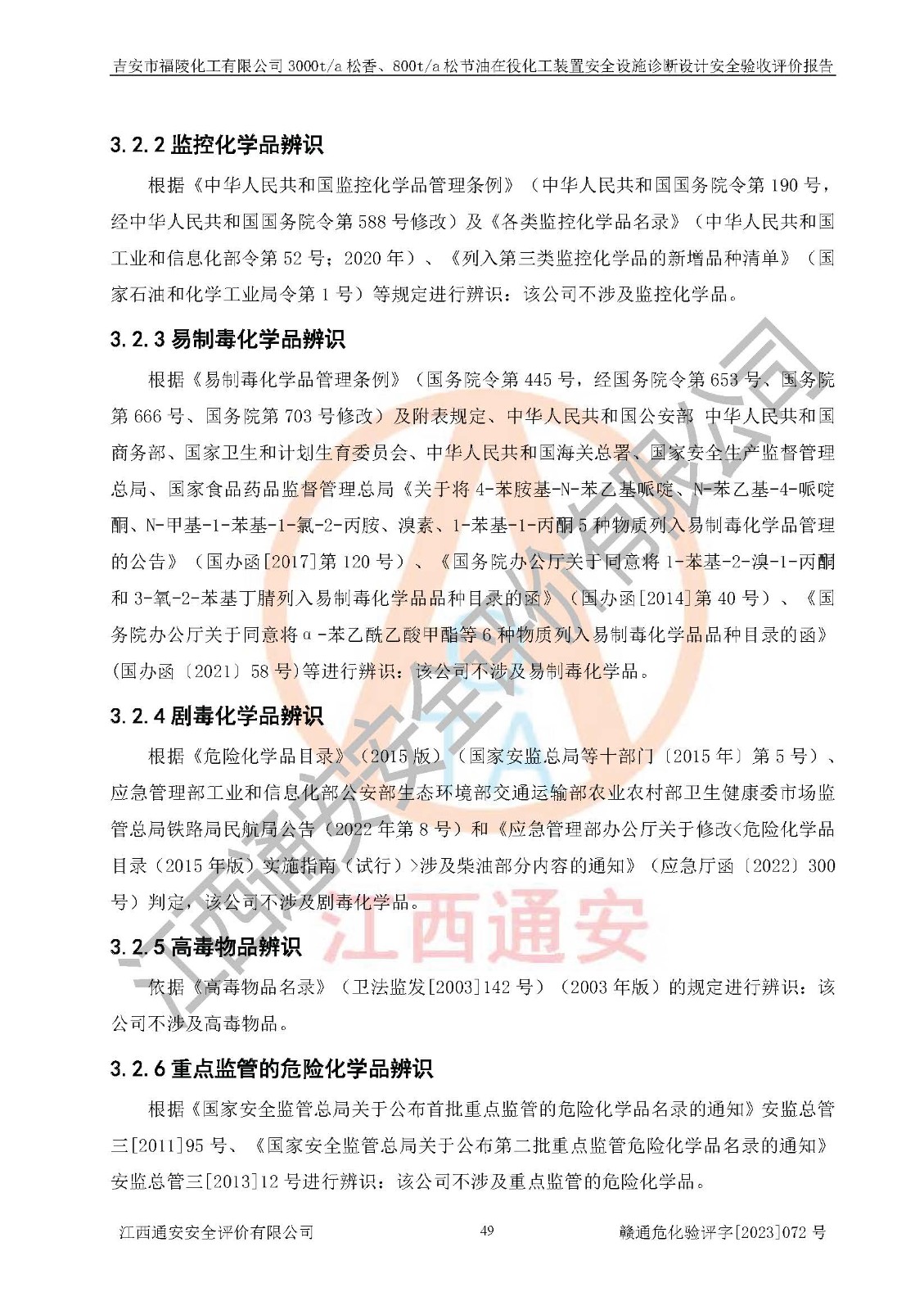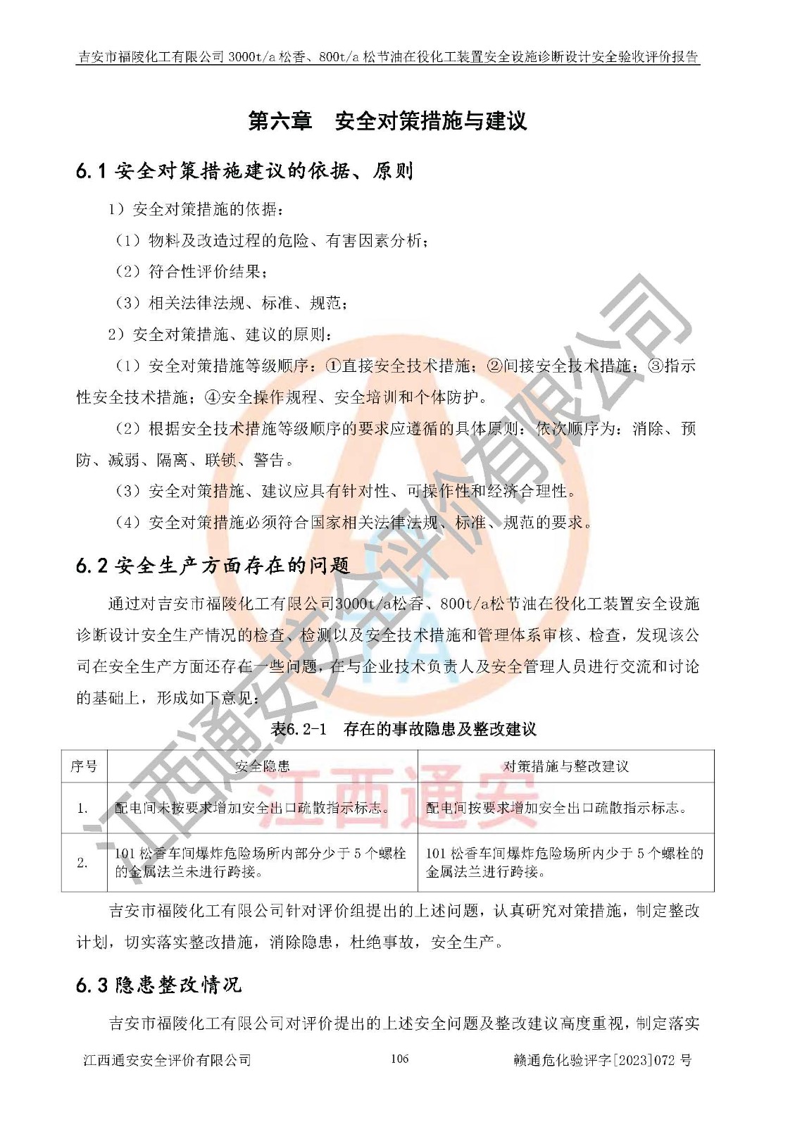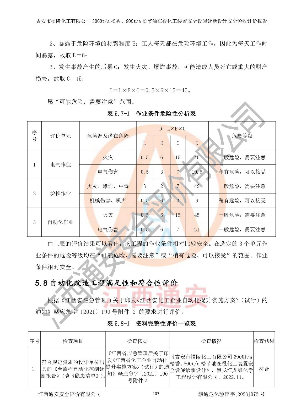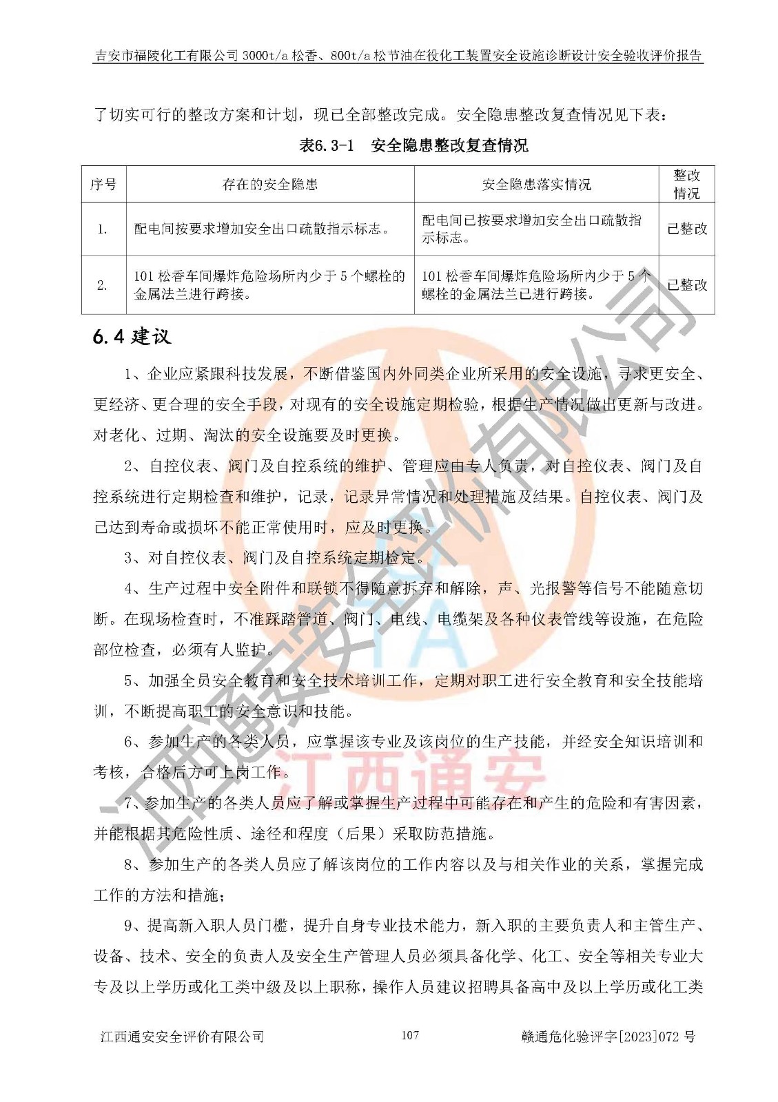 評價報告名稱 | 吉安市福陵化工有限公司3000ta松香、800ta松節(jié)油在役化工裝置安全設施診斷設計安全驗收評價報告 | |||