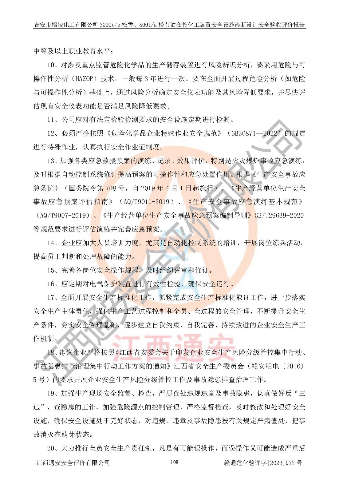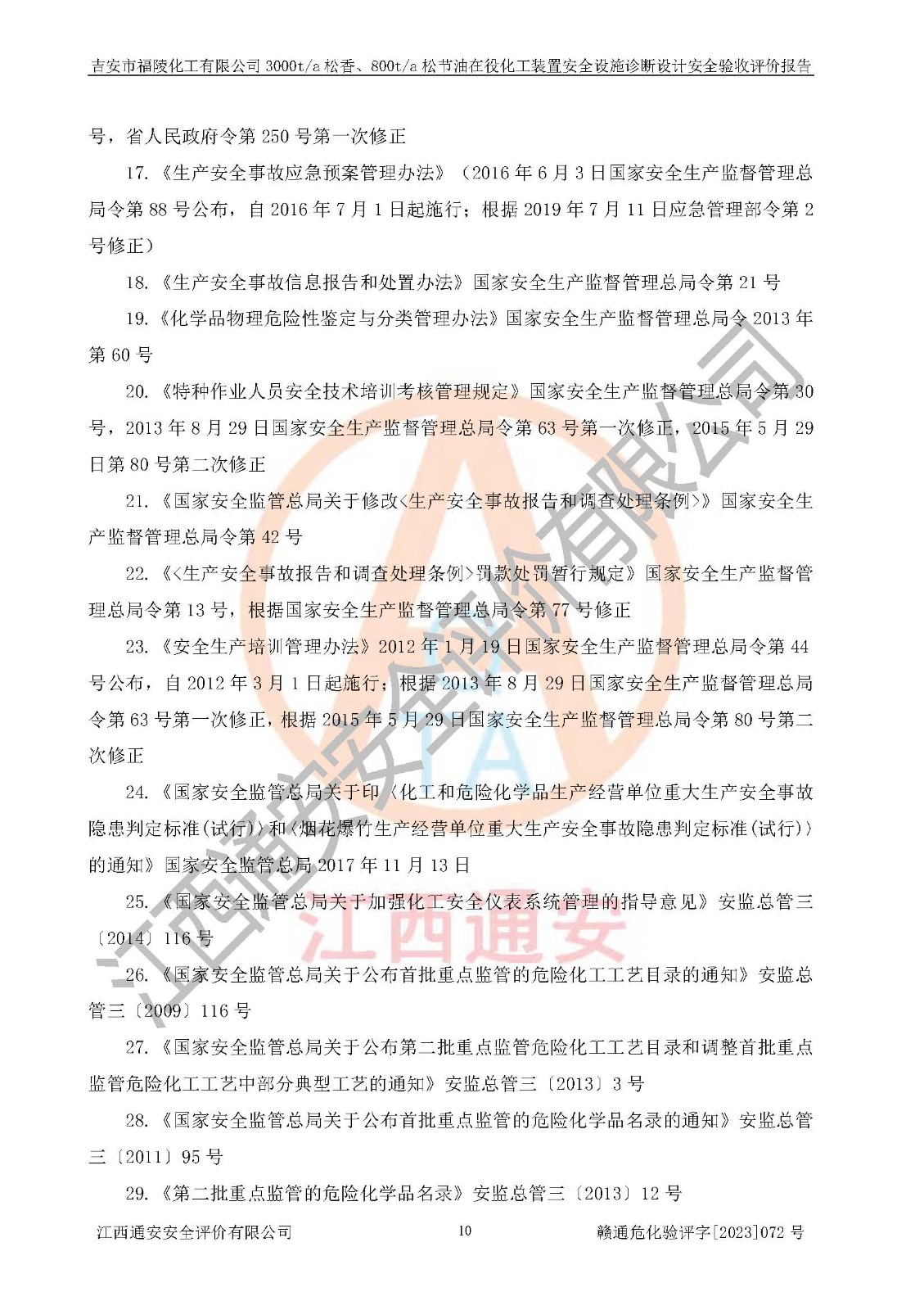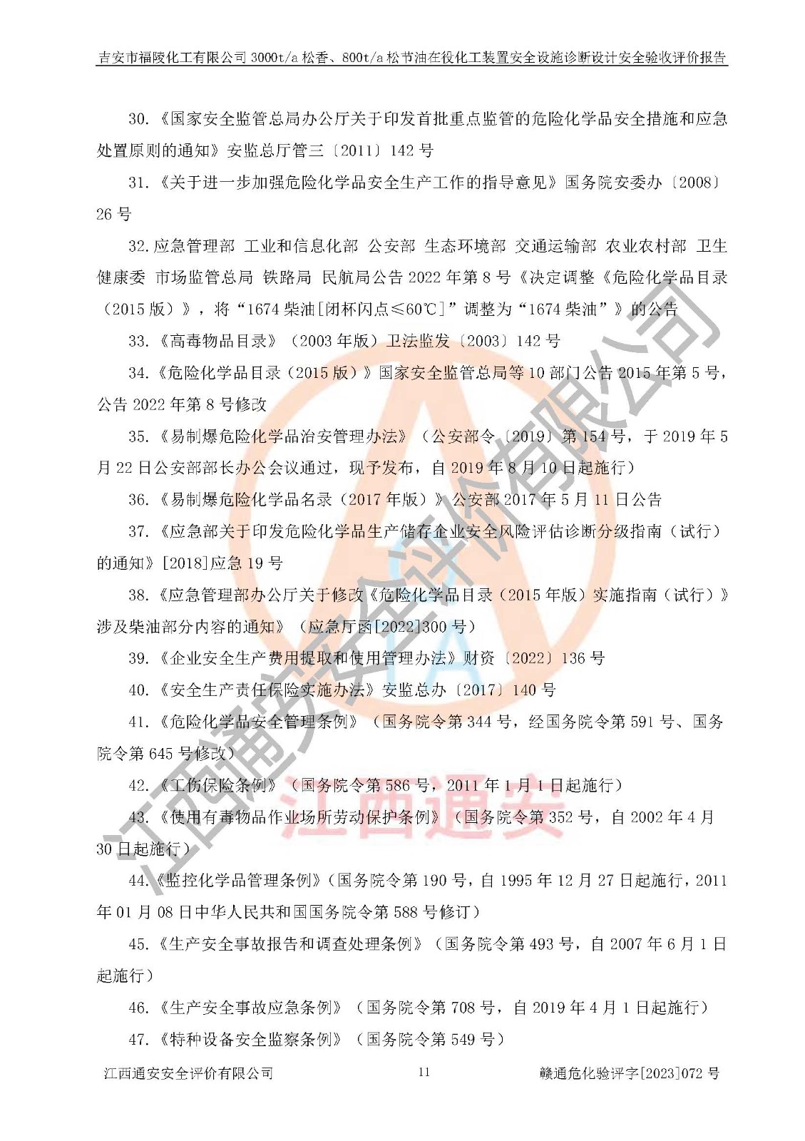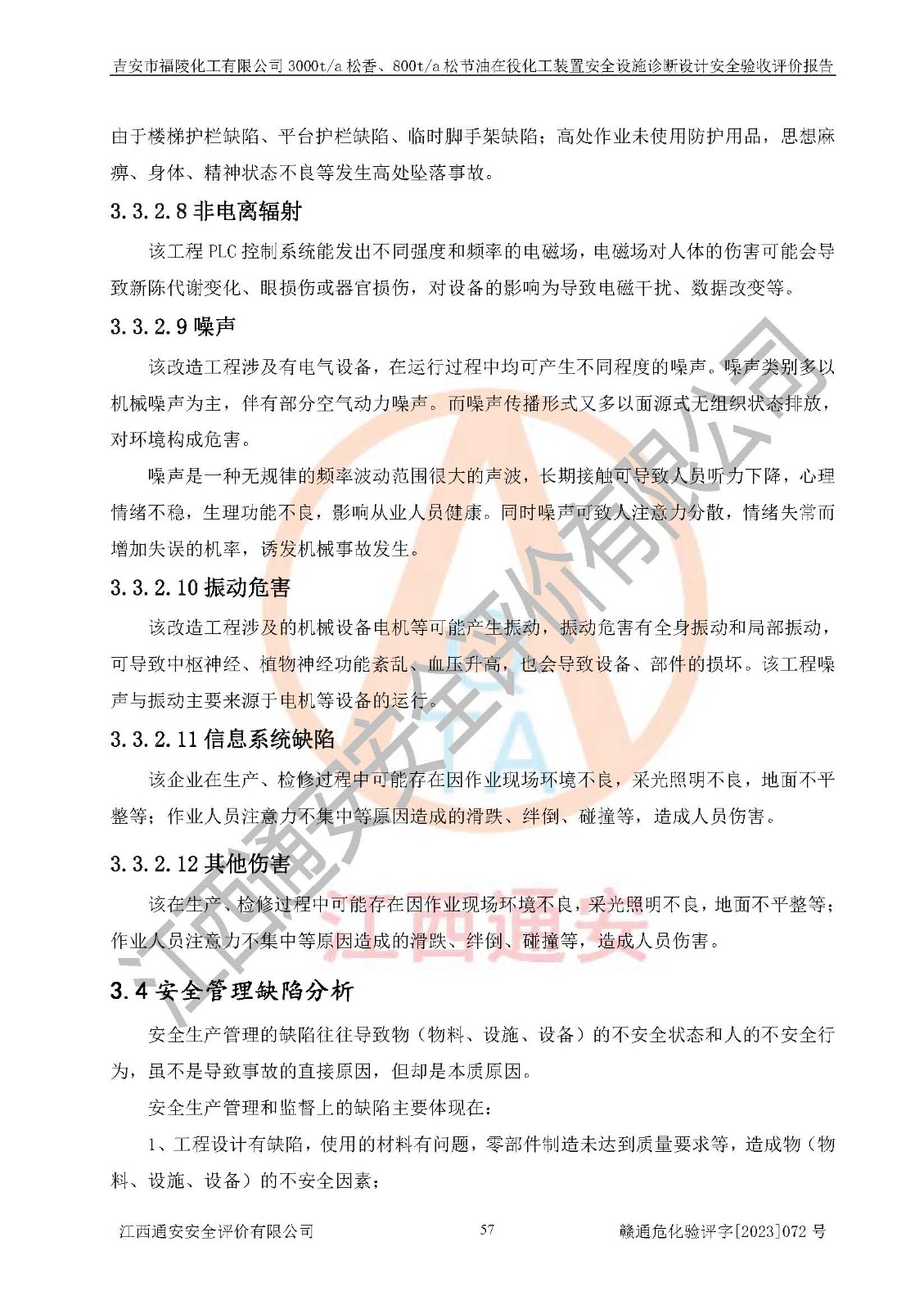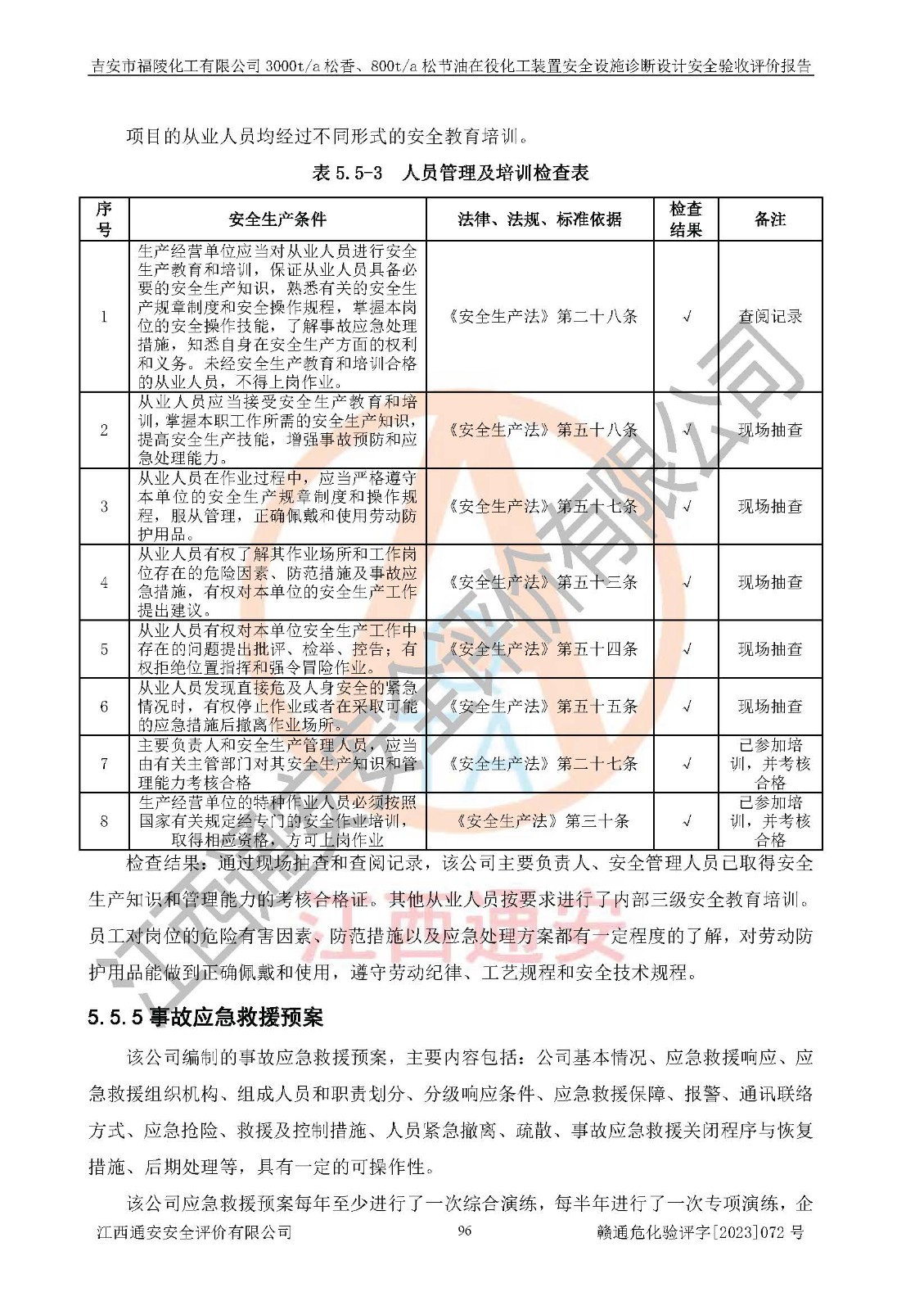 評價報告名稱 | 吉安市福陵化工有限公司3000ta松香、800ta松節(jié)油在役化工裝置安全設施診斷設計安全驗收評價報告 | |||