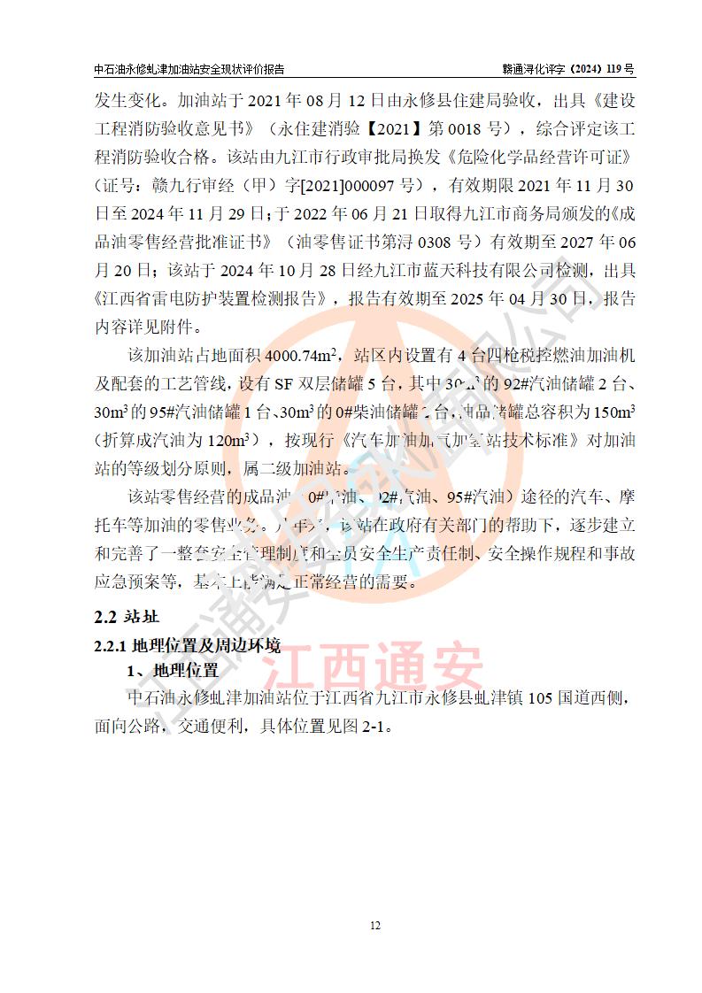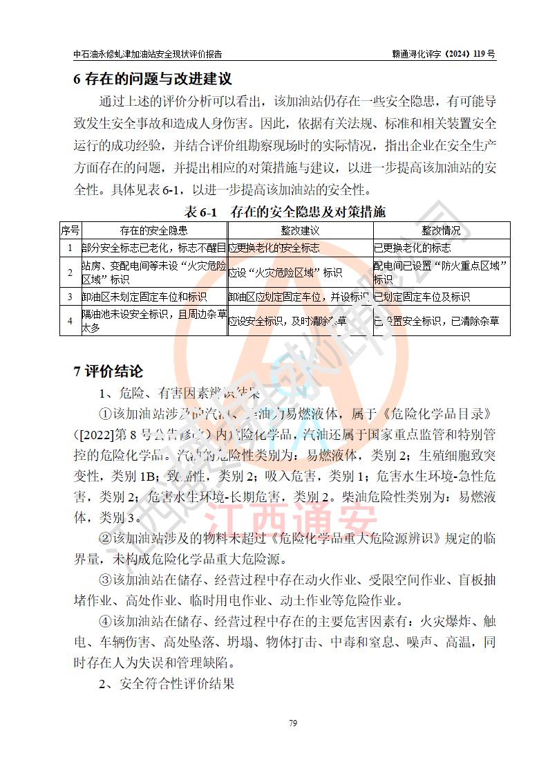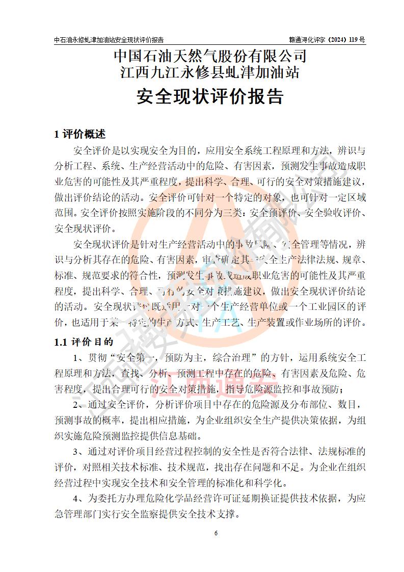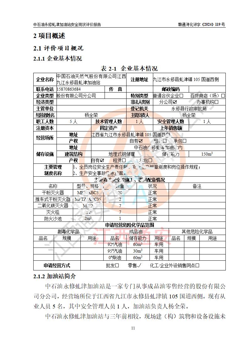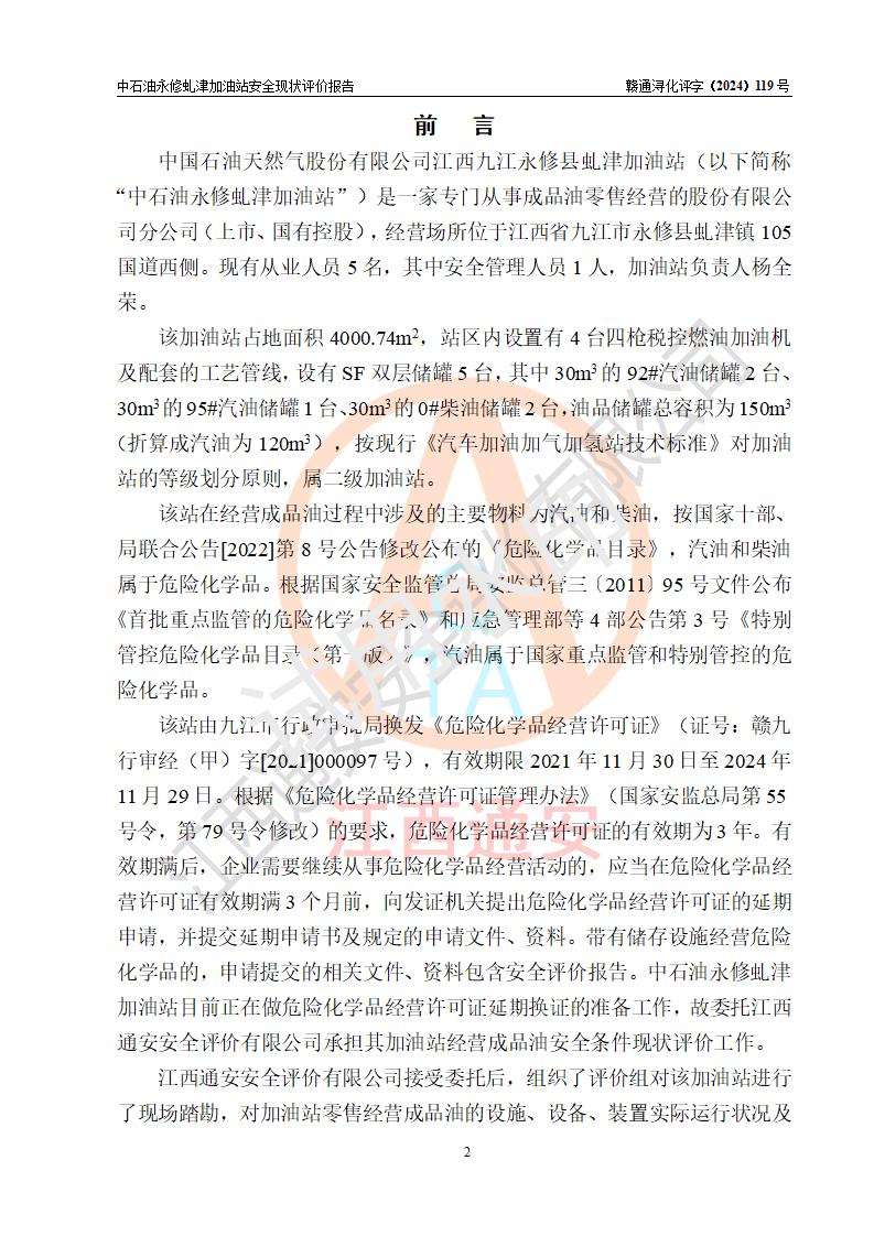 評價報告名稱 | 中國石油天然氣股份有限公司江西九江永修縣虬津加油站安全現(xiàn)狀評價報告 | |||