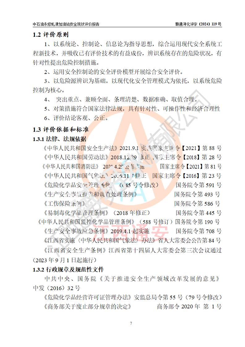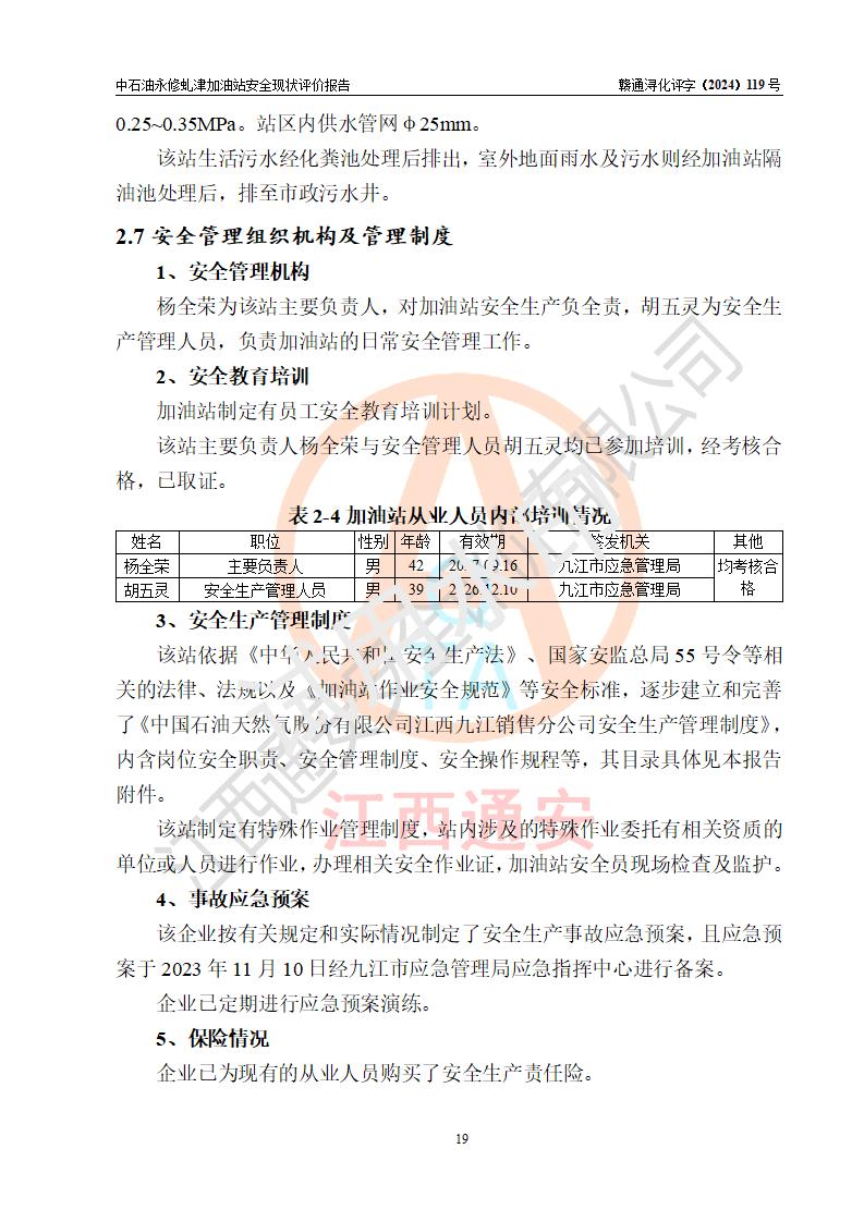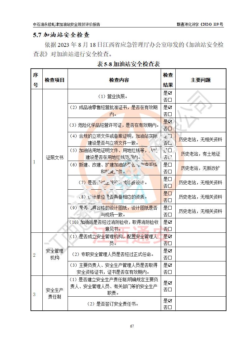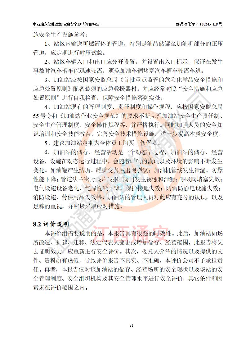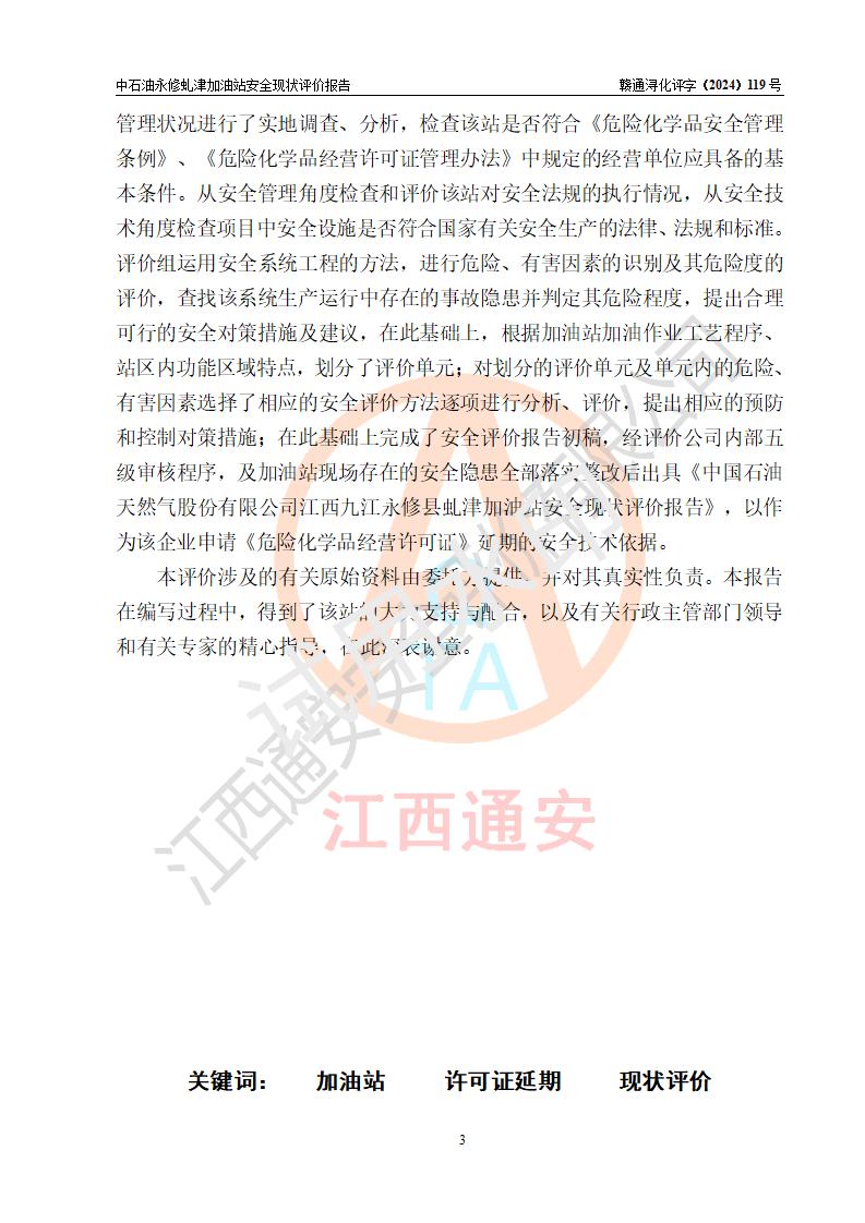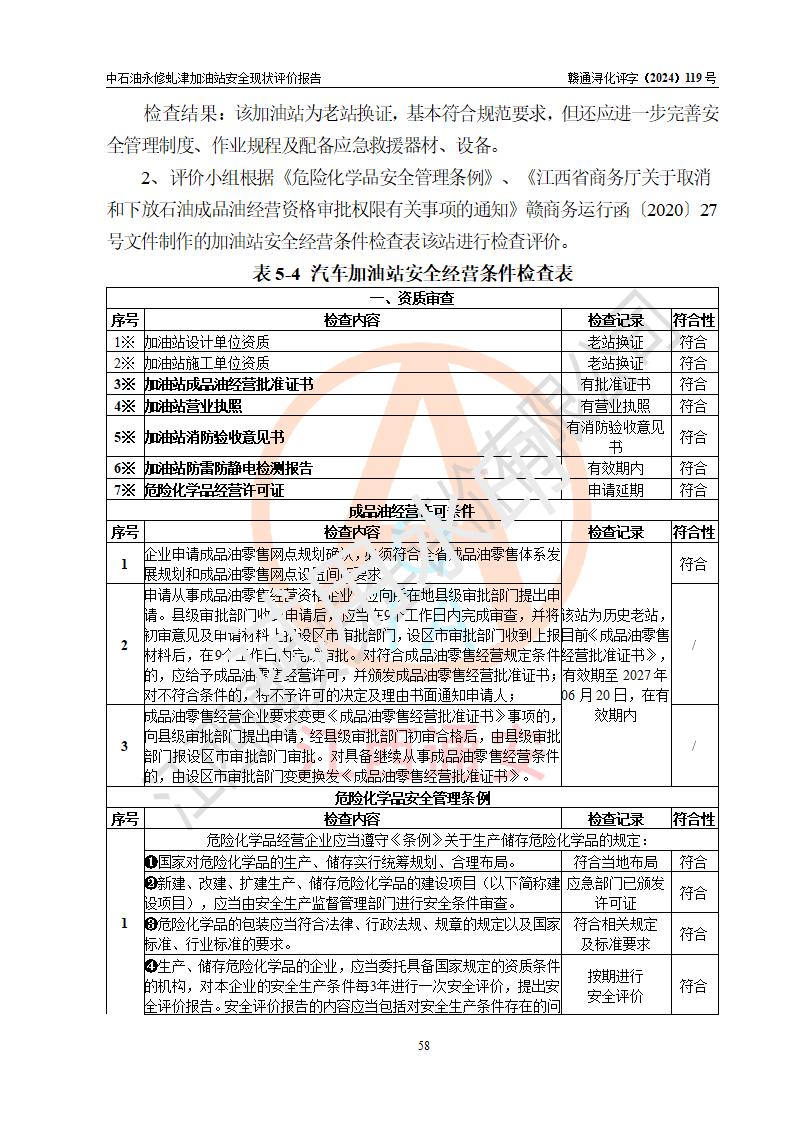 評價報告名稱 | 中國石油天然氣股份有限公司江西九江永修縣虬津加油站安全現(xiàn)狀評價報告 | |||