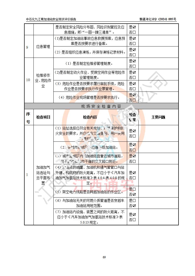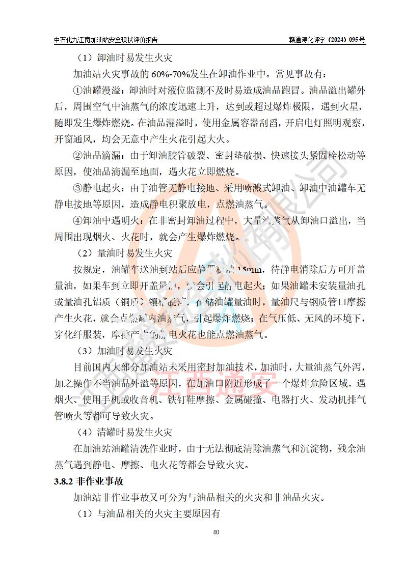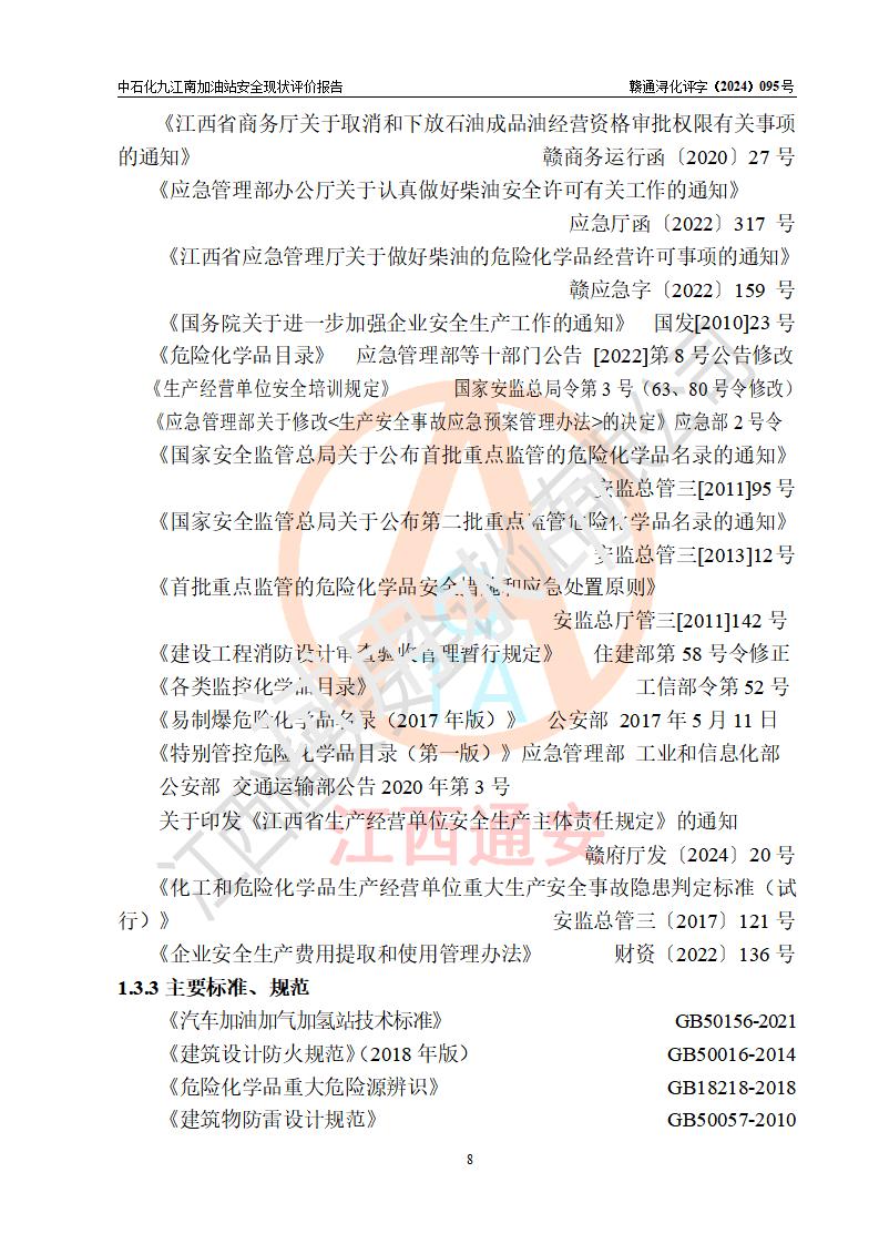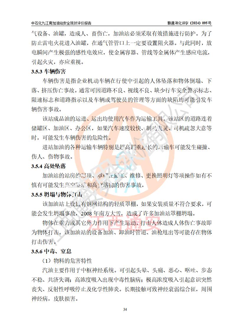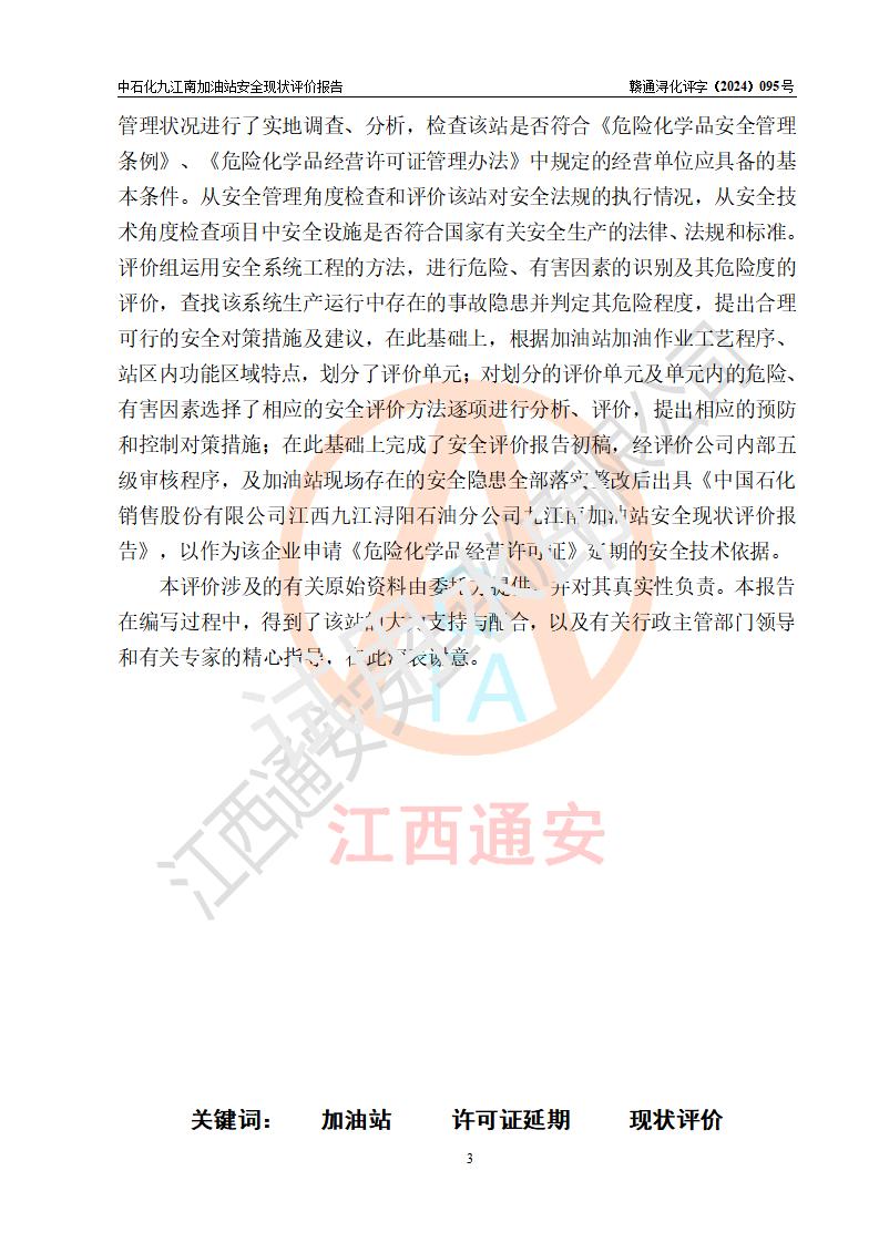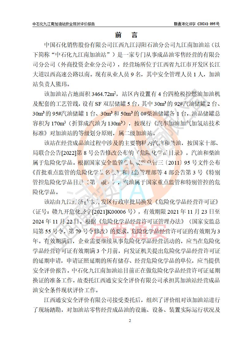 評價報告名稱 | 中國石化銷售股份有限公司江西九江潯陽石油分公司九江南加油站安全現(xiàn)狀評價報告 | |||
