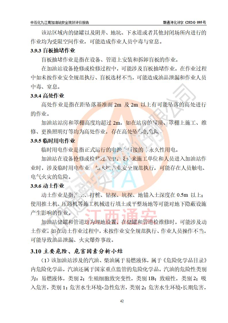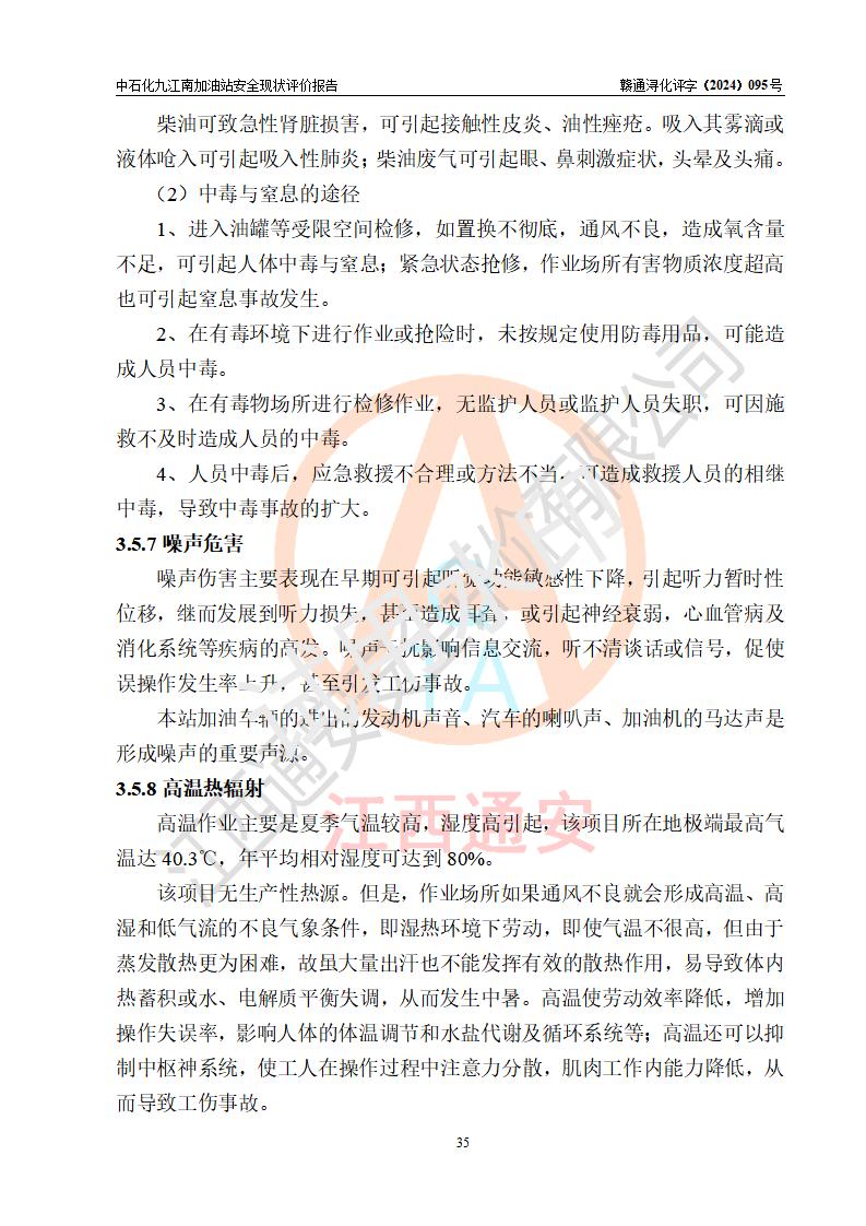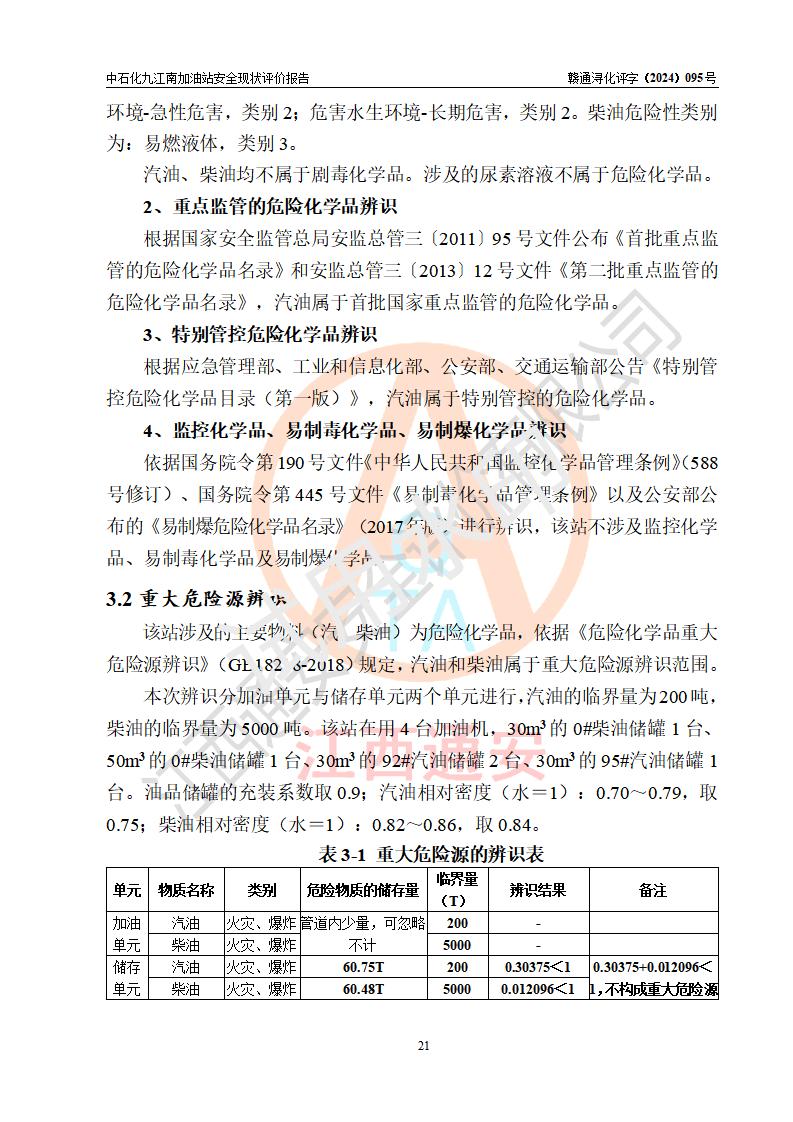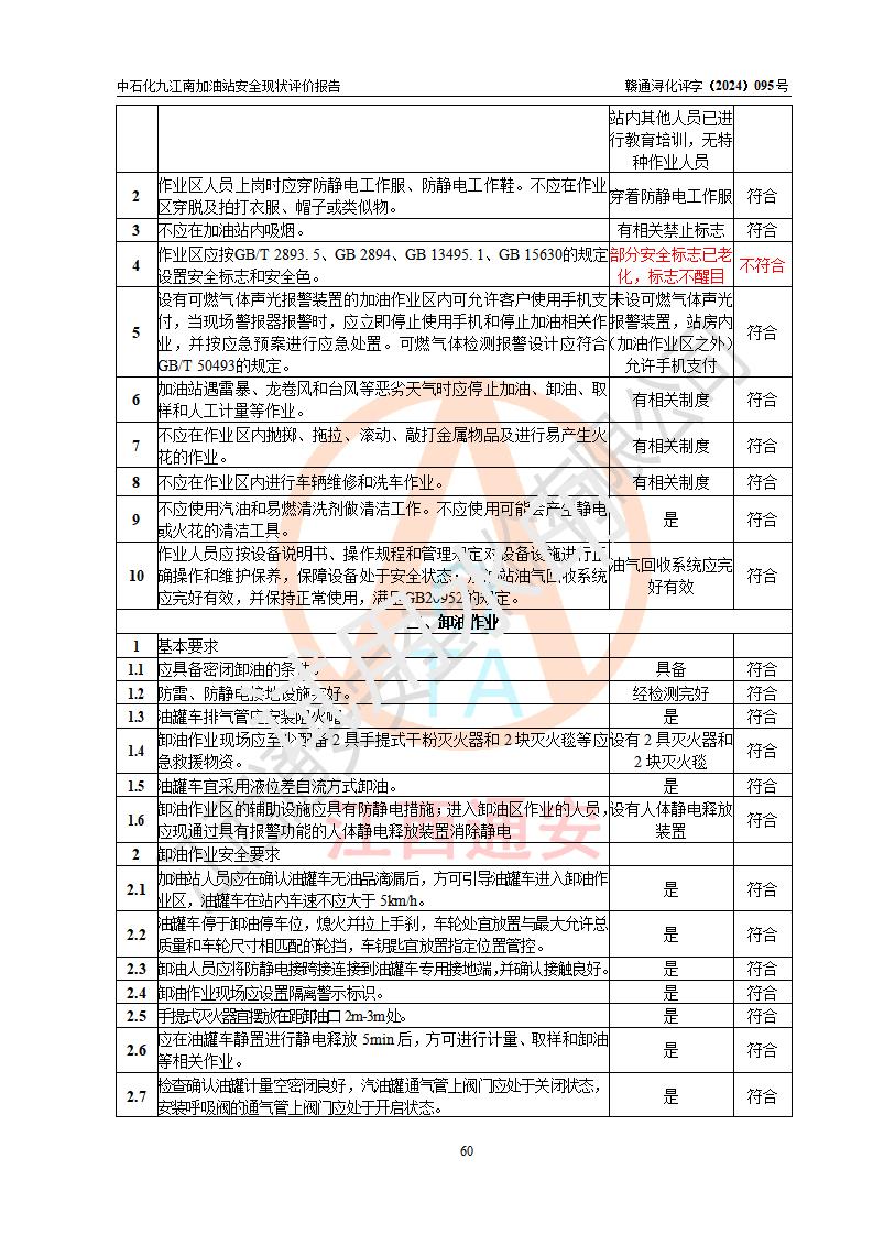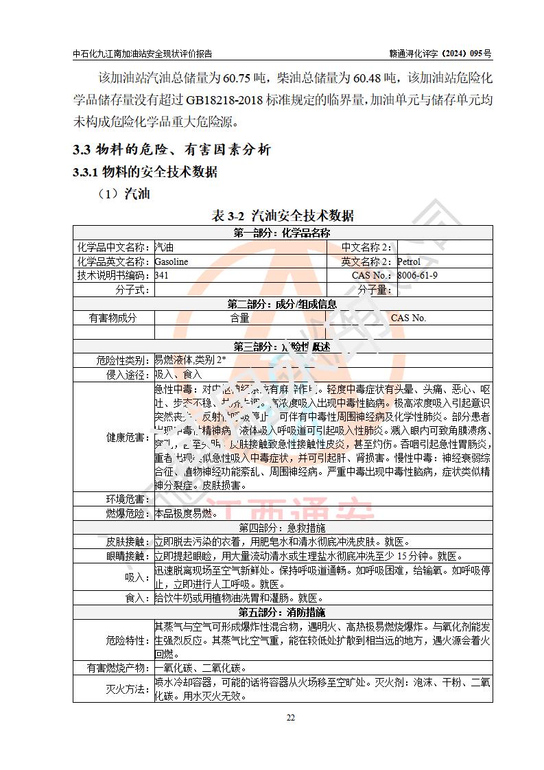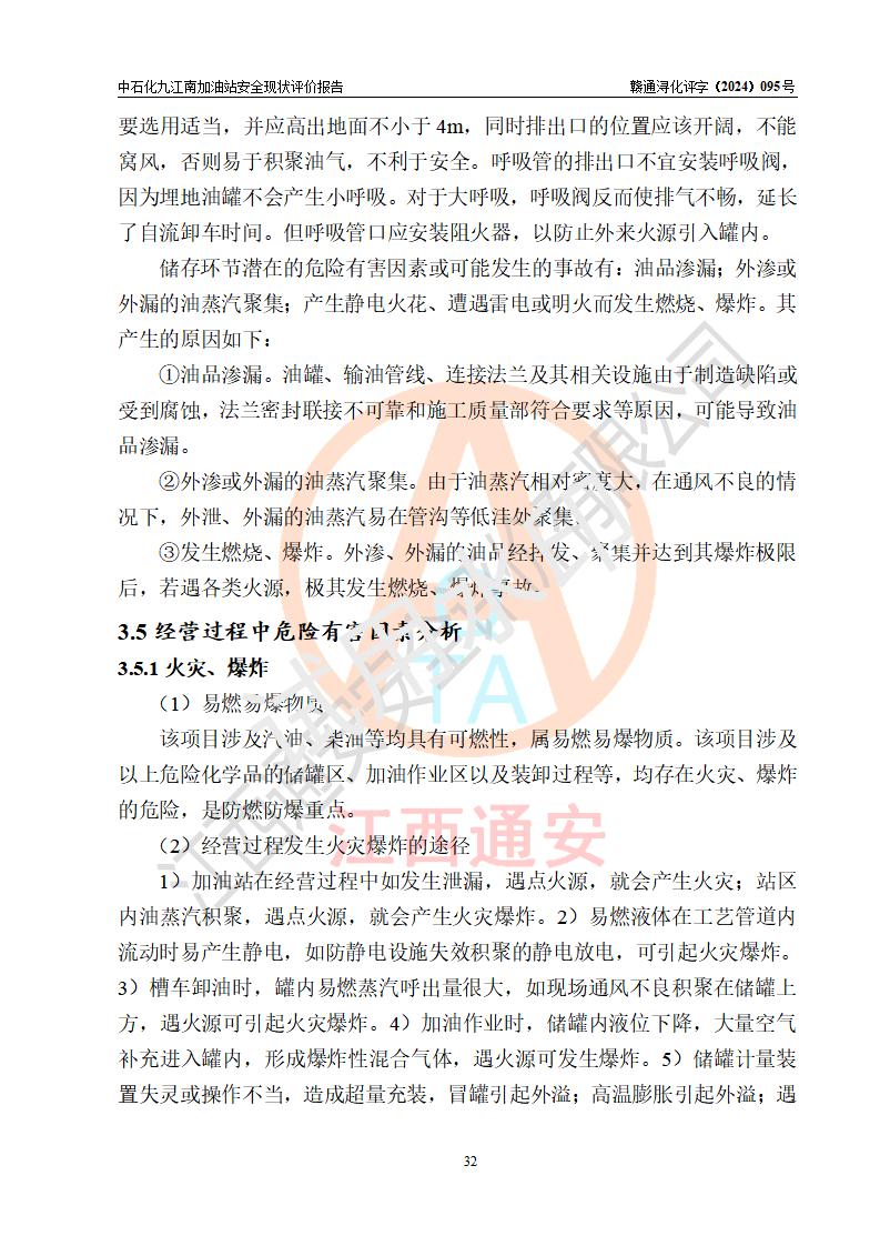 評價結(jié)論 | 中國石化銷售股份有限公司江西九江潯陽石油分公司九江南加油站涉及的安全條件、安全經(jīng)營條件、安全生產(chǎn)管理符合《危險化學(xué)品經(jīng)營許可證管理辦法》、《汽車加油加氣加氫站技術(shù)標(biāo)準(zhǔn)》等**有關(guān)法規(guī)、標(biāo)準(zhǔn)、規(guī)范要求,能滿足危險化學(xué)品經(jīng)營安全條件。 | |||