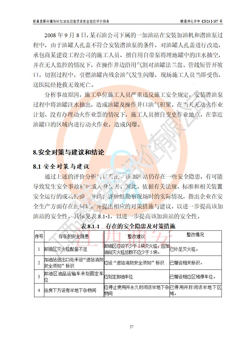 評價報告名稱 | 都昌縣蔡嶺鎮(zhèn)張嶺加油站改造項目安全驗收評價報告 | |||