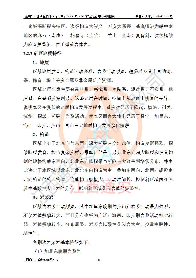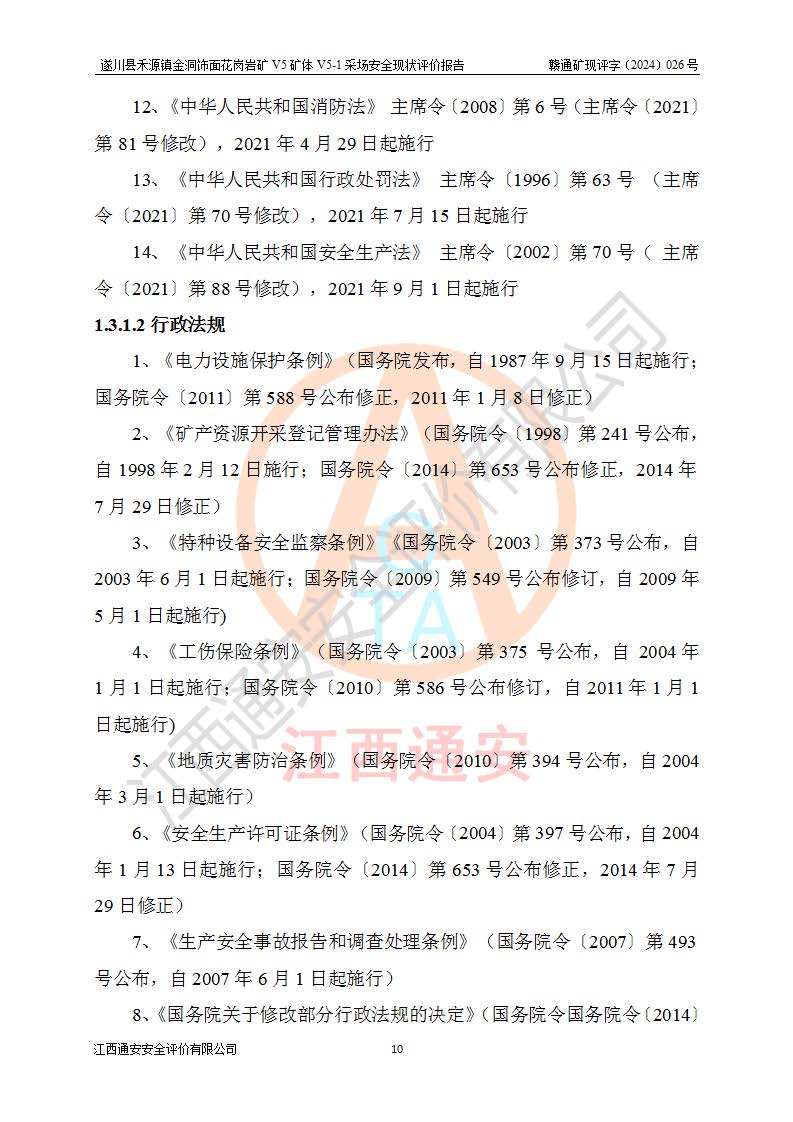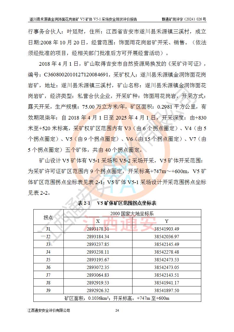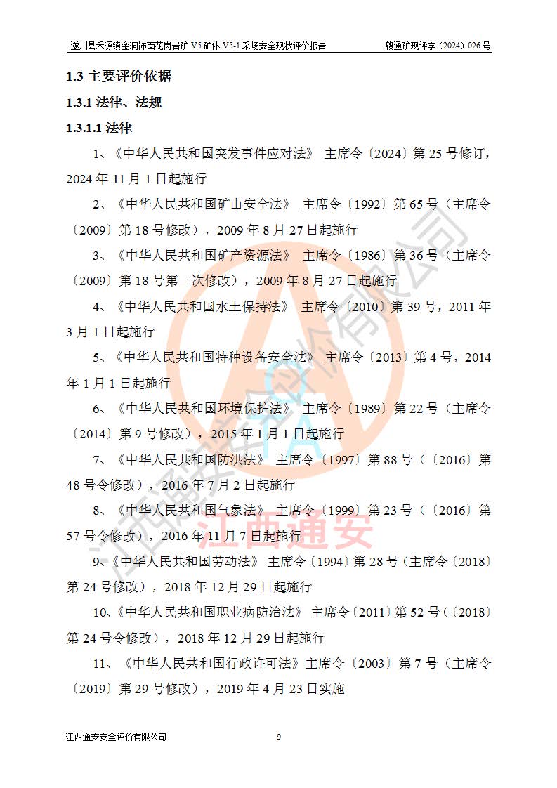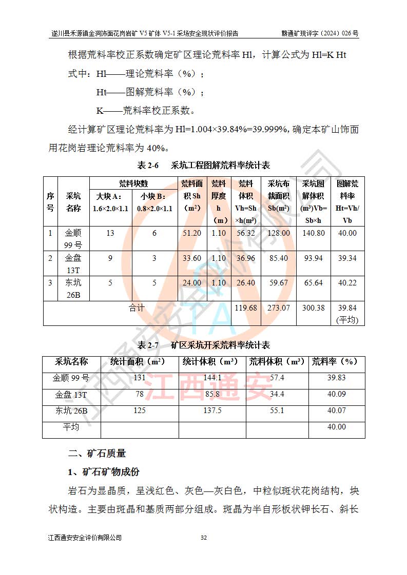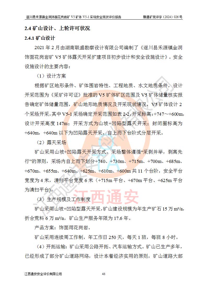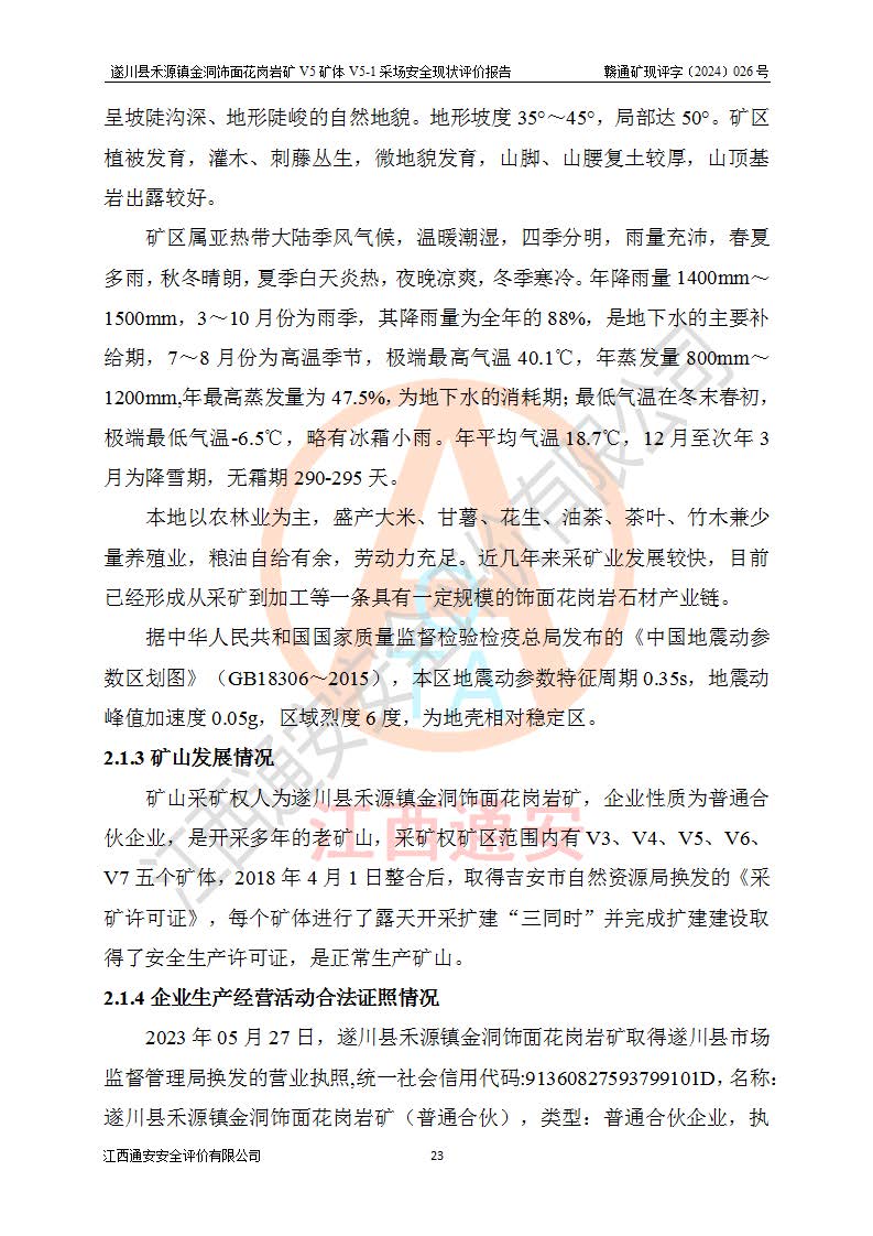 1、該評價項目中存在的主要危險因素:火災,坍塌(滑坡),**傷害,機械傷害,觸電與雷擊,物體打擊,泥石流,起重傷害,高處墜落,淹溺,容器爆炸等危險有害因素。 2、該評價項目中存在的有害因素包括:粉塵、噪聲與振動、不良作業(yè)環(huán)境,如高溫、雷擊對礦山人員的傷害和其他不利的環(huán)境因素等。 3、該評價項目為非金屬露天礦山,無瓦斯和自燃發(fā)火危險,礦區(qū)范圍內(nèi)及周邊無較大水系,礦區(qū)水文地質(zhì)條件簡單。該礦山只是對飾面用石料進行機械開采,不使用有毒有害危險化學品藥劑。該評價項目使用的壓力容器為空壓機儲氣罐,其工作介質(zhì)為空氣,屬**性、非易燃介質(zhì)。綜合上述分析,本評價項目不存在重大危險源。 上述主要危險、有害因素在采取本報告第六章中提出的安全對策措施及建議后,能得到**控制。遂川縣禾源鎮(zhèn)金洞飾面花崗巖礦V5礦體V5-1采場設備、設施和場所符合**安全生產(chǎn)有關法律、法規(guī)、標準及規(guī)范的規(guī)定。礦山采用露天開采、公路開拓、汽車運輸方式,安全生產(chǎn)條件一般,能滿足基本的安全生產(chǎn)活動;安全管理能滿足法規(guī)要求,礦山露天開采按照《安全設施設計》組織生產(chǎn)、具備安全生產(chǎn)條件。 |