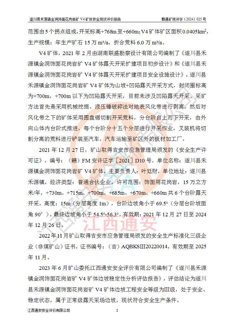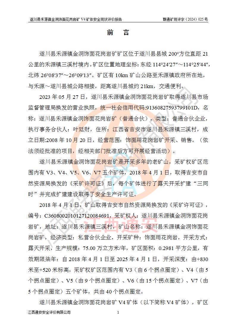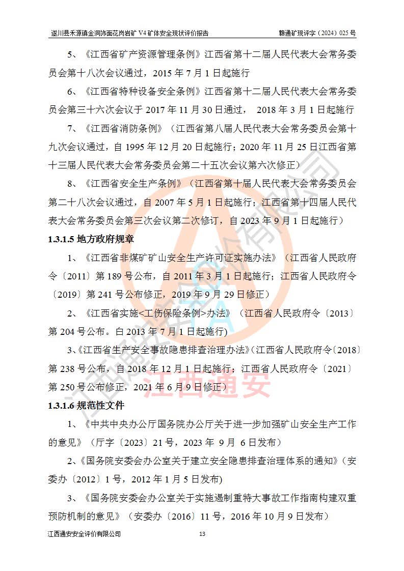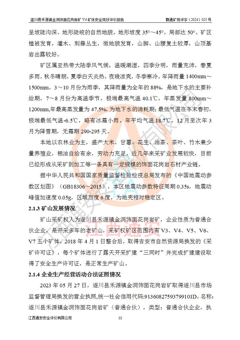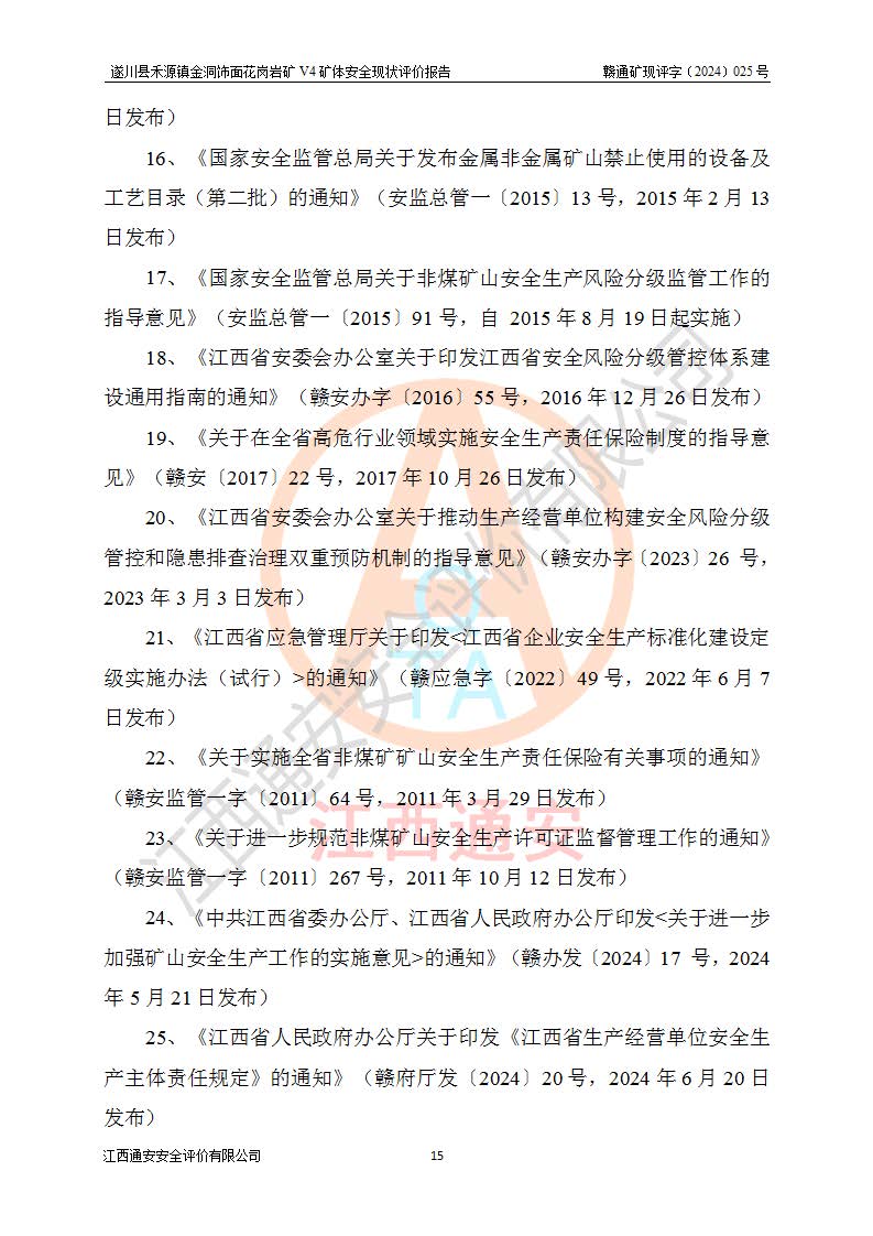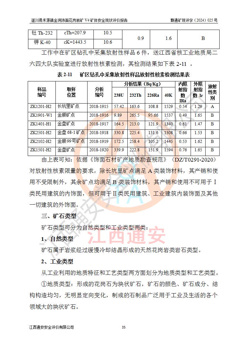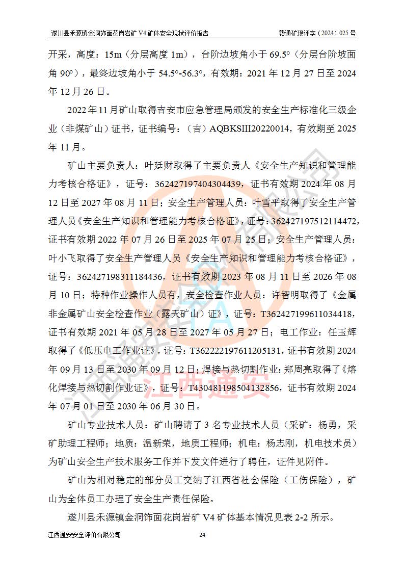1、該評(píng)價(jià)項(xiàng)目中存在的主要危險(xiǎn)因素:火災(zāi),坍塌(滑坡),**傷害,機(jī)械傷害,觸電與雷擊,物體打擊,泥石流,起重傷害,高處墜落,淹溺,容器爆炸等危險(xiǎn)有害因素。 2、該評(píng)價(jià)項(xiàng)目中存在的有害因素包括:粉塵、噪聲與振動(dòng)、不良作業(yè)環(huán)境,如高溫、雷擊對(duì)礦山人員的傷害和其他不利的環(huán)境因素等。 3、該評(píng)價(jià)項(xiàng)目為非金屬露天礦山,無(wú)瓦斯和自燃發(fā)火危險(xiǎn),礦區(qū)范圍內(nèi)及周邊無(wú)較大水系,礦區(qū)水文地質(zhì)條件簡(jiǎn)單。該礦山只是對(duì)飾面用石料進(jìn)行機(jī)械開采,不使用有毒有害危險(xiǎn)化學(xué)品藥劑。該評(píng)價(jià)項(xiàng)目使用的壓力容器為空壓機(jī)儲(chǔ)氣罐,其工作介質(zhì)為空氣,屬**性、非易燃介質(zhì)。綜合上述分析,本評(píng)價(jià)項(xiàng)目不存在重大危險(xiǎn)源。 上述主要危險(xiǎn)、有害因素在采取本報(bào)告第六章中提出的安全對(duì)策措施及建議后,能得到**控制。遂川縣禾源鎮(zhèn)金洞飾面花崗巖礦V4礦體設(shè)備、設(shè)施和場(chǎng)所符合**安全生產(chǎn)有關(guān)法律、法規(guī)、標(biāo)準(zhǔn)及規(guī)范的規(guī)定。礦山采用露天開采、公路開拓、汽車運(yùn)輸方式,安全生產(chǎn)條件一般,能滿足基本的安全生產(chǎn)活動(dòng);安全管理能滿足法規(guī)要求,礦山露天開采按照《安全設(shè)施設(shè)計(jì)》組織生產(chǎn)、具備安全生產(chǎn)條件。 |