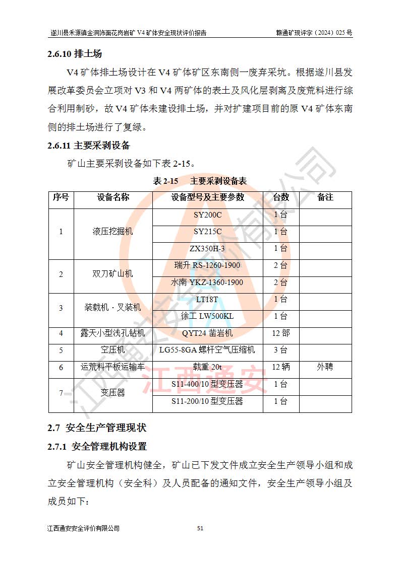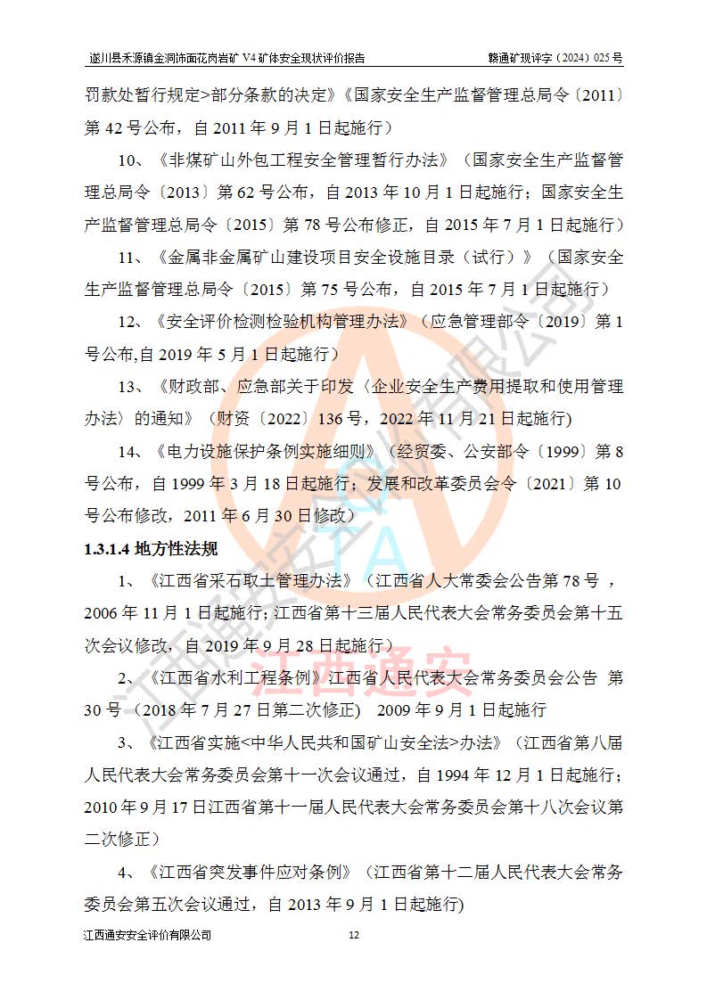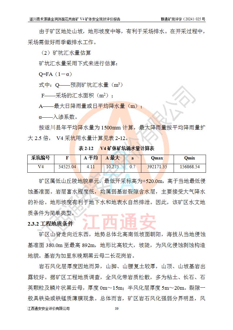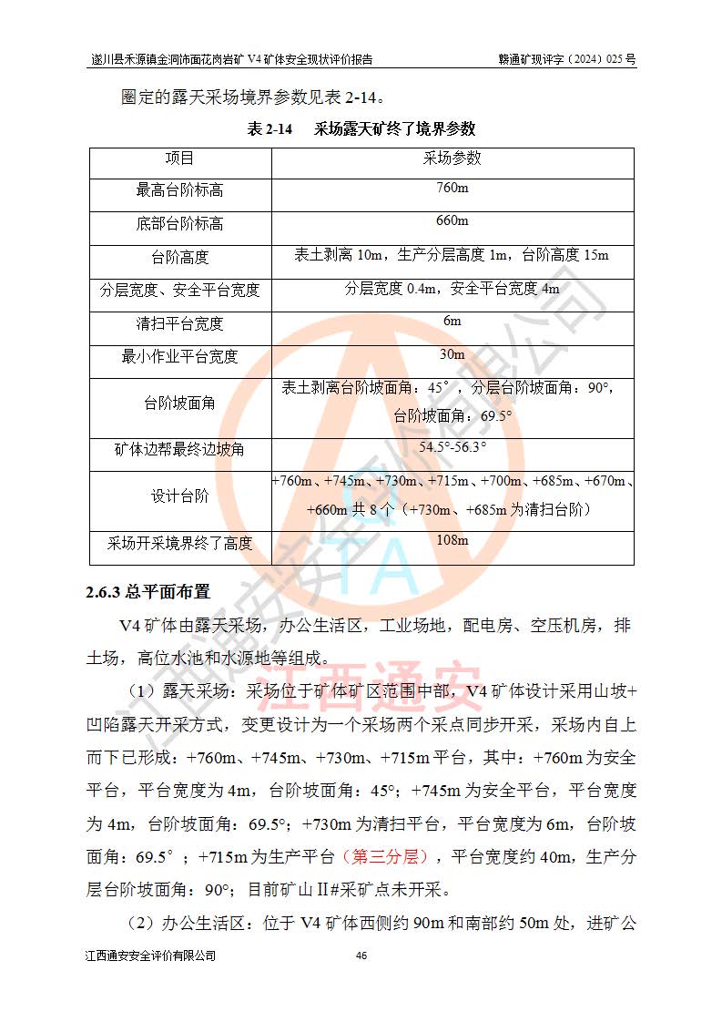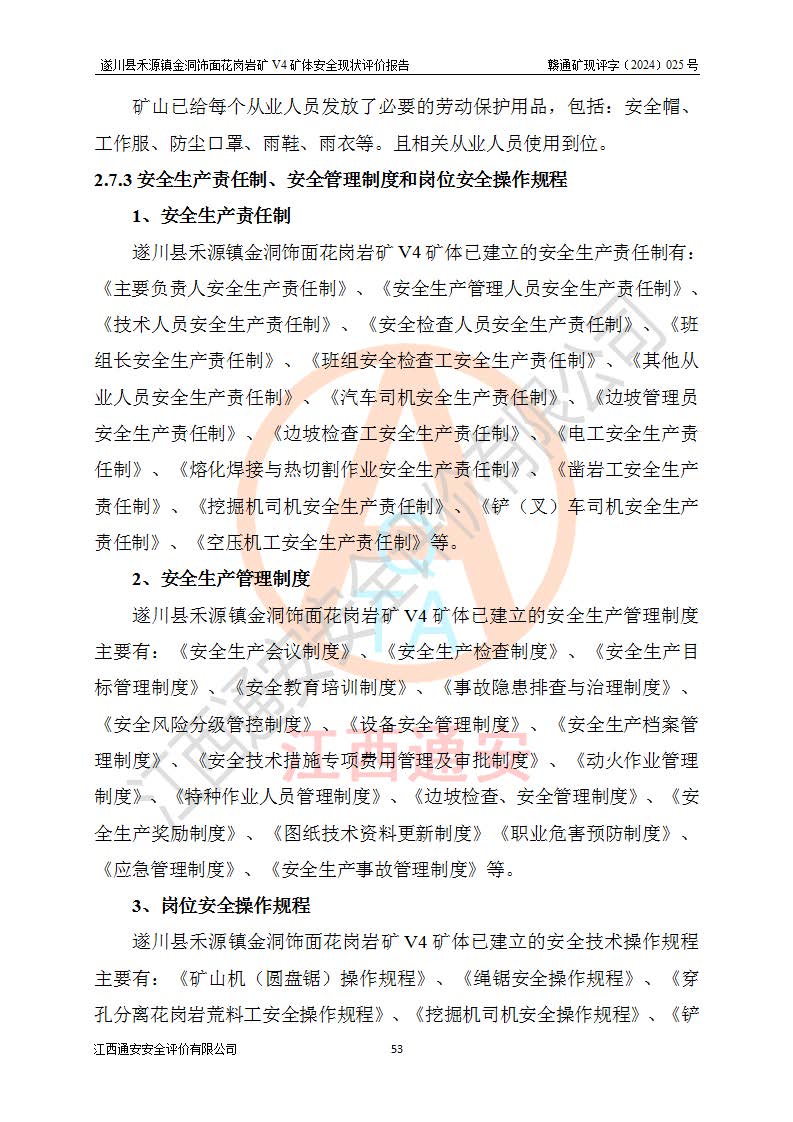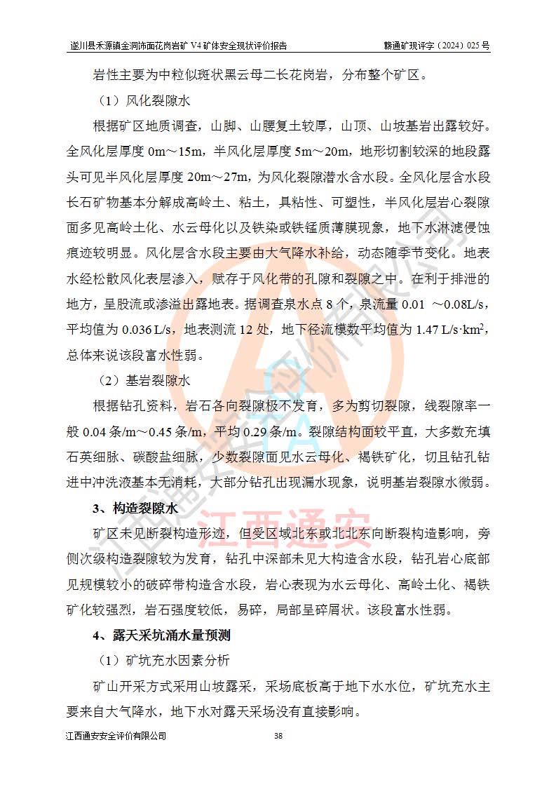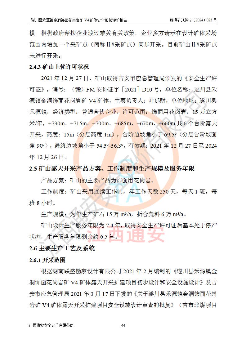 1、該評(píng)價(jià)項(xiàng)目中存在的主要危險(xiǎn)因素:火災(zāi),坍塌(滑坡),**傷害,機(jī)械傷害,觸電與雷擊,物體打擊,泥石流,起重傷害,高處墜落,淹溺,容器爆炸等危險(xiǎn)有害因素。 2、該評(píng)價(jià)項(xiàng)目中存在的有害因素包括:粉塵、噪聲與振動(dòng)、不良作業(yè)環(huán)境,如高溫、雷擊對(duì)礦山人員的傷害和其他不利的環(huán)境因素等。 3、該評(píng)價(jià)項(xiàng)目為非金屬露天礦山,無(wú)瓦斯和自燃發(fā)火危險(xiǎn),礦區(qū)范圍內(nèi)及周邊無(wú)較大水系,礦區(qū)水文地質(zhì)條件簡(jiǎn)單。該礦山只是對(duì)飾面用石料進(jìn)行機(jī)械開采,不使用有毒有害危險(xiǎn)化學(xué)品藥劑。該評(píng)價(jià)項(xiàng)目使用的壓力容器為空壓機(jī)儲(chǔ)氣罐,其工作介質(zhì)為空氣,屬**性、非易燃介質(zhì)。綜合上述分析,本評(píng)價(jià)項(xiàng)目不存在重大危險(xiǎn)源。 上述主要危險(xiǎn)、有害因素在采取本報(bào)告第六章中提出的安全對(duì)策措施及建議后,能得到**控制。遂川縣禾源鎮(zhèn)金洞飾面花崗巖礦V4礦體設(shè)備、設(shè)施和場(chǎng)所符合**安全生產(chǎn)有關(guān)法律、法規(guī)、標(biāo)準(zhǔn)及規(guī)范的規(guī)定。礦山采用露天開采、公路開拓、汽車運(yùn)輸方式,安全生產(chǎn)條件一般,能滿足基本的安全生產(chǎn)活動(dòng);安全管理能滿足法規(guī)要求,礦山露天開采按照《安全設(shè)施設(shè)計(jì)》組織生產(chǎn)、具備安全生產(chǎn)條件。 |