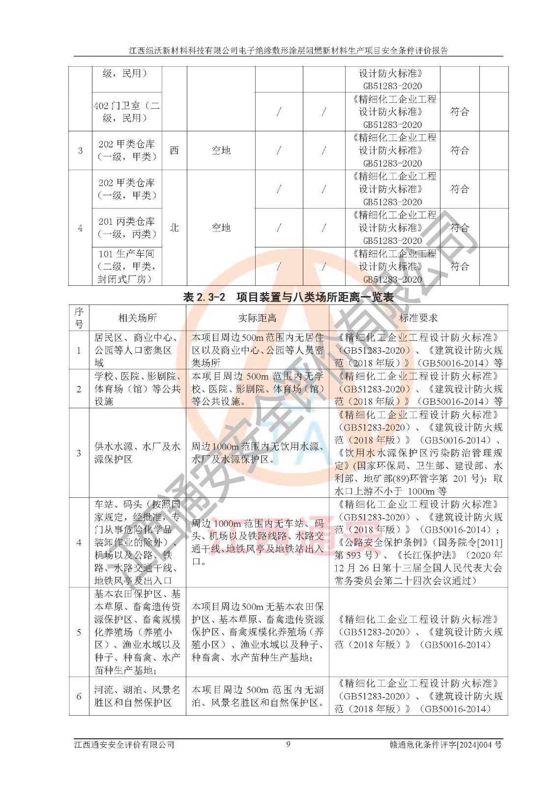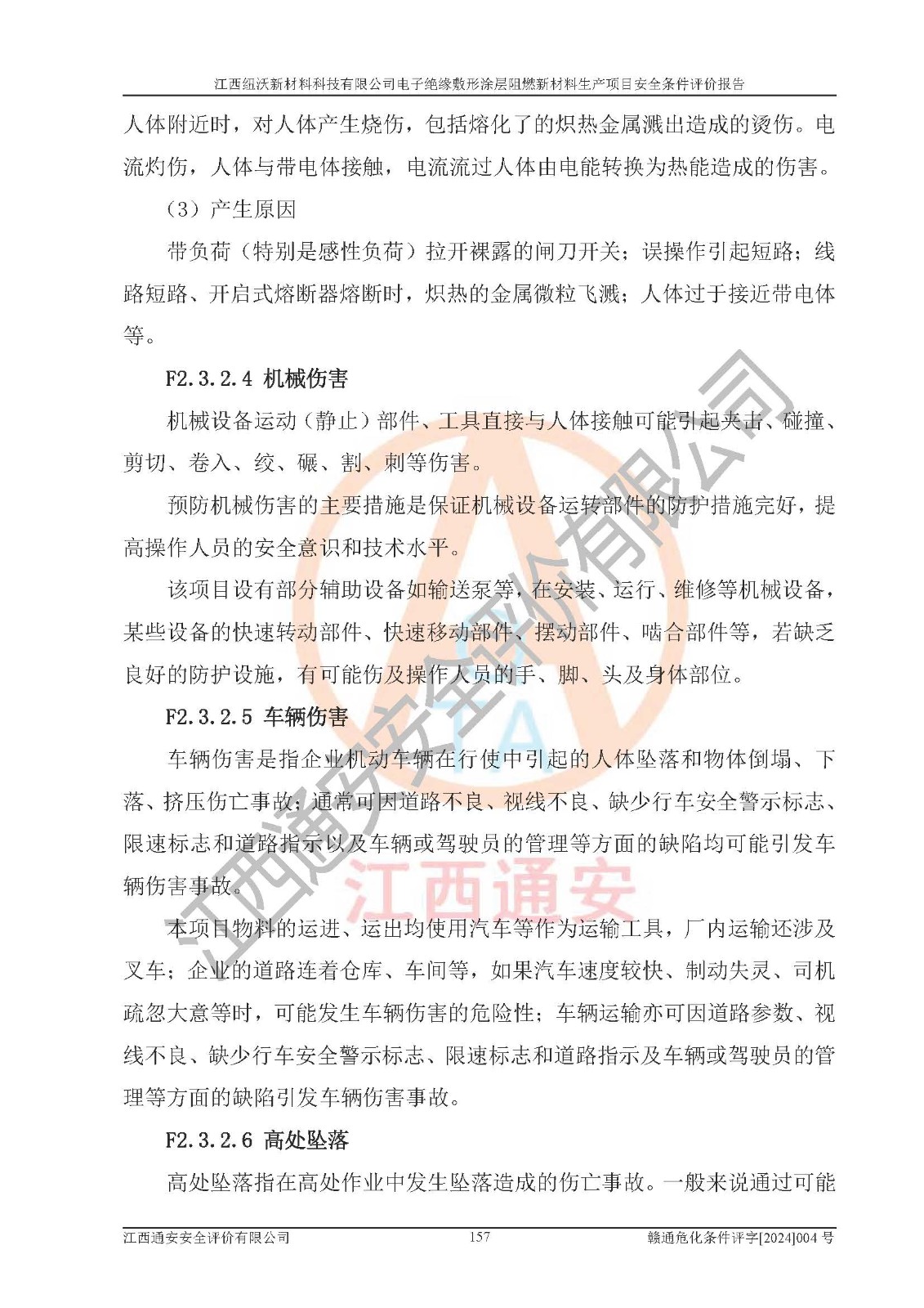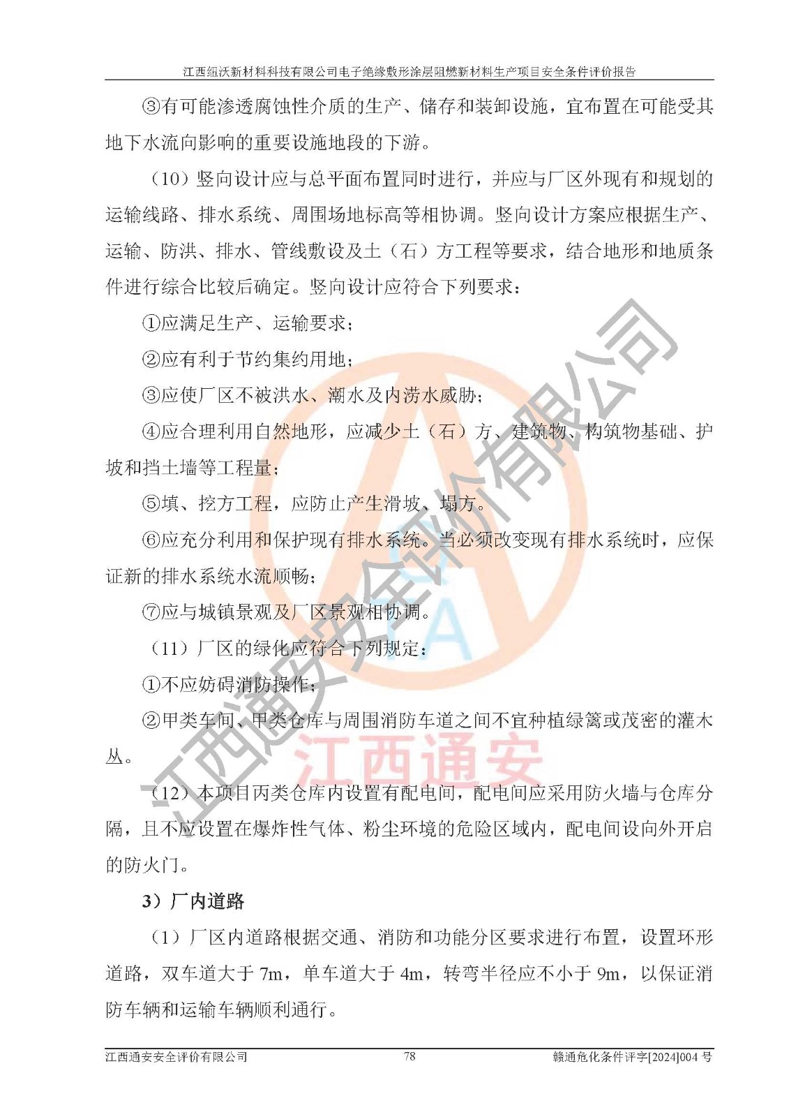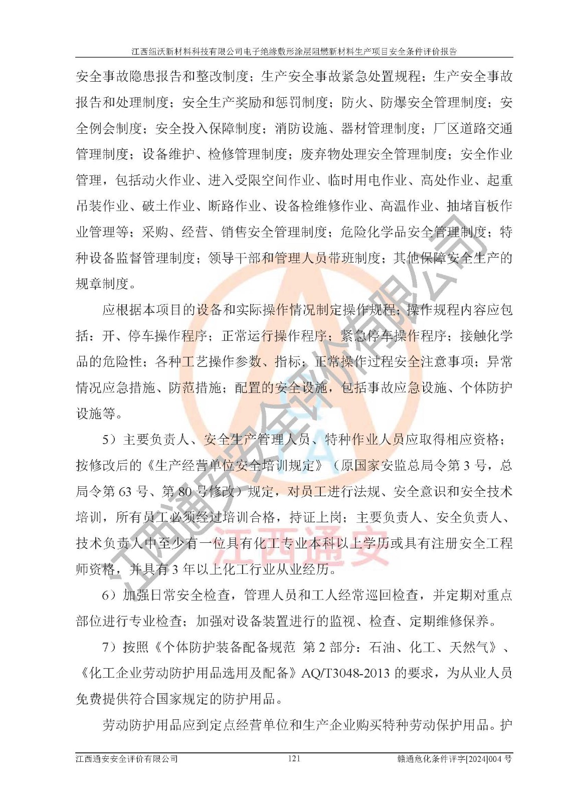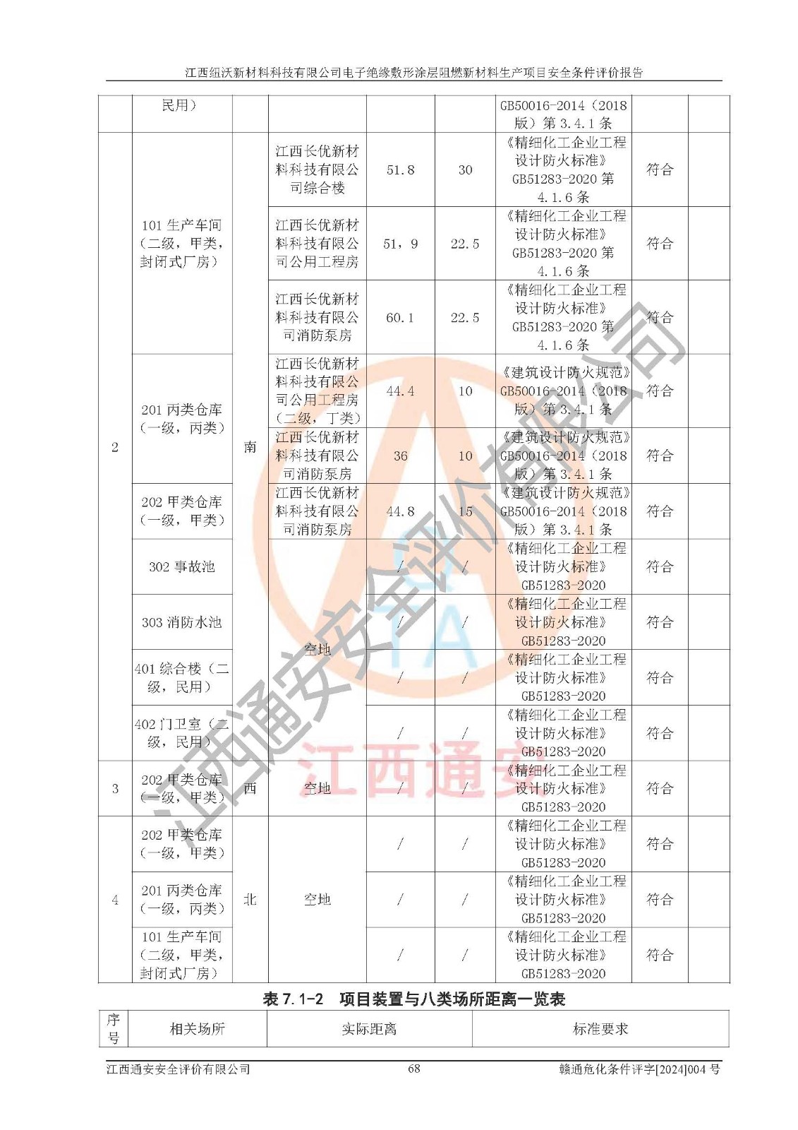 1)本項(xiàng)目依法取得了《江西省企業(yè)投資項(xiàng)目備案通知書》、《建設(shè)用地規(guī)劃許可證》,符合地方產(chǎn)業(yè)發(fā)展規(guī)劃的要求。 2)根據(jù)《**安全監(jiān)管總局關(guān)于公布首批重點(diǎn)監(jiān)管的危險(xiǎn)化工工藝目錄的通知》(安監(jiān)總管三[2009]116號(hào))和《**安全監(jiān)管總局關(guān)于公布第二批重點(diǎn)監(jiān)管危險(xiǎn)化工工藝目錄和調(diào)整首批重點(diǎn)監(jiān)管危險(xiǎn)化工工藝中部分典型工藝的通知》(安監(jiān)總管三[2013]3號(hào)),該項(xiàng)目未涉及重點(diǎn)監(jiān)管危險(xiǎn)化工工藝。 3)根據(jù)《危險(xiǎn)化學(xué)品重大危險(xiǎn)源辨識(shí)》(GB18218-2018),該項(xiàng)目未構(gòu)成危險(xiǎn)化學(xué)品重大危險(xiǎn)源。 4)項(xiàng)目存在的主要危險(xiǎn)因素有:火災(zāi)爆炸、容器爆炸、中毒窒息、灼燙、觸電、**傷害、機(jī)械傷害、高處墜落、物體打擊、淹溺等,存在的主要危害因素有:噪聲與振動(dòng)、高溫、有害化學(xué)物質(zhì)等;引起事故的原因有人的不安全行為、物的不安全狀態(tài)、管理缺陷和環(huán)境不良。其中*主要的危險(xiǎn)有害因素是火災(zāi)爆炸。 5)采用預(yù)先危險(xiǎn)性分析法評(píng)價(jià),結(jié)果為: (1)通過預(yù)先危險(xiǎn)(PHA)分析可知,項(xiàng)目廠址及總體布局單元存在周邊環(huán)境相互影響,發(fā)生異常情況,可對(duì)周邊企業(yè)生產(chǎn)經(jīng)營活動(dòng)、人員活動(dòng)產(chǎn)生影響;存在自然條件影響,可因雷擊、暴雨等引起事故;存在**傷害、建筑物危害,其固有的危險(xiǎn)性等級(jí)為Ⅱ級(jí),屬于“臨界的”,應(yīng)予以排除、采取控制措施因素。 (2)生產(chǎn)作業(yè)存在的危險(xiǎn)因素包括火災(zāi)爆炸、觸電、灼燙、中毒窒息固有的危險(xiǎn)等級(jí)為Ⅲ級(jí),屬于“危險(xiǎn)的”,可能導(dǎo)致人員傷亡和系統(tǒng)損壞的因素,需要采取防范和對(duì)策措施的因素;其它危險(xiǎn)因素固有的危險(xiǎn)等級(jí)為Ⅱ級(jí),屬于“臨界的”,應(yīng)予以排除、采取控制措施因素。 (3)生產(chǎn)作業(yè)存在的噪聲、粉塵、高溫、有害化學(xué)物質(zhì)的危險(xiǎn)有害因素等級(jí)為Ⅱ級(jí),屬于“臨界的”,應(yīng)予以排除、采取控制措施因素。 6)危險(xiǎn)度評(píng)價(jià)分析,結(jié)果為: 生產(chǎn)裝置危險(xiǎn)度評(píng)價(jià)分析:101生產(chǎn)車間為**危險(xiǎn)(Ⅰ級(jí))。 儲(chǔ)存單元危險(xiǎn)度評(píng)價(jià)分析:202甲類倉庫為**危險(xiǎn)(Ⅰ級(jí)),201丙類倉庫為低度危險(xiǎn)(Ⅲ級(jí))。 7)作業(yè)條件危險(xiǎn)性評(píng)價(jià)結(jié)果:在選定的評(píng)價(jià)單元中,其危險(xiǎn)分值均在70以下,危險(xiǎn)程度基本屬于“可能危險(xiǎn)”、“稍有危險(xiǎn)”范圍,作業(yè)條件相對(duì)安全。企業(yè)經(jīng)營過程中首先應(yīng)重點(diǎn)加強(qiáng)對(duì)甲類車間、甲類倉庫的危險(xiǎn)因素的嚴(yán)格控制,注重日常安全管理;其次要建立健全完善的安全生產(chǎn)責(zé)任制、安全管理制度、安全技術(shù)操作規(guī)程并**其貫徹落實(shí);第三要認(rèn)真抓好操作人員、管理人員的安全知識(shí)和操作技能的培訓(xùn),**人員具有與工程技術(shù)水平相適應(yīng)的技術(shù)素質(zhì)和安全素質(zhì),**安全作業(yè)。 8)項(xiàng)目建設(shè)場(chǎng)地符合當(dāng)?shù)匾?guī)劃要求,建設(shè)場(chǎng)地通過合理規(guī)劃,其選址、周邊環(huán)境、總平面布置、交通運(yùn)輸?shù)饶芊稀吨腥A人民共和國安全生產(chǎn)法》、《危險(xiǎn)化學(xué)品安全管理?xiàng)l例》、《建筑設(shè)計(jì)防火規(guī)范》、《精細(xì)化工企業(yè)工程設(shè)計(jì)防火標(biāo)準(zhǔn)》等法規(guī)、標(biāo)準(zhǔn)、規(guī)范要求。 廠址地區(qū)地震活動(dòng)相對(duì)較弱,災(zāi)害性天氣出現(xiàn)頻率稍高,自然災(zāi)害對(duì)項(xiàng)目建設(shè)具有**影響,通過采取相應(yīng)的防護(hù)措施,自然條件適宜建設(shè)。 9)建設(shè)項(xiàng)目符合**產(chǎn)業(yè)政策的要求;選擇工藝為現(xiàn)行成熟工藝,其安全可靠性可得到**。 10)本報(bào)告已根據(jù)有關(guān)安全生產(chǎn)法律、法規(guī)、規(guī)章和**標(biāo)準(zhǔn)、行業(yè)標(biāo)準(zhǔn),并嚴(yán)格執(zhí)行省委辦公廳省**辦公廳《關(guān)于全面加強(qiáng)危險(xiǎn)化學(xué)品安全生產(chǎn)工作的實(shí)施意見》(贛辦發(fā)[2020]32號(hào))及鄱陽湖生態(tài)經(jīng)濟(jì)區(qū)、長(zhǎng)江經(jīng)濟(jì)帶、“五河一湖”相關(guān)政策規(guī)定,客觀、公正、科學(xué)地進(jìn)行安全評(píng)價(jià),項(xiàng)目符合《江西省應(yīng)急管理廳關(guān)于印發(fā)《江西省危險(xiǎn)化學(xué)品建設(shè)項(xiàng)目安全監(jiān)督管理實(shí)施細(xì)則》(試行)的通知》(贛應(yīng)急字[2021]100號(hào))的要求。 11)本報(bào)告結(jié)合工藝特征,提出應(yīng)采取的對(duì)應(yīng)的自動(dòng)化控制系統(tǒng)及自動(dòng)化實(shí)施方案,滿足《江西省應(yīng)急管理廳關(guān)于印發(fā)《江西省化工企業(yè)自動(dòng)化提升實(shí)施方案》(試行)的通知》(贛應(yīng)急字[2021]190號(hào))的要求。 綜上所述:江西紐沃新材料科技有限公司電