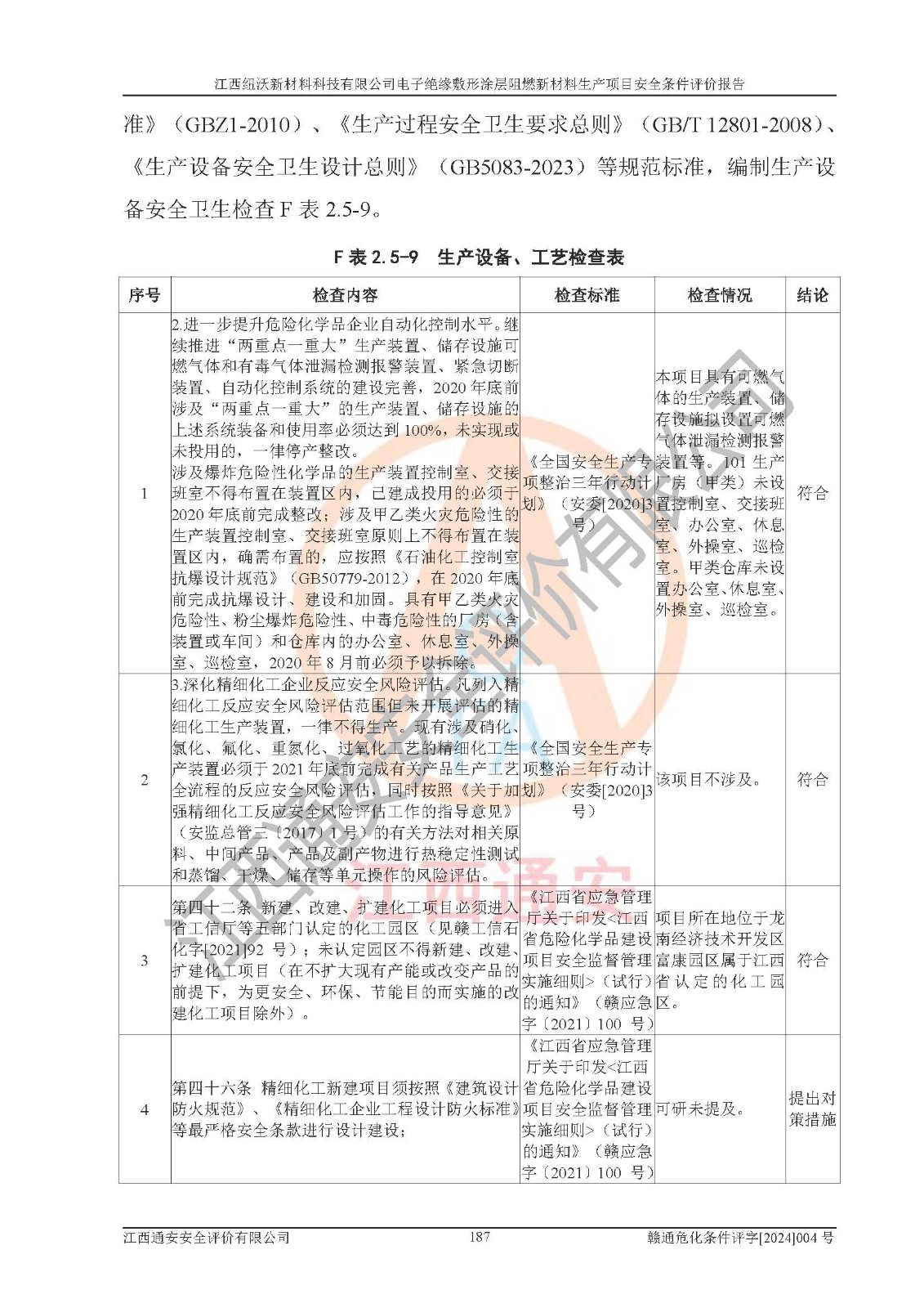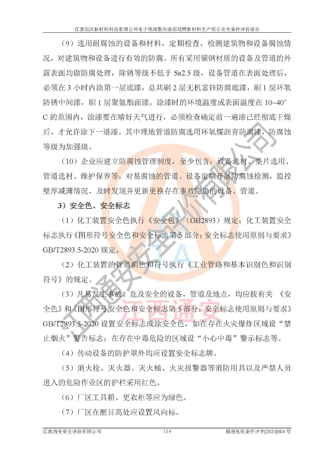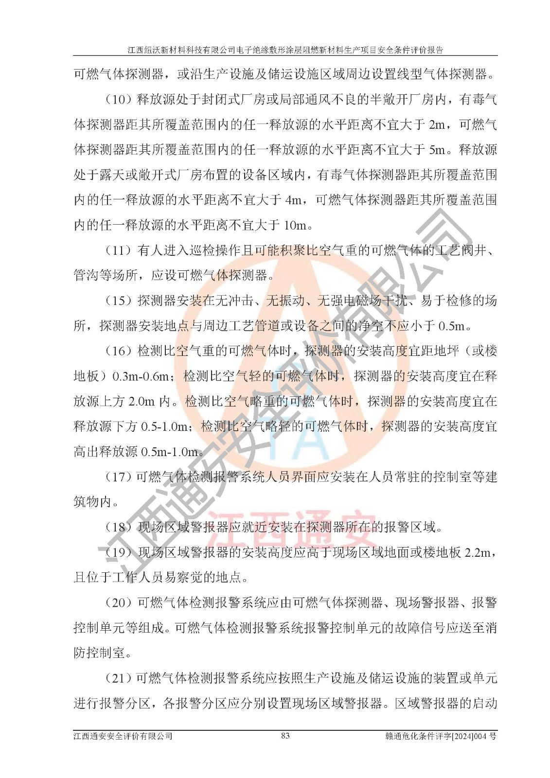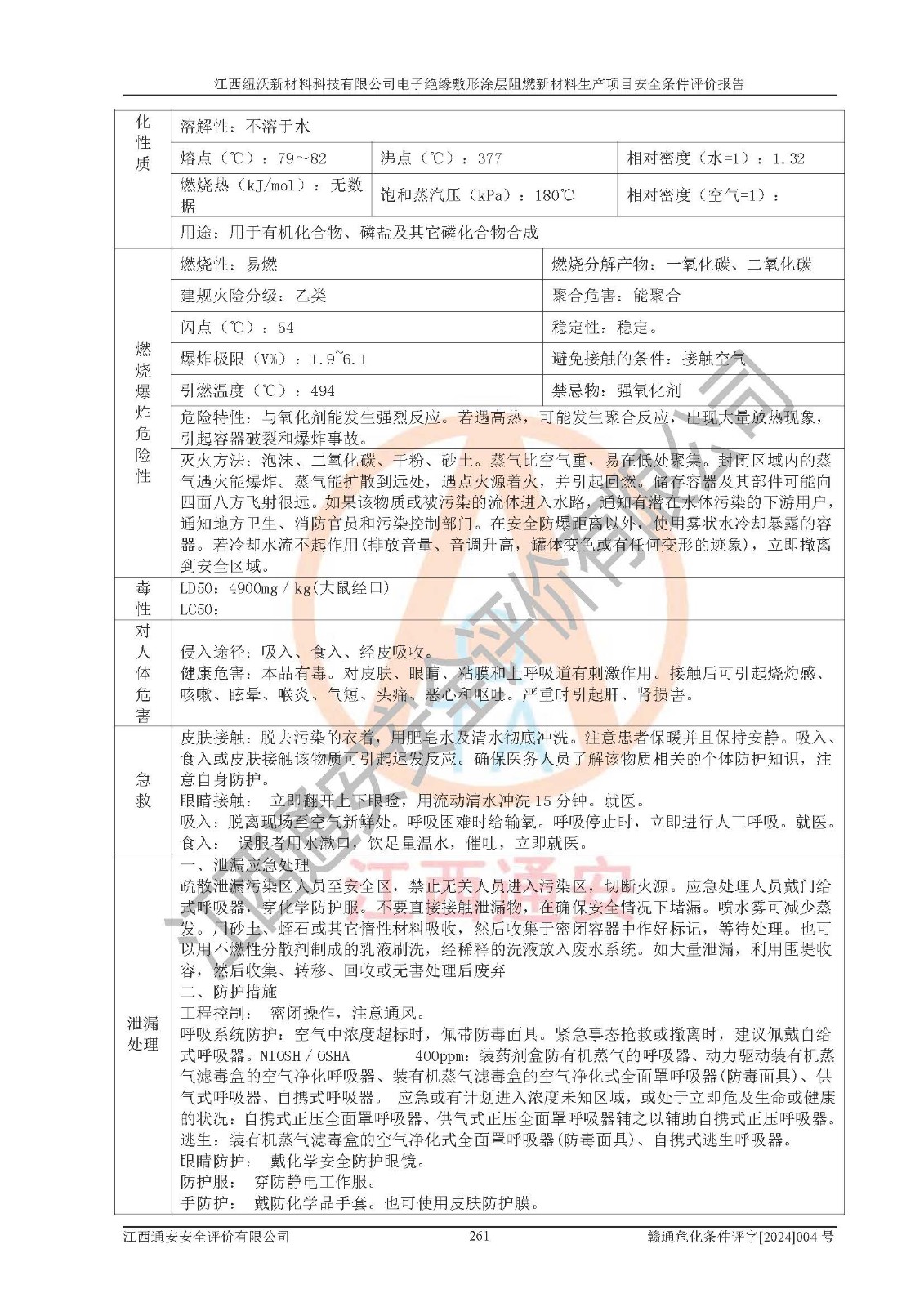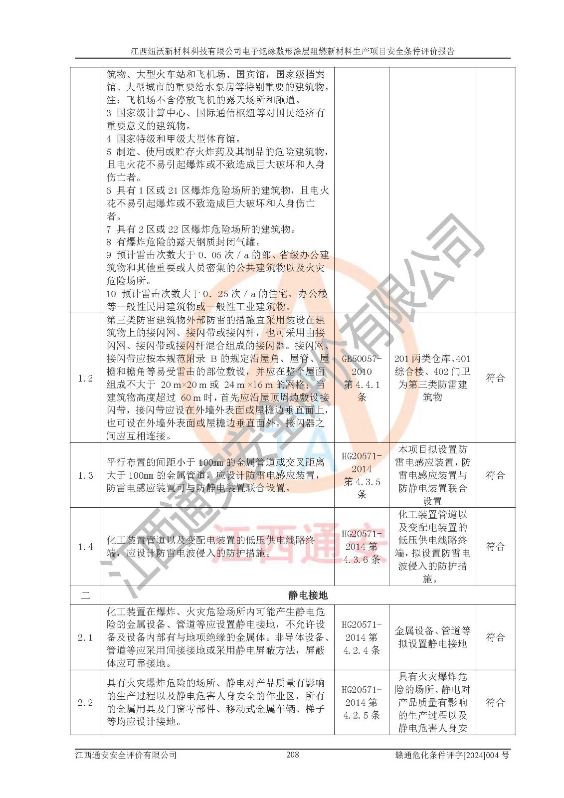 1)本項(xiàng)目依法取得了《江西省企業(yè)投資項(xiàng)目備案通知書》、《建設(shè)用地規(guī)劃許可證》,符合地方產(chǎn)業(yè)發(fā)展規(guī)劃的要求。 2)根據(jù)《**安全監(jiān)管總局關(guān)于公布首批重點(diǎn)監(jiān)管的危險(xiǎn)化工工藝目錄的通知》(安監(jiān)總管三[2009]116號(hào))和《**安全監(jiān)管總局關(guān)于公布第二批重點(diǎn)監(jiān)管危險(xiǎn)化工工藝目錄和調(diào)整首批重點(diǎn)監(jiān)管危險(xiǎn)化工工藝中部分典型工藝的通知》(安監(jiān)總管三[2013]3號(hào)),該項(xiàng)目未涉及重點(diǎn)監(jiān)管危險(xiǎn)化工工藝。 3)根據(jù)《危險(xiǎn)化學(xué)品重大危險(xiǎn)源辨識(shí)》(GB18218-2018),該項(xiàng)目未構(gòu)成危險(xiǎn)化學(xué)品重大危險(xiǎn)源。 4)項(xiàng)目存在的主要危險(xiǎn)因素有:火災(zāi)爆炸、容器爆炸、中毒窒息、灼燙、觸電、**傷害、機(jī)械傷害、高處墜落、物體打擊、淹溺等,存在的主要危害因素有:噪聲與振動(dòng)、高溫、有害化學(xué)物質(zhì)等;引起事故的原因有人的不安全行為、物的不安全狀態(tài)、管理缺陷和環(huán)境不良。其中*主要的危險(xiǎn)有害因素是火災(zāi)爆炸。 5)采用預(yù)先危險(xiǎn)性分析法評(píng)價(jià),結(jié)果為: (1)通過預(yù)先危險(xiǎn)(PHA)分析可知,項(xiàng)目廠址及總體布局單元存在周邊環(huán)境相互影響,發(fā)生異常情況,可對(duì)周邊企業(yè)生產(chǎn)經(jīng)營活動(dòng)、人員活動(dòng)產(chǎn)生影響;存在自然條件影響,可因雷擊、暴雨等引起事故;存在**傷害、建筑物危害,其固有的危險(xiǎn)性等級(jí)為Ⅱ級(jí),屬于“臨界的”,應(yīng)予以排除、采取控制措施因素。 (2)生產(chǎn)作業(yè)存在的危險(xiǎn)因素包括火災(zāi)爆炸、觸電、灼燙、中毒窒息固有的危險(xiǎn)等級(jí)為Ⅲ級(jí),屬于“危險(xiǎn)的”,可能導(dǎo)致人員傷亡和系統(tǒng)損壞的因素,需要采取防范和對(duì)策措施的因素;其它危險(xiǎn)因素固有的危險(xiǎn)等級(jí)為Ⅱ級(jí),屬于“臨界的”,應(yīng)予以排除、采取控制措施因素。 (3)生產(chǎn)作業(yè)存在的噪聲、粉塵、高溫、有害化學(xué)物質(zhì)的危險(xiǎn)有害因素等級(jí)為Ⅱ級(jí),屬于“臨界的”,應(yīng)予以排除、采取控制措施因素。 6)危險(xiǎn)度評(píng)價(jià)分析,結(jié)果為: 生產(chǎn)裝置危險(xiǎn)度評(píng)價(jià)分析:101生產(chǎn)車間為**危險(xiǎn)(Ⅰ級(jí))。 儲(chǔ)存單元危險(xiǎn)度評(píng)價(jià)分析:202甲類倉庫為**危險(xiǎn)(Ⅰ級(jí)),201丙類倉庫為低度危險(xiǎn)(Ⅲ級(jí))。 7)作業(yè)條件危險(xiǎn)性評(píng)價(jià)結(jié)果:在選定的評(píng)價(jià)單元中,其危險(xiǎn)分值均在70以下,危險(xiǎn)程度基本屬于“可能危險(xiǎn)”、“稍有危險(xiǎn)”范圍,作業(yè)條件相對(duì)安全。企業(yè)經(jīng)營過程中首先應(yīng)重點(diǎn)加強(qiáng)對(duì)甲類車間、甲類倉庫的危險(xiǎn)因素的嚴(yán)格控制,注重日常安全管理;其次要建立健全完善的安全生產(chǎn)責(zé)任制、安全管理制度、安全技術(shù)操作規(guī)程并**其貫徹落實(shí);第三要認(rèn)真抓好操作人員、管理人員的安全知識(shí)和操作技能的培訓(xùn),**人員具有與工程技術(shù)水平相適應(yīng)的技術(shù)素質(zhì)和安全素質(zhì),**安全作業(yè)。 8)項(xiàng)目建設(shè)場(chǎng)地符合當(dāng)?shù)匾?guī)劃要求,建設(shè)場(chǎng)地通過合理規(guī)劃,其選址、周邊環(huán)境、總平面布置、交通運(yùn)輸?shù)饶芊稀吨腥A人民共和國安全生產(chǎn)法》、《危險(xiǎn)化學(xué)品安全管理?xiàng)l例》、《建筑設(shè)計(jì)防火規(guī)范》、《精細(xì)化工企業(yè)工程設(shè)計(jì)防火標(biāo)準(zhǔn)》等法規(guī)、標(biāo)準(zhǔn)、規(guī)范要求。 廠址地區(qū)地震活動(dòng)相對(duì)較弱,災(zāi)害性天氣出現(xiàn)頻率稍高,自然災(zāi)害對(duì)項(xiàng)目建設(shè)具有**影響,通過采取相應(yīng)的防護(hù)措施,自然條件適宜建設(shè)。 9)建設(shè)項(xiàng)目符合**產(chǎn)業(yè)政策的要求;選擇工藝為現(xiàn)行成熟工藝,其安全可靠性可得到**。 10)本報(bào)告已根據(jù)有關(guān)安全生產(chǎn)法律、法規(guī)、規(guī)章和**標(biāo)準(zhǔn)、行業(yè)標(biāo)準(zhǔn),并嚴(yán)格執(zhí)行省委辦公廳省**辦公廳《關(guān)于全面加強(qiáng)危險(xiǎn)化學(xué)品安全生產(chǎn)工作的實(shí)施意見》(贛辦發(fā)[2020]32號(hào))及鄱陽湖生態(tài)經(jīng)濟(jì)區(qū)、長(zhǎng)江經(jīng)濟(jì)帶、“五河一湖”相關(guān)政策規(guī)定,客觀、公正、科學(xué)地進(jìn)行安全評(píng)價(jià),項(xiàng)目符合《江西省應(yīng)急管理廳關(guān)于印發(fā)《江西省危險(xiǎn)化學(xué)品建設(shè)項(xiàng)目安全監(jiān)督管理實(shí)施細(xì)則》(試行)的通知》(贛應(yīng)急字[2021]100號(hào))的要求。 11)本報(bào)告結(jié)合工藝特征,提出應(yīng)采取的對(duì)應(yīng)的自動(dòng)化控制系統(tǒng)及自動(dòng)化實(shí)施方案,滿足《江西省應(yīng)急管理廳關(guān)于印發(fā)《江西省化工企業(yè)自動(dòng)化提升實(shí)施方案》(試行)的通知》(贛應(yīng)急字[2021]190號(hào))的要求。 綜上所述:江西紐沃新材料科技有限公司電