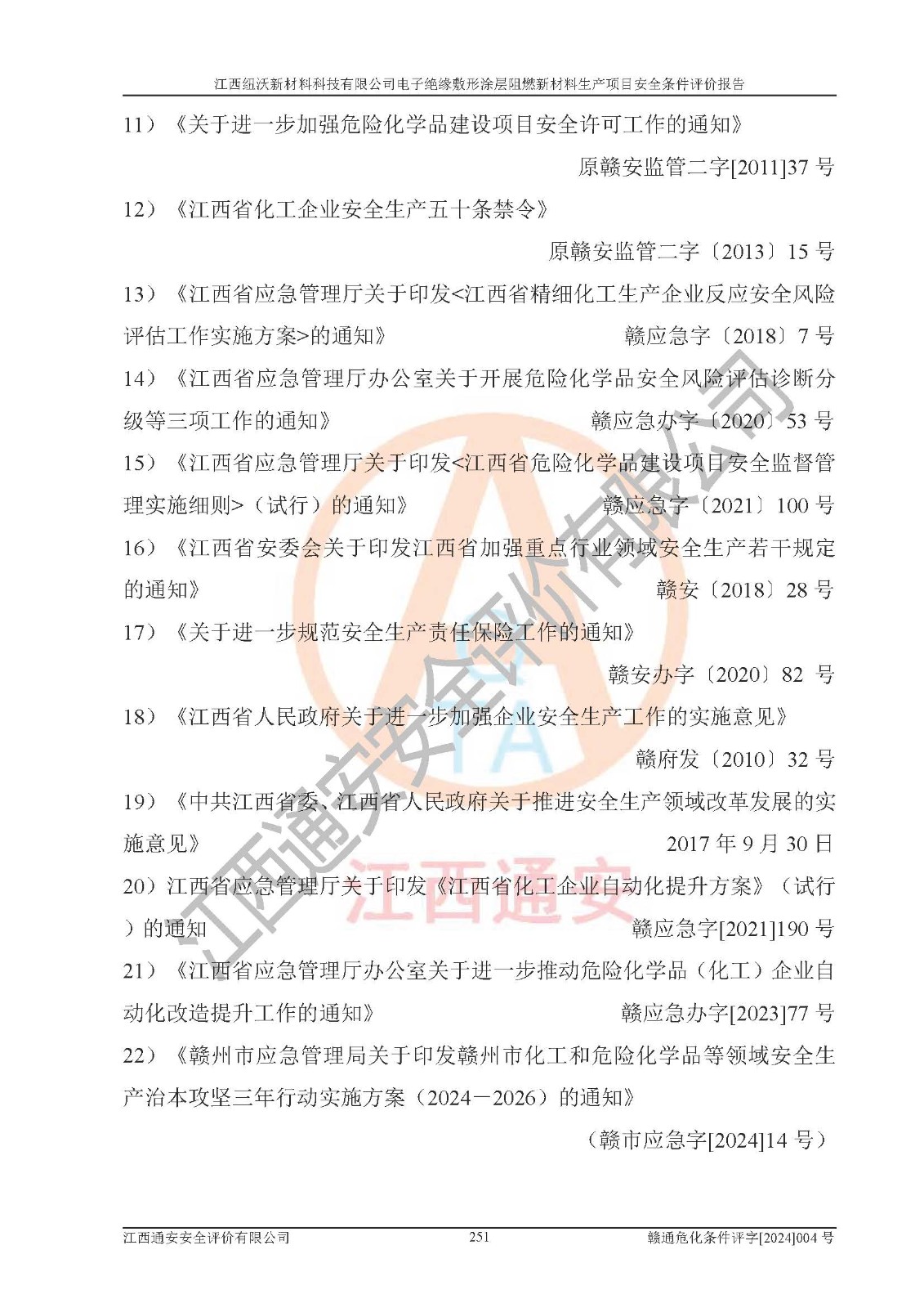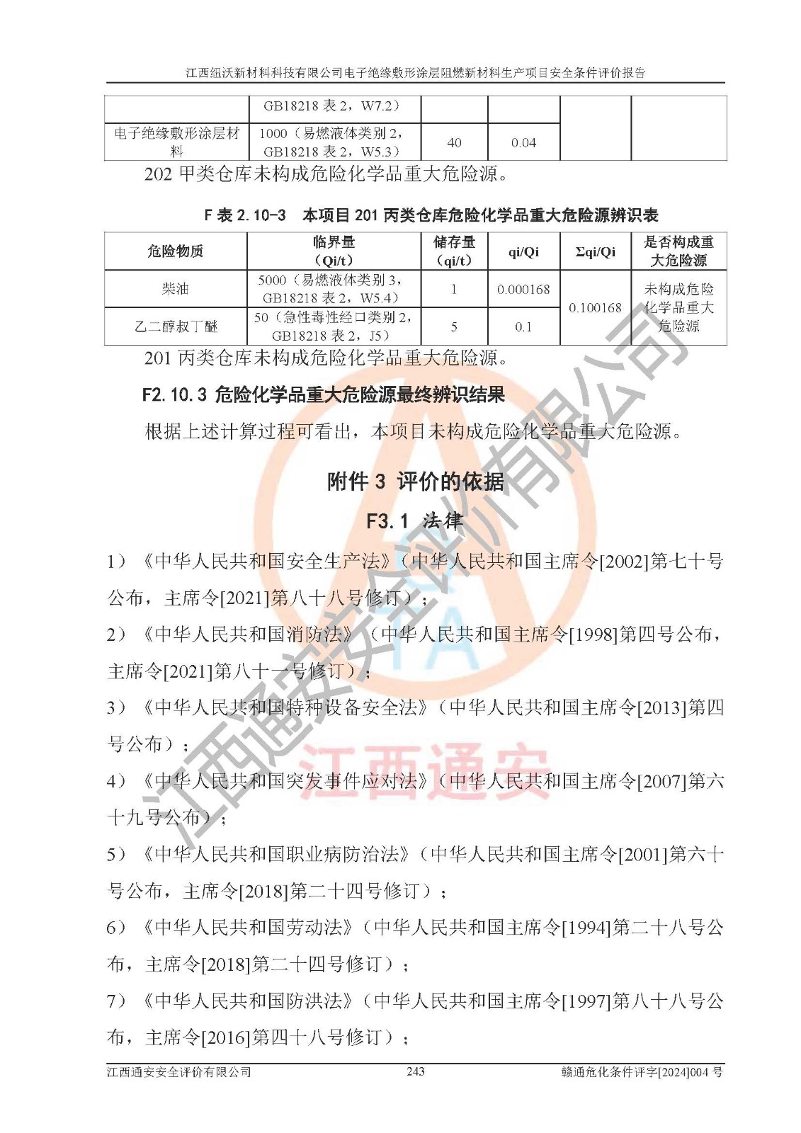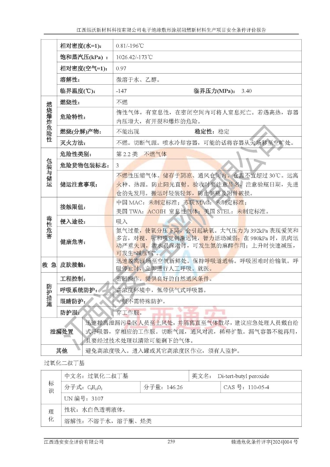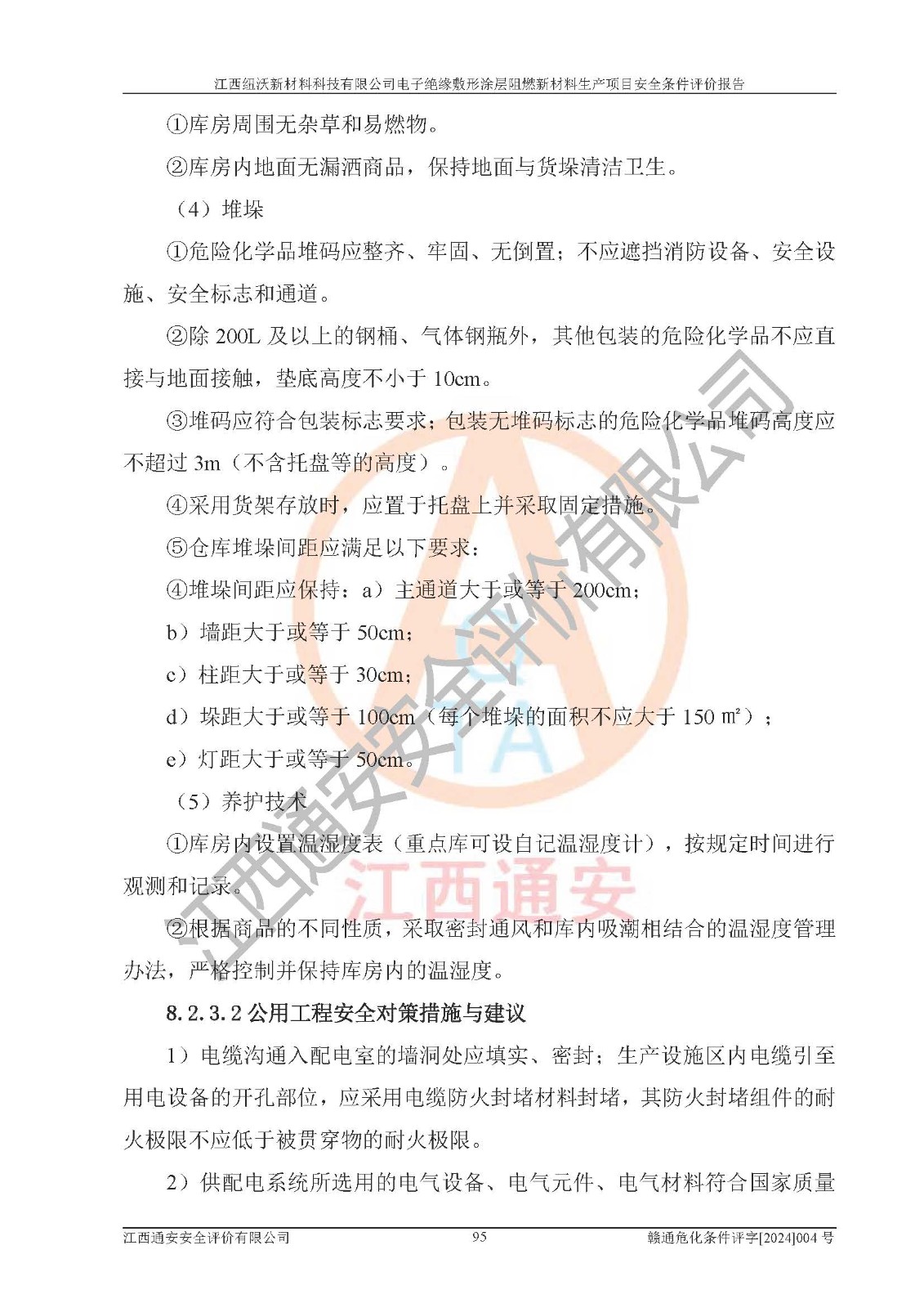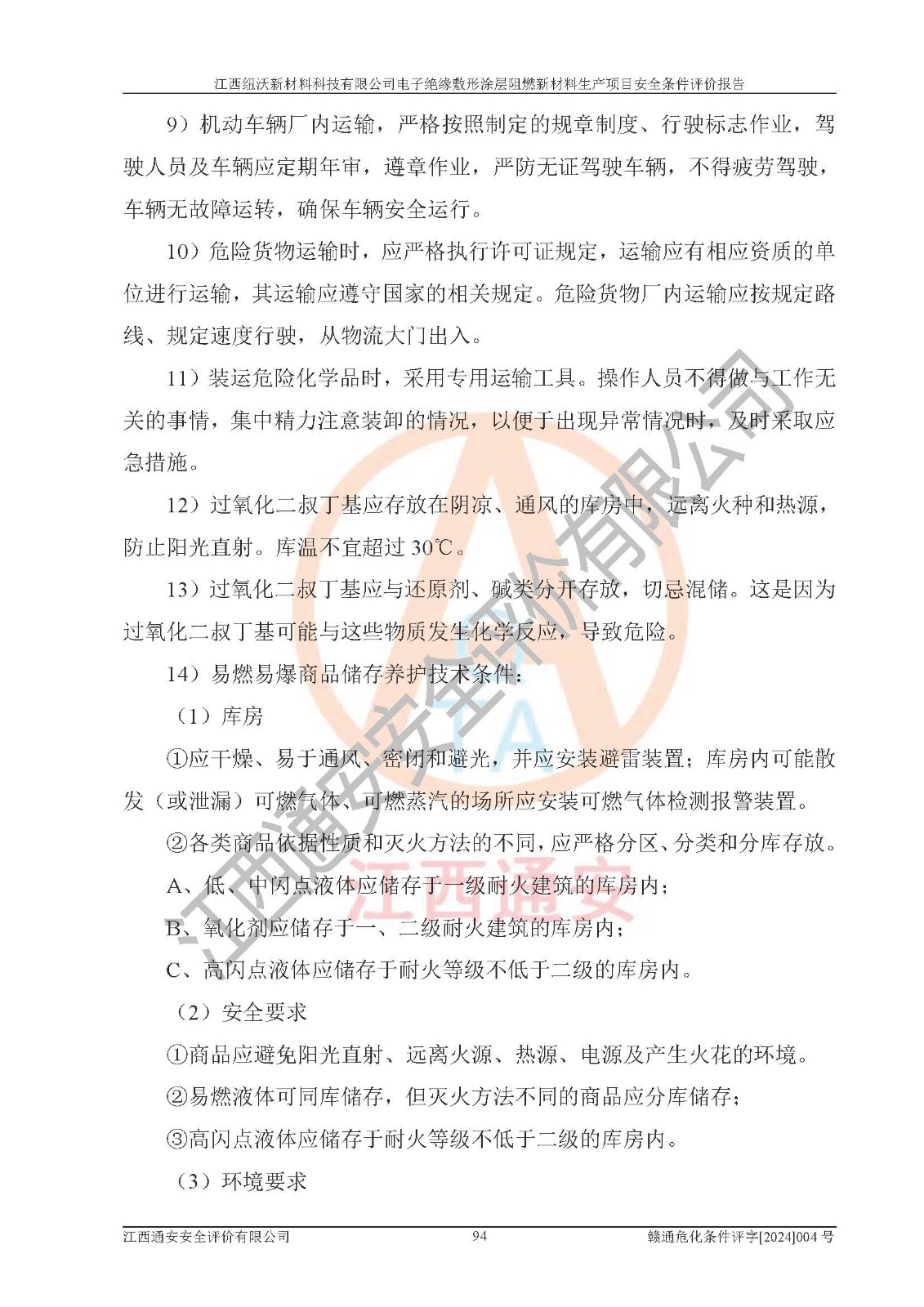 1)本項(xiàng)目依法取得了《江西省企業(yè)投資項(xiàng)目備案通知書》、《建設(shè)用地規(guī)劃許可證》,符合地方產(chǎn)業(yè)發(fā)展規(guī)劃的要求。 2)根據(jù)《**安全監(jiān)管總局關(guān)于公布首批重點(diǎn)監(jiān)管的危險(xiǎn)化工工藝目錄的通知》(安監(jiān)總管三[2009]116號(hào))和《**安全監(jiān)管總局關(guān)于公布第二批重點(diǎn)監(jiān)管危險(xiǎn)化工工藝目錄和調(diào)整首批重點(diǎn)監(jiān)管危險(xiǎn)化工工藝中部分典型工藝的通知》(安監(jiān)總管三[2013]3號(hào)),該項(xiàng)目未涉及重點(diǎn)監(jiān)管危險(xiǎn)化工工藝。 3)根據(jù)《危險(xiǎn)化學(xué)品重大危險(xiǎn)源辨識(shí)》(GB18218-2018),該項(xiàng)目未構(gòu)成危險(xiǎn)化學(xué)品重大危險(xiǎn)源。 4)項(xiàng)目存在的主要危險(xiǎn)因素有:火災(zāi)爆炸、容器爆炸、中毒窒息、灼燙、觸電、**傷害、機(jī)械傷害、高處墜落、物體打擊、淹溺等,存在的主要危害因素有:噪聲與振動(dòng)、高溫、有害化學(xué)物質(zhì)等;引起事故的原因有人的不安全行為、物的不安全狀態(tài)、管理缺陷和環(huán)境不良。其中*主要的危險(xiǎn)有害因素是火災(zāi)爆炸。 5)采用預(yù)先危險(xiǎn)性分析法評(píng)價(jià),結(jié)果為: (1)通過預(yù)先危險(xiǎn)(PHA)分析可知,項(xiàng)目廠址及總體布局單元存在周邊環(huán)境相互影響,發(fā)生異常情況,可對(duì)周邊企業(yè)生產(chǎn)經(jīng)營活動(dòng)、人員活動(dòng)產(chǎn)生影響;存在自然條件影響,可因雷擊、暴雨等引起事故;存在**傷害、建筑物危害,其固有的危險(xiǎn)性等級(jí)為Ⅱ級(jí),屬于“臨界的”,應(yīng)予以排除、采取控制措施因素。 (2)生產(chǎn)作業(yè)存在的危險(xiǎn)因素包括火災(zāi)爆炸、觸電、灼燙、中毒窒息固有的危險(xiǎn)等級(jí)為Ⅲ級(jí),屬于“危險(xiǎn)的”,可能導(dǎo)致人員傷亡和系統(tǒng)損壞的因素,需要采取防范和對(duì)策措施的因素;其它危險(xiǎn)因素固有的危險(xiǎn)等級(jí)為Ⅱ級(jí),屬于“臨界的”,應(yīng)予以排除、采取控制措施因素。 (3)生產(chǎn)作業(yè)存在的噪聲、粉塵、高溫、有害化學(xué)物質(zhì)的危險(xiǎn)有害因素等級(jí)為Ⅱ級(jí),屬于“臨界的”,應(yīng)予以排除、采取控制措施因素。 6)危險(xiǎn)度評(píng)價(jià)分析,結(jié)果為: 生產(chǎn)裝置危險(xiǎn)度評(píng)價(jià)分析:101生產(chǎn)車間為**危險(xiǎn)(Ⅰ級(jí))。 儲(chǔ)存單元危險(xiǎn)度評(píng)價(jià)分析:202甲類倉庫為**危險(xiǎn)(Ⅰ級(jí)),201丙類倉庫為低度危險(xiǎn)(Ⅲ級(jí))。 7)作業(yè)條件危險(xiǎn)性評(píng)價(jià)結(jié)果:在選定的評(píng)價(jià)單元中,其危險(xiǎn)分值均在70以下,危險(xiǎn)程度基本屬于“可能危險(xiǎn)”、“稍有危險(xiǎn)”范圍,作業(yè)條件相對(duì)安全。企業(yè)經(jīng)營過程中首先應(yīng)重點(diǎn)加強(qiáng)對(duì)甲類車間、甲類倉庫的危險(xiǎn)因素的嚴(yán)格控制,注重日常安全管理;其次要建立健全完善的安全生產(chǎn)責(zé)任制、安全管理制度、安全技術(shù)操作規(guī)程并**其貫徹落實(shí);第三要認(rèn)真抓好操作人員、管理人員的安全知識(shí)和操作技能的培訓(xùn),**人員具有與工程技術(shù)水平相適應(yīng)的技術(shù)素質(zhì)和安全素質(zhì),**安全作業(yè)。 8)項(xiàng)目建設(shè)場(chǎng)地符合當(dāng)?shù)匾?guī)劃要求,建設(shè)場(chǎng)地通過合理規(guī)劃,其選址、周邊環(huán)境、總平面布置、交通運(yùn)輸?shù)饶芊稀吨腥A人民共和國安全生產(chǎn)法》、《危險(xiǎn)化學(xué)品安全管理?xiàng)l例》、《建筑設(shè)計(jì)防火規(guī)范》、《精細(xì)化工企業(yè)工程設(shè)計(jì)防火標(biāo)準(zhǔn)》等法規(guī)、標(biāo)準(zhǔn)、規(guī)范要求。 廠址地區(qū)地震活動(dòng)相對(duì)較弱,災(zāi)害性天氣出現(xiàn)頻率稍高,自然災(zāi)害對(duì)項(xiàng)目建設(shè)具有**影響,通過采取相應(yīng)的防護(hù)措施,自然條件適宜建設(shè)。 9)建設(shè)項(xiàng)目符合**產(chǎn)業(yè)政策的要求;選擇工藝為現(xiàn)行成熟工藝,其安全可靠性可得到**。 10)本報(bào)告已根據(jù)有關(guān)安全生產(chǎn)法律、法規(guī)、規(guī)章和**標(biāo)準(zhǔn)、行業(yè)標(biāo)準(zhǔn),并嚴(yán)格執(zhí)行省委辦公廳省**辦公廳《關(guān)于全面加強(qiáng)危險(xiǎn)化學(xué)品安全生產(chǎn)工作的實(shí)施意見》(贛辦發(fā)[2020]32號(hào))及鄱陽湖生態(tài)經(jīng)濟(jì)區(qū)、長(zhǎng)江經(jīng)濟(jì)帶、“五河一湖”相關(guān)政策規(guī)定,客觀、公正、科學(xué)地進(jìn)行安全評(píng)價(jià),項(xiàng)目符合《江西省應(yīng)急管理廳關(guān)于印發(fā)《江西省危險(xiǎn)化學(xué)品建設(shè)項(xiàng)目安全監(jiān)督管理實(shí)施細(xì)則》(試行)的通知》(贛應(yīng)急字[2021]100號(hào))的要求。 11)本報(bào)告結(jié)合工藝特征,提出應(yīng)采取的對(duì)應(yīng)的自動(dòng)化控制系統(tǒng)及自動(dòng)化實(shí)施方案,滿足《江西省應(yīng)急管理廳關(guān)于印發(fā)《江西省化工企業(yè)自動(dòng)化提升實(shí)施方案》(試行)的通知》(贛應(yīng)急字[2021]190號(hào))的要求。 綜上所述:江西紐沃新材料科技有限公司電