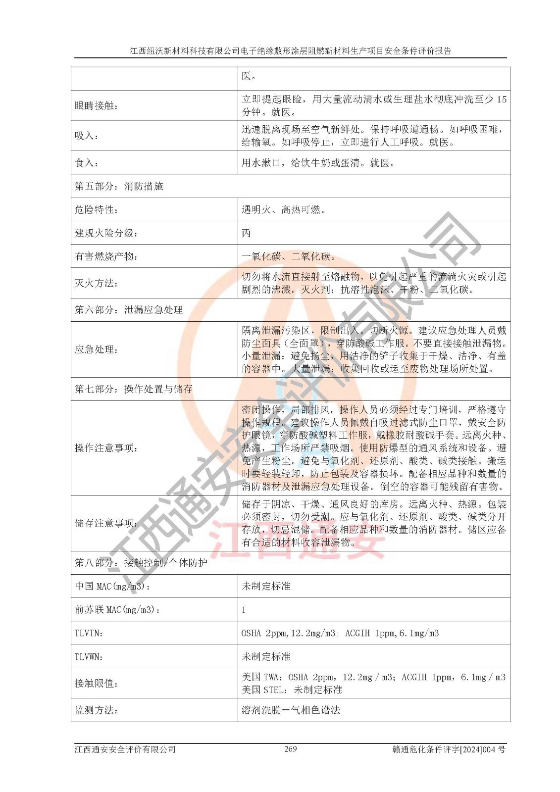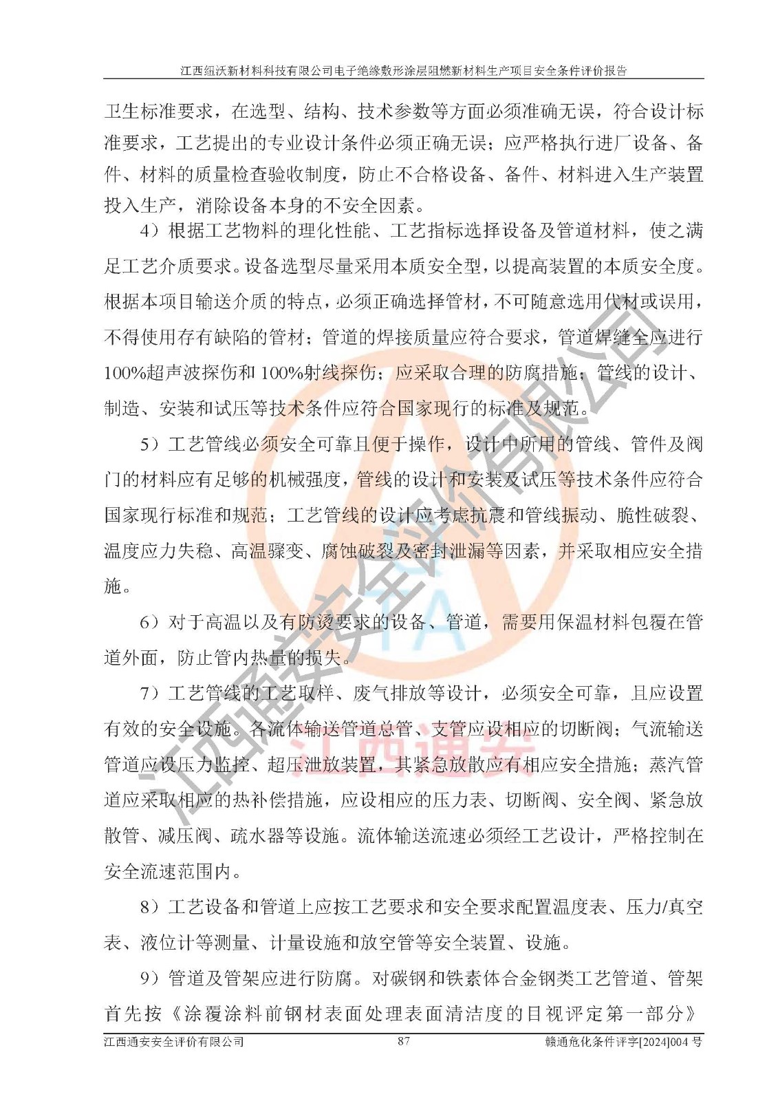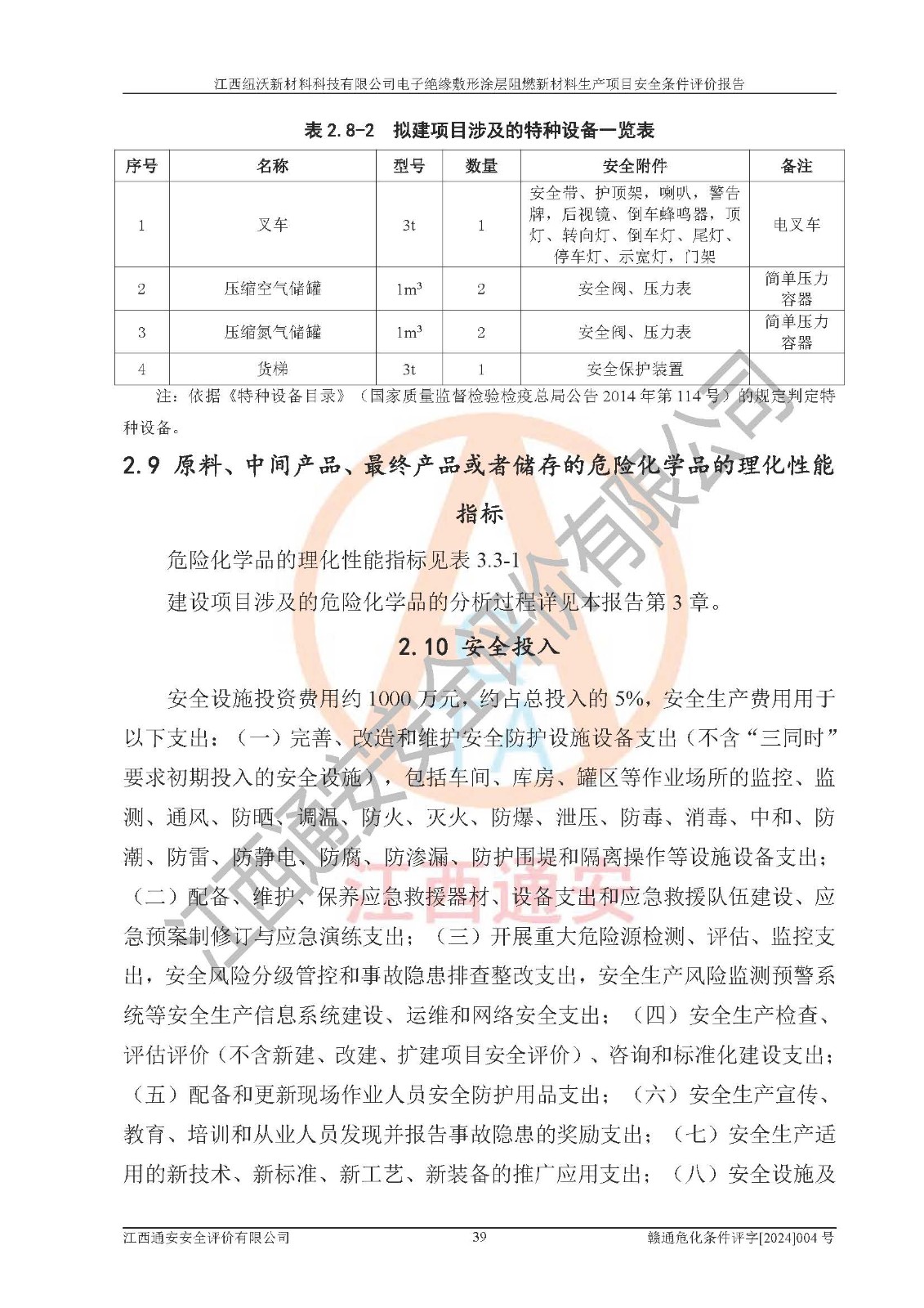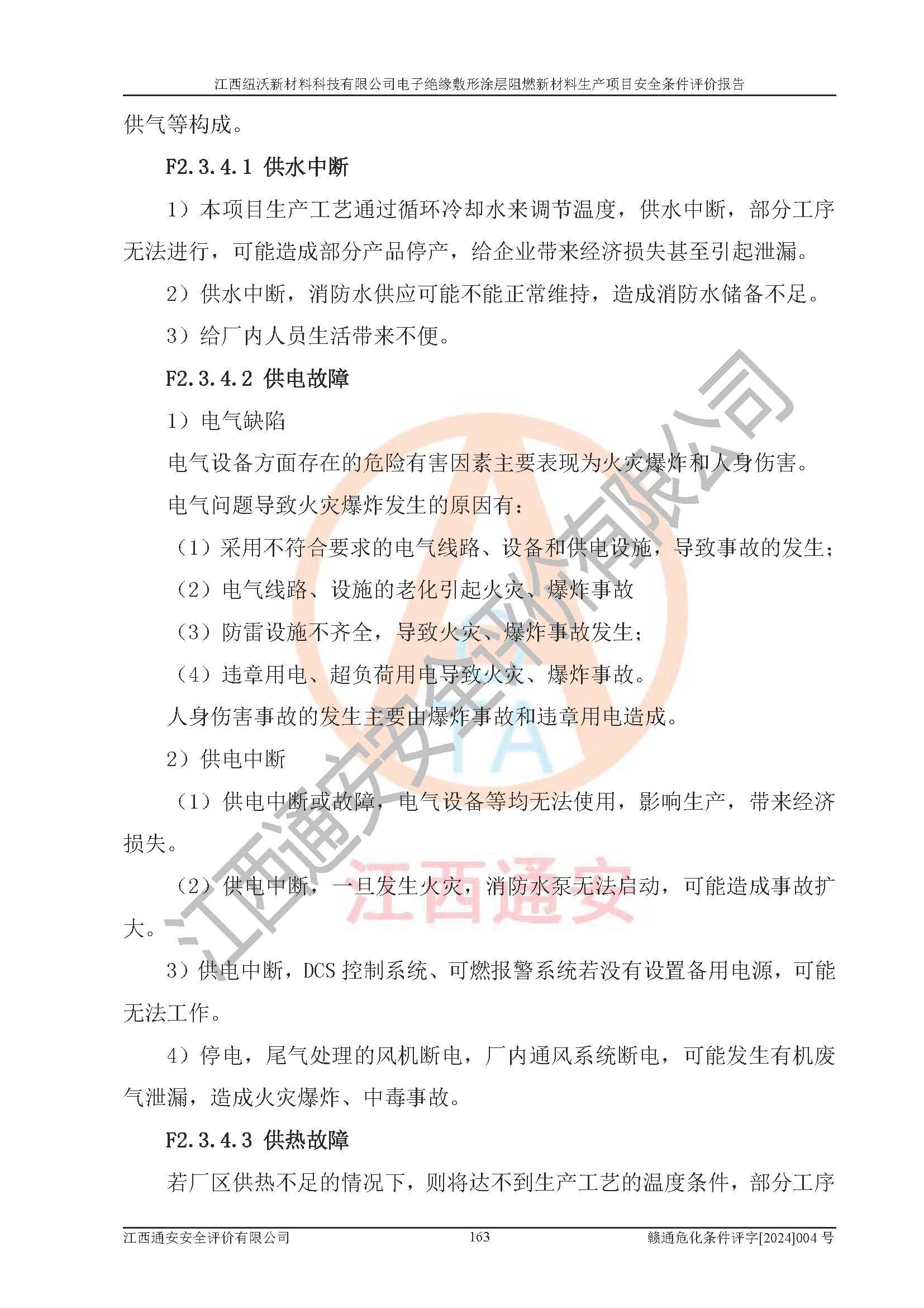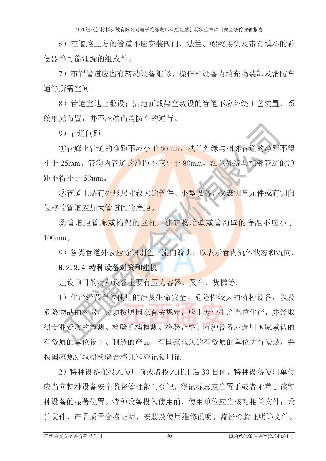1)本項(xiàng)目依法取得了《江西省企業(yè)投資項(xiàng)目備案通知書》、《建設(shè)用地規(guī)劃許可證》,符合地方產(chǎn)業(yè)發(fā)展規(guī)劃的要求。 2)根據(jù)《**安全監(jiān)管總局關(guān)于公布首批重點(diǎn)監(jiān)管的危險(xiǎn)化工工藝目錄的通知》(安監(jiān)總管三[2009]116號(hào))和《**安全監(jiān)管總局關(guān)于公布第二批重點(diǎn)監(jiān)管危險(xiǎn)化工工藝目錄和調(diào)整首批重點(diǎn)監(jiān)管危險(xiǎn)化工工藝中部分典型工藝的通知》(安監(jiān)總管三[2013]3號(hào)),該項(xiàng)目未涉及重點(diǎn)監(jiān)管危險(xiǎn)化工工藝。 3)根據(jù)《危險(xiǎn)化學(xué)品重大危險(xiǎn)源辨識(shí)》(GB18218-2018),該項(xiàng)目未構(gòu)成危險(xiǎn)化學(xué)品重大危險(xiǎn)源。 4)項(xiàng)目存在的主要危險(xiǎn)因素有:火災(zāi)爆炸、容器爆炸、中毒窒息、灼燙、觸電、**傷害、機(jī)械傷害、高處墜落、物體打擊、淹溺等,存在的主要危害因素有:噪聲與振動(dòng)、高溫、有害化學(xué)物質(zhì)等;引起事故的原因有人的不安全行為、物的不安全狀態(tài)、管理缺陷和環(huán)境不良。其中*主要的危險(xiǎn)有害因素是火災(zāi)爆炸。 5)采用預(yù)先危險(xiǎn)性分析法評(píng)價(jià),結(jié)果為: (1)通過預(yù)先危險(xiǎn)(PHA)分析可知,項(xiàng)目廠址及總體布局單元存在周邊環(huán)境相互影響,發(fā)生異常情況,可對(duì)周邊企業(yè)生產(chǎn)經(jīng)營活動(dòng)、人員活動(dòng)產(chǎn)生影響;存在自然條件影響,可因雷擊、暴雨等引起事故;存在**傷害、建筑物危害,其固有的危險(xiǎn)性等級(jí)為Ⅱ級(jí),屬于“臨界的”,應(yīng)予以排除、采取控制措施因素。 (2)生產(chǎn)作業(yè)存在的危險(xiǎn)因素包括火災(zāi)爆炸、觸電、灼燙、中毒窒息固有的危險(xiǎn)等級(jí)為Ⅲ級(jí),屬于“危險(xiǎn)的”,可能導(dǎo)致人員傷亡和系統(tǒng)損壞的因素,需要采取防范和對(duì)策措施的因素;其它危險(xiǎn)因素固有的危險(xiǎn)等級(jí)為Ⅱ級(jí),屬于“臨界的”,應(yīng)予以排除、采取控制措施因素。 (3)生產(chǎn)作業(yè)存在的噪聲、粉塵、高溫、有害化學(xué)物質(zhì)的危險(xiǎn)有害因素等級(jí)為Ⅱ級(jí),屬于“臨界的”,應(yīng)予以排除、采取控制措施因素。 6)危險(xiǎn)度評(píng)價(jià)分析,結(jié)果為: 生產(chǎn)裝置危險(xiǎn)度評(píng)價(jià)分析:101生產(chǎn)車間為**危險(xiǎn)(Ⅰ級(jí))。 儲(chǔ)存單元危險(xiǎn)度評(píng)價(jià)分析:202甲類倉庫為**危險(xiǎn)(Ⅰ級(jí)),201丙類倉庫為低度危險(xiǎn)(Ⅲ級(jí))。 7)作業(yè)條件危險(xiǎn)性評(píng)價(jià)結(jié)果:在選定的評(píng)價(jià)單元中,其危險(xiǎn)分值均在70以下,危險(xiǎn)程度基本屬于“可能危險(xiǎn)”、“稍有危險(xiǎn)”范圍,作業(yè)條件相對(duì)安全。企業(yè)經(jīng)營過程中首先應(yīng)重點(diǎn)加強(qiáng)對(duì)甲類車間、甲類倉庫的危險(xiǎn)因素的嚴(yán)格控制,注重日常安全管理;其次要建立健全完善的安全生產(chǎn)責(zé)任制、安全管理制度、安全技術(shù)操作規(guī)程并**其貫徹落實(shí);第三要認(rèn)真抓好操作人員、管理人員的安全知識(shí)和操作技能的培訓(xùn),**人員具有與工程技術(shù)水平相適應(yīng)的技術(shù)素質(zhì)和安全素質(zhì),**安全作業(yè)。 8)項(xiàng)目建設(shè)場(chǎng)地符合當(dāng)?shù)匾?guī)劃要求,建設(shè)場(chǎng)地通過合理規(guī)劃,其選址、周邊環(huán)境、總平面布置、交通運(yùn)輸?shù)饶芊稀吨腥A人民共和國安全生產(chǎn)法》、《危險(xiǎn)化學(xué)品安全管理?xiàng)l例》、《建筑設(shè)計(jì)防火規(guī)范》、《精細(xì)化工企業(yè)工程設(shè)計(jì)防火標(biāo)準(zhǔn)》等法規(guī)、標(biāo)準(zhǔn)、規(guī)范要求。 廠址地區(qū)地震活動(dòng)相對(duì)較弱,災(zāi)害性天氣出現(xiàn)頻率稍高,自然災(zāi)害對(duì)項(xiàng)目建設(shè)具有**影響,通過采取相應(yīng)的防護(hù)措施,自然條件適宜建設(shè)。 9)建設(shè)項(xiàng)目符合**產(chǎn)業(yè)政策的要求;選擇工藝為現(xiàn)行成熟工藝,其安全可靠性可得到**。 10)本報(bào)告已根據(jù)有關(guān)安全生產(chǎn)法律、法規(guī)、規(guī)章和**標(biāo)準(zhǔn)、行業(yè)標(biāo)準(zhǔn),并嚴(yán)格執(zhí)行省委辦公廳省**辦公廳《關(guān)于全面加強(qiáng)危險(xiǎn)化學(xué)品安全生產(chǎn)工作的實(shí)施意見》(贛辦發(fā)[2020]32號(hào))及鄱陽湖生態(tài)經(jīng)濟(jì)區(qū)、長(zhǎng)江經(jīng)濟(jì)帶、“五河一湖”相關(guān)政策規(guī)定,客觀、公正、科學(xué)地進(jìn)行安全評(píng)價(jià),項(xiàng)目符合《江西省應(yīng)急管理廳關(guān)于印發(fā)《江西省危險(xiǎn)化學(xué)品建設(shè)項(xiàng)目安全監(jiān)督管理實(shí)施細(xì)則》(試行)的通知》(贛應(yīng)急字[2021]100號(hào))的要求。 11)本報(bào)告結(jié)合工藝特征,提出應(yīng)采取的對(duì)應(yīng)的自動(dòng)化控制系統(tǒng)及自動(dòng)化實(shí)施方案,滿足《江西省應(yīng)急管理廳關(guān)于印發(fā)《江西省化工企業(yè)自動(dòng)化提升實(shí)施方案》(試行)的通知》(贛應(yīng)急字[2021]190號(hào))的要求。 綜上所述:江西紐沃新材料科技有限公司電