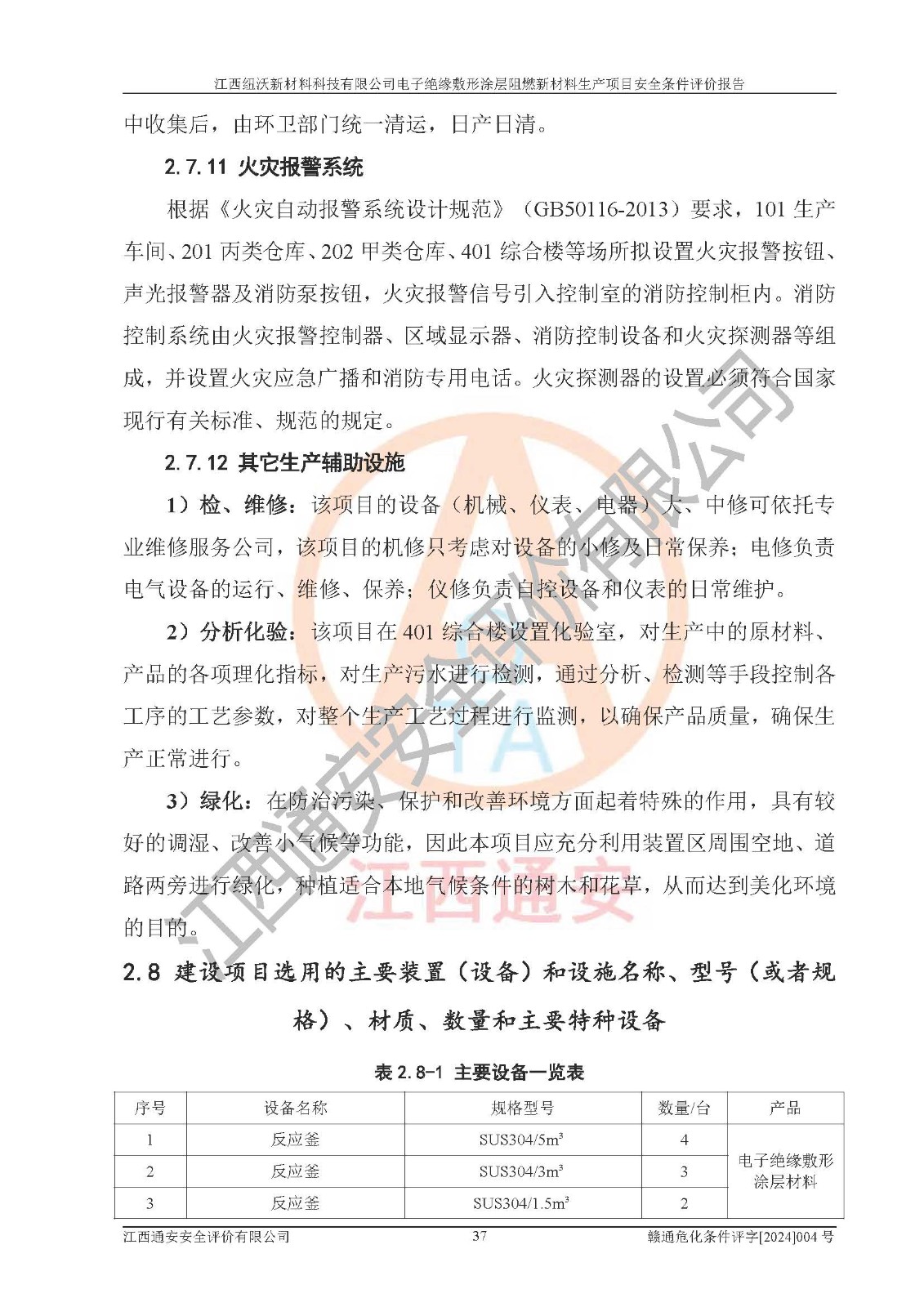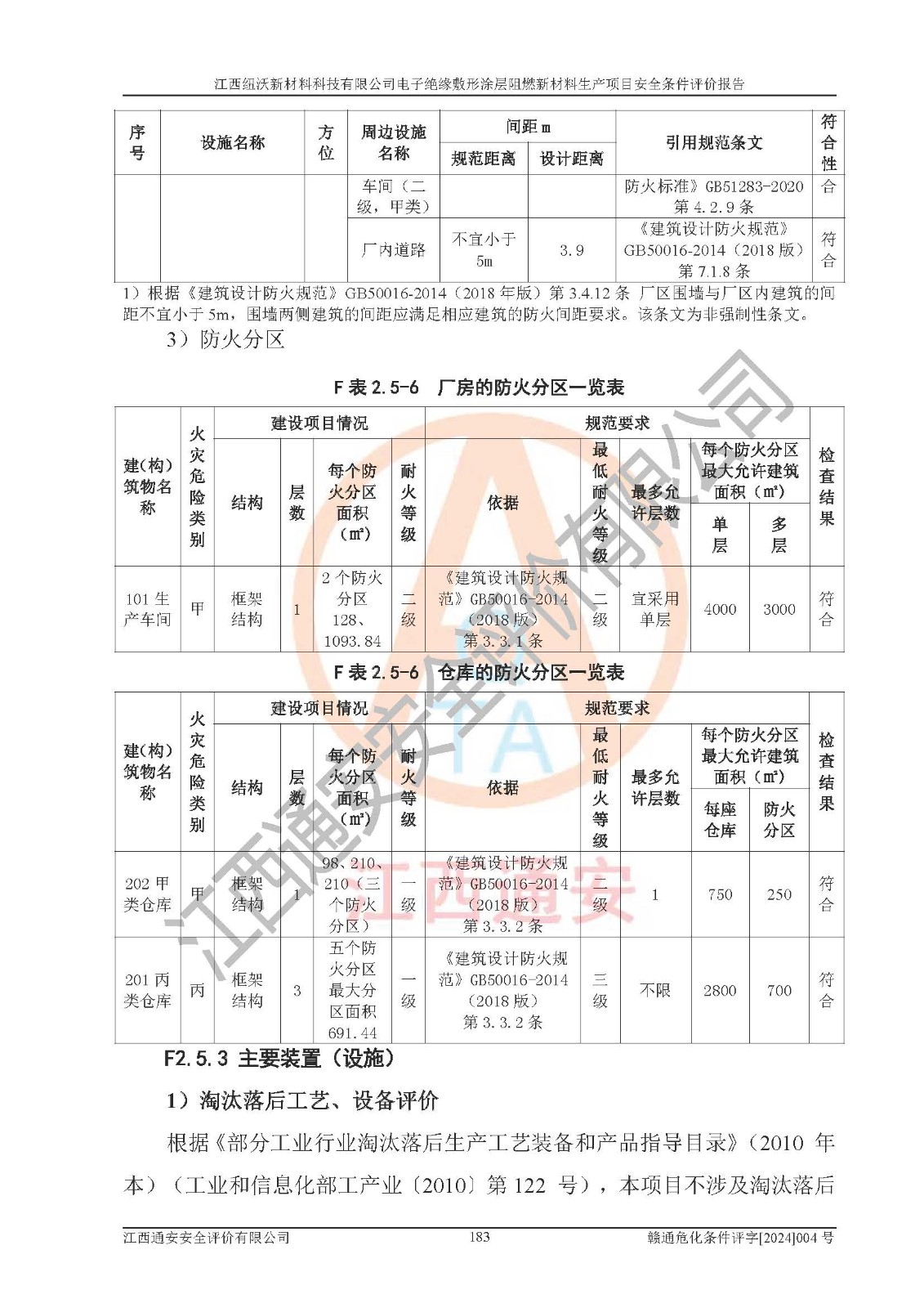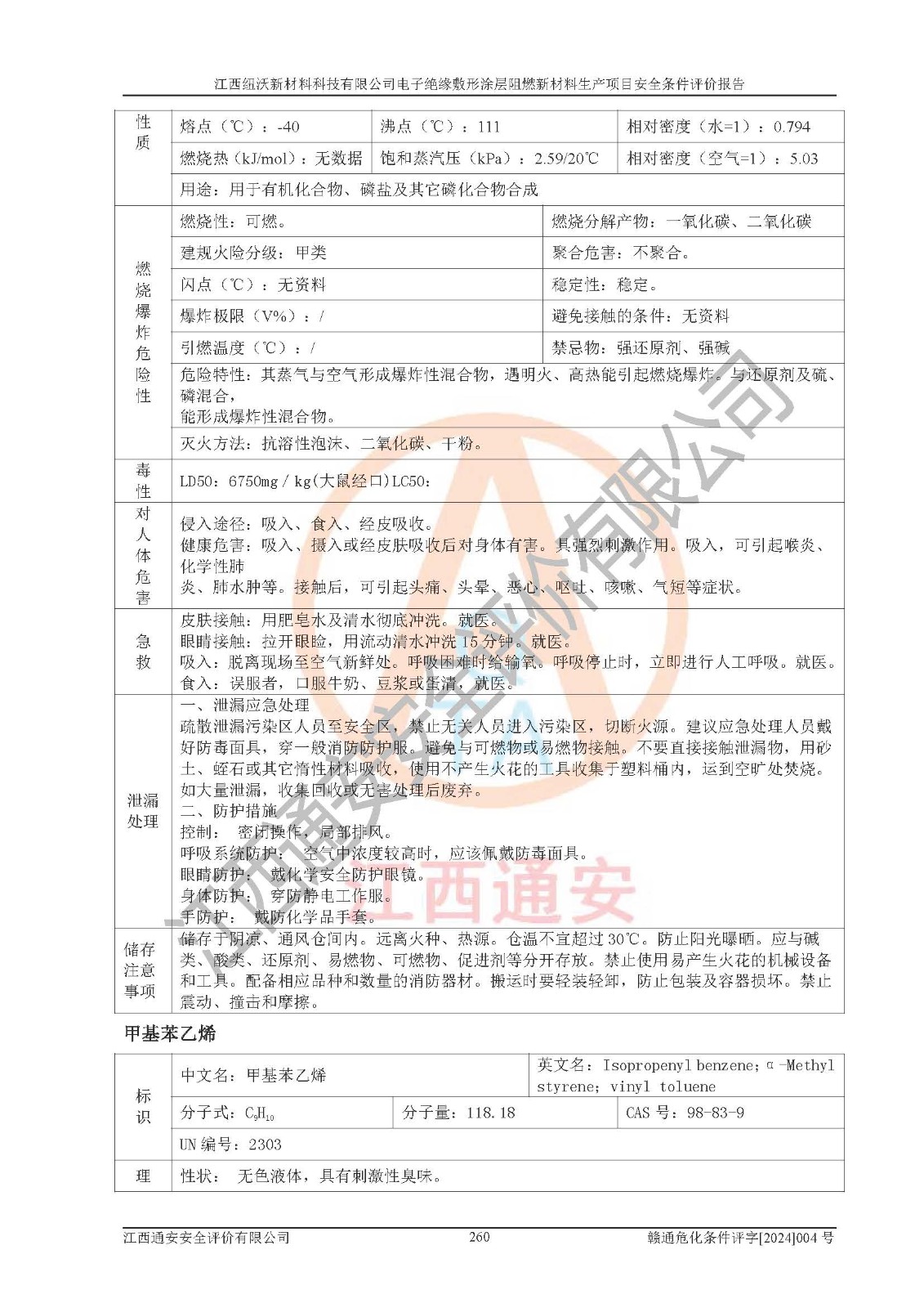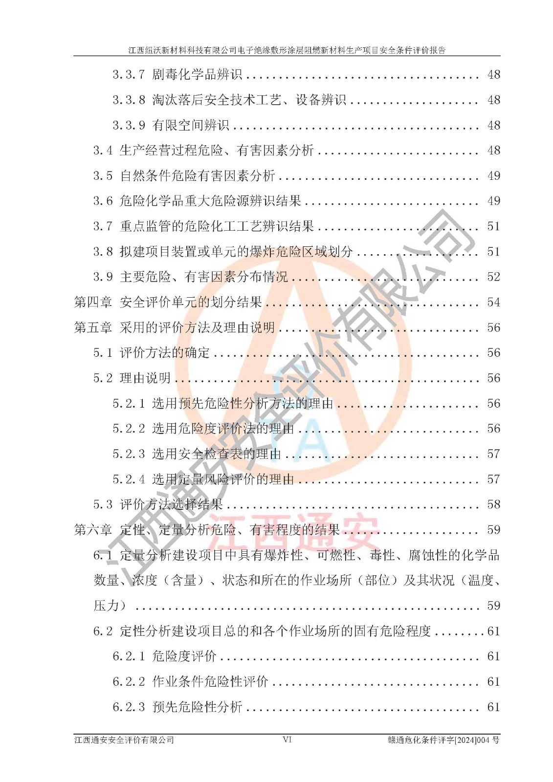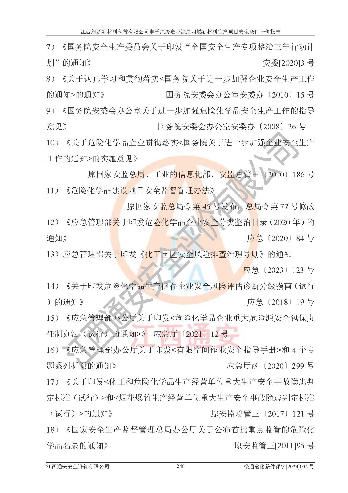 1)本項(xiàng)目依法取得了《江西省企業(yè)投資項(xiàng)目備案通知書》、《建設(shè)用地規(guī)劃許可證》,符合地方產(chǎn)業(yè)發(fā)展規(guī)劃的要求。 2)根據(jù)《**安全監(jiān)管總局關(guān)于公布首批重點(diǎn)監(jiān)管的危險(xiǎn)化工工藝目錄的通知》(安監(jiān)總管三[2009]116號(hào))和《**安全監(jiān)管總局關(guān)于公布第二批重點(diǎn)監(jiān)管危險(xiǎn)化工工藝目錄和調(diào)整首批重點(diǎn)監(jiān)管危險(xiǎn)化工工藝中部分典型工藝的通知》(安監(jiān)總管三[2013]3號(hào)),該項(xiàng)目未涉及重點(diǎn)監(jiān)管危險(xiǎn)化工工藝。 3)根據(jù)《危險(xiǎn)化學(xué)品重大危險(xiǎn)源辨識(shí)》(GB18218-2018),該項(xiàng)目未構(gòu)成危險(xiǎn)化學(xué)品重大危險(xiǎn)源。 4)項(xiàng)目存在的主要危險(xiǎn)因素有:火災(zāi)爆炸、容器爆炸、中毒窒息、灼燙、觸電、**傷害、機(jī)械傷害、高處墜落、物體打擊、淹溺等,存在的主要危害因素有:噪聲與振動(dòng)、高溫、有害化學(xué)物質(zhì)等;引起事故的原因有人的不安全行為、物的不安全狀態(tài)、管理缺陷和環(huán)境不良。其中*主要的危險(xiǎn)有害因素是火災(zāi)爆炸。 5)采用預(yù)先危險(xiǎn)性分析法評(píng)價(jià),結(jié)果為: (1)通過預(yù)先危險(xiǎn)(PHA)分析可知,項(xiàng)目廠址及總體布局單元存在周邊環(huán)境相互影響,發(fā)生異常情況,可對(duì)周邊企業(yè)生產(chǎn)經(jīng)營活動(dòng)、人員活動(dòng)產(chǎn)生影響;存在自然條件影響,可因雷擊、暴雨等引起事故;存在**傷害、建筑物危害,其固有的危險(xiǎn)性等級(jí)為Ⅱ級(jí),屬于“臨界的”,應(yīng)予以排除、采取控制措施因素。 (2)生產(chǎn)作業(yè)存在的危險(xiǎn)因素包括火災(zāi)爆炸、觸電、灼燙、中毒窒息固有的危險(xiǎn)等級(jí)為Ⅲ級(jí),屬于“危險(xiǎn)的”,可能導(dǎo)致人員傷亡和系統(tǒng)損壞的因素,需要采取防范和對(duì)策措施的因素;其它危險(xiǎn)因素固有的危險(xiǎn)等級(jí)為Ⅱ級(jí),屬于“臨界的”,應(yīng)予以排除、采取控制措施因素。 (3)生產(chǎn)作業(yè)存在的噪聲、粉塵、高溫、有害化學(xué)物質(zhì)的危險(xiǎn)有害因素等級(jí)為Ⅱ級(jí),屬于“臨界的”,應(yīng)予以排除、采取控制措施因素。 6)危險(xiǎn)度評(píng)價(jià)分析,結(jié)果為: 生產(chǎn)裝置危險(xiǎn)度評(píng)價(jià)分析:101生產(chǎn)車間為**危險(xiǎn)(Ⅰ級(jí))。 儲(chǔ)存單元危險(xiǎn)度評(píng)價(jià)分析:202甲類倉庫為**危險(xiǎn)(Ⅰ級(jí)),201丙類倉庫為低度危險(xiǎn)(Ⅲ級(jí))。 7)作業(yè)條件危險(xiǎn)性評(píng)價(jià)結(jié)果:在選定的評(píng)價(jià)單元中,其危險(xiǎn)分值均在70以下,危險(xiǎn)程度基本屬于“可能危險(xiǎn)”、“稍有危險(xiǎn)”范圍,作業(yè)條件相對(duì)安全。企業(yè)經(jīng)營過程中首先應(yīng)重點(diǎn)加強(qiáng)對(duì)甲類車間、甲類倉庫的危險(xiǎn)因素的嚴(yán)格控制,注重日常安全管理;其次要建立健全完善的安全生產(chǎn)責(zé)任制、安全管理制度、安全技術(shù)操作規(guī)程并**其貫徹落實(shí);第三要認(rèn)真抓好操作人員、管理人員的安全知識(shí)和操作技能的培訓(xùn),**人員具有與工程技術(shù)水平相適應(yīng)的技術(shù)素質(zhì)和安全素質(zhì),**安全作業(yè)。 8)項(xiàng)目建設(shè)場(chǎng)地符合當(dāng)?shù)匾?guī)劃要求,建設(shè)場(chǎng)地通過合理規(guī)劃,其選址、周邊環(huán)境、總平面布置、交通運(yùn)輸?shù)饶芊稀吨腥A人民共和國安全生產(chǎn)法》、《危險(xiǎn)化學(xué)品安全管理?xiàng)l例》、《建筑設(shè)計(jì)防火規(guī)范》、《精細(xì)化工企業(yè)工程設(shè)計(jì)防火標(biāo)準(zhǔn)》等法規(guī)、標(biāo)準(zhǔn)、規(guī)范要求。 廠址地區(qū)地震活動(dòng)相對(duì)較弱,災(zāi)害性天氣出現(xiàn)頻率稍高,自然災(zāi)害對(duì)項(xiàng)目建設(shè)具有**影響,通過采取相應(yīng)的防護(hù)措施,自然條件適宜建設(shè)。 9)建設(shè)項(xiàng)目符合**產(chǎn)業(yè)政策的要求;選擇工藝為現(xiàn)行成熟工藝,其安全可靠性可得到**。 10)本報(bào)告已根據(jù)有關(guān)安全生產(chǎn)法律、法規(guī)、規(guī)章和**標(biāo)準(zhǔn)、行業(yè)標(biāo)準(zhǔn),并嚴(yán)格執(zhí)行省委辦公廳省**辦公廳《關(guān)于全面加強(qiáng)危險(xiǎn)化學(xué)品安全生產(chǎn)工作的實(shí)施意見》(贛辦發(fā)[2020]32號(hào))及鄱陽湖生態(tài)經(jīng)濟(jì)區(qū)、長(zhǎng)江經(jīng)濟(jì)帶、“五河一湖”相關(guān)政策規(guī)定,客觀、公正、科學(xué)地進(jìn)行安全評(píng)價(jià),項(xiàng)目符合《江西省應(yīng)急管理廳關(guān)于印發(fā)《江西省危險(xiǎn)化學(xué)品建設(shè)項(xiàng)目安全監(jiān)督管理實(shí)施細(xì)則》(試行)的通知》(贛應(yīng)急字[2021]100號(hào))的要求。 11)本報(bào)告結(jié)合工藝特征,提出應(yīng)采取的對(duì)應(yīng)的自動(dòng)化控制系統(tǒng)及自動(dòng)化實(shí)施方案,滿足《江西省應(yīng)急管理廳關(guān)于印發(fā)《江西省化工企業(yè)自動(dòng)化提升實(shí)施方案》(試行)的通知》(贛應(yīng)急字[2021]190號(hào))的要求。 綜上所述:江西紐沃新材料科技有限公司電