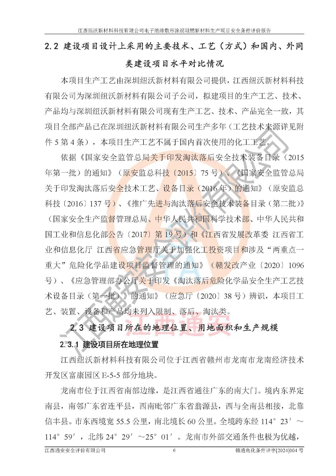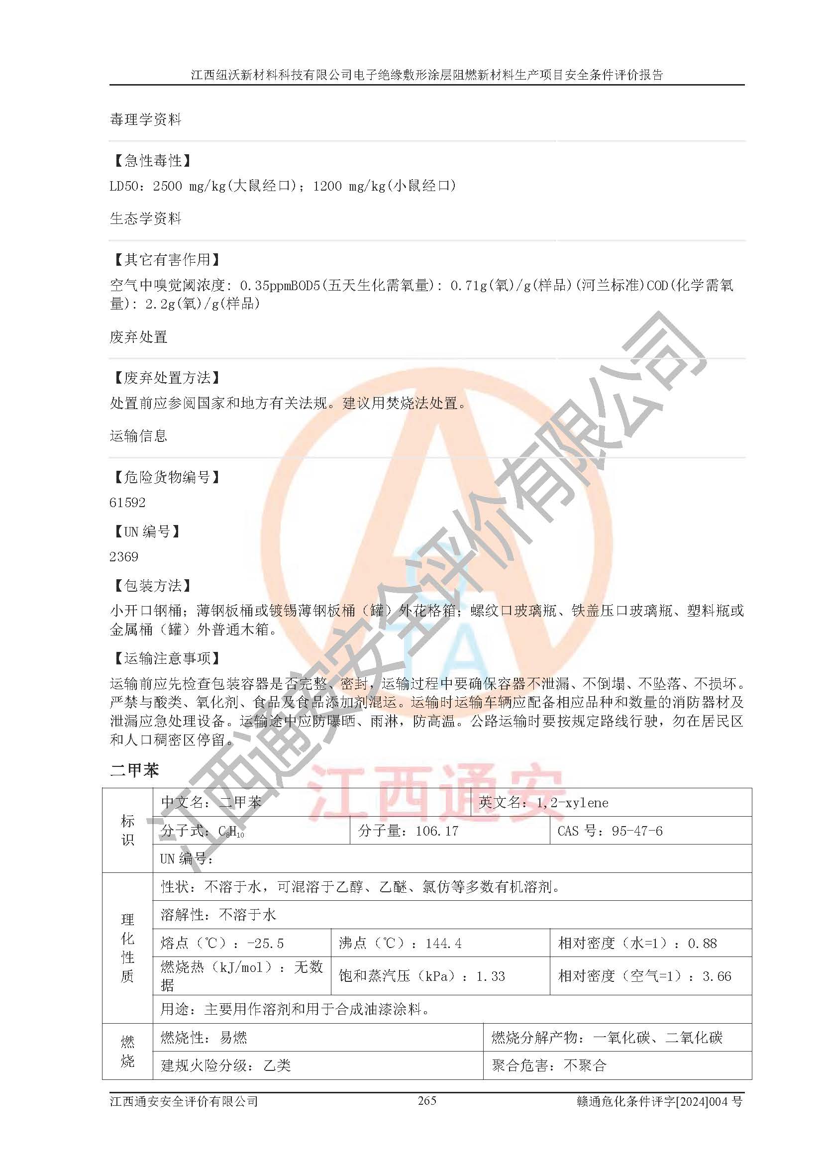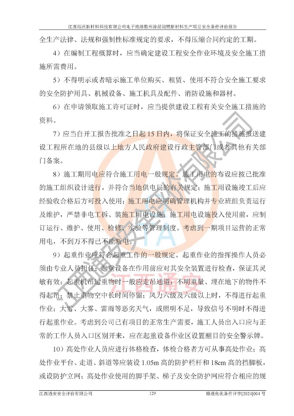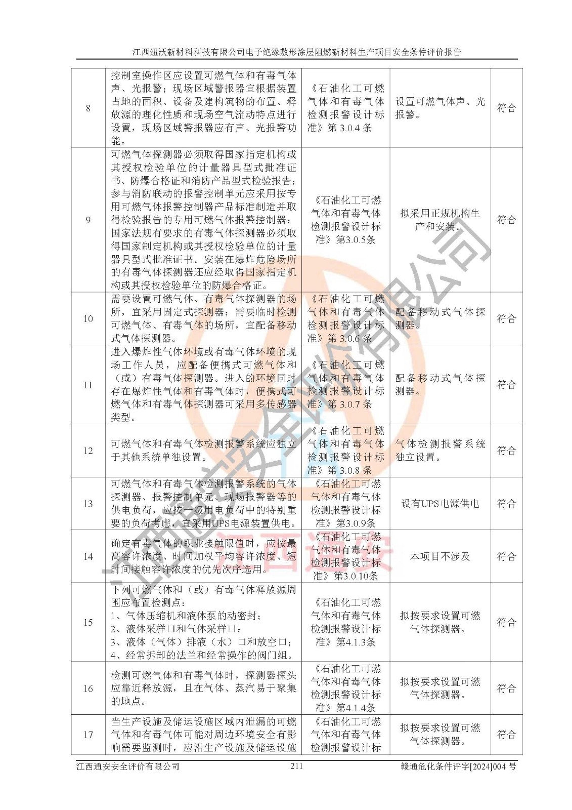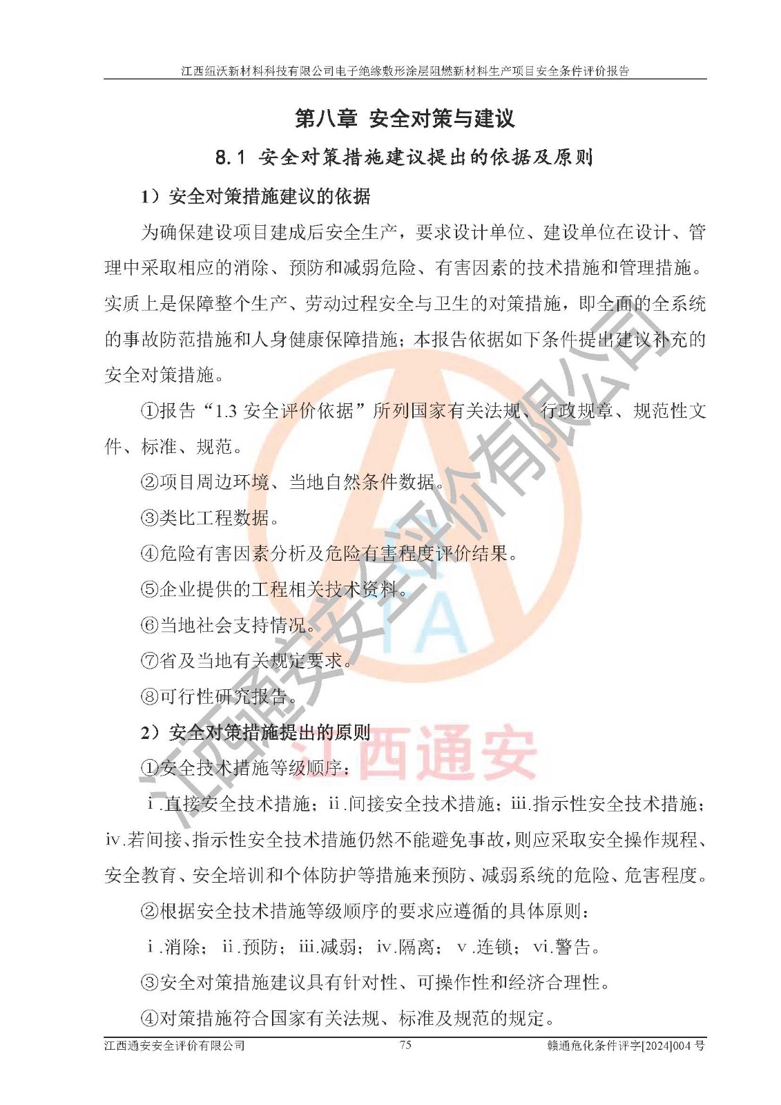 1)本項(xiàng)目依法取得了《江西省企業(yè)投資項(xiàng)目備案通知書》、《建設(shè)用地規(guī)劃許可證》,符合地方產(chǎn)業(yè)發(fā)展規(guī)劃的要求。 2)根據(jù)《**安全監(jiān)管總局關(guān)于公布首批重點(diǎn)監(jiān)管的危險(xiǎn)化工工藝目錄的通知》(安監(jiān)總管三[2009]116號(hào))和《**安全監(jiān)管總局關(guān)于公布第二批重點(diǎn)監(jiān)管危險(xiǎn)化工工藝目錄和調(diào)整首批重點(diǎn)監(jiān)管危險(xiǎn)化工工藝中部分典型工藝的通知》(安監(jiān)總管三[2013]3號(hào)),該項(xiàng)目未涉及重點(diǎn)監(jiān)管危險(xiǎn)化工工藝。 3)根據(jù)《危險(xiǎn)化學(xué)品重大危險(xiǎn)源辨識(shí)》(GB18218-2018),該項(xiàng)目未構(gòu)成危險(xiǎn)化學(xué)品重大危險(xiǎn)源。 4)項(xiàng)目存在的主要危險(xiǎn)因素有:火災(zāi)爆炸、容器爆炸、中毒窒息、灼燙、觸電、**傷害、機(jī)械傷害、高處墜落、物體打擊、淹溺等,存在的主要危害因素有:噪聲與振動(dòng)、高溫、有害化學(xué)物質(zhì)等;引起事故的原因有人的不安全行為、物的不安全狀態(tài)、管理缺陷和環(huán)境不良。其中*主要的危險(xiǎn)有害因素是火災(zāi)爆炸。 5)采用預(yù)先危險(xiǎn)性分析法評(píng)價(jià),結(jié)果為: (1)通過預(yù)先危險(xiǎn)(PHA)分析可知,項(xiàng)目廠址及總體布局單元存在周邊環(huán)境相互影響,發(fā)生異常情況,可對(duì)周邊企業(yè)生產(chǎn)經(jīng)營活動(dòng)、人員活動(dòng)產(chǎn)生影響;存在自然條件影響,可因雷擊、暴雨等引起事故;存在**傷害、建筑物危害,其固有的危險(xiǎn)性等級(jí)為Ⅱ級(jí),屬于“臨界的”,應(yīng)予以排除、采取控制措施因素。 (2)生產(chǎn)作業(yè)存在的危險(xiǎn)因素包括火災(zāi)爆炸、觸電、灼燙、中毒窒息固有的危險(xiǎn)等級(jí)為Ⅲ級(jí),屬于“危險(xiǎn)的”,可能導(dǎo)致人員傷亡和系統(tǒng)損壞的因素,需要采取防范和對(duì)策措施的因素;其它危險(xiǎn)因素固有的危險(xiǎn)等級(jí)為Ⅱ級(jí),屬于“臨界的”,應(yīng)予以排除、采取控制措施因素。 (3)生產(chǎn)作業(yè)存在的噪聲、粉塵、高溫、有害化學(xué)物質(zhì)的危險(xiǎn)有害因素等級(jí)為Ⅱ級(jí),屬于“臨界的”,應(yīng)予以排除、采取控制措施因素。 6)危險(xiǎn)度評(píng)價(jià)分析,結(jié)果為: 生產(chǎn)裝置危險(xiǎn)度評(píng)價(jià)分析:101生產(chǎn)車間為**危險(xiǎn)(Ⅰ級(jí))。 儲(chǔ)存單元危險(xiǎn)度評(píng)價(jià)分析:202甲類倉庫為**危險(xiǎn)(Ⅰ級(jí)),201丙類倉庫為低度危險(xiǎn)(Ⅲ級(jí))。 7)作業(yè)條件危險(xiǎn)性評(píng)價(jià)結(jié)果:在選定的評(píng)價(jià)單元中,其危險(xiǎn)分值均在70以下,危險(xiǎn)程度基本屬于“可能危險(xiǎn)”、“稍有危險(xiǎn)”范圍,作業(yè)條件相對(duì)安全。企業(yè)經(jīng)營過程中首先應(yīng)重點(diǎn)加強(qiáng)對(duì)甲類車間、甲類倉庫的危險(xiǎn)因素的嚴(yán)格控制,注重日常安全管理;其次要建立健全完善的安全生產(chǎn)責(zé)任制、安全管理制度、安全技術(shù)操作規(guī)程并**其貫徹落實(shí);第三要認(rèn)真抓好操作人員、管理人員的安全知識(shí)和操作技能的培訓(xùn),**人員具有與工程技術(shù)水平相適應(yīng)的技術(shù)素質(zhì)和安全素質(zhì),**安全作業(yè)。 8)項(xiàng)目建設(shè)場(chǎng)地符合當(dāng)?shù)匾?guī)劃要求,建設(shè)場(chǎng)地通過合理規(guī)劃,其選址、周邊環(huán)境、總平面布置、交通運(yùn)輸?shù)饶芊稀吨腥A人民共和國安全生產(chǎn)法》、《危險(xiǎn)化學(xué)品安全管理?xiàng)l例》、《建筑設(shè)計(jì)防火規(guī)范》、《精細(xì)化工企業(yè)工程設(shè)計(jì)防火標(biāo)準(zhǔn)》等法規(guī)、標(biāo)準(zhǔn)、規(guī)范要求。 廠址地區(qū)地震活動(dòng)相對(duì)較弱,災(zāi)害性天氣出現(xiàn)頻率稍高,自然災(zāi)害對(duì)項(xiàng)目建設(shè)具有**影響,通過采取相應(yīng)的防護(hù)措施,自然條件適宜建設(shè)。 9)建設(shè)項(xiàng)目符合**產(chǎn)業(yè)政策的要求;選擇工藝為現(xiàn)行成熟工藝,其安全可靠性可得到**。 10)本報(bào)告已根據(jù)有關(guān)安全生產(chǎn)法律、法規(guī)、規(guī)章和**標(biāo)準(zhǔn)、行業(yè)標(biāo)準(zhǔn),并嚴(yán)格執(zhí)行省委辦公廳省**辦公廳《關(guān)于全面加強(qiáng)危險(xiǎn)化學(xué)品安全生產(chǎn)工作的實(shí)施意見》(贛辦發(fā)[2020]32號(hào))及鄱陽湖生態(tài)經(jīng)濟(jì)區(qū)、長(zhǎng)江經(jīng)濟(jì)帶、“五河一湖”相關(guān)政策規(guī)定,客觀、公正、科學(xué)地進(jìn)行安全評(píng)價(jià),項(xiàng)目符合《江西省應(yīng)急管理廳關(guān)于印發(fā)《江西省危險(xiǎn)化學(xué)品建設(shè)項(xiàng)目安全監(jiān)督管理實(shí)施細(xì)則》(試行)的通知》(贛應(yīng)急字[2021]100號(hào))的要求。 11)本報(bào)告結(jié)合工藝特征,提出應(yīng)采取的對(duì)應(yīng)的自動(dòng)化控制系統(tǒng)及自動(dòng)化實(shí)施方案,滿足《江西省應(yīng)急管理廳關(guān)于印發(fā)《江西省化工企業(yè)自動(dòng)化提升實(shí)施方案》(試行)的通知》(贛應(yīng)急字[2021]190號(hào))的要求。 綜上所述:江西紐沃新材料科技有限公司電
