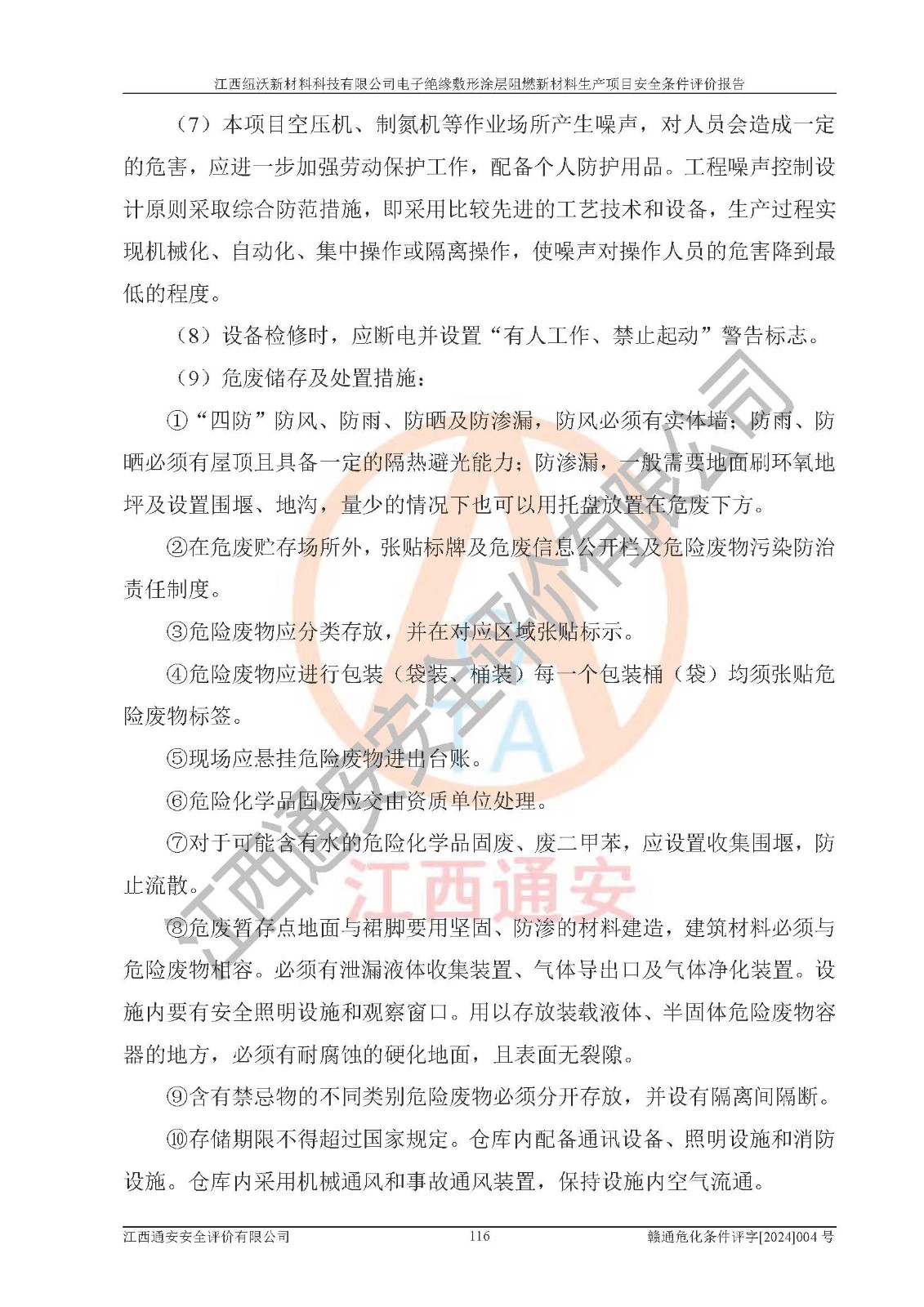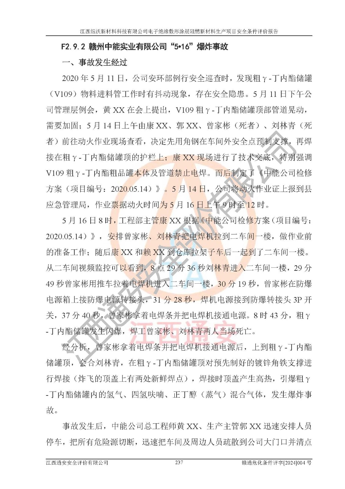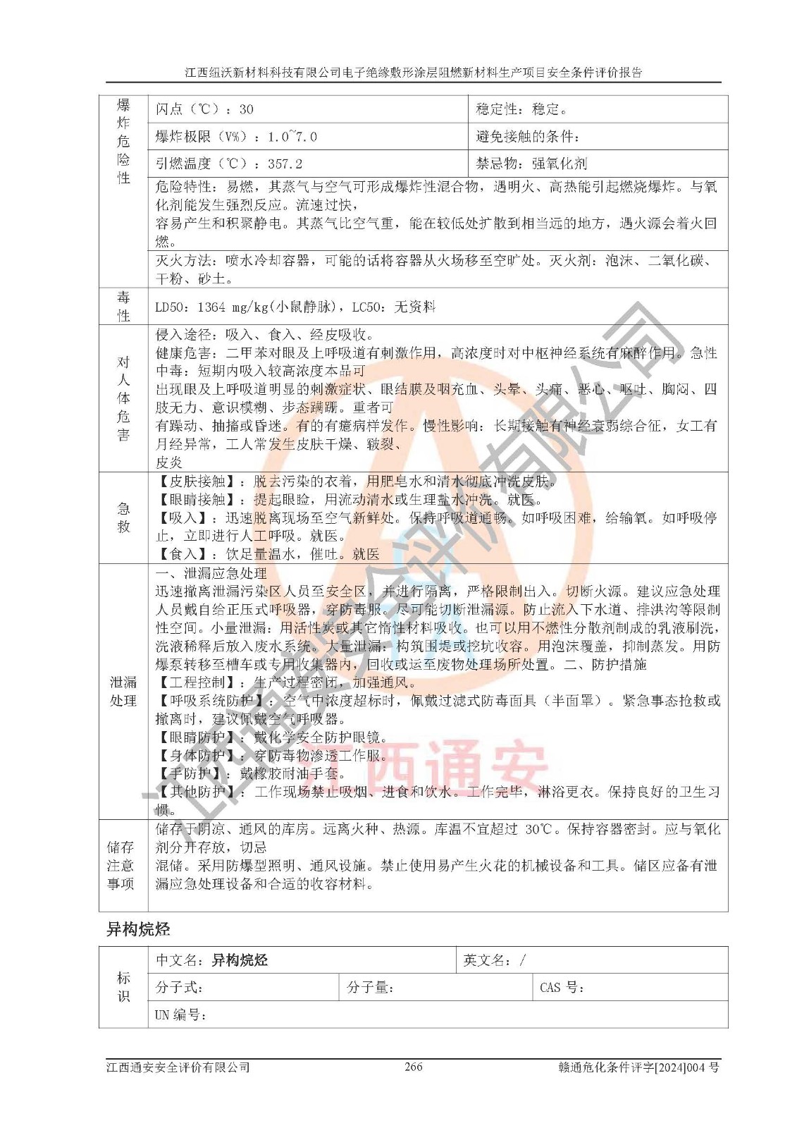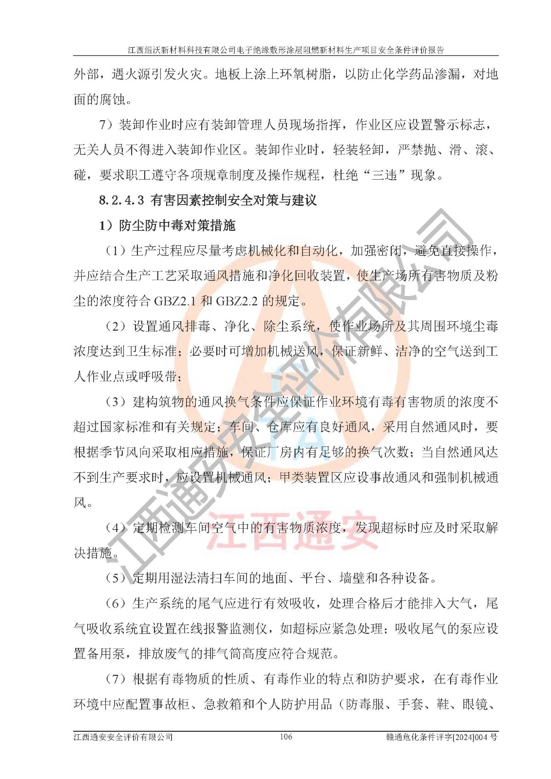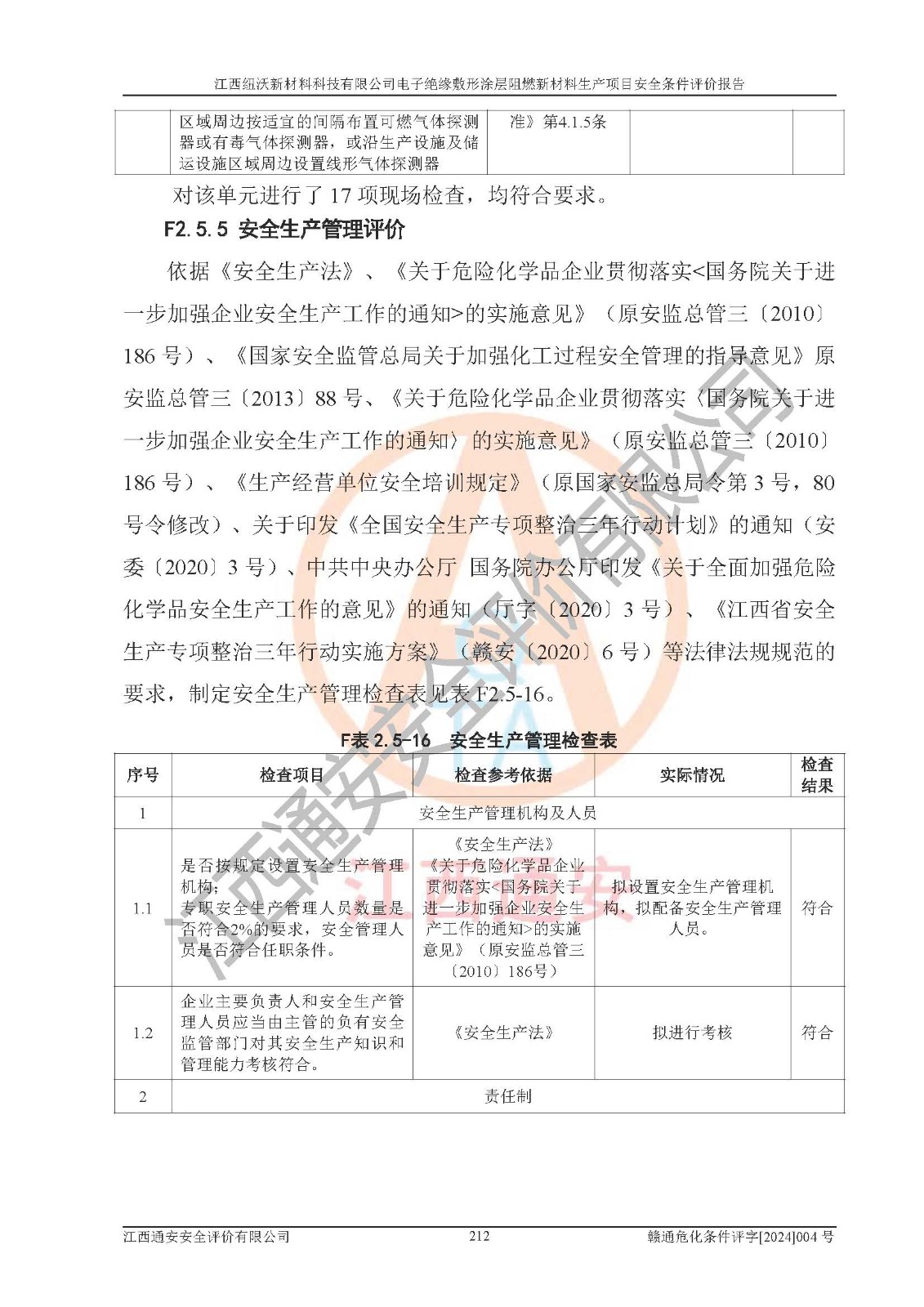 1)本項(xiàng)目依法取得了《江西省企業(yè)投資項(xiàng)目備案通知書》、《建設(shè)用地規(guī)劃許可證》,符合地方產(chǎn)業(yè)發(fā)展規(guī)劃的要求。 2)根據(jù)《**安全監(jiān)管總局關(guān)于公布首批重點(diǎn)監(jiān)管的危險(xiǎn)化工工藝目錄的通知》(安監(jiān)總管三[2009]116號(hào))和《**安全監(jiān)管總局關(guān)于公布第二批重點(diǎn)監(jiān)管危險(xiǎn)化工工藝目錄和調(diào)整首批重點(diǎn)監(jiān)管危險(xiǎn)化工工藝中部分典型工藝的通知》(安監(jiān)總管三[2013]3號(hào)),該項(xiàng)目未涉及重點(diǎn)監(jiān)管危險(xiǎn)化工工藝。 3)根據(jù)《危險(xiǎn)化學(xué)品重大危險(xiǎn)源辨識(shí)》(GB18218-2018),該項(xiàng)目未構(gòu)成危險(xiǎn)化學(xué)品重大危險(xiǎn)源。 4)項(xiàng)目存在的主要危險(xiǎn)因素有:火災(zāi)爆炸、容器爆炸、中毒窒息、灼燙、觸電、**傷害、機(jī)械傷害、高處墜落、物體打擊、淹溺等,存在的主要危害因素有:噪聲與振動(dòng)、高溫、有害化學(xué)物質(zhì)等;引起事故的原因有人的不安全行為、物的不安全狀態(tài)、管理缺陷和環(huán)境不良。其中*主要的危險(xiǎn)有害因素是火災(zāi)爆炸。 5)采用預(yù)先危險(xiǎn)性分析法評(píng)價(jià),結(jié)果為: (1)通過預(yù)先危險(xiǎn)(PHA)分析可知,項(xiàng)目廠址及總體布局單元存在周邊環(huán)境相互影響,發(fā)生異常情況,可對(duì)周邊企業(yè)生產(chǎn)經(jīng)營活動(dòng)、人員活動(dòng)產(chǎn)生影響;存在自然條件影響,可因雷擊、暴雨等引起事故;存在**傷害、建筑物危害,其固有的危險(xiǎn)性等級(jí)為Ⅱ級(jí),屬于“臨界的”,應(yīng)予以排除、采取控制措施因素。 (2)生產(chǎn)作業(yè)存在的危險(xiǎn)因素包括火災(zāi)爆炸、觸電、灼燙、中毒窒息固有的危險(xiǎn)等級(jí)為Ⅲ級(jí),屬于“危險(xiǎn)的”,可能導(dǎo)致人員傷亡和系統(tǒng)損壞的因素,需要采取防范和對(duì)策措施的因素;其它危險(xiǎn)因素固有的危險(xiǎn)等級(jí)為Ⅱ級(jí),屬于“臨界的”,應(yīng)予以排除、采取控制措施因素。 (3)生產(chǎn)作業(yè)存在的噪聲、粉塵、高溫、有害化學(xué)物質(zhì)的危險(xiǎn)有害因素等級(jí)為Ⅱ級(jí),屬于“臨界的”,應(yīng)予以排除、采取控制措施因素。 6)危險(xiǎn)度評(píng)價(jià)分析,結(jié)果為: 生產(chǎn)裝置危險(xiǎn)度評(píng)價(jià)分析:101生產(chǎn)車間為**危險(xiǎn)(Ⅰ級(jí))。 儲(chǔ)存單元危險(xiǎn)度評(píng)價(jià)分析:202甲類倉庫為**危險(xiǎn)(Ⅰ級(jí)),201丙類倉庫為低度危險(xiǎn)(Ⅲ級(jí))。 7)作業(yè)條件危險(xiǎn)性評(píng)價(jià)結(jié)果:在選定的評(píng)價(jià)單元中,其危險(xiǎn)分值均在70以下,危險(xiǎn)程度基本屬于“可能危險(xiǎn)”、“稍有危險(xiǎn)”范圍,作業(yè)條件相對(duì)安全。企業(yè)經(jīng)營過程中首先應(yīng)重點(diǎn)加強(qiáng)對(duì)甲類車間、甲類倉庫的危險(xiǎn)因素的嚴(yán)格控制,注重日常安全管理;其次要建立健全完善的安全生產(chǎn)責(zé)任制、安全管理制度、安全技術(shù)操作規(guī)程并**其貫徹落實(shí);第三要認(rèn)真抓好操作人員、管理人員的安全知識(shí)和操作技能的培訓(xùn),**人員具有與工程技術(shù)水平相適應(yīng)的技術(shù)素質(zhì)和安全素質(zhì),**安全作業(yè)。 8)項(xiàng)目建設(shè)場(chǎng)地符合當(dāng)?shù)匾?guī)劃要求,建設(shè)場(chǎng)地通過合理規(guī)劃,其選址、周邊環(huán)境、總平面布置、交通運(yùn)輸?shù)饶芊稀吨腥A人民共和國安全生產(chǎn)法》、《危險(xiǎn)化學(xué)品安全管理?xiàng)l例》、《建筑設(shè)計(jì)防火規(guī)范》、《精細(xì)化工企業(yè)工程設(shè)計(jì)防火標(biāo)準(zhǔn)》等法規(guī)、標(biāo)準(zhǔn)、規(guī)范要求。 廠址地區(qū)地震活動(dòng)相對(duì)較弱,災(zāi)害性天氣出現(xiàn)頻率稍高,自然災(zāi)害對(duì)項(xiàng)目建設(shè)具有**影響,通過采取相應(yīng)的防護(hù)措施,自然條件適宜建設(shè)。 9)建設(shè)項(xiàng)目符合**產(chǎn)業(yè)政策的要求;選擇工藝為現(xiàn)行成熟工藝,其安全可靠性可得到**。 10)本報(bào)告已根據(jù)有關(guān)安全生產(chǎn)法律、法規(guī)、規(guī)章和**標(biāo)準(zhǔn)、行業(yè)標(biāo)準(zhǔn),并嚴(yán)格執(zhí)行省委辦公廳省**辦公廳《關(guān)于全面加強(qiáng)危險(xiǎn)化學(xué)品安全生產(chǎn)工作的實(shí)施意見》(贛辦發(fā)[2020]32號(hào))及鄱陽湖生態(tài)經(jīng)濟(jì)區(qū)、長(zhǎng)江經(jīng)濟(jì)帶、“五河一湖”相關(guān)政策規(guī)定,客觀、公正、科學(xué)地進(jìn)行安全評(píng)價(jià),項(xiàng)目符合《江西省應(yīng)急管理廳關(guān)于印發(fā)《江西省危險(xiǎn)化學(xué)品建設(shè)項(xiàng)目安全監(jiān)督管理實(shí)施細(xì)則》(試行)的通知》(贛應(yīng)急字[2021]100號(hào))的要求。 11)本報(bào)告結(jié)合工藝特征,提出應(yīng)采取的對(duì)應(yīng)的自動(dòng)化控制系統(tǒng)及自動(dòng)化實(shí)施方案,滿足《江西省應(yīng)急管理廳關(guān)于印發(fā)《江西省化工企業(yè)自動(dòng)化提升實(shí)施方案》(試行)的通知》(贛應(yīng)急字[2021]190號(hào))的要求。 綜上所述:江西紐沃新材料科技有限公司電