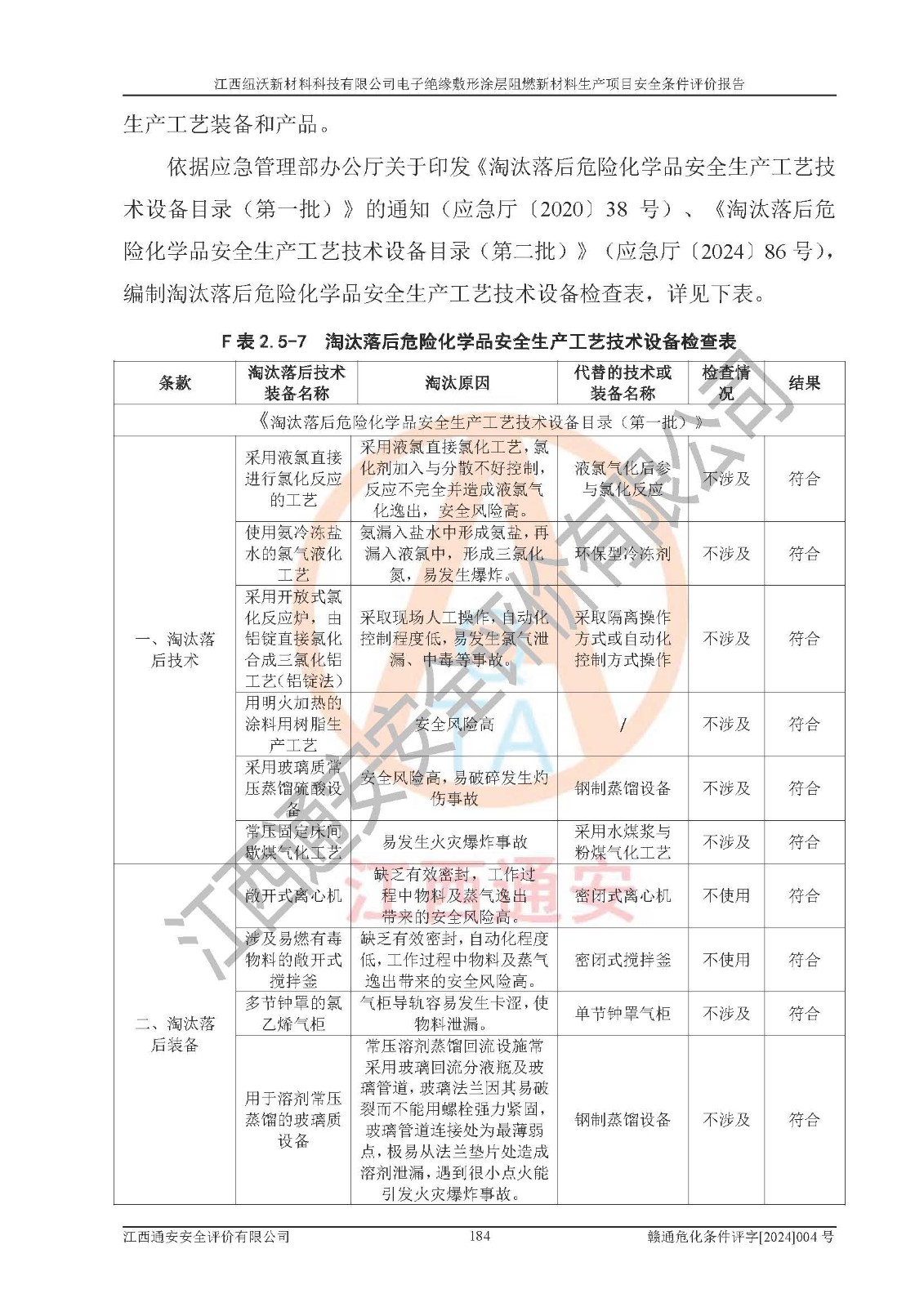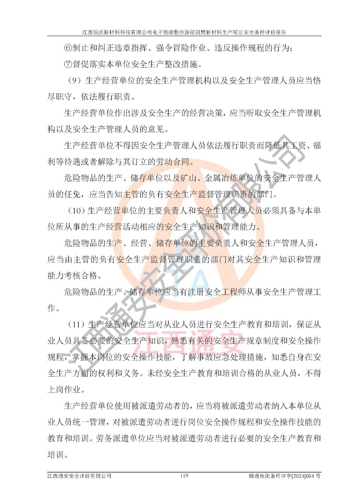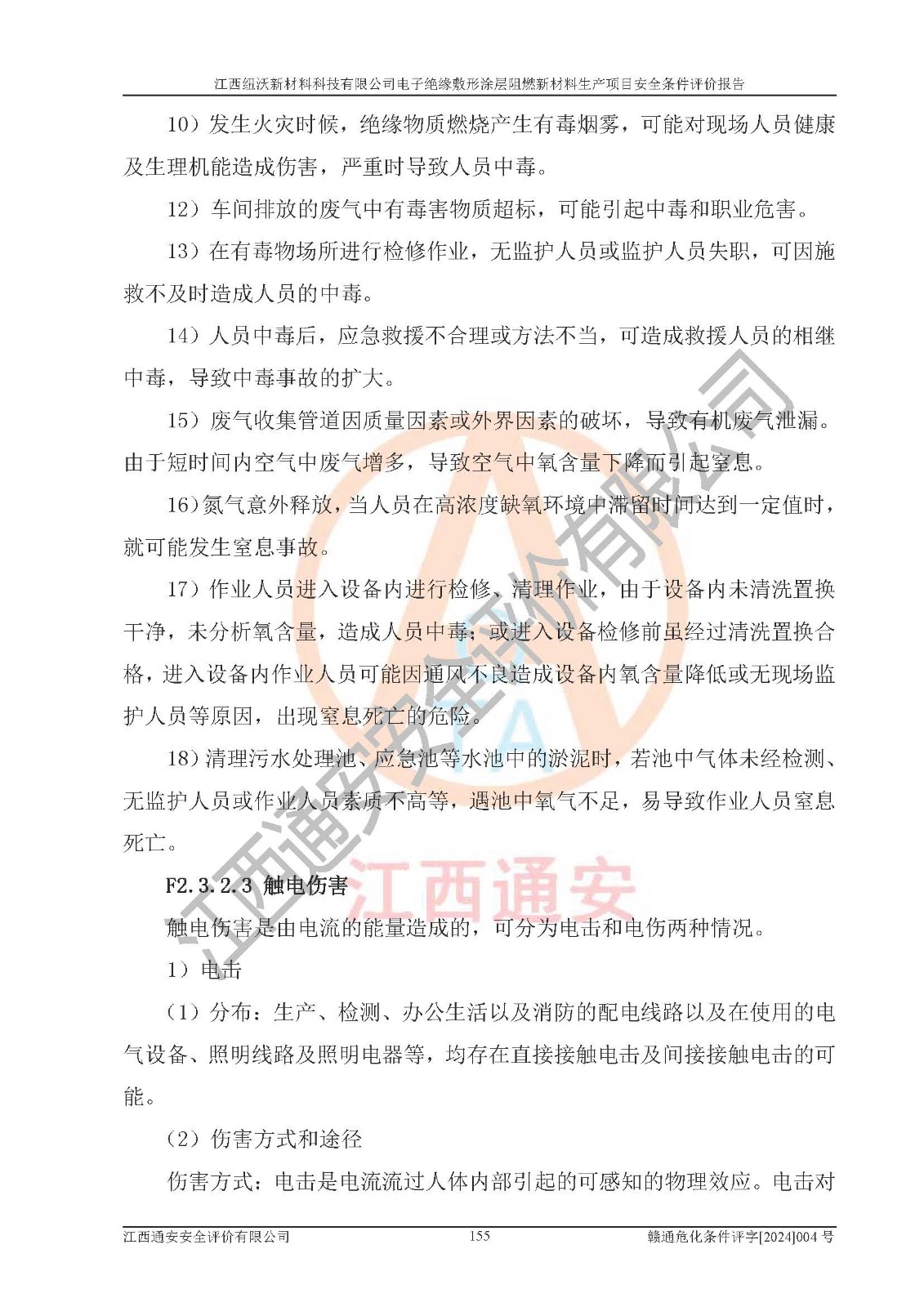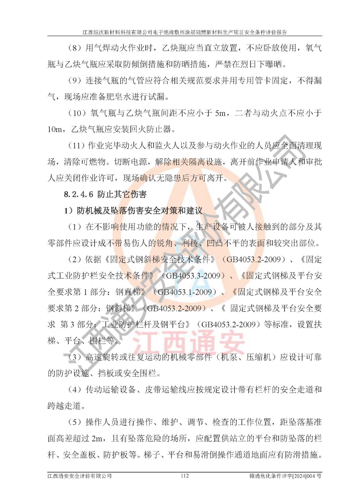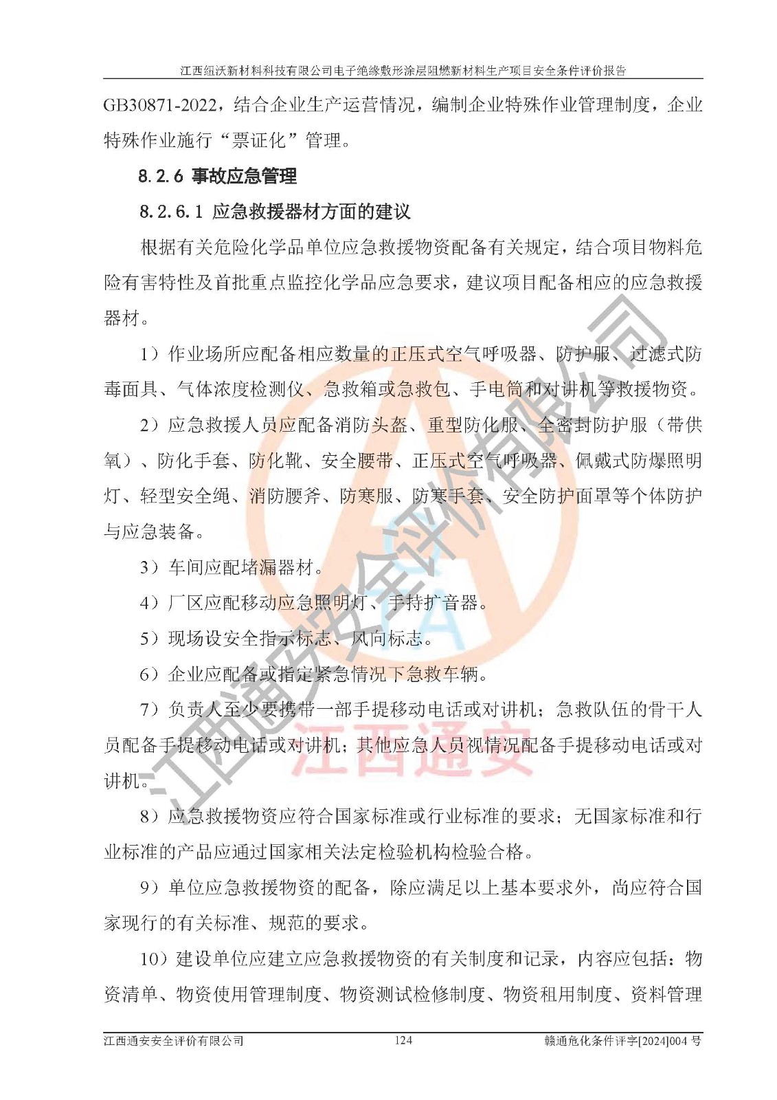 1)本項(xiàng)目依法取得了《江西省企業(yè)投資項(xiàng)目備案通知書》、《建設(shè)用地規(guī)劃許可證》,符合地方產(chǎn)業(yè)發(fā)展規(guī)劃的要求。 2)根據(jù)《**安全監(jiān)管總局關(guān)于公布首批重點(diǎn)監(jiān)管的危險(xiǎn)化工工藝目錄的通知》(安監(jiān)總管三[2009]116號(hào))和《**安全監(jiān)管總局關(guān)于公布第二批重點(diǎn)監(jiān)管危險(xiǎn)化工工藝目錄和調(diào)整首批重點(diǎn)監(jiān)管危險(xiǎn)化工工藝中部分典型工藝的通知》(安監(jiān)總管三[2013]3號(hào)),該項(xiàng)目未涉及重點(diǎn)監(jiān)管危險(xiǎn)化工工藝。 3)根據(jù)《危險(xiǎn)化學(xué)品重大危險(xiǎn)源辨識(shí)》(GB18218-2018),該項(xiàng)目未構(gòu)成危險(xiǎn)化學(xué)品重大危險(xiǎn)源。 4)項(xiàng)目存在的主要危險(xiǎn)因素有:火災(zāi)爆炸、容器爆炸、中毒窒息、灼燙、觸電、**傷害、機(jī)械傷害、高處墜落、物體打擊、淹溺等,存在的主要危害因素有:噪聲與振動(dòng)、高溫、有害化學(xué)物質(zhì)等;引起事故的原因有人的不安全行為、物的不安全狀態(tài)、管理缺陷和環(huán)境不良。其中*主要的危險(xiǎn)有害因素是火災(zāi)爆炸。 5)采用預(yù)先危險(xiǎn)性分析法評(píng)價(jià),結(jié)果為: (1)通過預(yù)先危險(xiǎn)(PHA)分析可知,項(xiàng)目廠址及總體布局單元存在周邊環(huán)境相互影響,發(fā)生異常情況,可對(duì)周邊企業(yè)生產(chǎn)經(jīng)營活動(dòng)、人員活動(dòng)產(chǎn)生影響;存在自然條件影響,可因雷擊、暴雨等引起事故;存在**傷害、建筑物危害,其固有的危險(xiǎn)性等級(jí)為Ⅱ級(jí),屬于“臨界的”,應(yīng)予以排除、采取控制措施因素。 (2)生產(chǎn)作業(yè)存在的危險(xiǎn)因素包括火災(zāi)爆炸、觸電、灼燙、中毒窒息固有的危險(xiǎn)等級(jí)為Ⅲ級(jí),屬于“危險(xiǎn)的”,可能導(dǎo)致人員傷亡和系統(tǒng)損壞的因素,需要采取防范和對(duì)策措施的因素;其它危險(xiǎn)因素固有的危險(xiǎn)等級(jí)為Ⅱ級(jí),屬于“臨界的”,應(yīng)予以排除、采取控制措施因素。 (3)生產(chǎn)作業(yè)存在的噪聲、粉塵、高溫、有害化學(xué)物質(zhì)的危險(xiǎn)有害因素等級(jí)為Ⅱ級(jí),屬于“臨界的”,應(yīng)予以排除、采取控制措施因素。 6)危險(xiǎn)度評(píng)價(jià)分析,結(jié)果為: 生產(chǎn)裝置危險(xiǎn)度評(píng)價(jià)分析:101生產(chǎn)車間為**危險(xiǎn)(Ⅰ級(jí))。 儲(chǔ)存單元危險(xiǎn)度評(píng)價(jià)分析:202甲類倉庫為**危險(xiǎn)(Ⅰ級(jí)),201丙類倉庫為低度危險(xiǎn)(Ⅲ級(jí))。 7)作業(yè)條件危險(xiǎn)性評(píng)價(jià)結(jié)果:在選定的評(píng)價(jià)單元中,其危險(xiǎn)分值均在70以下,危險(xiǎn)程度基本屬于“可能危險(xiǎn)”、“稍有危險(xiǎn)”范圍,作業(yè)條件相對(duì)安全。企業(yè)經(jīng)營過程中首先應(yīng)重點(diǎn)加強(qiáng)對(duì)甲類車間、甲類倉庫的危險(xiǎn)因素的嚴(yán)格控制,注重日常安全管理;其次要建立健全完善的安全生產(chǎn)責(zé)任制、安全管理制度、安全技術(shù)操作規(guī)程并**其貫徹落實(shí);第三要認(rèn)真抓好操作人員、管理人員的安全知識(shí)和操作技能的培訓(xùn),**人員具有與工程技術(shù)水平相適應(yīng)的技術(shù)素質(zhì)和安全素質(zhì),**安全作業(yè)。 8)項(xiàng)目建設(shè)場(chǎng)地符合當(dāng)?shù)匾?guī)劃要求,建設(shè)場(chǎng)地通過合理規(guī)劃,其選址、周邊環(huán)境、總平面布置、交通運(yùn)輸?shù)饶芊稀吨腥A人民共和國安全生產(chǎn)法》、《危險(xiǎn)化學(xué)品安全管理?xiàng)l例》、《建筑設(shè)計(jì)防火規(guī)范》、《精細(xì)化工企業(yè)工程設(shè)計(jì)防火標(biāo)準(zhǔn)》等法規(guī)、標(biāo)準(zhǔn)、規(guī)范要求。 廠址地區(qū)地震活動(dòng)相對(duì)較弱,災(zāi)害性天氣出現(xiàn)頻率稍高,自然災(zāi)害對(duì)項(xiàng)目建設(shè)具有**影響,通過采取相應(yīng)的防護(hù)措施,自然條件適宜建設(shè)。 9)建設(shè)項(xiàng)目符合**產(chǎn)業(yè)政策的要求;選擇工藝為現(xiàn)行成熟工藝,其安全可靠性可得到**。 10)本報(bào)告已根據(jù)有關(guān)安全生產(chǎn)法律、法規(guī)、規(guī)章和**標(biāo)準(zhǔn)、行業(yè)標(biāo)準(zhǔn),并嚴(yán)格執(zhí)行省委辦公廳省**辦公廳《關(guān)于全面加強(qiáng)危險(xiǎn)化學(xué)品安全生產(chǎn)工作的實(shí)施意見》(贛辦發(fā)[2020]32號(hào))及鄱陽湖生態(tài)經(jīng)濟(jì)區(qū)、長(zhǎng)江經(jīng)濟(jì)帶、“五河一湖”相關(guān)政策規(guī)定,客觀、公正、科學(xué)地進(jìn)行安全評(píng)價(jià),項(xiàng)目符合《江西省應(yīng)急管理廳關(guān)于印發(fā)《江西省危險(xiǎn)化學(xué)品建設(shè)項(xiàng)目安全監(jiān)督管理實(shí)施細(xì)則》(試行)的通知》(贛應(yīng)急字[2021]100號(hào))的要求。 11)本報(bào)告結(jié)合工藝特征,提出應(yīng)采取的對(duì)應(yīng)的自動(dòng)化控制系統(tǒng)及自動(dòng)化實(shí)施方案,滿足《江西省應(yīng)急管理廳關(guān)于印發(fā)《江西省化工企業(yè)自動(dòng)化提升實(shí)施方案》(試行)的通知》(贛應(yīng)急字[2021]190號(hào))的要求。 綜上所述:江西紐沃新材料科技有限公司電