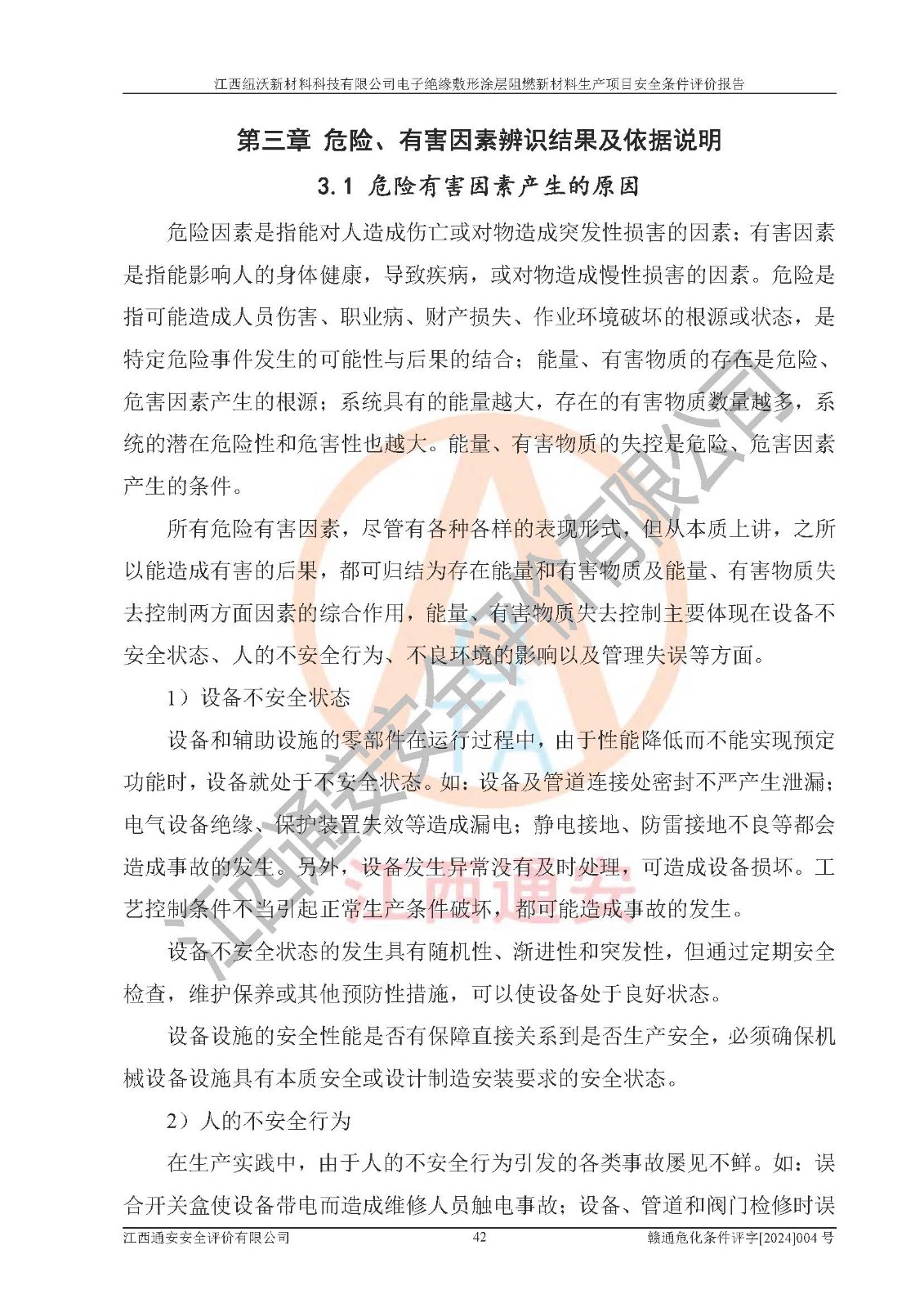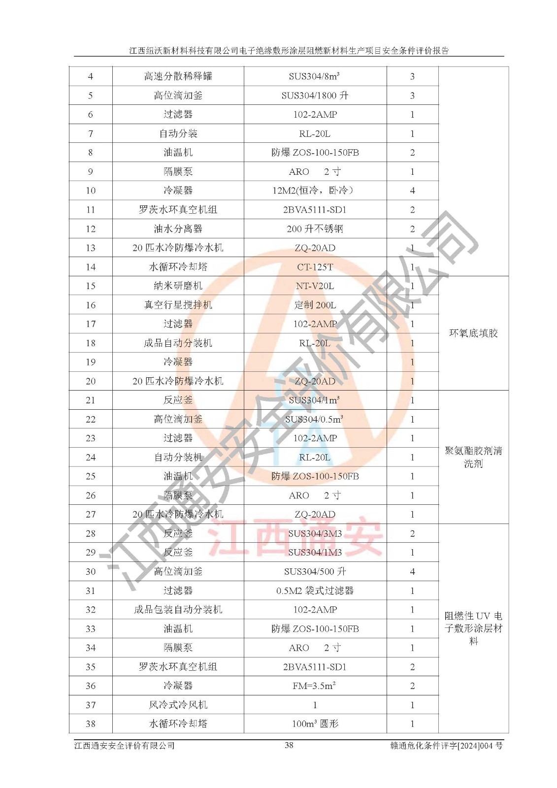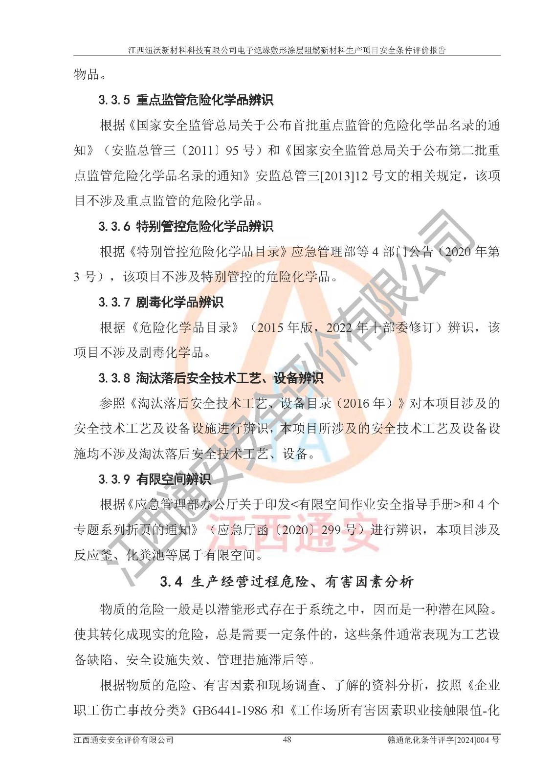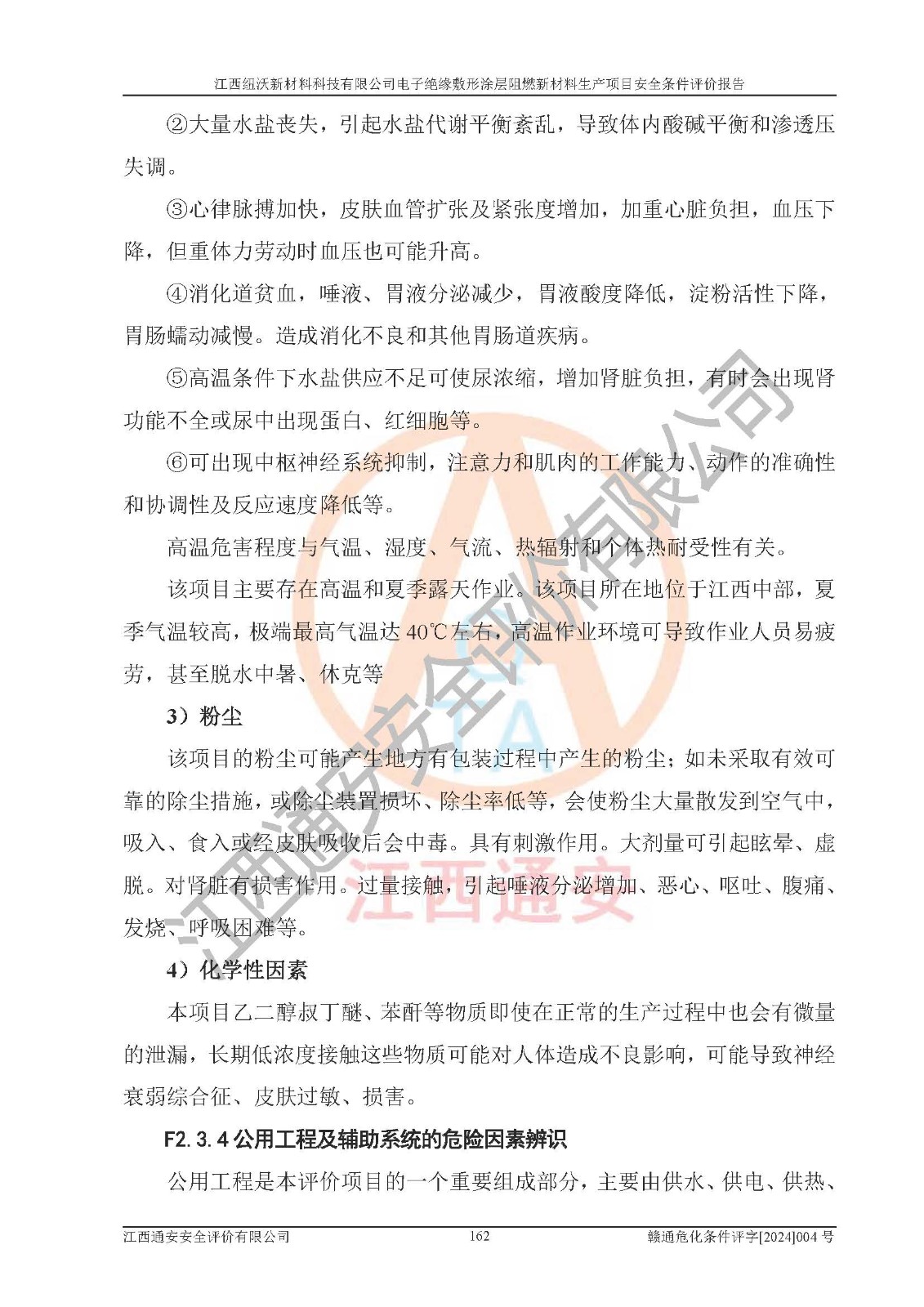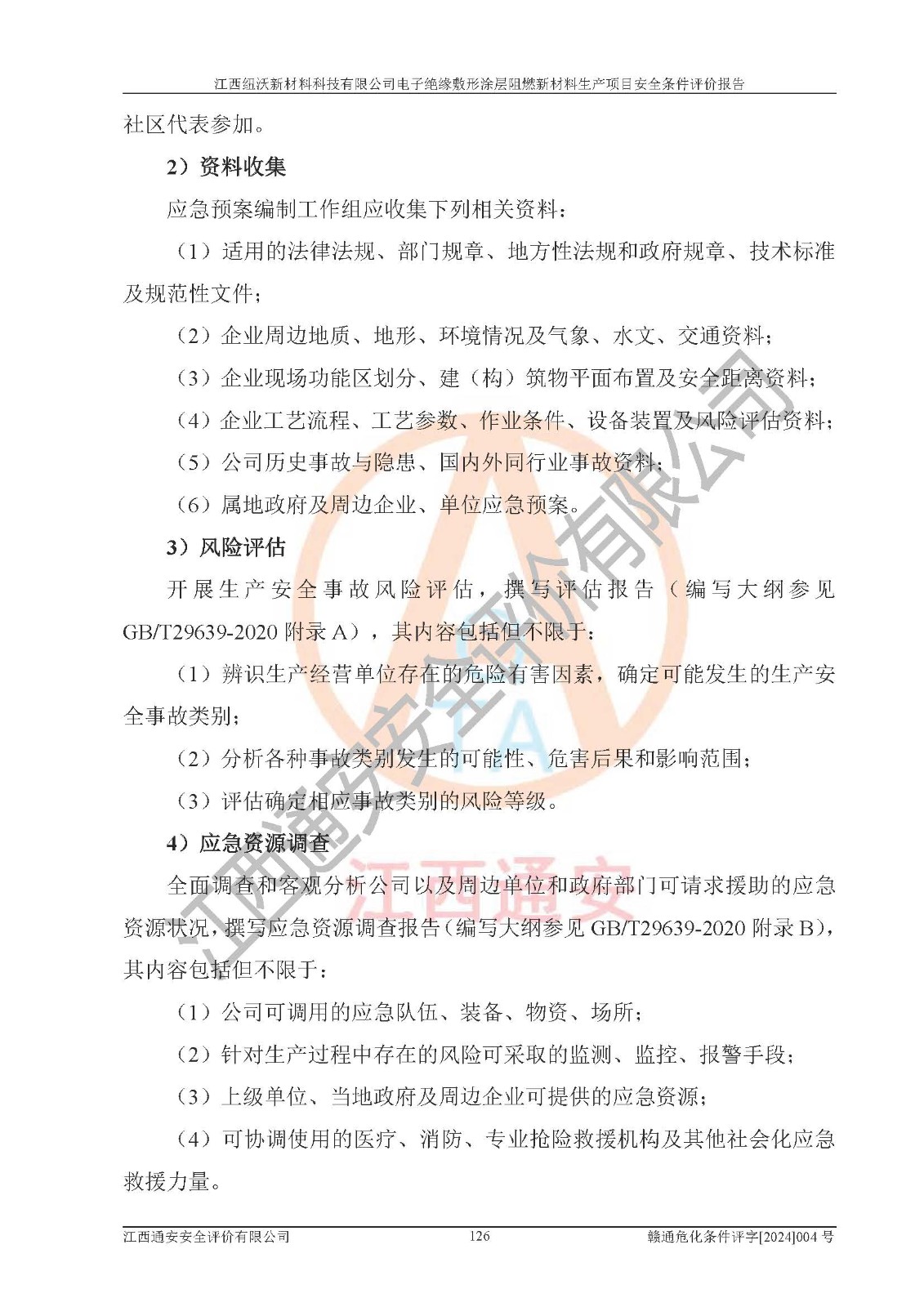 1)本項(xiàng)目依法取得了《江西省企業(yè)投資項(xiàng)目備案通知書》、《建設(shè)用地規(guī)劃許可證》,符合地方產(chǎn)業(yè)發(fā)展規(guī)劃的要求。 2)根據(jù)《**安全監(jiān)管總局關(guān)于公布首批重點(diǎn)監(jiān)管的危險(xiǎn)化工工藝目錄的通知》(安監(jiān)總管三[2009]116號(hào))和《**安全監(jiān)管總局關(guān)于公布第二批重點(diǎn)監(jiān)管危險(xiǎn)化工工藝目錄和調(diào)整首批重點(diǎn)監(jiān)管危險(xiǎn)化工工藝中部分典型工藝的通知》(安監(jiān)總管三[2013]3號(hào)),該項(xiàng)目未涉及重點(diǎn)監(jiān)管危險(xiǎn)化工工藝。 3)根據(jù)《危險(xiǎn)化學(xué)品重大危險(xiǎn)源辨識(shí)》(GB18218-2018),該項(xiàng)目未構(gòu)成危險(xiǎn)化學(xué)品重大危險(xiǎn)源。 4)項(xiàng)目存在的主要危險(xiǎn)因素有:火災(zāi)爆炸、容器爆炸、中毒窒息、灼燙、觸電、**傷害、機(jī)械傷害、高處墜落、物體打擊、淹溺等,存在的主要危害因素有:噪聲與振動(dòng)、高溫、有害化學(xué)物質(zhì)等;引起事故的原因有人的不安全行為、物的不安全狀態(tài)、管理缺陷和環(huán)境不良。其中*主要的危險(xiǎn)有害因素是火災(zāi)爆炸。 5)采用預(yù)先危險(xiǎn)性分析法評(píng)價(jià),結(jié)果為: (1)通過預(yù)先危險(xiǎn)(PHA)分析可知,項(xiàng)目廠址及總體布局單元存在周邊環(huán)境相互影響,發(fā)生異常情況,可對(duì)周邊企業(yè)生產(chǎn)經(jīng)營活動(dòng)、人員活動(dòng)產(chǎn)生影響;存在自然條件影響,可因雷擊、暴雨等引起事故;存在**傷害、建筑物危害,其固有的危險(xiǎn)性等級(jí)為Ⅱ級(jí),屬于“臨界的”,應(yīng)予以排除、采取控制措施因素。 (2)生產(chǎn)作業(yè)存在的危險(xiǎn)因素包括火災(zāi)爆炸、觸電、灼燙、中毒窒息固有的危險(xiǎn)等級(jí)為Ⅲ級(jí),屬于“危險(xiǎn)的”,可能導(dǎo)致人員傷亡和系統(tǒng)損壞的因素,需要采取防范和對(duì)策措施的因素;其它危險(xiǎn)因素固有的危險(xiǎn)等級(jí)為Ⅱ級(jí),屬于“臨界的”,應(yīng)予以排除、采取控制措施因素。 (3)生產(chǎn)作業(yè)存在的噪聲、粉塵、高溫、有害化學(xué)物質(zhì)的危險(xiǎn)有害因素等級(jí)為Ⅱ級(jí),屬于“臨界的”,應(yīng)予以排除、采取控制措施因素。 6)危險(xiǎn)度評(píng)價(jià)分析,結(jié)果為: 生產(chǎn)裝置危險(xiǎn)度評(píng)價(jià)分析:101生產(chǎn)車間為**危險(xiǎn)(Ⅰ級(jí))。 儲(chǔ)存單元危險(xiǎn)度評(píng)價(jià)分析:202甲類倉庫為**危險(xiǎn)(Ⅰ級(jí)),201丙類倉庫為低度危險(xiǎn)(Ⅲ級(jí))。 7)作業(yè)條件危險(xiǎn)性評(píng)價(jià)結(jié)果:在選定的評(píng)價(jià)單元中,其危險(xiǎn)分值均在70以下,危險(xiǎn)程度基本屬于“可能危險(xiǎn)”、“稍有危險(xiǎn)”范圍,作業(yè)條件相對(duì)安全。企業(yè)經(jīng)營過程中首先應(yīng)重點(diǎn)加強(qiáng)對(duì)甲類車間、甲類倉庫的危險(xiǎn)因素的嚴(yán)格控制,注重日常安全管理;其次要建立健全完善的安全生產(chǎn)責(zé)任制、安全管理制度、安全技術(shù)操作規(guī)程并**其貫徹落實(shí);第三要認(rèn)真抓好操作人員、管理人員的安全知識(shí)和操作技能的培訓(xùn),**人員具有與工程技術(shù)水平相適應(yīng)的技術(shù)素質(zhì)和安全素質(zhì),**安全作業(yè)。 8)項(xiàng)目建設(shè)場(chǎng)地符合當(dāng)?shù)匾?guī)劃要求,建設(shè)場(chǎng)地通過合理規(guī)劃,其選址、周邊環(huán)境、總平面布置、交通運(yùn)輸?shù)饶芊稀吨腥A人民共和國安全生產(chǎn)法》、《危險(xiǎn)化學(xué)品安全管理?xiàng)l例》、《建筑設(shè)計(jì)防火規(guī)范》、《精細(xì)化工企業(yè)工程設(shè)計(jì)防火標(biāo)準(zhǔn)》等法規(guī)、標(biāo)準(zhǔn)、規(guī)范要求。 廠址地區(qū)地震活動(dòng)相對(duì)較弱,災(zāi)害性天氣出現(xiàn)頻率稍高,自然災(zāi)害對(duì)項(xiàng)目建設(shè)具有**影響,通過采取相應(yīng)的防護(hù)措施,自然條件適宜建設(shè)。 9)建設(shè)項(xiàng)目符合**產(chǎn)業(yè)政策的要求;選擇工藝為現(xiàn)行成熟工藝,其安全可靠性可得到**。 10)本報(bào)告已根據(jù)有關(guān)安全生產(chǎn)法律、法規(guī)、規(guī)章和**標(biāo)準(zhǔn)、行業(yè)標(biāo)準(zhǔn),并嚴(yán)格執(zhí)行省委辦公廳省**辦公廳《關(guān)于全面加強(qiáng)危險(xiǎn)化學(xué)品安全生產(chǎn)工作的實(shí)施意見》(贛辦發(fā)[2020]32號(hào))及鄱陽湖生態(tài)經(jīng)濟(jì)區(qū)、長(zhǎng)江經(jīng)濟(jì)帶、“五河一湖”相關(guān)政策規(guī)定,客觀、公正、科學(xué)地進(jìn)行安全評(píng)價(jià),項(xiàng)目符合《江西省應(yīng)急管理廳關(guān)于印發(fā)《江西省危險(xiǎn)化學(xué)品建設(shè)項(xiàng)目安全監(jiān)督管理實(shí)施細(xì)則》(試行)的通知》(贛應(yīng)急字[2021]100號(hào))的要求。 11)本報(bào)告結(jié)合工藝特征,提出應(yīng)采取的對(duì)應(yīng)的自動(dòng)化控制系統(tǒng)及自動(dòng)化實(shí)施方案,滿足《江西省應(yīng)急管理廳關(guān)于印發(fā)《江西省化工企業(yè)自動(dòng)化提升實(shí)施方案》(試行)的通知》(贛應(yīng)急字[2021]190號(hào))的要求。 綜上所述:江西紐沃新材料科技有限公司電