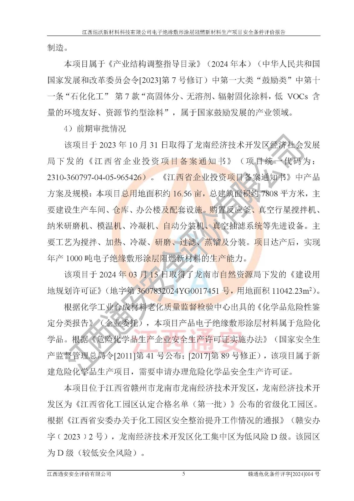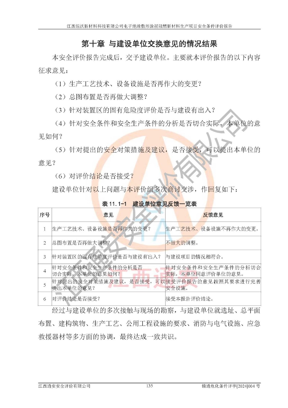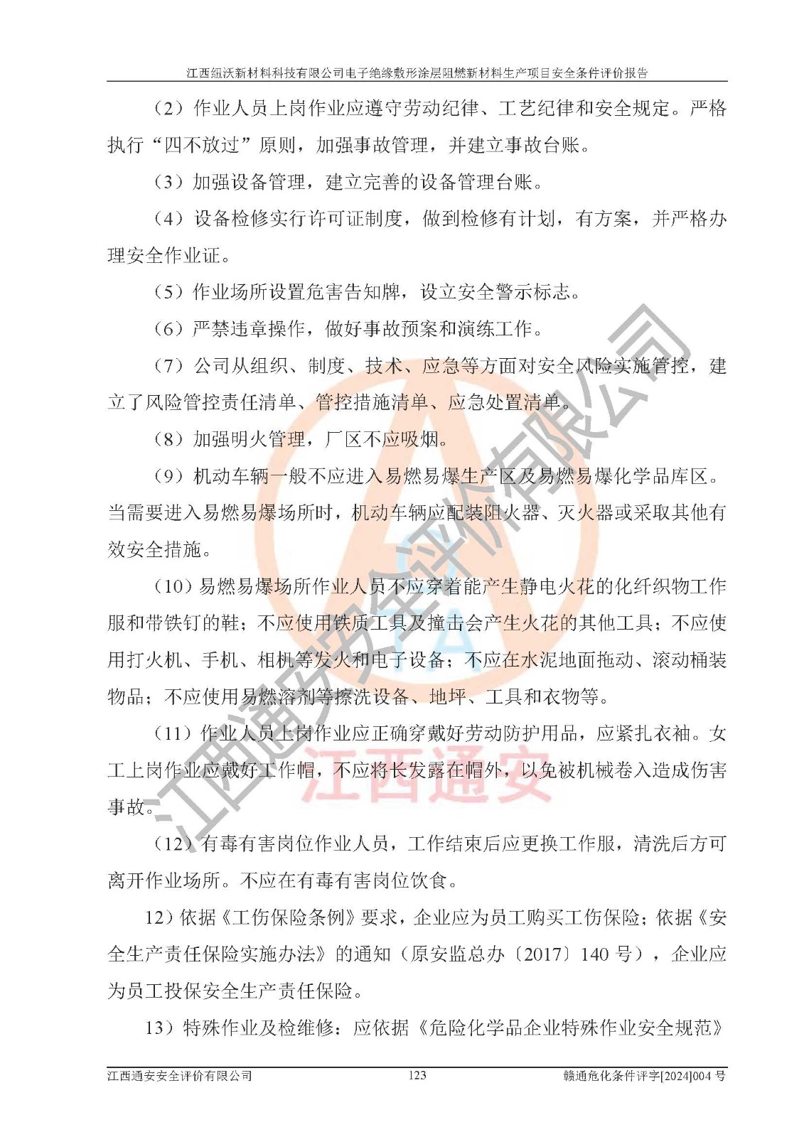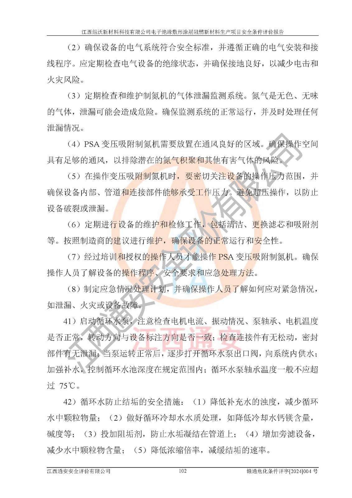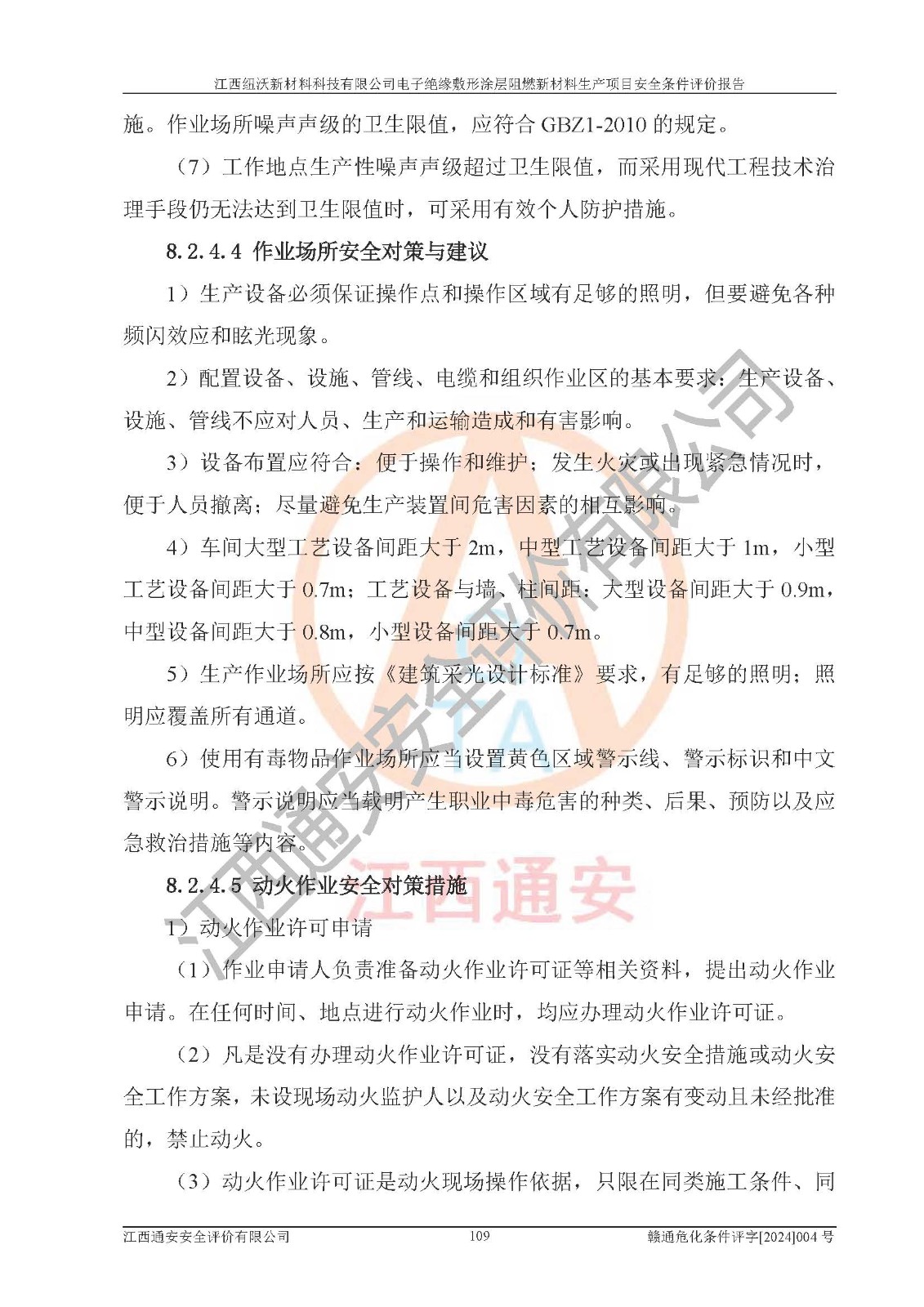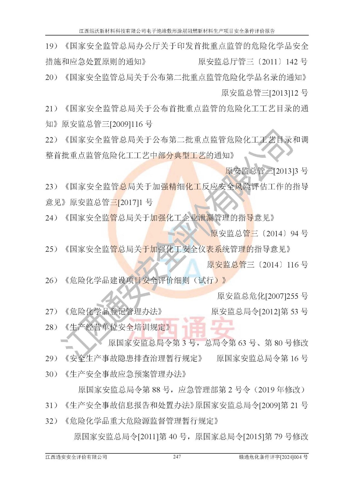 1)本項(xiàng)目依法取得了《江西省企業(yè)投資項(xiàng)目備案通知書》、《建設(shè)用地規(guī)劃許可證》,符合地方產(chǎn)業(yè)發(fā)展規(guī)劃的要求。 2)根據(jù)《**安全監(jiān)管總局關(guān)于公布首批重點(diǎn)監(jiān)管的危險(xiǎn)化工工藝目錄的通知》(安監(jiān)總管三[2009]116號(hào))和《**安全監(jiān)管總局關(guān)于公布第二批重點(diǎn)監(jiān)管危險(xiǎn)化工工藝目錄和調(diào)整首批重點(diǎn)監(jiān)管危險(xiǎn)化工工藝中部分典型工藝的通知》(安監(jiān)總管三[2013]3號(hào)),該項(xiàng)目未涉及重點(diǎn)監(jiān)管危險(xiǎn)化工工藝。 3)根據(jù)《危險(xiǎn)化學(xué)品重大危險(xiǎn)源辨識(shí)》(GB18218-2018),該項(xiàng)目未構(gòu)成危險(xiǎn)化學(xué)品重大危險(xiǎn)源。 4)項(xiàng)目存在的主要危險(xiǎn)因素有:火災(zāi)爆炸、容器爆炸、中毒窒息、灼燙、觸電、**傷害、機(jī)械傷害、高處墜落、物體打擊、淹溺等,存在的主要危害因素有:噪聲與振動(dòng)、高溫、有害化學(xué)物質(zhì)等;引起事故的原因有人的不安全行為、物的不安全狀態(tài)、管理缺陷和環(huán)境不良。其中*主要的危險(xiǎn)有害因素是火災(zāi)爆炸。 5)采用預(yù)先危險(xiǎn)性分析法評(píng)價(jià),結(jié)果為: (1)通過預(yù)先危險(xiǎn)(PHA)分析可知,項(xiàng)目廠址及總體布局單元存在周邊環(huán)境相互影響,發(fā)生異常情況,可對(duì)周邊企業(yè)生產(chǎn)經(jīng)營活動(dòng)、人員活動(dòng)產(chǎn)生影響;存在自然條件影響,可因雷擊、暴雨等引起事故;存在**傷害、建筑物危害,其固有的危險(xiǎn)性等級(jí)為Ⅱ級(jí),屬于“臨界的”,應(yīng)予以排除、采取控制措施因素。 (2)生產(chǎn)作業(yè)存在的危險(xiǎn)因素包括火災(zāi)爆炸、觸電、灼燙、中毒窒息固有的危險(xiǎn)等級(jí)為Ⅲ級(jí),屬于“危險(xiǎn)的”,可能導(dǎo)致人員傷亡和系統(tǒng)損壞的因素,需要采取防范和對(duì)策措施的因素;其它危險(xiǎn)因素固有的危險(xiǎn)等級(jí)為Ⅱ級(jí),屬于“臨界的”,應(yīng)予以排除、采取控制措施因素。 (3)生產(chǎn)作業(yè)存在的噪聲、粉塵、高溫、有害化學(xué)物質(zhì)的危險(xiǎn)有害因素等級(jí)為Ⅱ級(jí),屬于“臨界的”,應(yīng)予以排除、采取控制措施因素。 6)危險(xiǎn)度評(píng)價(jià)分析,結(jié)果為: 生產(chǎn)裝置危險(xiǎn)度評(píng)價(jià)分析:101生產(chǎn)車間為**危險(xiǎn)(Ⅰ級(jí))。 儲(chǔ)存單元危險(xiǎn)度評(píng)價(jià)分析:202甲類倉庫為**危險(xiǎn)(Ⅰ級(jí)),201丙類倉庫為低度危險(xiǎn)(Ⅲ級(jí))。 7)作業(yè)條件危險(xiǎn)性評(píng)價(jià)結(jié)果:在選定的評(píng)價(jià)單元中,其危險(xiǎn)分值均在70以下,危險(xiǎn)程度基本屬于“可能危險(xiǎn)”、“稍有危險(xiǎn)”范圍,作業(yè)條件相對(duì)安全。企業(yè)經(jīng)營過程中首先應(yīng)重點(diǎn)加強(qiáng)對(duì)甲類車間、甲類倉庫的危險(xiǎn)因素的嚴(yán)格控制,注重日常安全管理;其次要建立健全完善的安全生產(chǎn)責(zé)任制、安全管理制度、安全技術(shù)操作規(guī)程并**其貫徹落實(shí);第三要認(rèn)真抓好操作人員、管理人員的安全知識(shí)和操作技能的培訓(xùn),**人員具有與工程技術(shù)水平相適應(yīng)的技術(shù)素質(zhì)和安全素質(zhì),**安全作業(yè)。 8)項(xiàng)目建設(shè)場(chǎng)地符合當(dāng)?shù)匾?guī)劃要求,建設(shè)場(chǎng)地通過合理規(guī)劃,其選址、周邊環(huán)境、總平面布置、交通運(yùn)輸?shù)饶芊稀吨腥A人民共和國安全生產(chǎn)法》、《危險(xiǎn)化學(xué)品安全管理?xiàng)l例》、《建筑設(shè)計(jì)防火規(guī)范》、《精細(xì)化工企業(yè)工程設(shè)計(jì)防火標(biāo)準(zhǔn)》等法規(guī)、標(biāo)準(zhǔn)、規(guī)范要求。 廠址地區(qū)地震活動(dòng)相對(duì)較弱,災(zāi)害性天氣出現(xiàn)頻率稍高,自然災(zāi)害對(duì)項(xiàng)目建設(shè)具有**影響,通過采取相應(yīng)的防護(hù)措施,自然條件適宜建設(shè)。 9)建設(shè)項(xiàng)目符合**產(chǎn)業(yè)政策的要求;選擇工藝為現(xiàn)行成熟工藝,其安全可靠性可得到**。 10)本報(bào)告已根據(jù)有關(guān)安全生產(chǎn)法律、法規(guī)、規(guī)章和**標(biāo)準(zhǔn)、行業(yè)標(biāo)準(zhǔn),并嚴(yán)格執(zhí)行省委辦公廳省**辦公廳《關(guān)于全面加強(qiáng)危險(xiǎn)化學(xué)品安全生產(chǎn)工作的實(shí)施意見》(贛辦發(fā)[2020]32號(hào))及鄱陽湖生態(tài)經(jīng)濟(jì)區(qū)、長(zhǎng)江經(jīng)濟(jì)帶、“五河一湖”相關(guān)政策規(guī)定,客觀、公正、科學(xué)地進(jìn)行安全評(píng)價(jià),項(xiàng)目符合《江西省應(yīng)急管理廳關(guān)于印發(fā)《江西省危險(xiǎn)化學(xué)品建設(shè)項(xiàng)目安全監(jiān)督管理實(shí)施細(xì)則》(試行)的通知》(贛應(yīng)急字[2021]100號(hào))的要求。 11)本報(bào)告結(jié)合工藝特征,提出應(yīng)采取的對(duì)應(yīng)的自動(dòng)化控制系統(tǒng)及自動(dòng)化實(shí)施方案,滿足《江西省應(yīng)急管理廳關(guān)于印發(fā)《江西省化工企業(yè)自動(dòng)化提升實(shí)施方案》(試行)的通知》(贛應(yīng)急字[2021]190號(hào))的要求。 綜上所述:江西紐沃新材料科技有限公司電