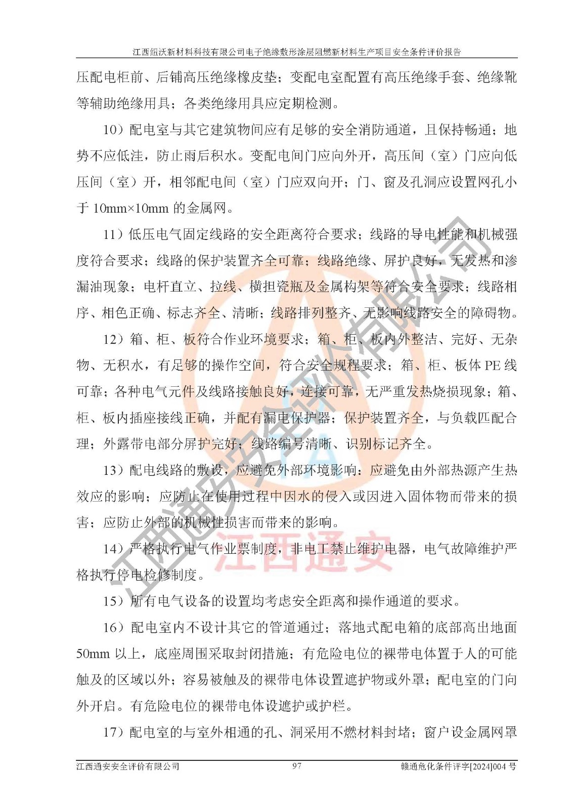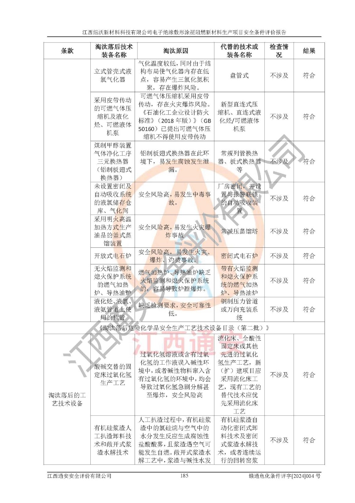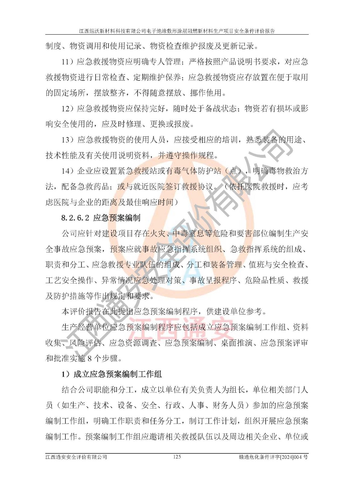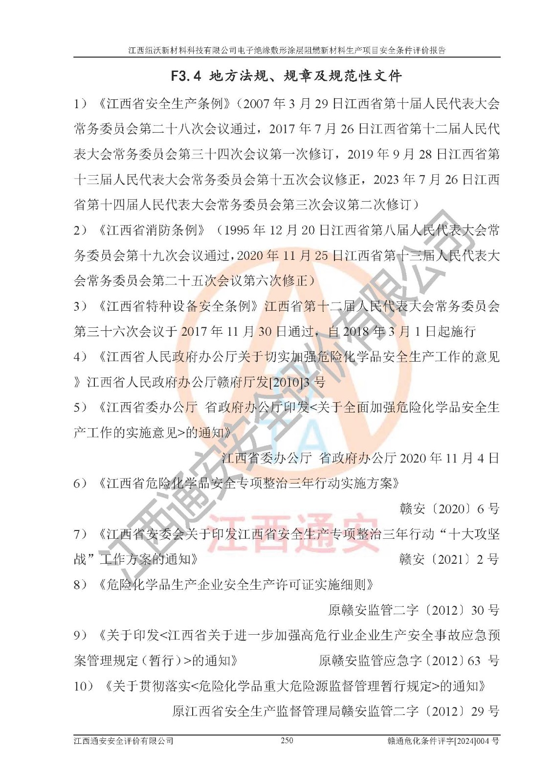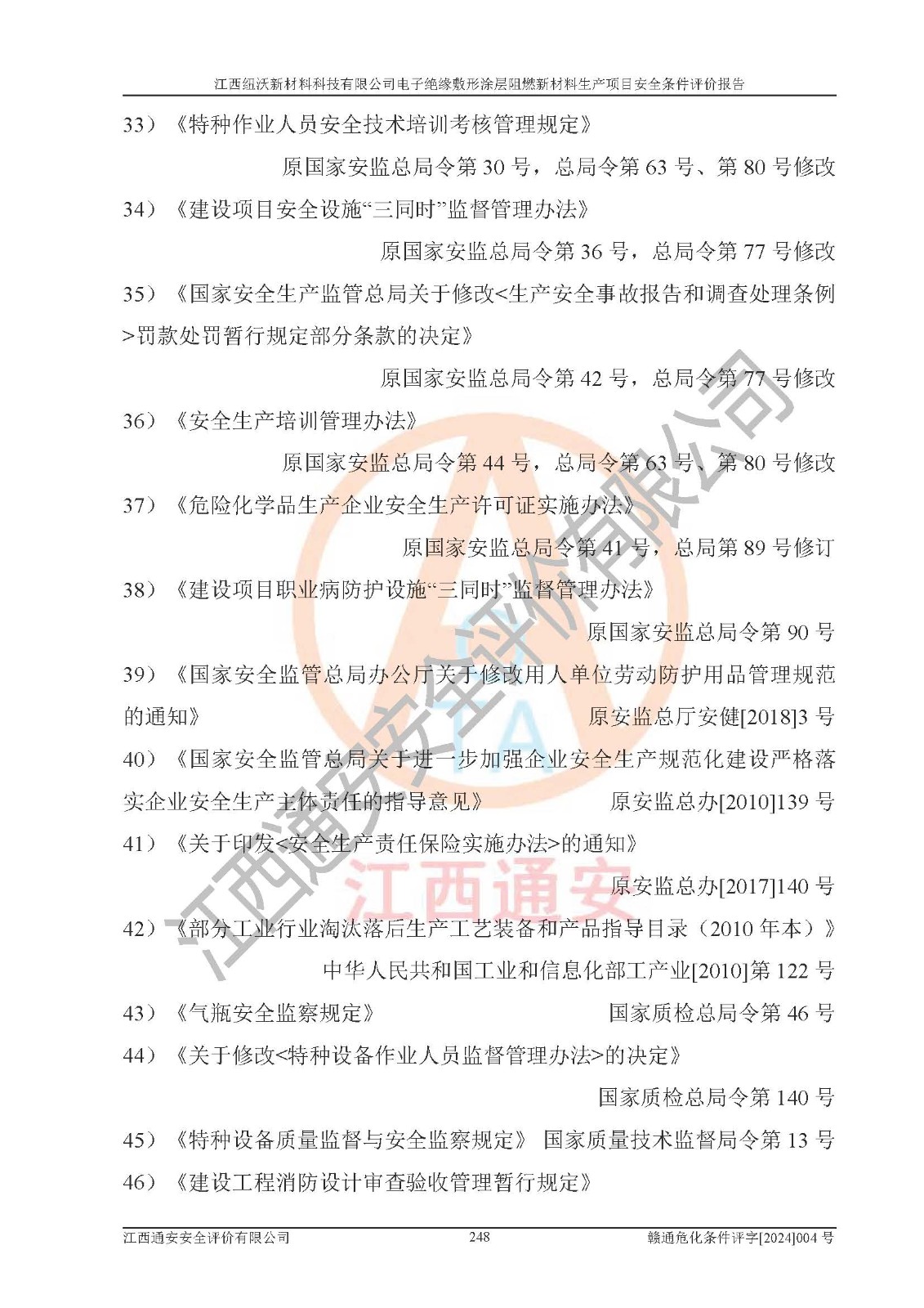 1)本項(xiàng)目依法取得了《江西省企業(yè)投資項(xiàng)目備案通知書》、《建設(shè)用地規(guī)劃許可證》,符合地方產(chǎn)業(yè)發(fā)展規(guī)劃的要求。 2)根據(jù)《**安全監(jiān)管總局關(guān)于公布首批重點(diǎn)監(jiān)管的危險(xiǎn)化工工藝目錄的通知》(安監(jiān)總管三[2009]116號(hào))和《**安全監(jiān)管總局關(guān)于公布第二批重點(diǎn)監(jiān)管危險(xiǎn)化工工藝目錄和調(diào)整首批重點(diǎn)監(jiān)管危險(xiǎn)化工工藝中部分典型工藝的通知》(安監(jiān)總管三[2013]3號(hào)),該項(xiàng)目未涉及重點(diǎn)監(jiān)管危險(xiǎn)化工工藝。 3)根據(jù)《危險(xiǎn)化學(xué)品重大危險(xiǎn)源辨識(shí)》(GB18218-2018),該項(xiàng)目未構(gòu)成危險(xiǎn)化學(xué)品重大危險(xiǎn)源。 4)項(xiàng)目存在的主要危險(xiǎn)因素有:火災(zāi)爆炸、容器爆炸、中毒窒息、灼燙、觸電、**傷害、機(jī)械傷害、高處墜落、物體打擊、淹溺等,存在的主要危害因素有:噪聲與振動(dòng)、高溫、有害化學(xué)物質(zhì)等;引起事故的原因有人的不安全行為、物的不安全狀態(tài)、管理缺陷和環(huán)境不良。其中*主要的危險(xiǎn)有害因素是火災(zāi)爆炸。 5)采用預(yù)先危險(xiǎn)性分析法評(píng)價(jià),結(jié)果為: (1)通過預(yù)先危險(xiǎn)(PHA)分析可知,項(xiàng)目廠址及總體布局單元存在周邊環(huán)境相互影響,發(fā)生異常情況,可對(duì)周邊企業(yè)生產(chǎn)經(jīng)營活動(dòng)、人員活動(dòng)產(chǎn)生影響;存在自然條件影響,可因雷擊、暴雨等引起事故;存在**傷害、建筑物危害,其固有的危險(xiǎn)性等級(jí)為Ⅱ級(jí),屬于“臨界的”,應(yīng)予以排除、采取控制措施因素。 (2)生產(chǎn)作業(yè)存在的危險(xiǎn)因素包括火災(zāi)爆炸、觸電、灼燙、中毒窒息固有的危險(xiǎn)等級(jí)為Ⅲ級(jí),屬于“危險(xiǎn)的”,可能導(dǎo)致人員傷亡和系統(tǒng)損壞的因素,需要采取防范和對(duì)策措施的因素;其它危險(xiǎn)因素固有的危險(xiǎn)等級(jí)為Ⅱ級(jí),屬于“臨界的”,應(yīng)予以排除、采取控制措施因素。 (3)生產(chǎn)作業(yè)存在的噪聲、粉塵、高溫、有害化學(xué)物質(zhì)的危險(xiǎn)有害因素等級(jí)為Ⅱ級(jí),屬于“臨界的”,應(yīng)予以排除、采取控制措施因素。 6)危險(xiǎn)度評(píng)價(jià)分析,結(jié)果為: 生產(chǎn)裝置危險(xiǎn)度評(píng)價(jià)分析:101生產(chǎn)車間為**危險(xiǎn)(Ⅰ級(jí))。 儲(chǔ)存單元危險(xiǎn)度評(píng)價(jià)分析:202甲類倉庫為**危險(xiǎn)(Ⅰ級(jí)),201丙類倉庫為低度危險(xiǎn)(Ⅲ級(jí))。 7)作業(yè)條件危險(xiǎn)性評(píng)價(jià)結(jié)果:在選定的評(píng)價(jià)單元中,其危險(xiǎn)分值均在70以下,危險(xiǎn)程度基本屬于“可能危險(xiǎn)”、“稍有危險(xiǎn)”范圍,作業(yè)條件相對(duì)安全。企業(yè)經(jīng)營過程中首先應(yīng)重點(diǎn)加強(qiáng)對(duì)甲類車間、甲類倉庫的危險(xiǎn)因素的嚴(yán)格控制,注重日常安全管理;其次要建立健全完善的安全生產(chǎn)責(zé)任制、安全管理制度、安全技術(shù)操作規(guī)程并**其貫徹落實(shí);第三要認(rèn)真抓好操作人員、管理人員的安全知識(shí)和操作技能的培訓(xùn),**人員具有與工程技術(shù)水平相適應(yīng)的技術(shù)素質(zhì)和安全素質(zhì),**安全作業(yè)。 8)項(xiàng)目建設(shè)場(chǎng)地符合當(dāng)?shù)匾?guī)劃要求,建設(shè)場(chǎng)地通過合理規(guī)劃,其選址、周邊環(huán)境、總平面布置、交通運(yùn)輸?shù)饶芊稀吨腥A人民共和國安全生產(chǎn)法》、《危險(xiǎn)化學(xué)品安全管理?xiàng)l例》、《建筑設(shè)計(jì)防火規(guī)范》、《精細(xì)化工企業(yè)工程設(shè)計(jì)防火標(biāo)準(zhǔn)》等法規(guī)、標(biāo)準(zhǔn)、規(guī)范要求。 廠址地區(qū)地震活動(dòng)相對(duì)較弱,災(zāi)害性天氣出現(xiàn)頻率稍高,自然災(zāi)害對(duì)項(xiàng)目建設(shè)具有**影響,通過采取相應(yīng)的防護(hù)措施,自然條件適宜建設(shè)。 9)建設(shè)項(xiàng)目符合**產(chǎn)業(yè)政策的要求;選擇工藝為現(xiàn)行成熟工藝,其安全可靠性可得到**。 10)本報(bào)告已根據(jù)有關(guān)安全生產(chǎn)法律、法規(guī)、規(guī)章和**標(biāo)準(zhǔn)、行業(yè)標(biāo)準(zhǔn),并嚴(yán)格執(zhí)行省委辦公廳省**辦公廳《關(guān)于全面加強(qiáng)危險(xiǎn)化學(xué)品安全生產(chǎn)工作的實(shí)施意見》(贛辦發(fā)[2020]32號(hào))及鄱陽湖生態(tài)經(jīng)濟(jì)區(qū)、長(zhǎng)江經(jīng)濟(jì)帶、“五河一湖”相關(guān)政策規(guī)定,客觀、公正、科學(xué)地進(jìn)行安全評(píng)價(jià),項(xiàng)目符合《江西省應(yīng)急管理廳關(guān)于印發(fā)《江西省危險(xiǎn)化學(xué)品建設(shè)項(xiàng)目安全監(jiān)督管理實(shí)施細(xì)則》(試行)的通知》(贛應(yīng)急字[2021]100號(hào))的要求。 11)本報(bào)告結(jié)合工藝特征,提出應(yīng)采取的對(duì)應(yīng)的自動(dòng)化控制系統(tǒng)及自動(dòng)化實(shí)施方案,滿足《江西省應(yīng)急管理廳關(guān)于印發(fā)《江西省化工企業(yè)自動(dòng)化提升實(shí)施方案》(試行)的通知》(贛應(yīng)急字[2021]190號(hào))的要求。 綜上所述:江西紐沃新材料科技有限公司電