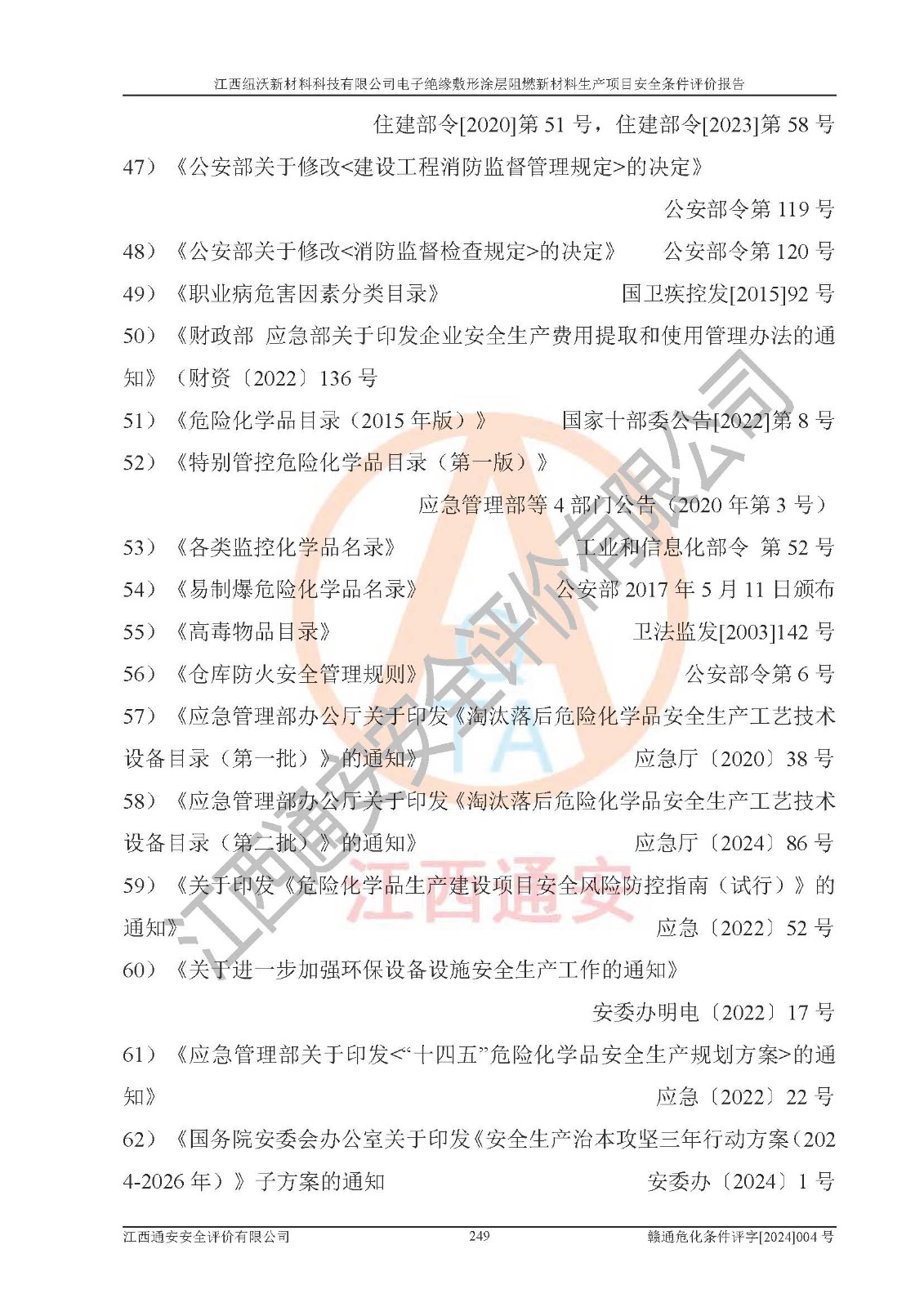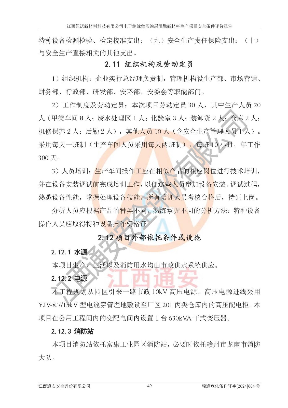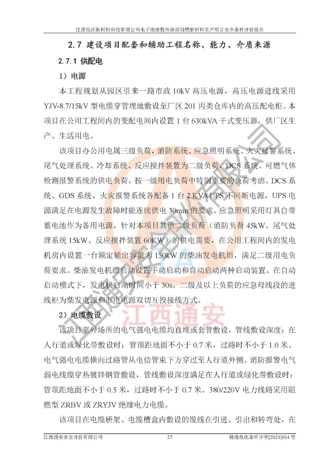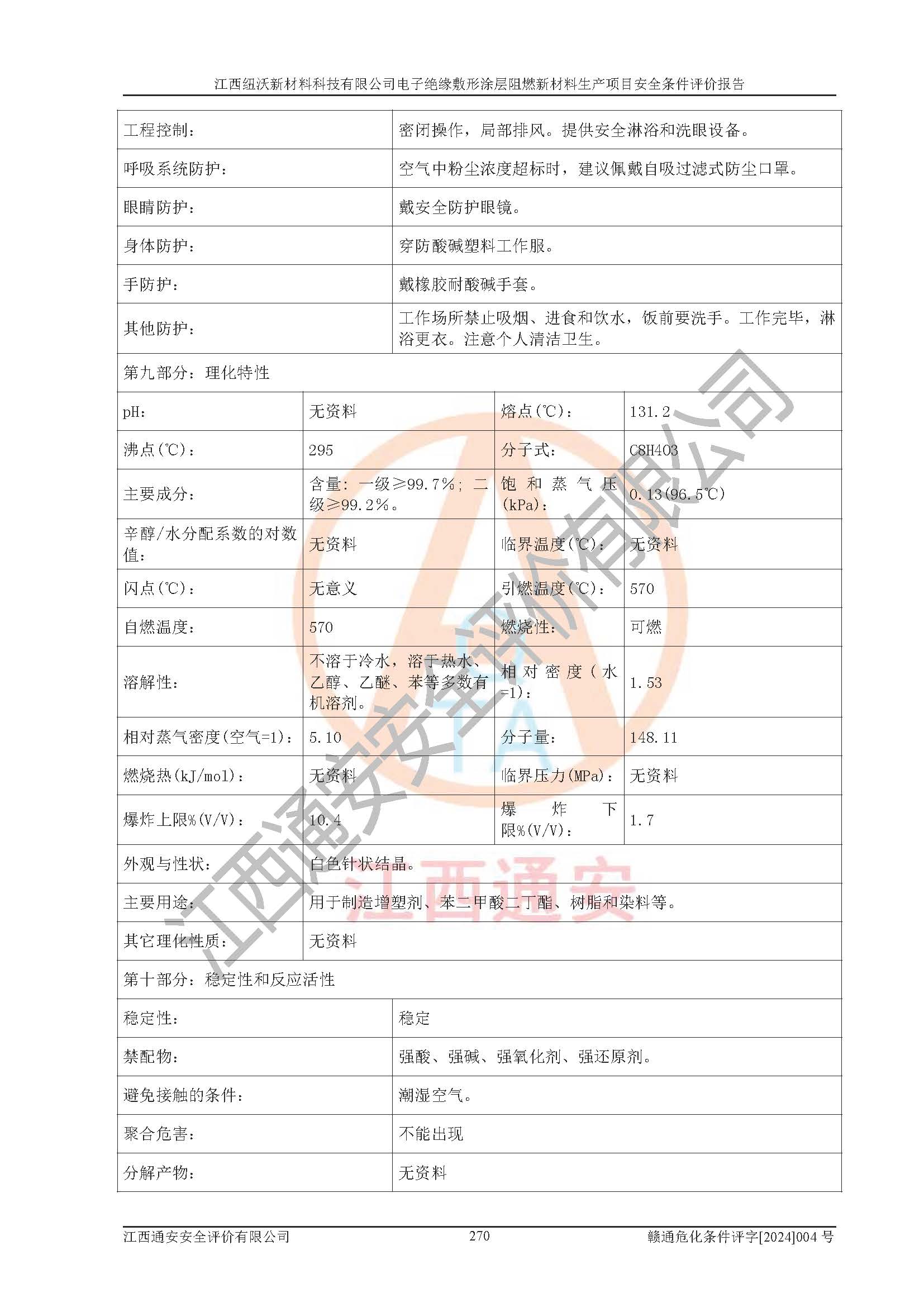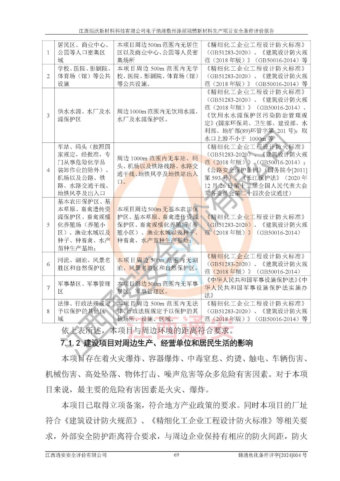 1)本項(xiàng)目依法取得了《江西省企業(yè)投資項(xiàng)目備案通知書》、《建設(shè)用地規(guī)劃許可證》,符合地方產(chǎn)業(yè)發(fā)展規(guī)劃的要求。 2)根據(jù)《**安全監(jiān)管總局關(guān)于公布首批重點(diǎn)監(jiān)管的危險(xiǎn)化工工藝目錄的通知》(安監(jiān)總管三[2009]116號(hào))和《**安全監(jiān)管總局關(guān)于公布第二批重點(diǎn)監(jiān)管危險(xiǎn)化工工藝目錄和調(diào)整首批重點(diǎn)監(jiān)管危險(xiǎn)化工工藝中部分典型工藝的通知》(安監(jiān)總管三[2013]3號(hào)),該項(xiàng)目未涉及重點(diǎn)監(jiān)管危險(xiǎn)化工工藝。 3)根據(jù)《危險(xiǎn)化學(xué)品重大危險(xiǎn)源辨識(shí)》(GB18218-2018),該項(xiàng)目未構(gòu)成危險(xiǎn)化學(xué)品重大危險(xiǎn)源。 4)項(xiàng)目存在的主要危險(xiǎn)因素有:火災(zāi)爆炸、容器爆炸、中毒窒息、灼燙、觸電、**傷害、機(jī)械傷害、高處墜落、物體打擊、淹溺等,存在的主要危害因素有:噪聲與振動(dòng)、高溫、有害化學(xué)物質(zhì)等;引起事故的原因有人的不安全行為、物的不安全狀態(tài)、管理缺陷和環(huán)境不良。其中*主要的危險(xiǎn)有害因素是火災(zāi)爆炸。 5)采用預(yù)先危險(xiǎn)性分析法評(píng)價(jià),結(jié)果為: (1)通過預(yù)先危險(xiǎn)(PHA)分析可知,項(xiàng)目廠址及總體布局單元存在周邊環(huán)境相互影響,發(fā)生異常情況,可對(duì)周邊企業(yè)生產(chǎn)經(jīng)營活動(dòng)、人員活動(dòng)產(chǎn)生影響;存在自然條件影響,可因雷擊、暴雨等引起事故;存在**傷害、建筑物危害,其固有的危險(xiǎn)性等級(jí)為Ⅱ級(jí),屬于“臨界的”,應(yīng)予以排除、采取控制措施因素。 (2)生產(chǎn)作業(yè)存在的危險(xiǎn)因素包括火災(zāi)爆炸、觸電、灼燙、中毒窒息固有的危險(xiǎn)等級(jí)為Ⅲ級(jí),屬于“危險(xiǎn)的”,可能導(dǎo)致人員傷亡和系統(tǒng)損壞的因素,需要采取防范和對(duì)策措施的因素;其它危險(xiǎn)因素固有的危險(xiǎn)等級(jí)為Ⅱ級(jí),屬于“臨界的”,應(yīng)予以排除、采取控制措施因素。 (3)生產(chǎn)作業(yè)存在的噪聲、粉塵、高溫、有害化學(xué)物質(zhì)的危險(xiǎn)有害因素等級(jí)為Ⅱ級(jí),屬于“臨界的”,應(yīng)予以排除、采取控制措施因素。 6)危險(xiǎn)度評(píng)價(jià)分析,結(jié)果為: 生產(chǎn)裝置危險(xiǎn)度評(píng)價(jià)分析:101生產(chǎn)車間為**危險(xiǎn)(Ⅰ級(jí))。 儲(chǔ)存單元危險(xiǎn)度評(píng)價(jià)分析:202甲類倉庫為**危險(xiǎn)(Ⅰ級(jí)),201丙類倉庫為低度危險(xiǎn)(Ⅲ級(jí))。 7)作業(yè)條件危險(xiǎn)性評(píng)價(jià)結(jié)果:在選定的評(píng)價(jià)單元中,其危險(xiǎn)分值均在70以下,危險(xiǎn)程度基本屬于“可能危險(xiǎn)”、“稍有危險(xiǎn)”范圍,作業(yè)條件相對(duì)安全。企業(yè)經(jīng)營過程中首先應(yīng)重點(diǎn)加強(qiáng)對(duì)甲類車間、甲類倉庫的危險(xiǎn)因素的嚴(yán)格控制,注重日常安全管理;其次要建立健全完善的安全生產(chǎn)責(zé)任制、安全管理制度、安全技術(shù)操作規(guī)程并**其貫徹落實(shí);第三要認(rèn)真抓好操作人員、管理人員的安全知識(shí)和操作技能的培訓(xùn),**人員具有與工程技術(shù)水平相適應(yīng)的技術(shù)素質(zhì)和安全素質(zhì),**安全作業(yè)。 8)項(xiàng)目建設(shè)場(chǎng)地符合當(dāng)?shù)匾?guī)劃要求,建設(shè)場(chǎng)地通過合理規(guī)劃,其選址、周邊環(huán)境、總平面布置、交通運(yùn)輸?shù)饶芊稀吨腥A人民共和國安全生產(chǎn)法》、《危險(xiǎn)化學(xué)品安全管理?xiàng)l例》、《建筑設(shè)計(jì)防火規(guī)范》、《精細(xì)化工企業(yè)工程設(shè)計(jì)防火標(biāo)準(zhǔn)》等法規(guī)、標(biāo)準(zhǔn)、規(guī)范要求。 廠址地區(qū)地震活動(dòng)相對(duì)較弱,災(zāi)害性天氣出現(xiàn)頻率稍高,自然災(zāi)害對(duì)項(xiàng)目建設(shè)具有**影響,通過采取相應(yīng)的防護(hù)措施,自然條件適宜建設(shè)。 9)建設(shè)項(xiàng)目符合**產(chǎn)業(yè)政策的要求;選擇工藝為現(xiàn)行成熟工藝,其安全可靠性可得到**。 10)本報(bào)告已根據(jù)有關(guān)安全生產(chǎn)法律、法規(guī)、規(guī)章和**標(biāo)準(zhǔn)、行業(yè)標(biāo)準(zhǔn),并嚴(yán)格執(zhí)行省委辦公廳省**辦公廳《關(guān)于全面加強(qiáng)危險(xiǎn)化學(xué)品安全生產(chǎn)工作的實(shí)施意見》(贛辦發(fā)[2020]32號(hào))及鄱陽湖生態(tài)經(jīng)濟(jì)區(qū)、長(zhǎng)江經(jīng)濟(jì)帶、“五河一湖”相關(guān)政策規(guī)定,客觀、公正、科學(xué)地進(jìn)行安全評(píng)價(jià),項(xiàng)目符合《江西省應(yīng)急管理廳關(guān)于印發(fā)《江西省危險(xiǎn)化學(xué)品建設(shè)項(xiàng)目安全監(jiān)督管理實(shí)施細(xì)則》(試行)的通知》(贛應(yīng)急字[2021]100號(hào))的要求。 11)本報(bào)告結(jié)合工藝特征,提出應(yīng)采取的對(duì)應(yīng)的自動(dòng)化控制系統(tǒng)及自動(dòng)化實(shí)施方案,滿足《江西省應(yīng)急管理廳關(guān)于印發(fā)《江西省化工企業(yè)自動(dòng)化提升實(shí)施方案》(試行)的通知》(贛應(yīng)急字[2021]190號(hào))的要求。 綜上所述:江西紐沃新材料科技有限公司電