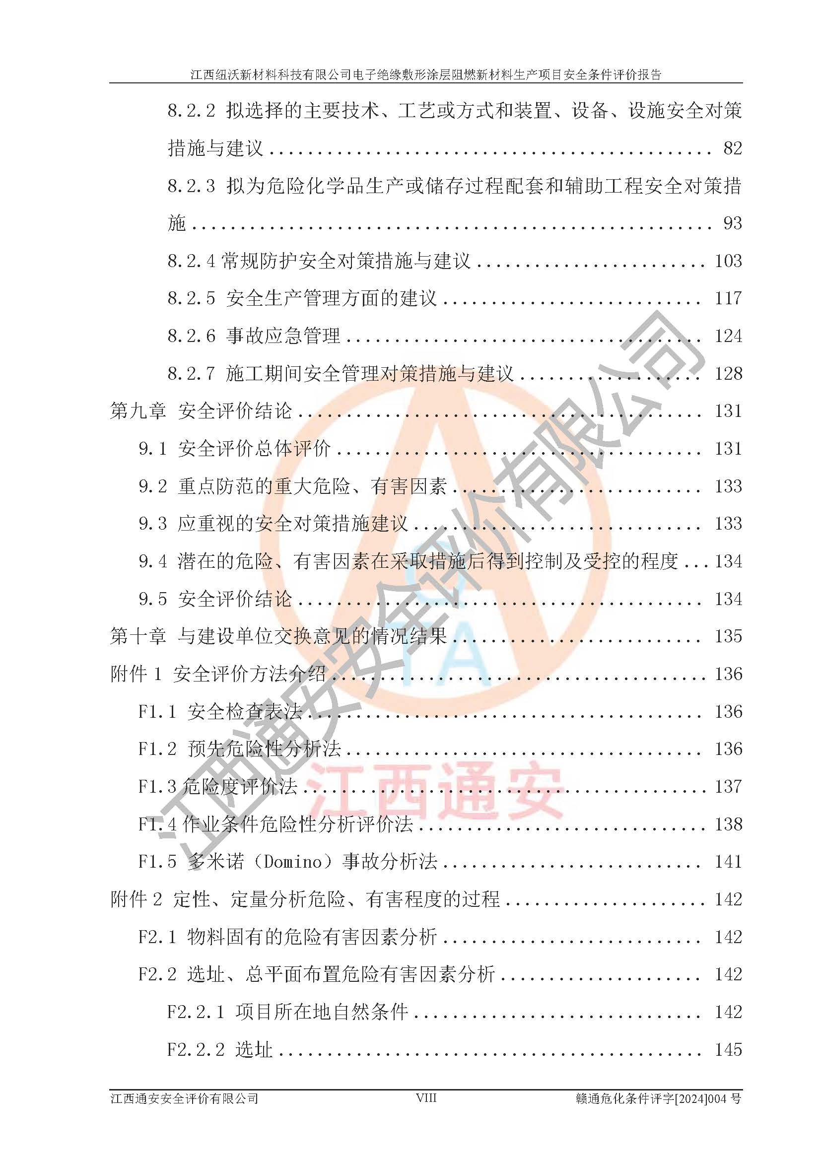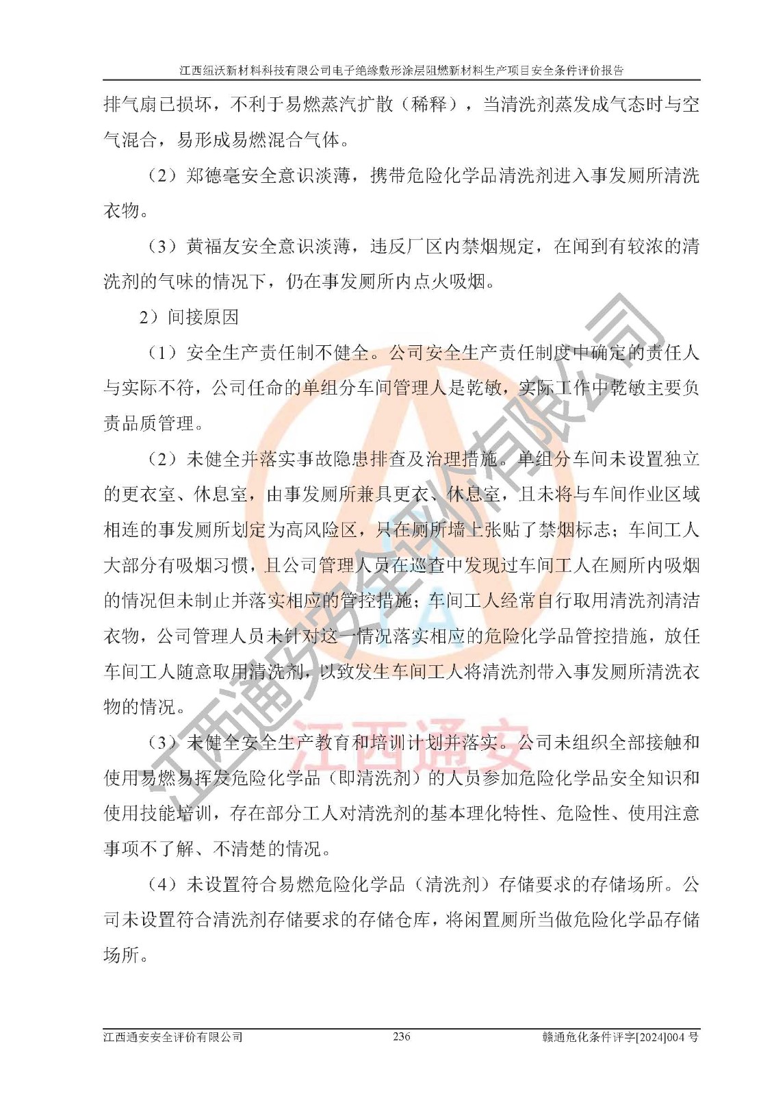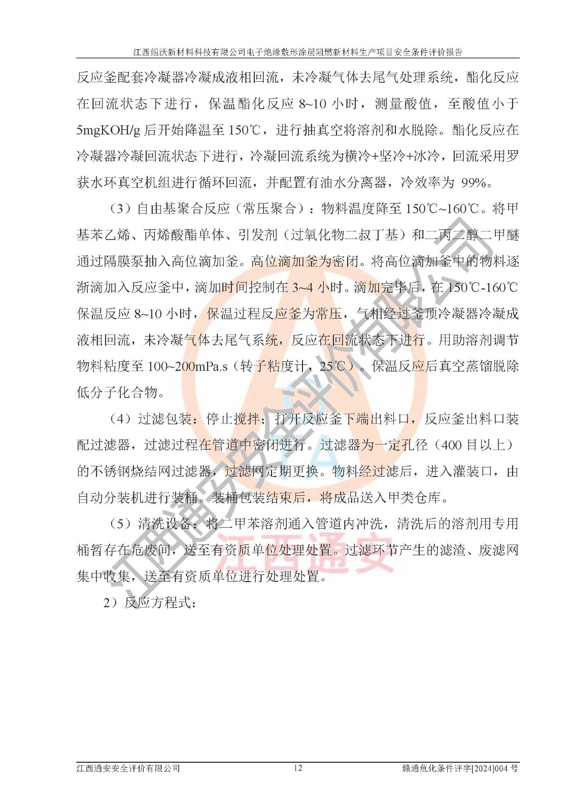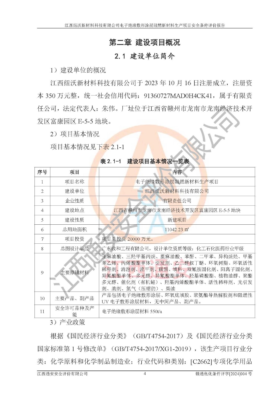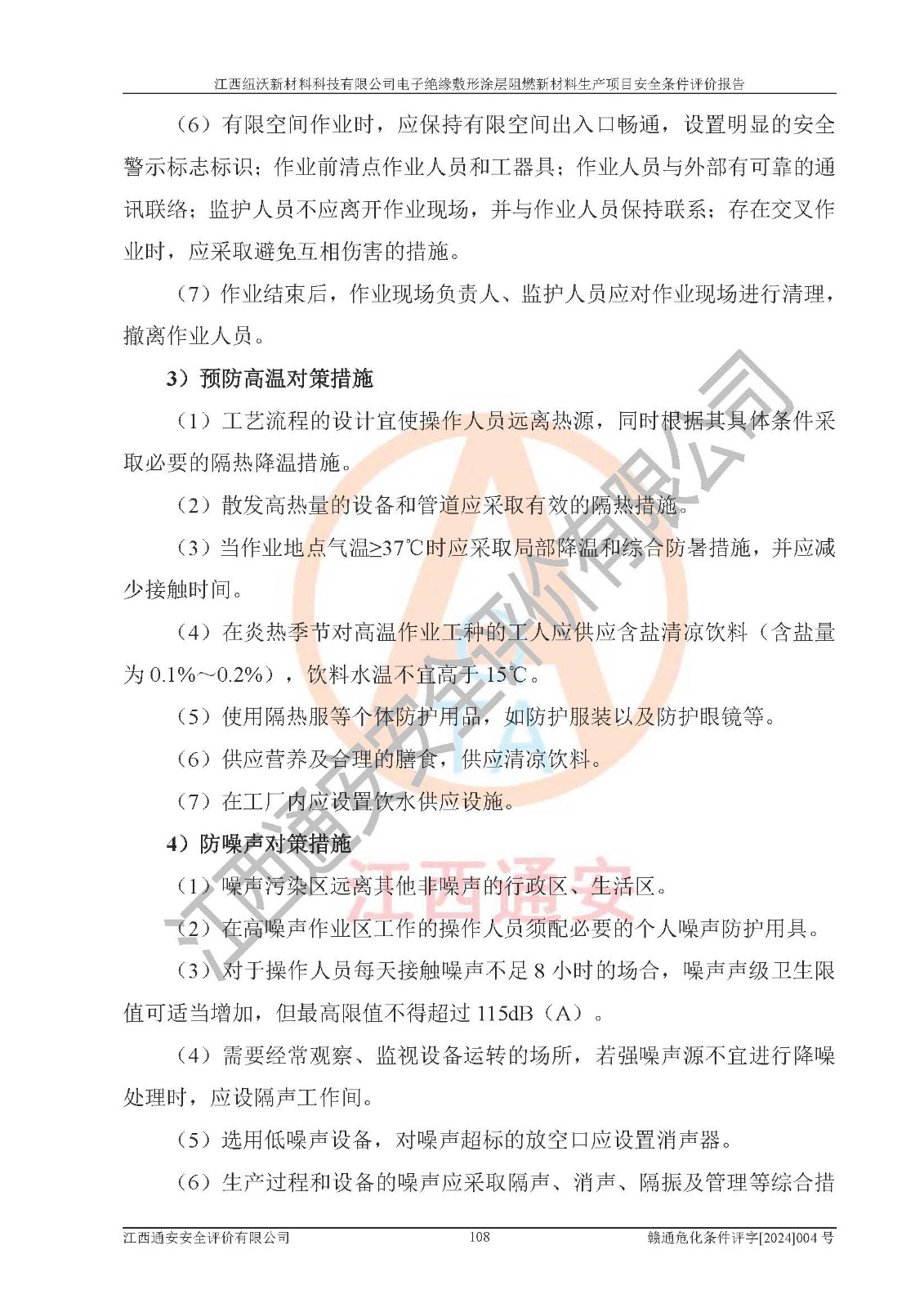 1)本項(xiàng)目依法取得了《江西省企業(yè)投資項(xiàng)目備案通知書》、《建設(shè)用地規(guī)劃許可證》,符合地方產(chǎn)業(yè)發(fā)展規(guī)劃的要求。 2)根據(jù)《**安全監(jiān)管總局關(guān)于公布首批重點(diǎn)監(jiān)管的危險(xiǎn)化工工藝目錄的通知》(安監(jiān)總管三[2009]116號(hào))和《**安全監(jiān)管總局關(guān)于公布第二批重點(diǎn)監(jiān)管危險(xiǎn)化工工藝目錄和調(diào)整首批重點(diǎn)監(jiān)管危險(xiǎn)化工工藝中部分典型工藝的通知》(安監(jiān)總管三[2013]3號(hào)),該項(xiàng)目未涉及重點(diǎn)監(jiān)管危險(xiǎn)化工工藝。 3)根據(jù)《危險(xiǎn)化學(xué)品重大危險(xiǎn)源辨識(shí)》(GB18218-2018),該項(xiàng)目未構(gòu)成危險(xiǎn)化學(xué)品重大危險(xiǎn)源。 4)項(xiàng)目存在的主要危險(xiǎn)因素有:火災(zāi)爆炸、容器爆炸、中毒窒息、灼燙、觸電、**傷害、機(jī)械傷害、高處墜落、物體打擊、淹溺等,存在的主要危害因素有:噪聲與振動(dòng)、高溫、有害化學(xué)物質(zhì)等;引起事故的原因有人的不安全行為、物的不安全狀態(tài)、管理缺陷和環(huán)境不良。其中*主要的危險(xiǎn)有害因素是火災(zāi)爆炸。 5)采用預(yù)先危險(xiǎn)性分析法評(píng)價(jià),結(jié)果為: (1)通過預(yù)先危險(xiǎn)(PHA)分析可知,項(xiàng)目廠址及總體布局單元存在周邊環(huán)境相互影響,發(fā)生異常情況,可對(duì)周邊企業(yè)生產(chǎn)經(jīng)營活動(dòng)、人員活動(dòng)產(chǎn)生影響;存在自然條件影響,可因雷擊、暴雨等引起事故;存在**傷害、建筑物危害,其固有的危險(xiǎn)性等級(jí)為Ⅱ級(jí),屬于“臨界的”,應(yīng)予以排除、采取控制措施因素。 (2)生產(chǎn)作業(yè)存在的危險(xiǎn)因素包括火災(zāi)爆炸、觸電、灼燙、中毒窒息固有的危險(xiǎn)等級(jí)為Ⅲ級(jí),屬于“危險(xiǎn)的”,可能導(dǎo)致人員傷亡和系統(tǒng)損壞的因素,需要采取防范和對(duì)策措施的因素;其它危險(xiǎn)因素固有的危險(xiǎn)等級(jí)為Ⅱ級(jí),屬于“臨界的”,應(yīng)予以排除、采取控制措施因素。 (3)生產(chǎn)作業(yè)存在的噪聲、粉塵、高溫、有害化學(xué)物質(zhì)的危險(xiǎn)有害因素等級(jí)為Ⅱ級(jí),屬于“臨界的”,應(yīng)予以排除、采取控制措施因素。 6)危險(xiǎn)度評(píng)價(jià)分析,結(jié)果為: 生產(chǎn)裝置危險(xiǎn)度評(píng)價(jià)分析:101生產(chǎn)車間為**危險(xiǎn)(Ⅰ級(jí))。 儲(chǔ)存單元危險(xiǎn)度評(píng)價(jià)分析:202甲類倉庫為**危險(xiǎn)(Ⅰ級(jí)),201丙類倉庫為低度危險(xiǎn)(Ⅲ級(jí))。 7)作業(yè)條件危險(xiǎn)性評(píng)價(jià)結(jié)果:在選定的評(píng)價(jià)單元中,其危險(xiǎn)分值均在70以下,危險(xiǎn)程度基本屬于“可能危險(xiǎn)”、“稍有危險(xiǎn)”范圍,作業(yè)條件相對(duì)安全。企業(yè)經(jīng)營過程中首先應(yīng)重點(diǎn)加強(qiáng)對(duì)甲類車間、甲類倉庫的危險(xiǎn)因素的嚴(yán)格控制,注重日常安全管理;其次要建立健全完善的安全生產(chǎn)責(zé)任制、安全管理制度、安全技術(shù)操作規(guī)程并**其貫徹落實(shí);第三要認(rèn)真抓好操作人員、管理人員的安全知識(shí)和操作技能的培訓(xùn),**人員具有與工程技術(shù)水平相適應(yīng)的技術(shù)素質(zhì)和安全素質(zhì),**安全作業(yè)。 8)項(xiàng)目建設(shè)場(chǎng)地符合當(dāng)?shù)匾?guī)劃要求,建設(shè)場(chǎng)地通過合理規(guī)劃,其選址、周邊環(huán)境、總平面布置、交通運(yùn)輸?shù)饶芊稀吨腥A人民共和國安全生產(chǎn)法》、《危險(xiǎn)化學(xué)品安全管理?xiàng)l例》、《建筑設(shè)計(jì)防火規(guī)范》、《精細(xì)化工企業(yè)工程設(shè)計(jì)防火標(biāo)準(zhǔn)》等法規(guī)、標(biāo)準(zhǔn)、規(guī)范要求。 廠址地區(qū)地震活動(dòng)相對(duì)較弱,災(zāi)害性天氣出現(xiàn)頻率稍高,自然災(zāi)害對(duì)項(xiàng)目建設(shè)具有**影響,通過采取相應(yīng)的防護(hù)措施,自然條件適宜建設(shè)。 9)建設(shè)項(xiàng)目符合**產(chǎn)業(yè)政策的要求;選擇工藝為現(xiàn)行成熟工藝,其安全可靠性可得到**。 10)本報(bào)告已根據(jù)有關(guān)安全生產(chǎn)法律、法規(guī)、規(guī)章和**標(biāo)準(zhǔn)、行業(yè)標(biāo)準(zhǔn),并嚴(yán)格執(zhí)行省委辦公廳省**辦公廳《關(guān)于全面加強(qiáng)危險(xiǎn)化學(xué)品安全生產(chǎn)工作的實(shí)施意見》(贛辦發(fā)[2020]32號(hào))及鄱陽湖生態(tài)經(jīng)濟(jì)區(qū)、長(zhǎng)江經(jīng)濟(jì)帶、“五河一湖”相關(guān)政策規(guī)定,客觀、公正、科學(xué)地進(jìn)行安全評(píng)價(jià),項(xiàng)目符合《江西省應(yīng)急管理廳關(guān)于印發(fā)《江西省危險(xiǎn)化學(xué)品建設(shè)項(xiàng)目安全監(jiān)督管理實(shí)施細(xì)則》(試行)的通知》(贛應(yīng)急字[2021]100號(hào))的要求。 11)本報(bào)告結(jié)合工藝特征,提出應(yīng)采取的對(duì)應(yīng)的自動(dòng)化控制系統(tǒng)及自動(dòng)化實(shí)施方案,滿足《江西省應(yīng)急管理廳關(guān)于印發(fā)《江西省化工企業(yè)自動(dòng)化提升實(shí)施方案》(試行)的通知》(贛應(yīng)急字[2021]190號(hào))的要求。 綜上所述:江西紐沃新材料科技有限公司電