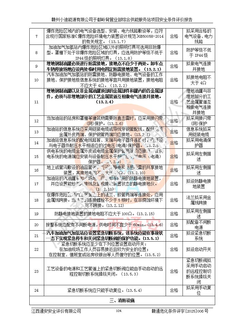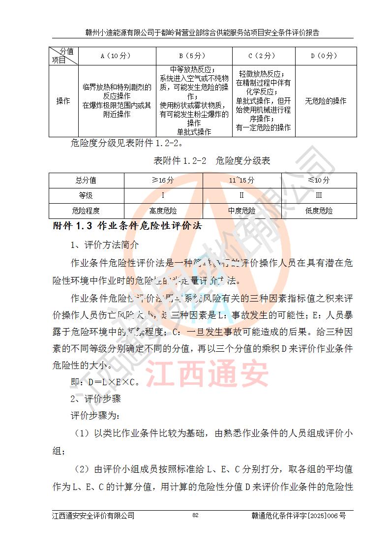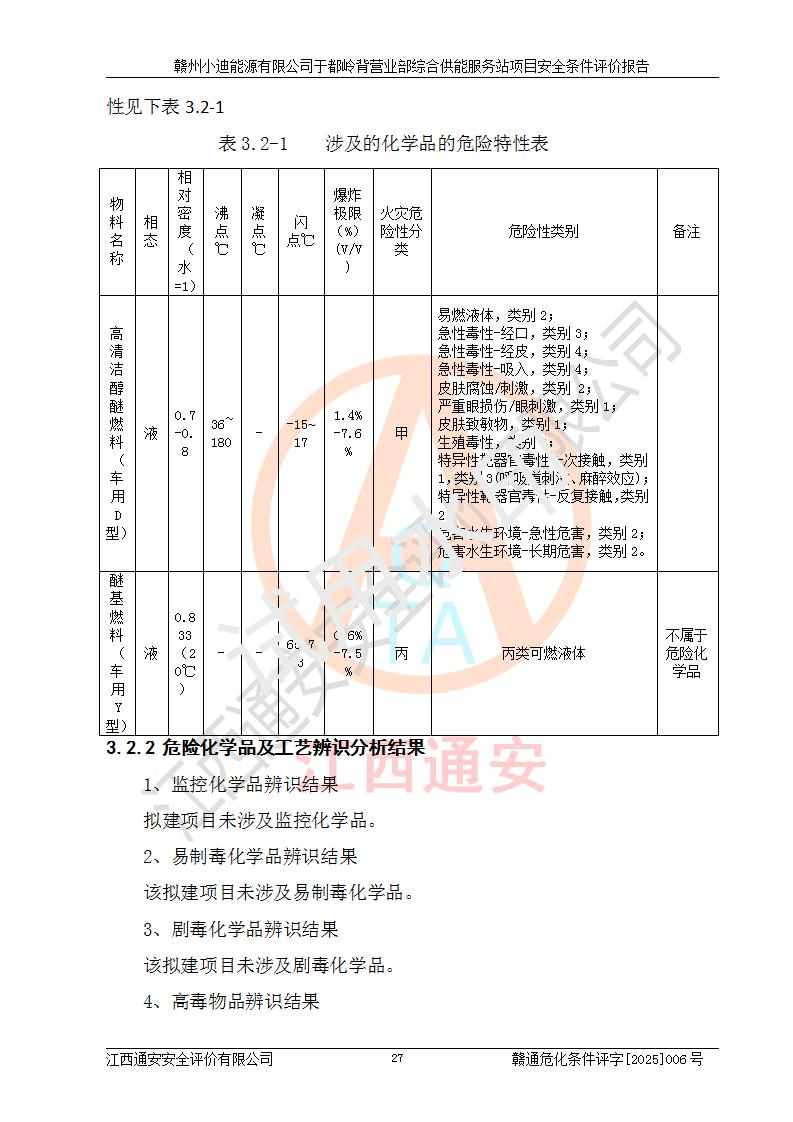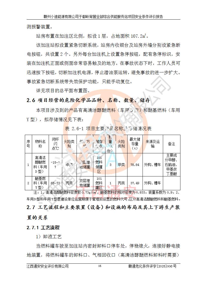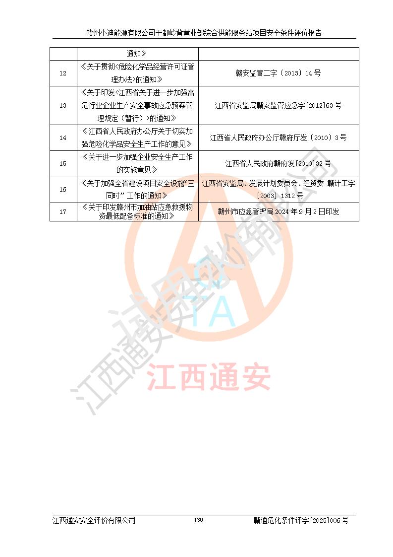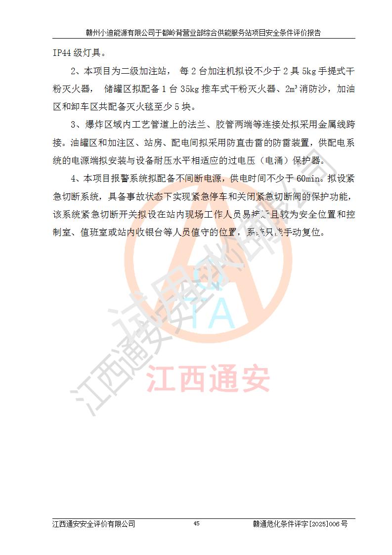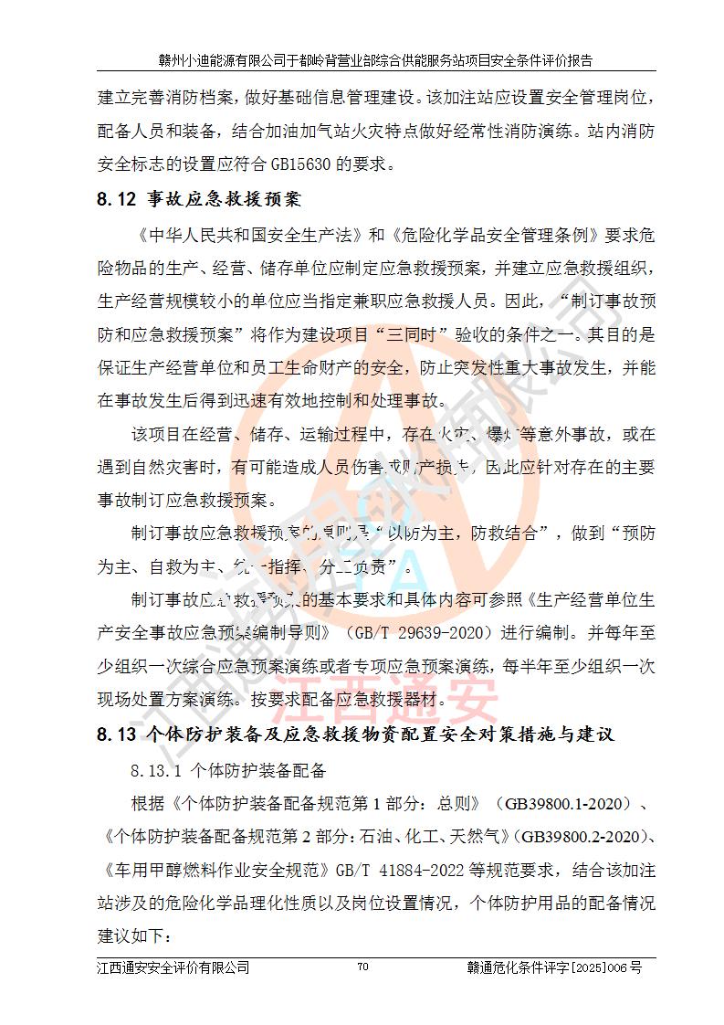 一、安全狀況綜合評(píng)述 通過(guò)對(duì)本項(xiàng)目的危險(xiǎn)、有害因素分析及定性、定量評(píng)價(jià),結(jié)果為: 1)本項(xiàng)目存在的危險(xiǎn)有害因素是火災(zāi)爆炸、**傷害、高處墜落、物體打擊、觸電、機(jī)械傷害、中毒窒息、坍塌等,主要危險(xiǎn)有害因素為火災(zāi)、爆炸等危險(xiǎn)因素。需重點(diǎn)防范的危險(xiǎn)有害因素為火災(zāi)、爆炸。本項(xiàng)目未構(gòu)成危險(xiǎn)化學(xué)品重大危險(xiǎn)源,也不存在劇毒、監(jiān)控、易制毒、易制爆化學(xué)品及高毒物品,高清潔醇醚燃料主要成分甲醇和石腦油為重點(diǎn)監(jiān)管危險(xiǎn)化學(xué)品,應(yīng)按照重點(diǎn)監(jiān)管危險(xiǎn)化學(xué)品相關(guān)規(guī)定管理。 2)預(yù)先危險(xiǎn)性分析表明該加注站儲(chǔ)存、經(jīng)營(yíng)過(guò)程中火災(zāi)、爆炸、觸電的危險(xiǎn)等級(jí)為Ⅲ級(jí),**傷害、高處墜落和中毒窒息等危險(xiǎn)等級(jí)為Ⅱ級(jí)。 3)從作業(yè)條件危險(xiǎn)性分析結(jié)果可以看出,在選定的評(píng)價(jià)單元中卸液作業(yè)、加注作業(yè)、變配電作業(yè)和維修作業(yè)中卸液作業(yè)中火災(zāi)爆炸、**傷害、觸電、中毒、窒息潛在危險(xiǎn)均為一般危險(xiǎn)。 4)從危險(xiǎn)度分析結(jié)果可以看出,燃料罐區(qū)屬中度危險(xiǎn)。 5)根據(jù)選址與總平面布置安全檢查表,該加注站符合《建筑設(shè)計(jì)防火規(guī)范》GB 50016-2014(2018年版)、《汽車(chē)加油加氣加氫站技術(shù)標(biāo)準(zhǔn)》GB50156-2021及《車(chē)用甲醇燃料加注站建設(shè)規(guī)范》(工信廳節(jié)〔2015〕129號(hào))等有關(guān)標(biāo)準(zhǔn)、規(guī)范的規(guī)定。該站與站外建筑物距離符合規(guī)范要求,站外50m內(nèi)無(wú)重要建筑物和明火設(shè)施。 6)根據(jù)立項(xiàng)批文及于都縣自然資源局出具的建設(shè)用地規(guī)劃許可證,該加注站符合有關(guān)部門(mén)的審批。 7)本項(xiàng)目采用成熟的工藝設(shè)備,項(xiàng)目在嚴(yán)格按照**相關(guān)法律、法規(guī)及技術(shù)標(biāo)準(zhǔn)制造、安裝、檢測(cè)檢驗(yàn)的情況下,其安全生產(chǎn)風(fēng)險(xiǎn)程度在可接受范圍。 8)本項(xiàng)目危害物質(zhì)為高清潔醇醚燃料(車(chē)用D型,甲類)和醚基燃料(車(chē)用Y型,丙類),應(yīng)重點(diǎn)注意火災(zāi)、爆炸危害,做好防火防靜電措施。**加注站罐區(qū)、加注區(qū)無(wú)明火產(chǎn)生;卸液口應(yīng)設(shè)置防靜電報(bào)警器,罐區(qū)法蘭應(yīng)跨接,防止靜電引起火災(zāi)爆炸事故。 四、評(píng)價(jià)結(jié)論 贛州小迪能源有限公司于都嶺背營(yíng)業(yè)部綜合供能服務(wù)站項(xiàng)目總平面布置符合相關(guān)規(guī)范的要求。在項(xiàng)目建設(shè)和運(yùn)行階段,總平面布置設(shè)計(jì)、施工圖設(shè)計(jì)和建設(shè)施工、安裝調(diào)試及生產(chǎn)運(yùn)行中,應(yīng)嚴(yán)格執(zhí)行**有關(guān)安全生產(chǎn)法律、法規(guī)和有關(guān)標(biāo)準(zhǔn)、規(guī)范,將本報(bào)告中提出的安全對(duì)策措施落實(shí)到位,真正做到安全設(shè)施與主體工程同時(shí)設(shè)計(jì)、同時(shí)施工、同時(shí)投入生產(chǎn)和使用,項(xiàng)目建成后危險(xiǎn)、有害因素可以得到**控制,安全風(fēng)險(xiǎn)在可接受范圍,擬建的贛州小迪能源有限公司于都嶺背營(yíng)業(yè)部綜合供能服務(wù)站項(xiàng)目符合法律法規(guī)、標(biāo)準(zhǔn)、規(guī)章和規(guī)范的要求。 |