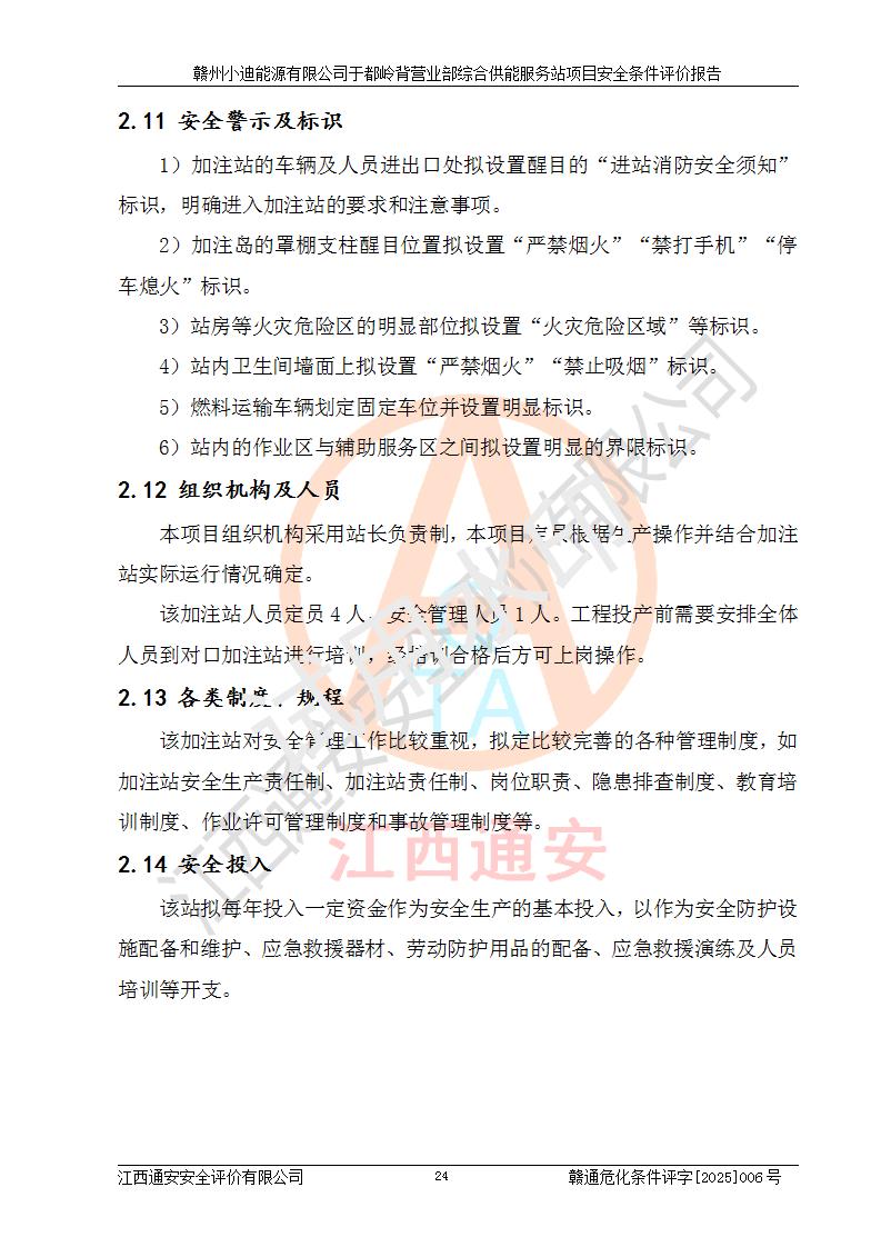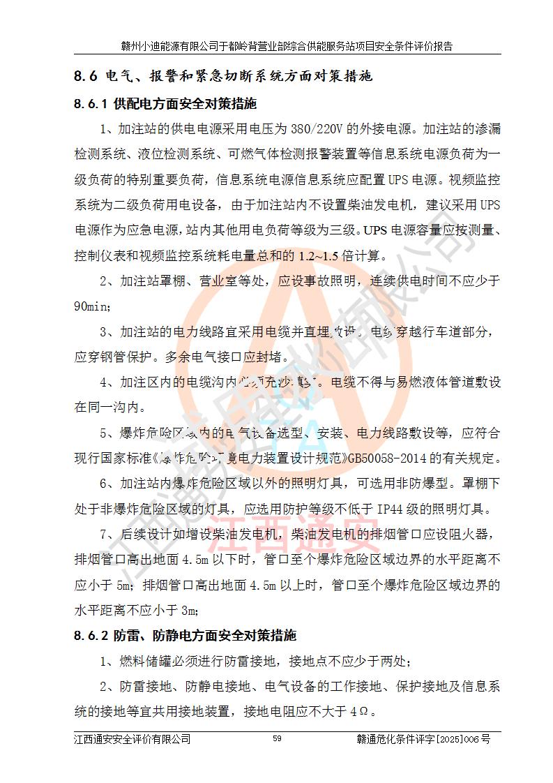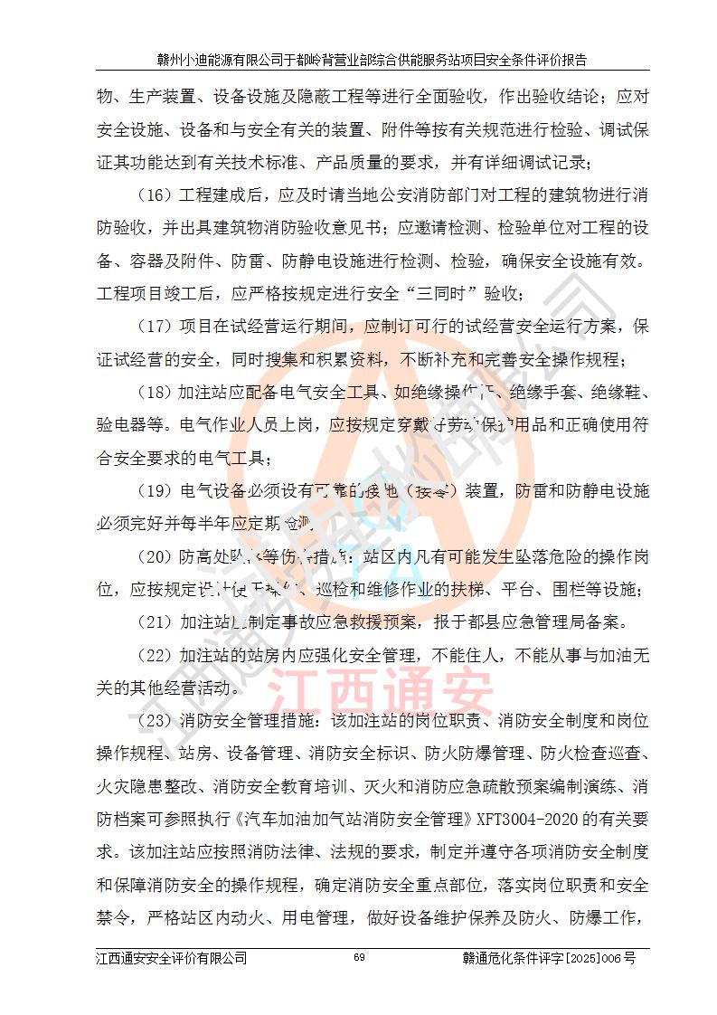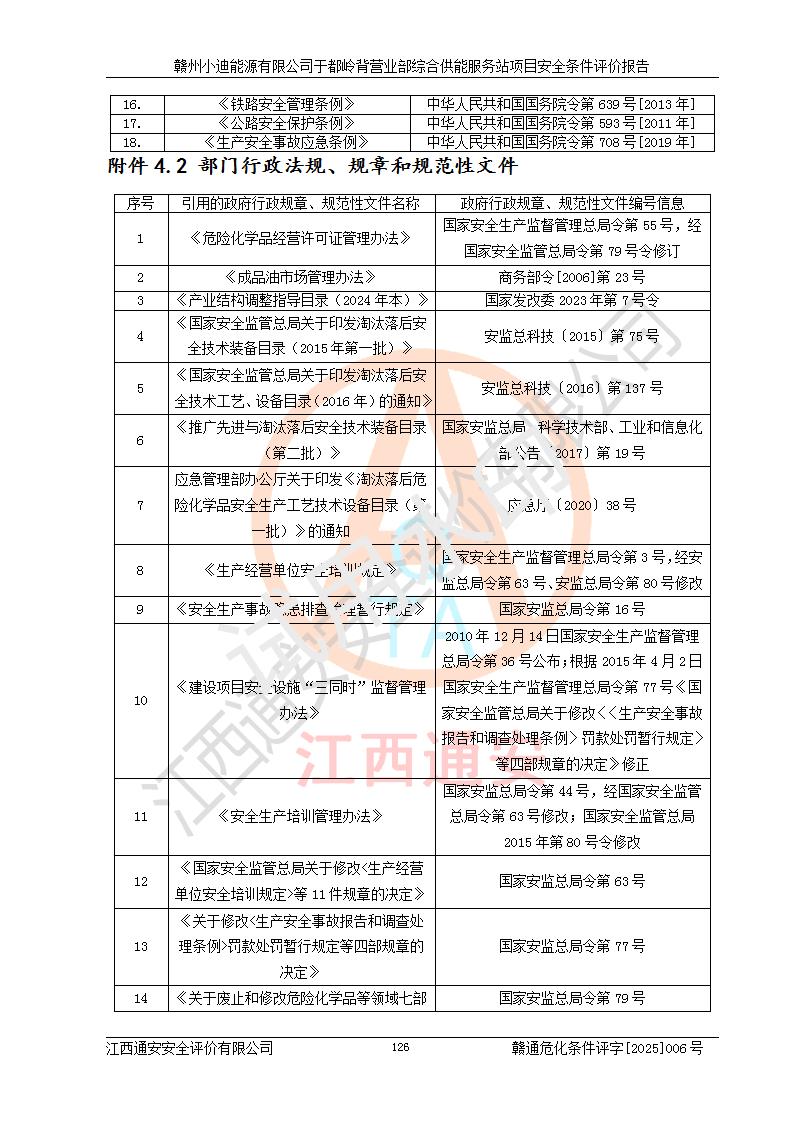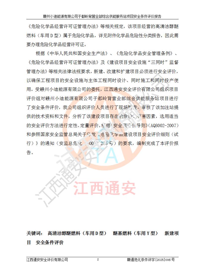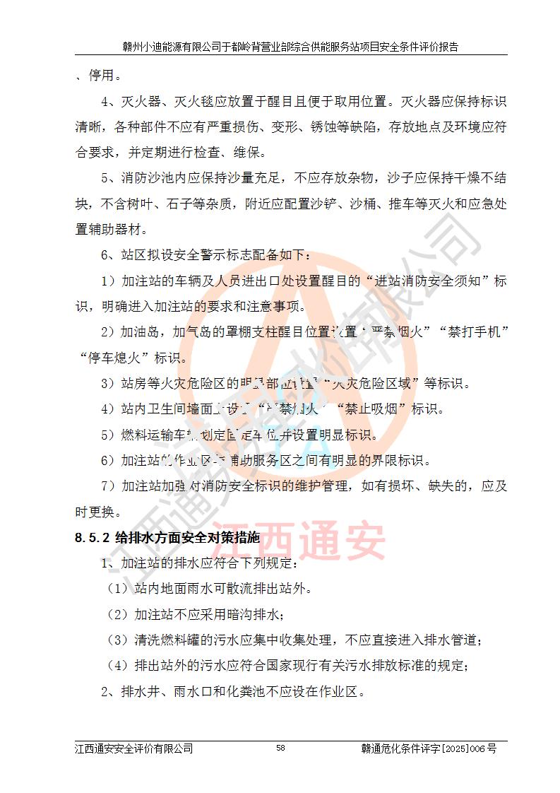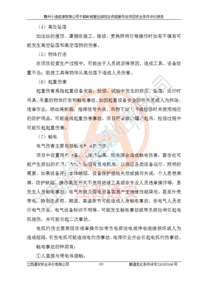 一、安全狀況綜合評(píng)述 通過(guò)對(duì)本項(xiàng)目的危險(xiǎn)、有害因素分析及定性、定量評(píng)價(jià),結(jié)果為: 1)本項(xiàng)目存在的危險(xiǎn)有害因素是火災(zāi)爆炸、**傷害、高處墜落、物體打擊、觸電、機(jī)械傷害、中毒窒息、坍塌等,主要危險(xiǎn)有害因素為火災(zāi)、爆炸等危險(xiǎn)因素。需重點(diǎn)防范的危險(xiǎn)有害因素為火災(zāi)、爆炸。本項(xiàng)目未構(gòu)成危險(xiǎn)化學(xué)品重大危險(xiǎn)源,也不存在劇毒、監(jiān)控、易制毒、易制爆化學(xué)品及高毒物品,高清潔醇醚燃料主要成分甲醇和石腦油為重點(diǎn)監(jiān)管危險(xiǎn)化學(xué)品,應(yīng)按照重點(diǎn)監(jiān)管危險(xiǎn)化學(xué)品相關(guān)規(guī)定管理。 2)預(yù)先危險(xiǎn)性分析表明該加注站儲(chǔ)存、經(jīng)營(yíng)過(guò)程中火災(zāi)、爆炸、觸電的危險(xiǎn)等級(jí)為Ⅲ級(jí),**傷害、高處墜落和中毒窒息等危險(xiǎn)等級(jí)為Ⅱ級(jí)。 3)從作業(yè)條件危險(xiǎn)性分析結(jié)果可以看出,在選定的評(píng)價(jià)單元中卸液作業(yè)、加注作業(yè)、變配電作業(yè)和維修作業(yè)中卸液作業(yè)中火災(zāi)爆炸、**傷害、觸電、中毒、窒息潛在危險(xiǎn)均為一般危險(xiǎn)。 4)從危險(xiǎn)度分析結(jié)果可以看出,燃料罐區(qū)屬中度危險(xiǎn)。 5)根據(jù)選址與總平面布置安全檢查表,該加注站符合《建筑設(shè)計(jì)防火規(guī)范》GB 50016-2014(2018年版)、《汽車(chē)加油加氣加氫站技術(shù)標(biāo)準(zhǔn)》GB50156-2021及《車(chē)用甲醇燃料加注站建設(shè)規(guī)范》(工信廳節(jié)〔2015〕129號(hào))等有關(guān)標(biāo)準(zhǔn)、規(guī)范的規(guī)定。該站與站外建筑物距離符合規(guī)范要求,站外50m內(nèi)無(wú)重要建筑物和明火設(shè)施。 6)根據(jù)立項(xiàng)批文及于都縣自然資源局出具的建設(shè)用地規(guī)劃許可證,該加注站符合有關(guān)部門(mén)的審批。 7)本項(xiàng)目采用成熟的工藝設(shè)備,項(xiàng)目在嚴(yán)格按照**相關(guān)法律、法規(guī)及技術(shù)標(biāo)準(zhǔn)制造、安裝、檢測(cè)檢驗(yàn)的情況下,其安全生產(chǎn)風(fēng)險(xiǎn)程度在可接受范圍。 8)本項(xiàng)目危害物質(zhì)為高清潔醇醚燃料(車(chē)用D型,甲類)和醚基燃料(車(chē)用Y型,丙類),應(yīng)重點(diǎn)注意火災(zāi)、爆炸危害,做好防火防靜電措施。**加注站罐區(qū)、加注區(qū)無(wú)明火產(chǎn)生;卸液口應(yīng)設(shè)置防靜電報(bào)警器,罐區(qū)法蘭應(yīng)跨接,防止靜電引起火災(zāi)爆炸事故。 四、評(píng)價(jià)結(jié)論 贛州小迪能源有限公司于都嶺背營(yíng)業(yè)部綜合供能服務(wù)站項(xiàng)目總平面布置符合相關(guān)規(guī)范的要求。在項(xiàng)目建設(shè)和運(yùn)行階段,總平面布置設(shè)計(jì)、施工圖設(shè)計(jì)和建設(shè)施工、安裝調(diào)試及生產(chǎn)運(yùn)行中,應(yīng)嚴(yán)格執(zhí)行**有關(guān)安全生產(chǎn)法律、法規(guī)和有關(guān)標(biāo)準(zhǔn)、規(guī)范,將本報(bào)告中提出的安全對(duì)策措施落實(shí)到位,真正做到安全設(shè)施與主體工程同時(shí)設(shè)計(jì)、同時(shí)施工、同時(shí)投入生產(chǎn)和使用,項(xiàng)目建成后危險(xiǎn)、有害因素可以得到**控制,安全風(fēng)險(xiǎn)在可接受范圍,擬建的贛州小迪能源有限公司于都嶺背營(yíng)業(yè)部綜合供能服務(wù)站項(xiàng)目符合法律法規(guī)、標(biāo)準(zhǔn)、規(guī)章和規(guī)范的要求。 |