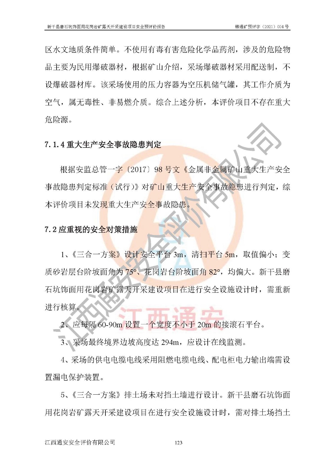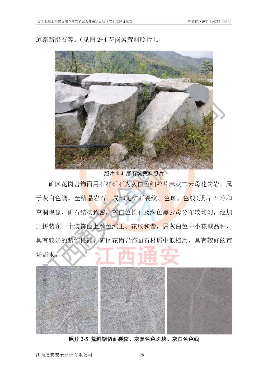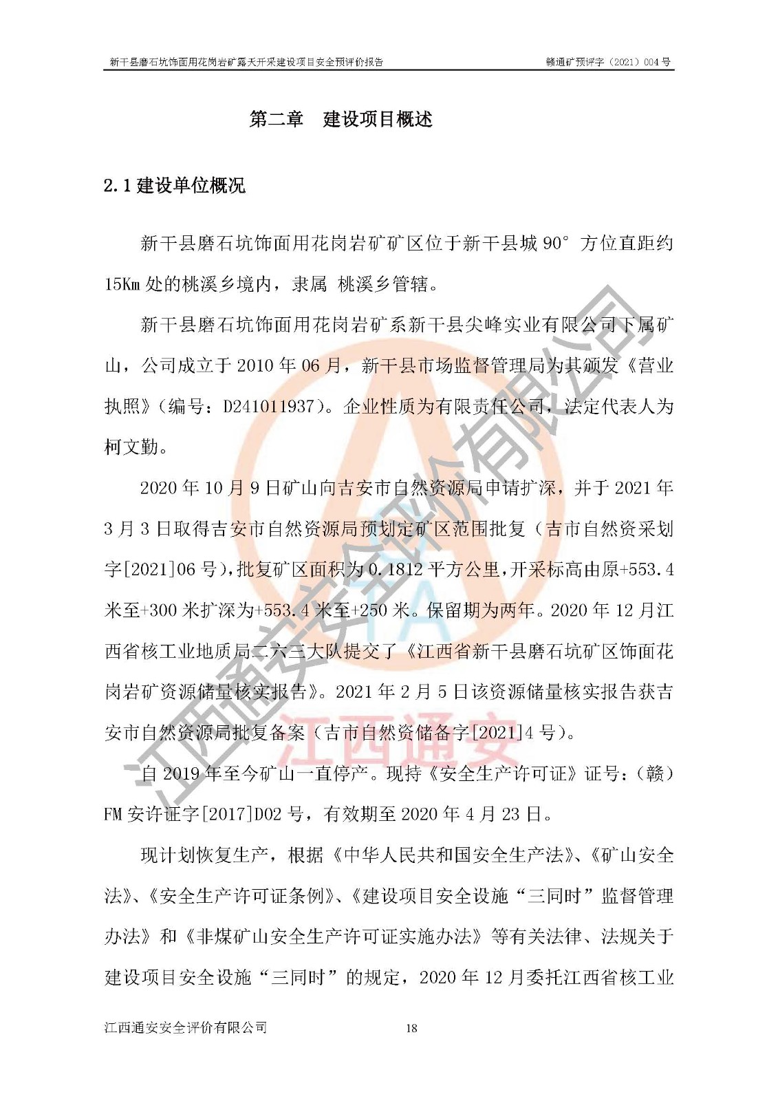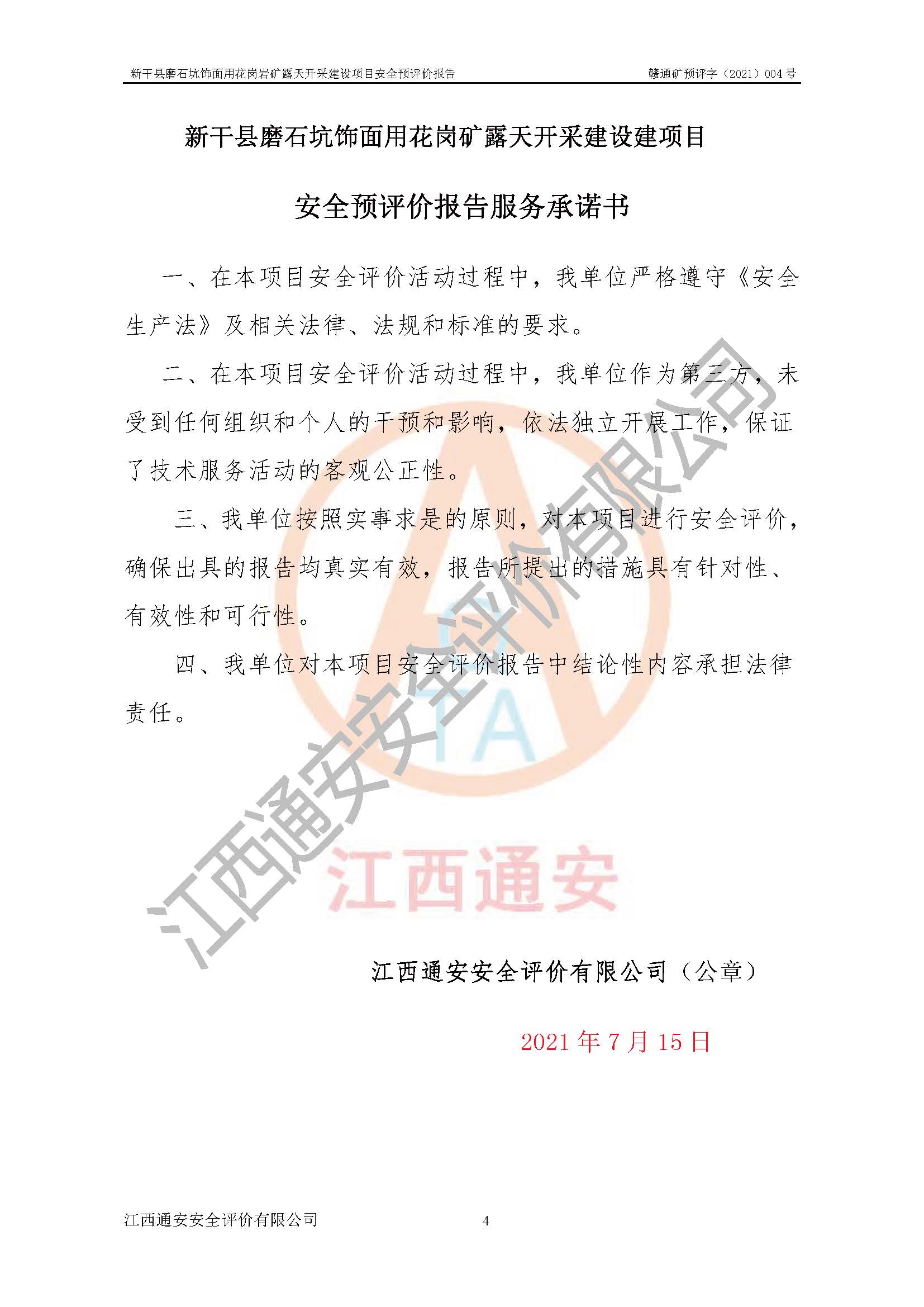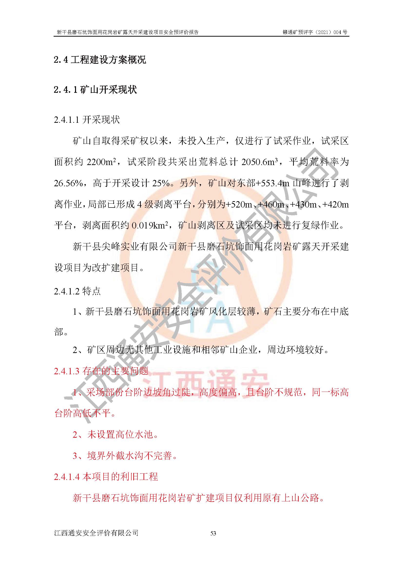 項目名稱 | 新干縣尖峰實業(yè)有限公司新干縣磨石坑飾面用花崗巖礦露天開采建設(shè)項目安全預(yù)評價報告 | ||||