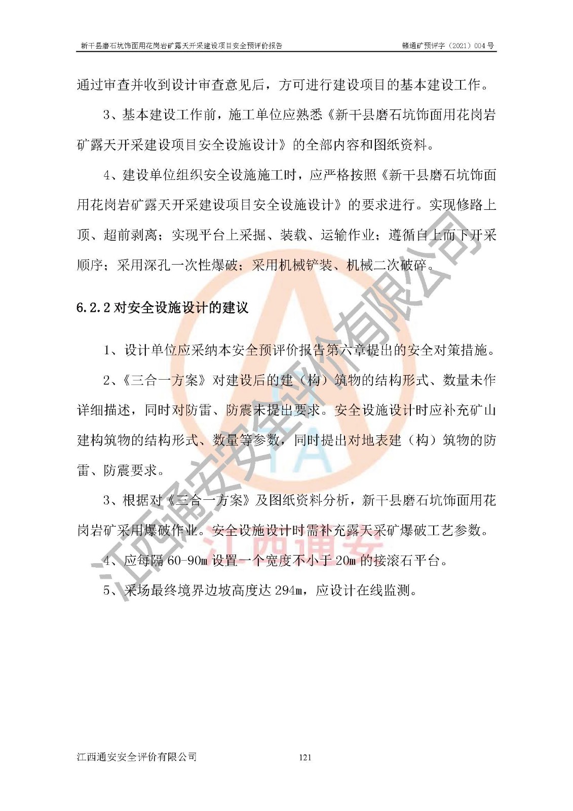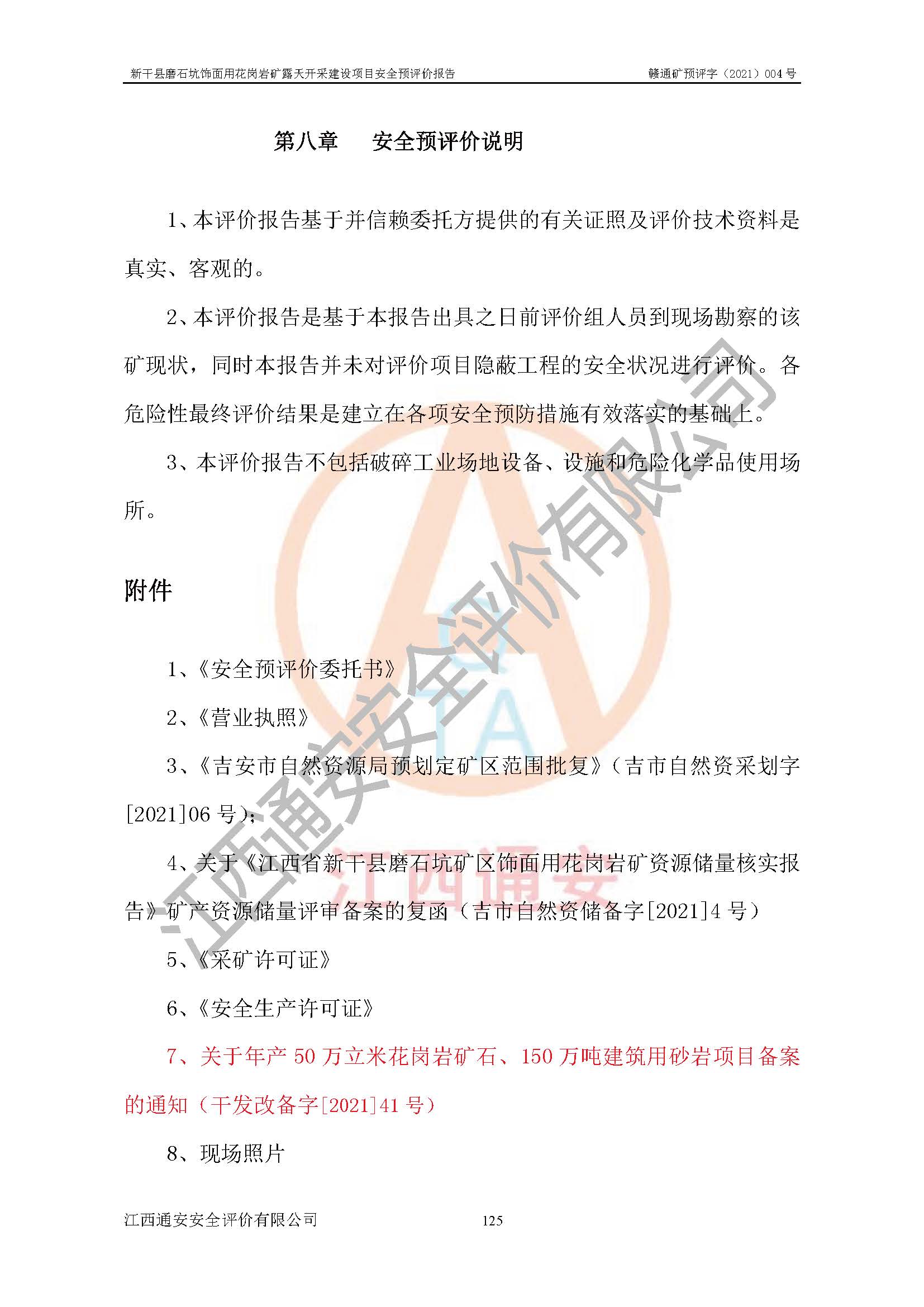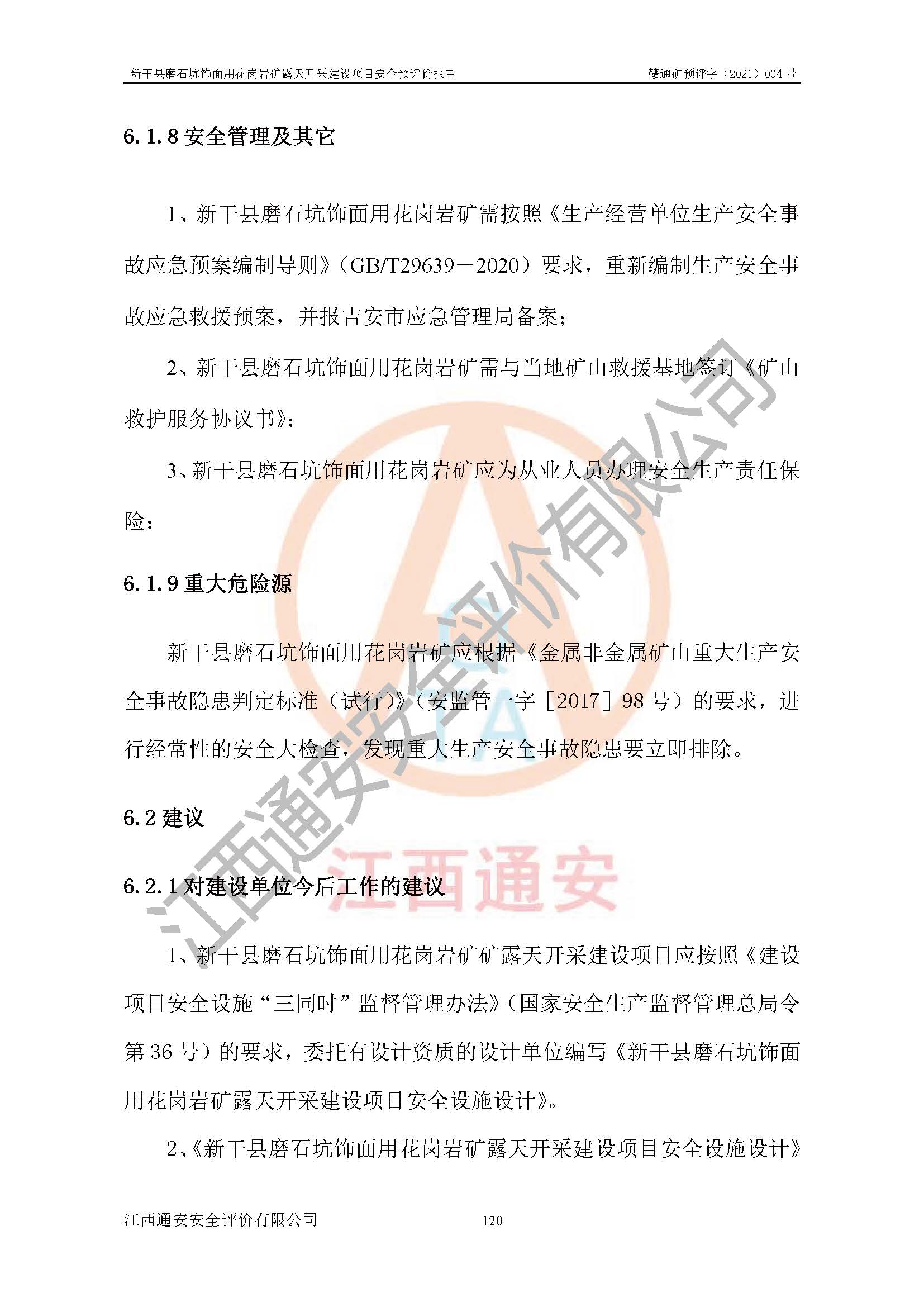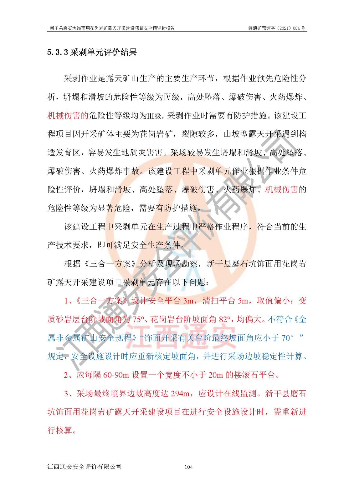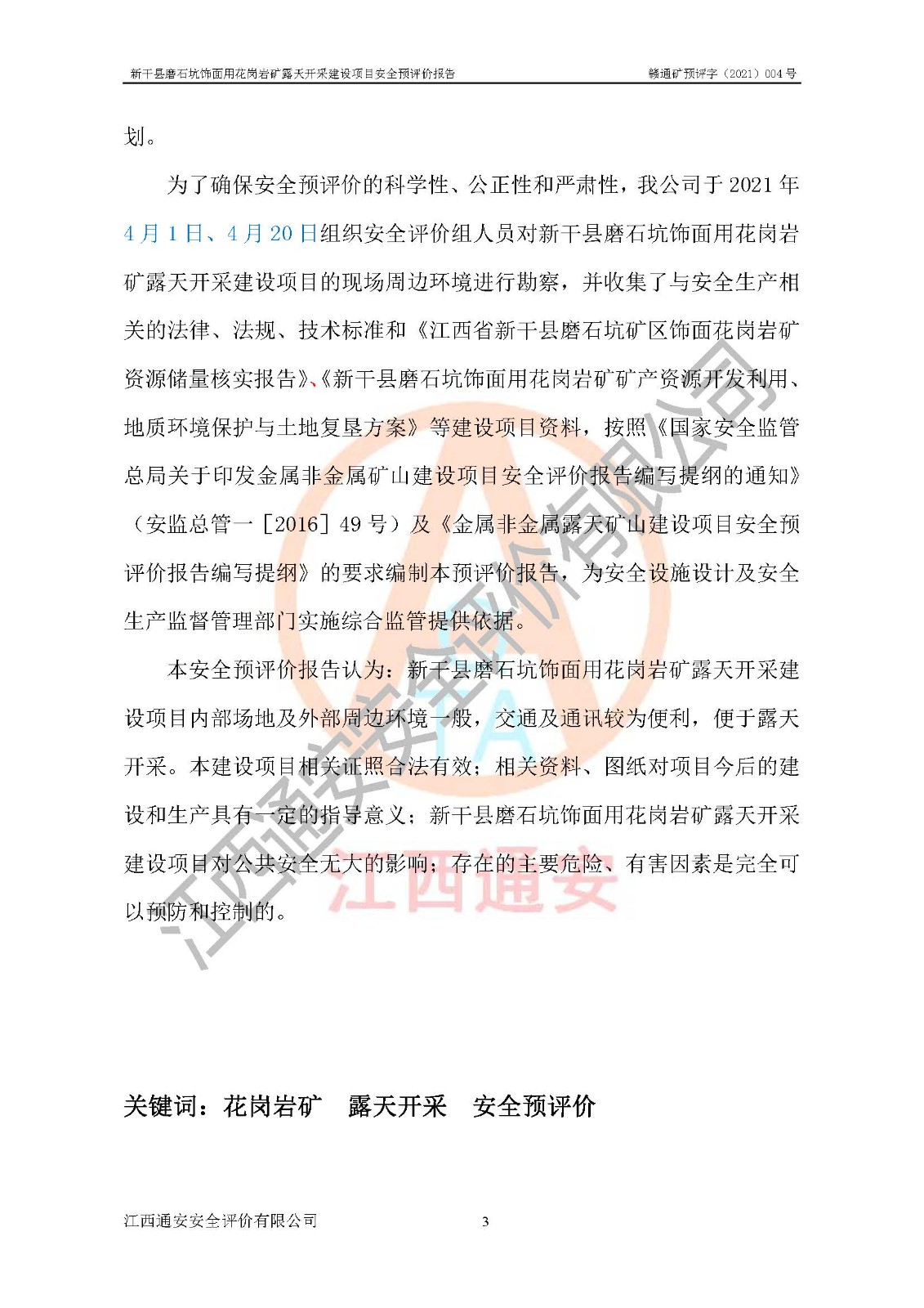 項目名稱 | 新干縣尖峰實業(yè)有限公司新干縣磨石坑飾面用花崗巖礦露天開采建設(shè)項目安全預(yù)評價報告 | ||||