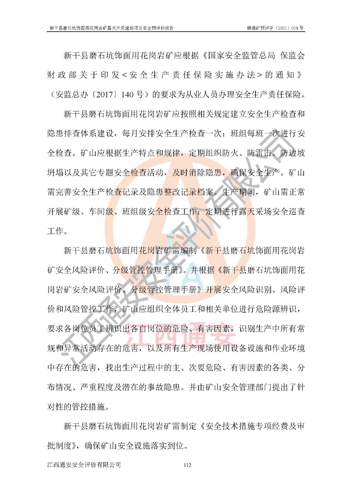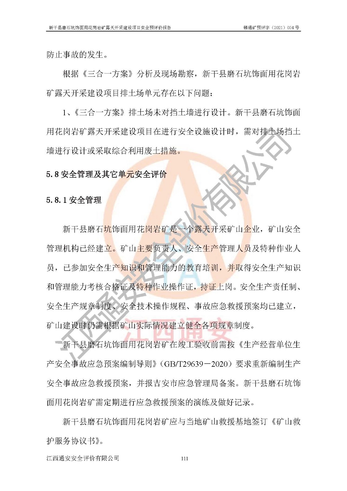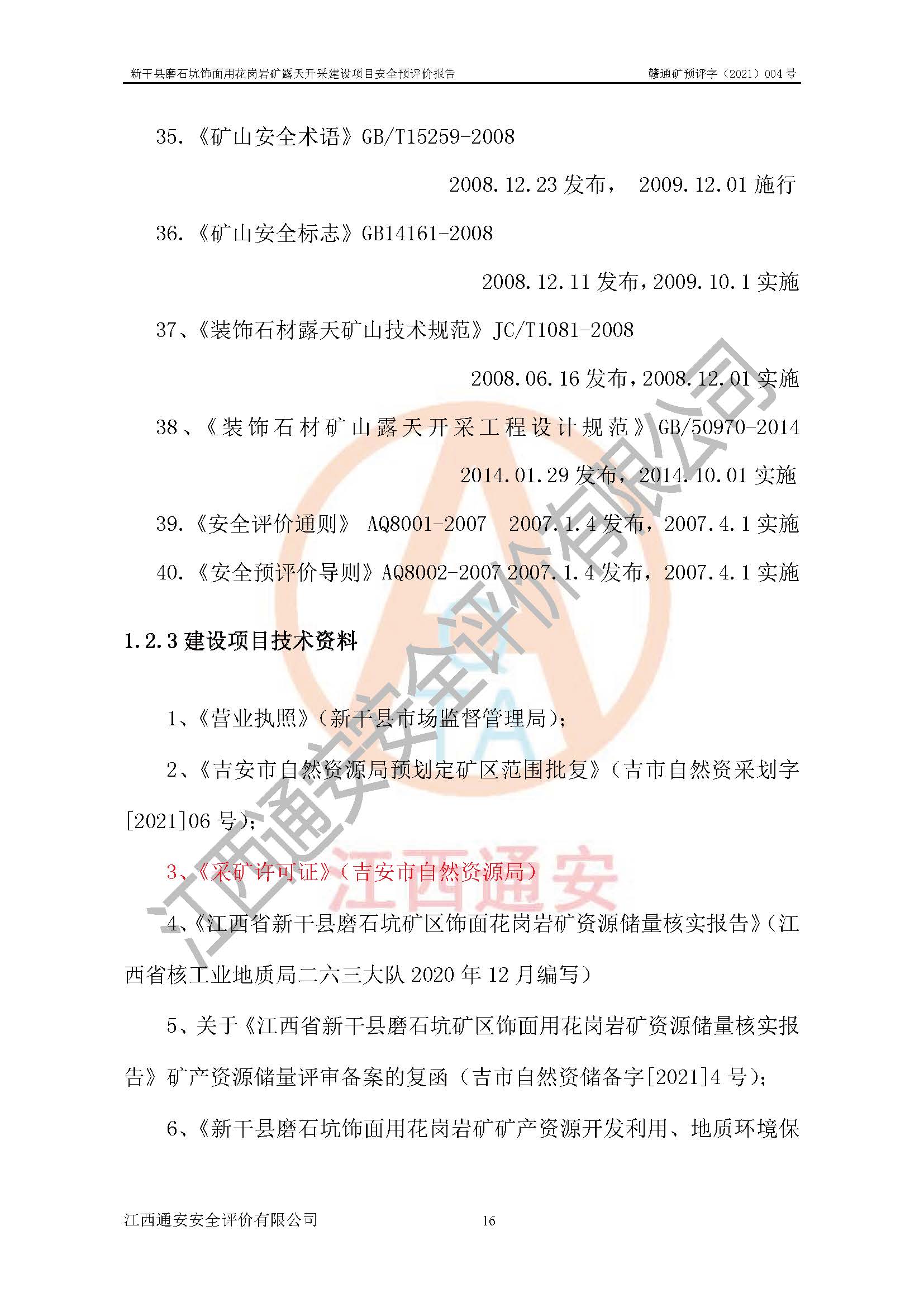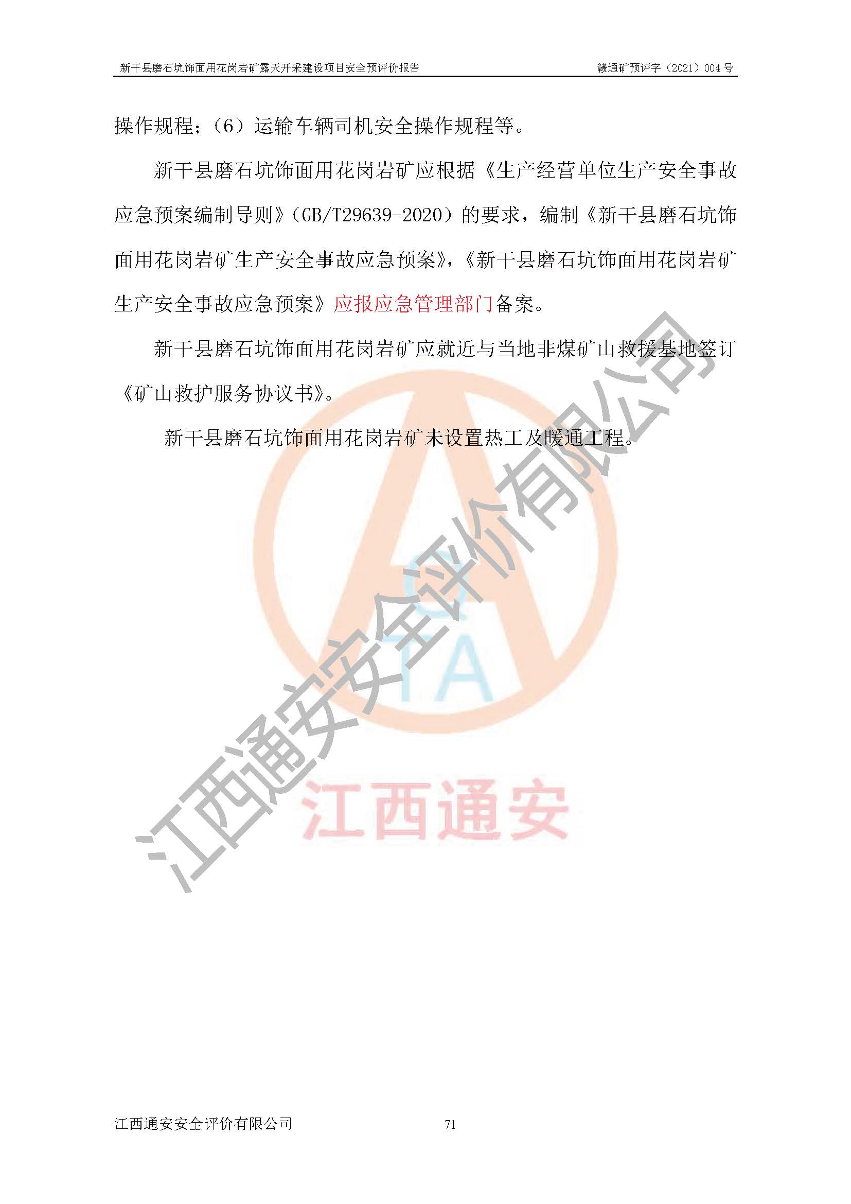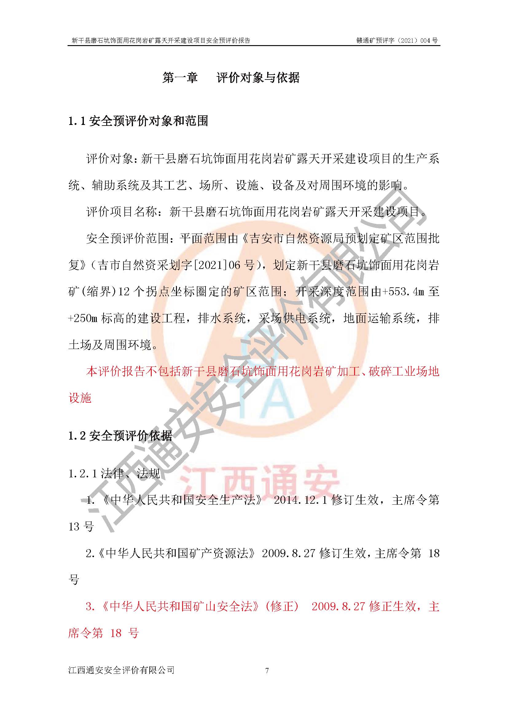 項目名稱 | 新干縣尖峰實業(yè)有限公司新干縣磨石坑飾面用花崗巖礦露天開采建設(shè)項目安全預(yù)評價報告 | ||||
