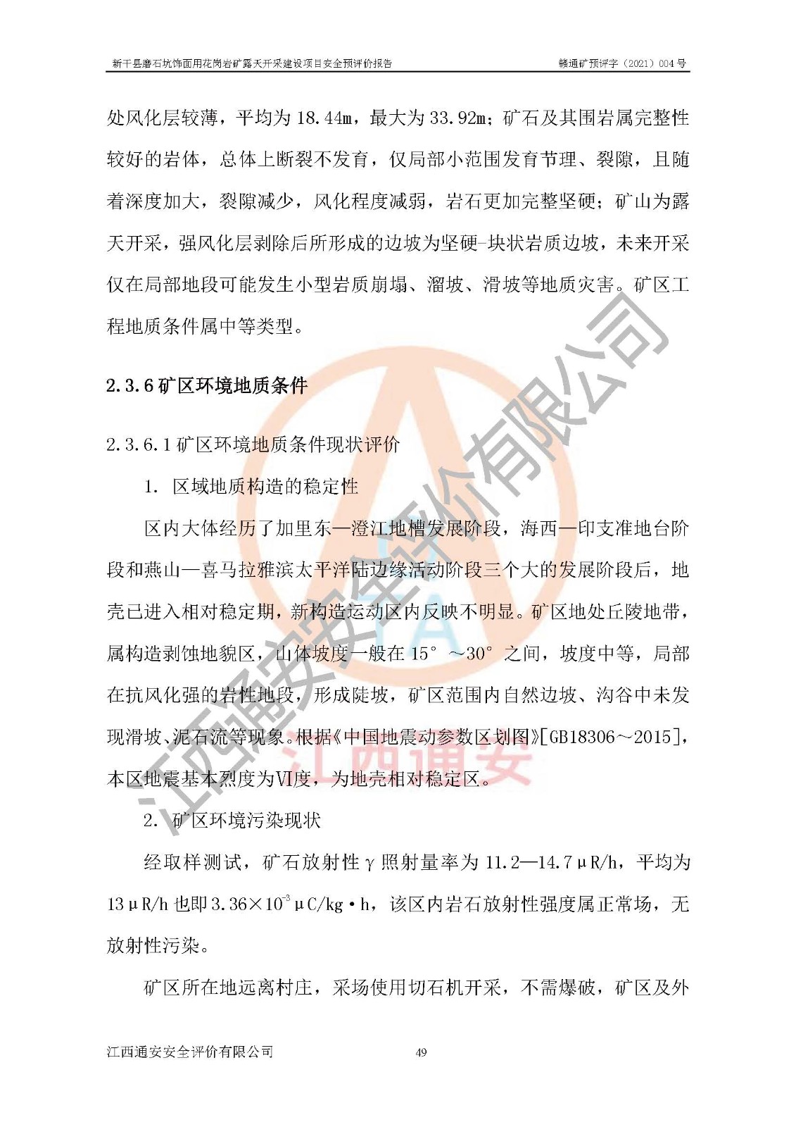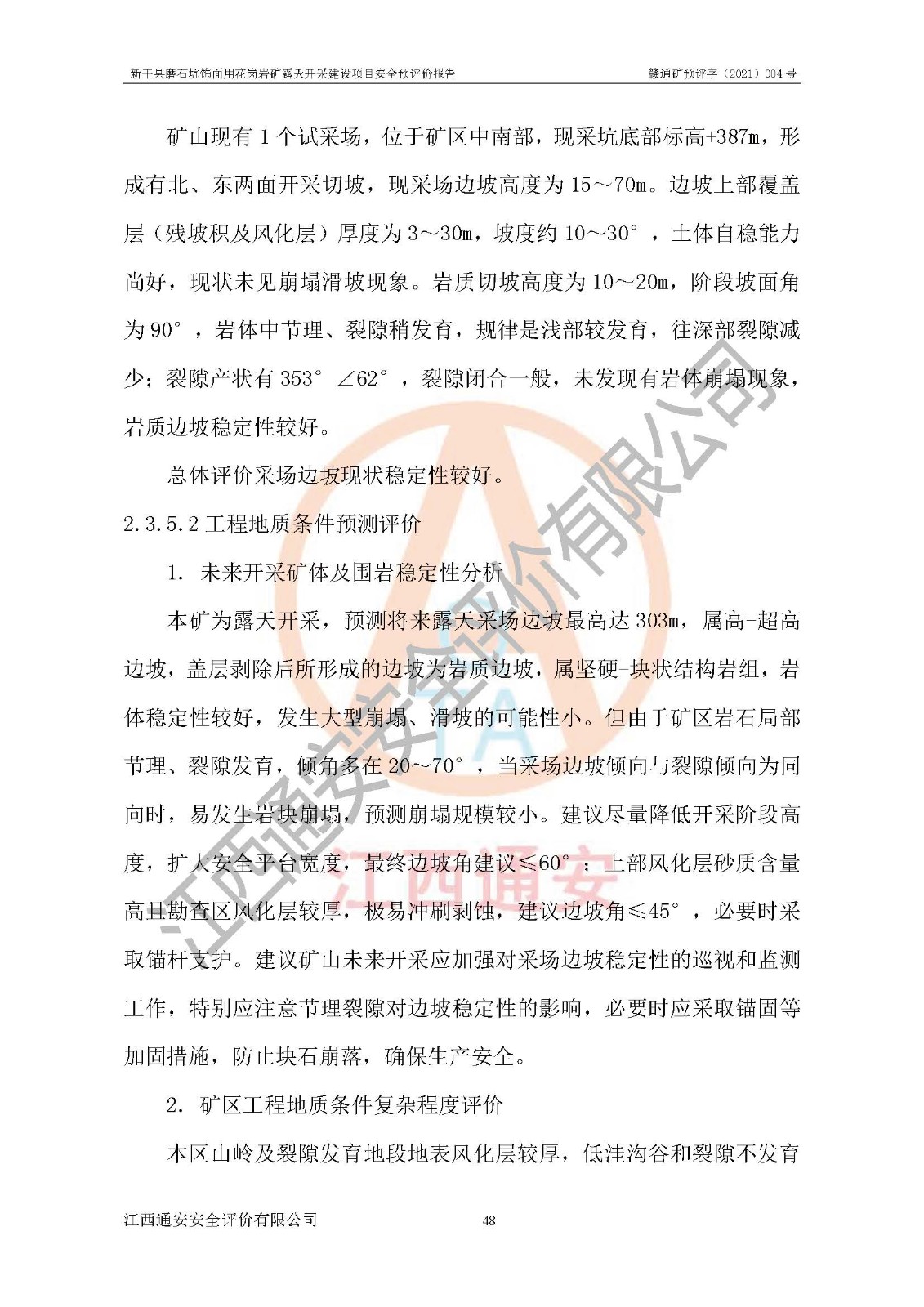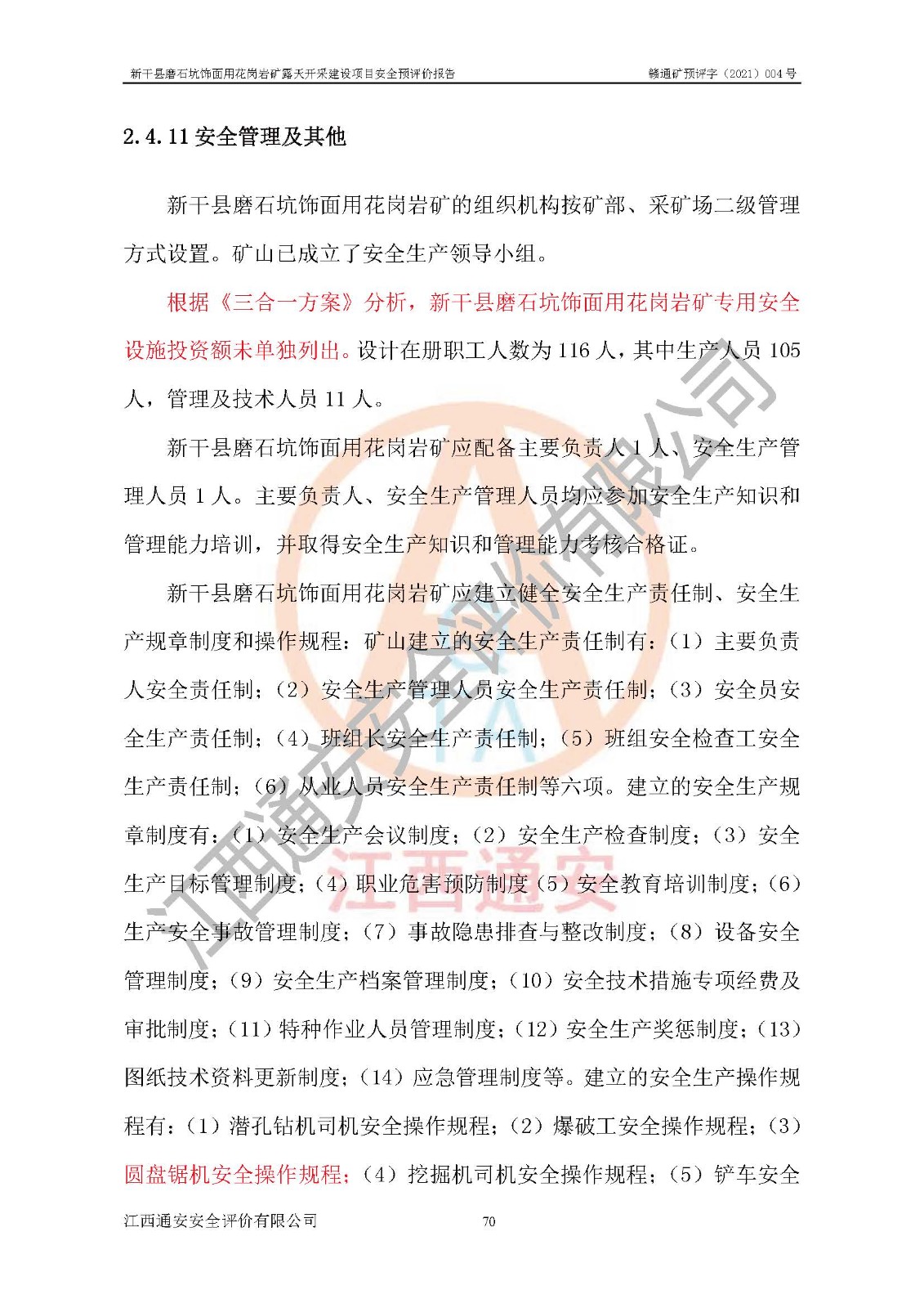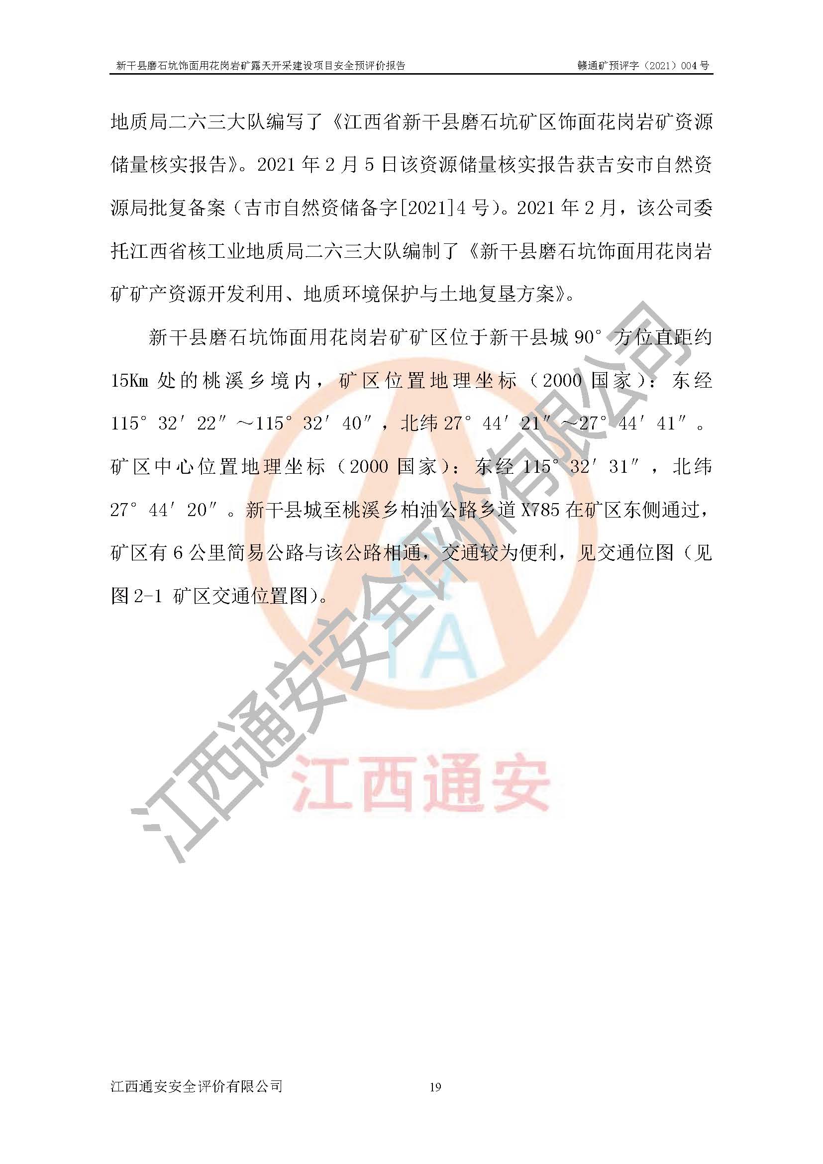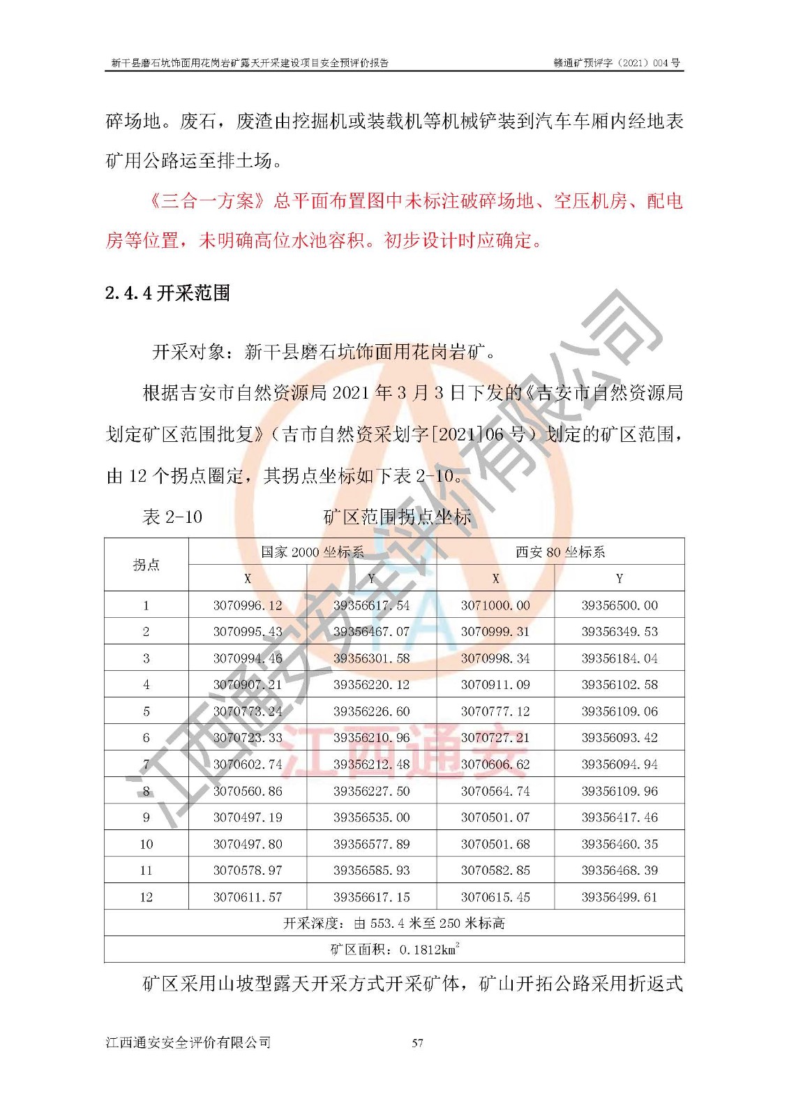 項目名稱 | 新干縣尖峰實業(yè)有限公司新干縣磨石坑飾面用花崗巖礦露天開采建設(shè)項目安全預(yù)評價報告 | ||||