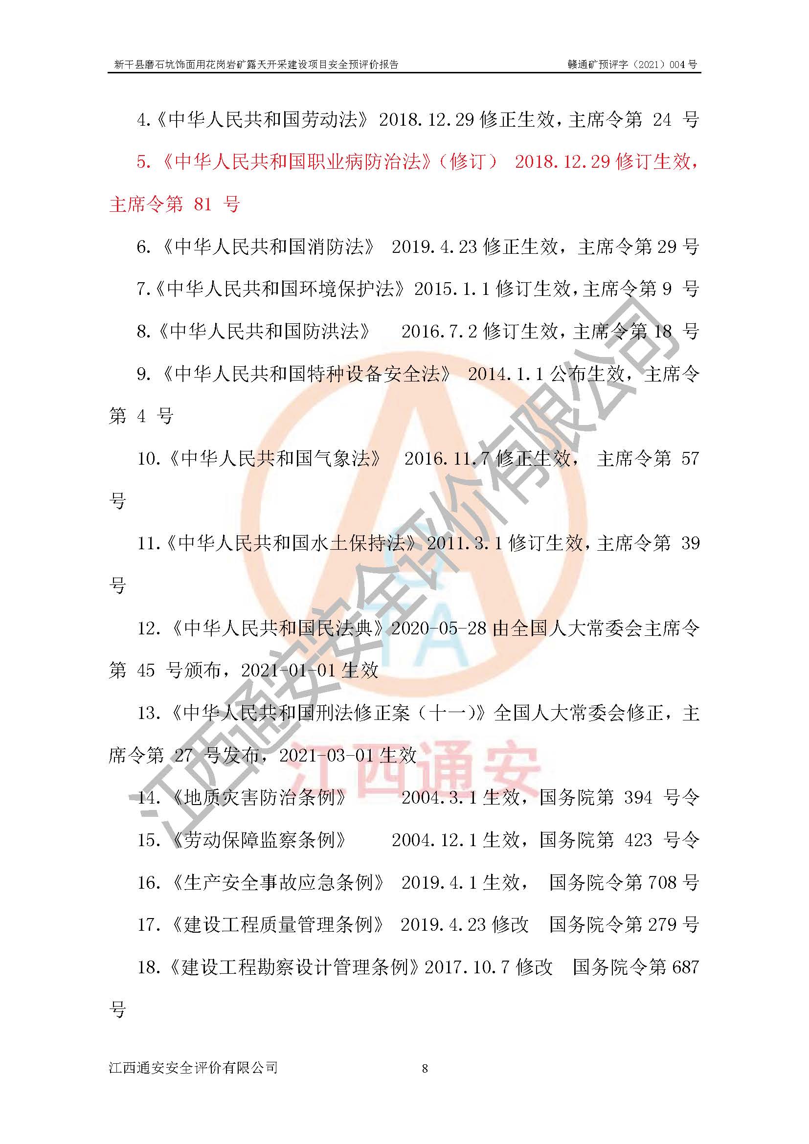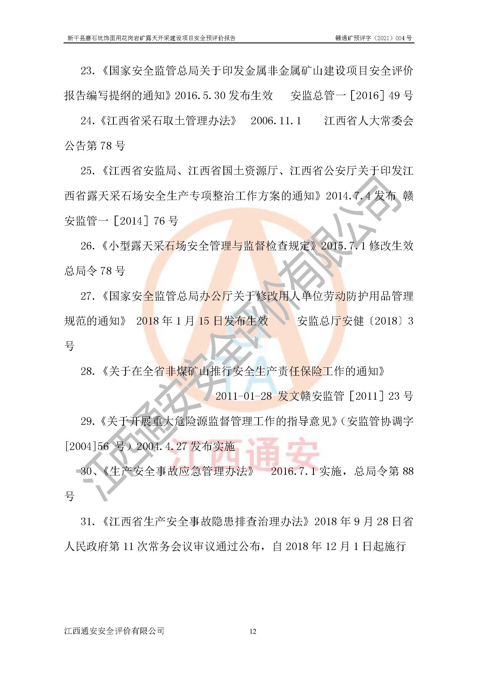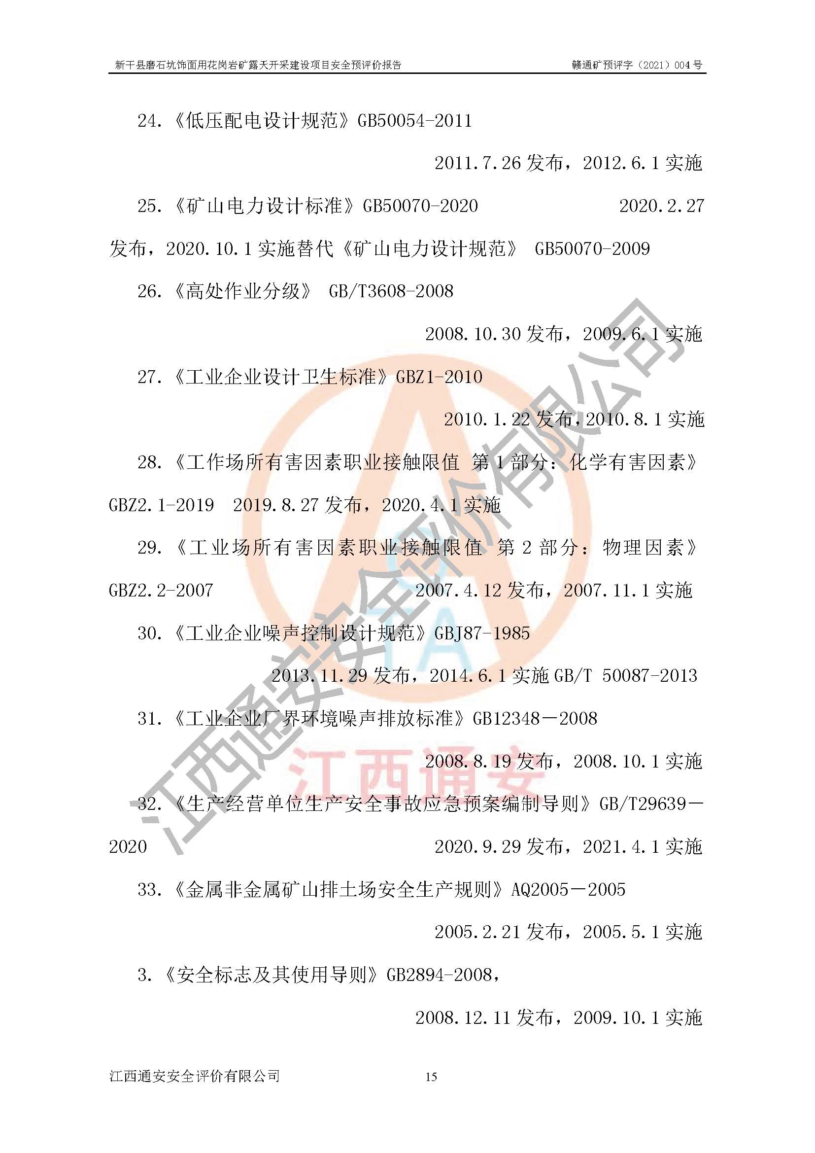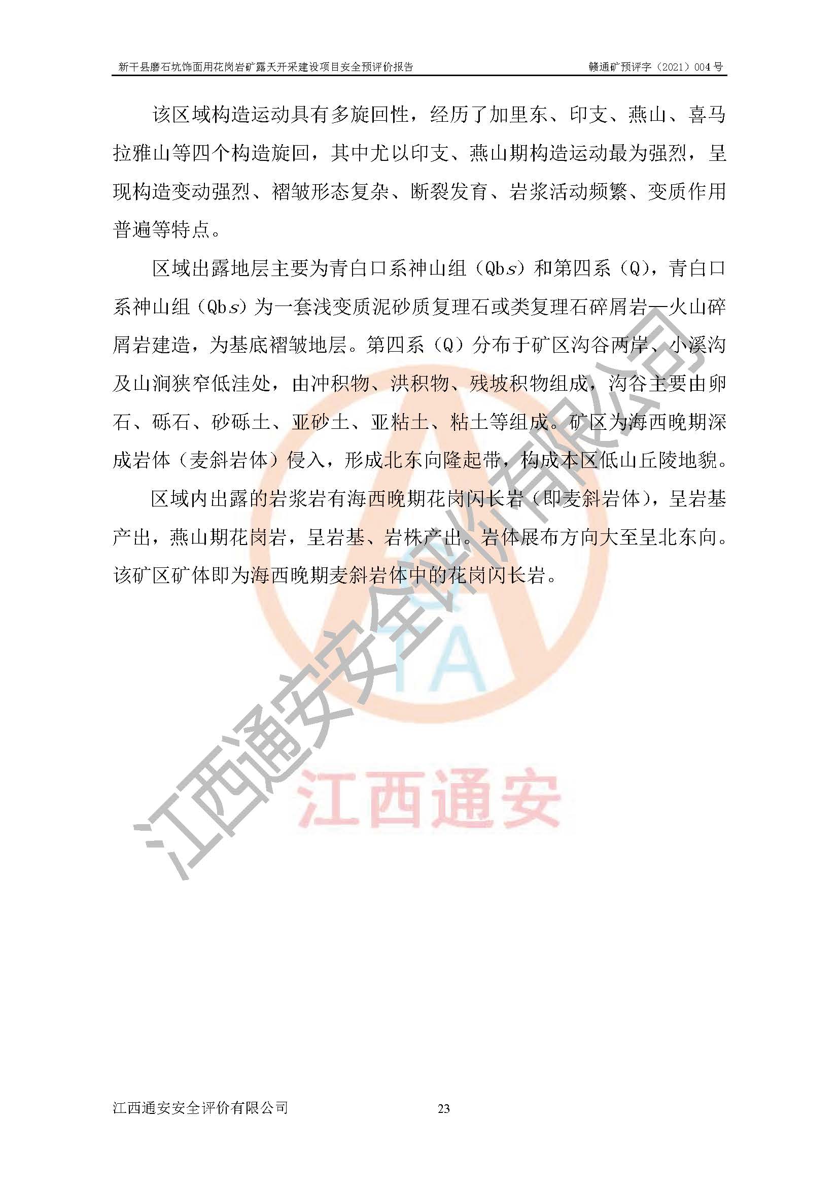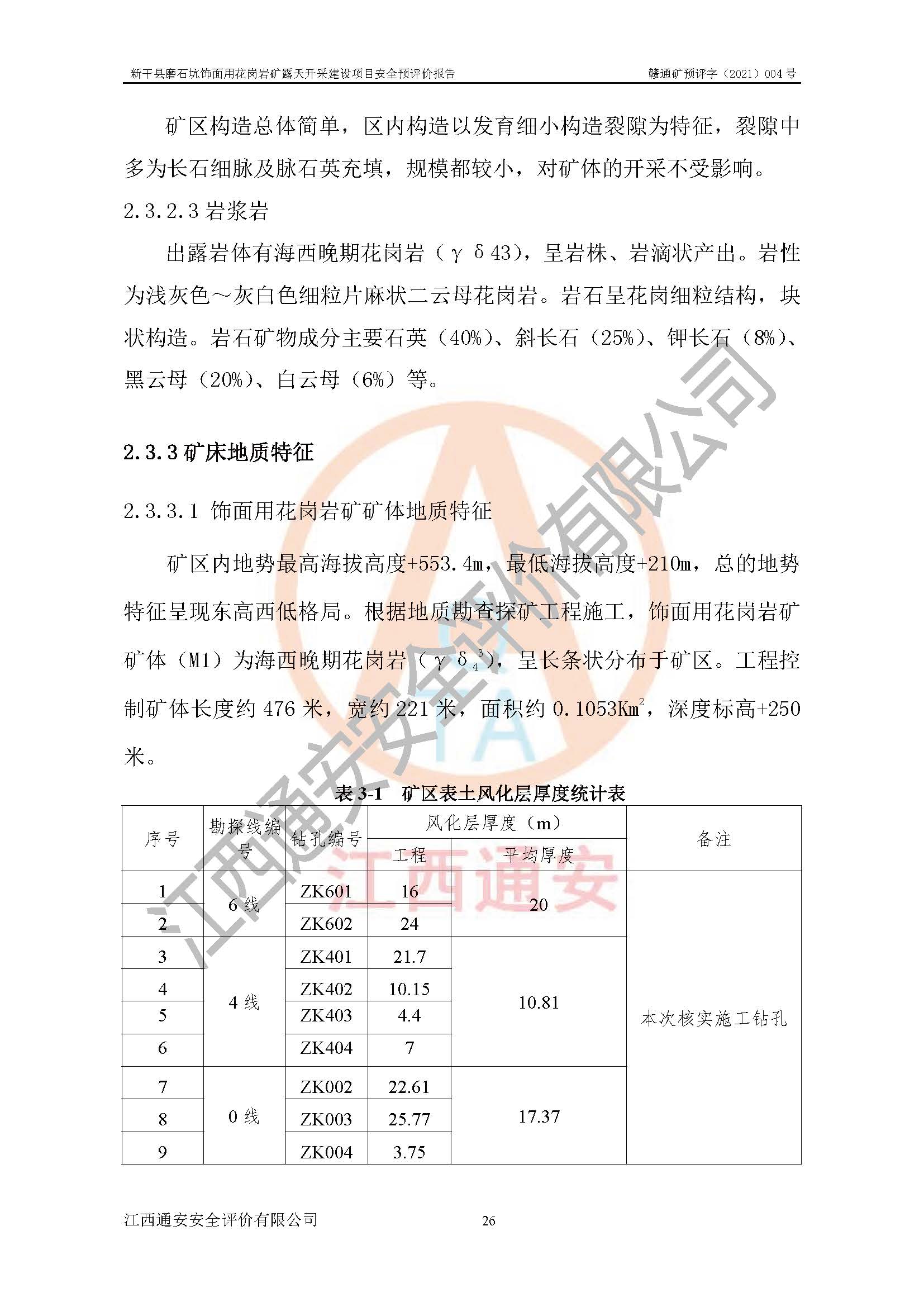 項目名稱 | 新干縣尖峰實業(yè)有限公司新干縣磨石坑飾面用花崗巖礦露天開采建設(shè)項目安全預(yù)評價報告 | ||||