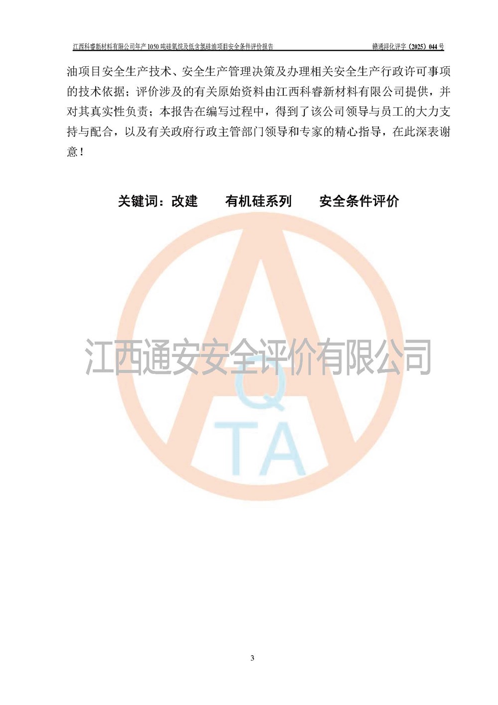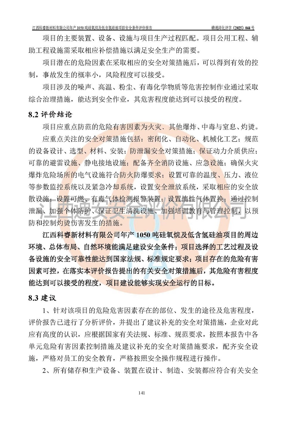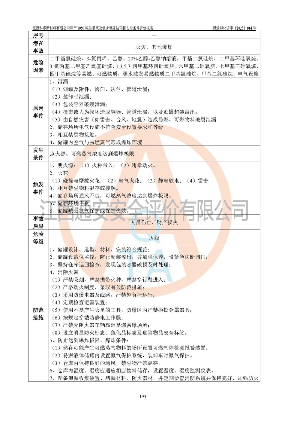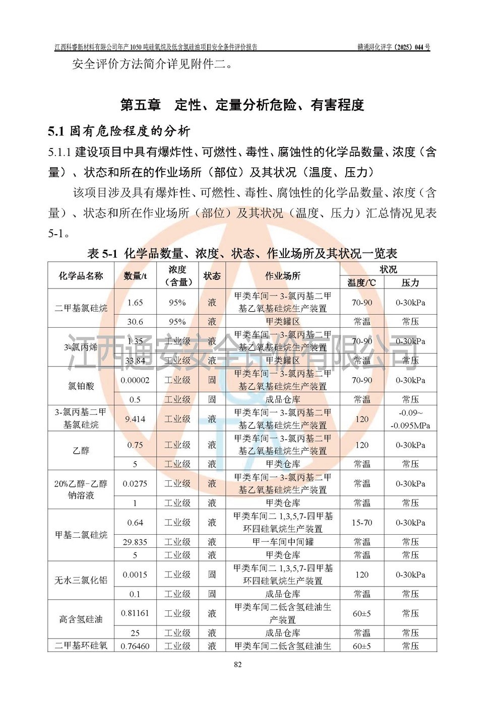 評(píng)價(jià)報(bào)告名稱 | 江西科睿新材料有限公司年產(chǎn)1050噸硅氧烷及低含氫硅油項(xiàng)目安全條件評(píng)價(jià) | |||||